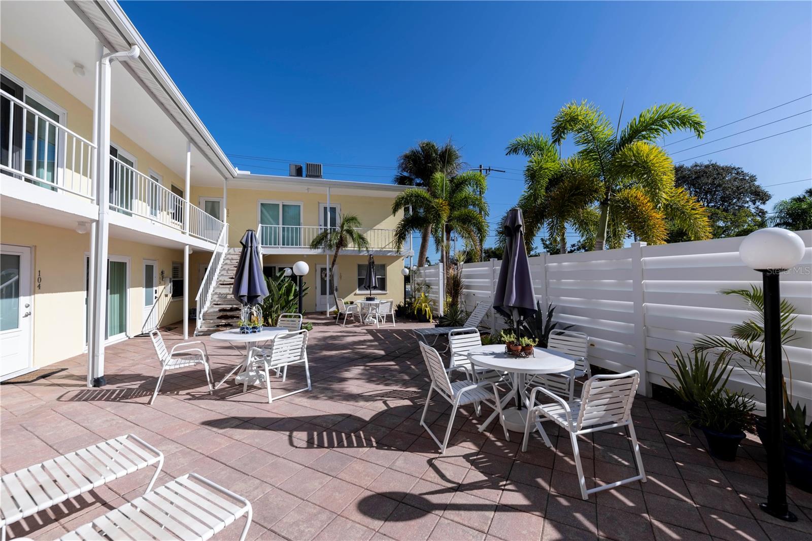 INVESTOR ALERT!!!! Rentals are 7-day minimum! Are you looking for a spot to call home, vacation in, or rent that's less than 1 block to the Venice Beach? This is the property for you. Beautifully renovated 2 bedroom/1 bath condo walking distance to the beach, South Jetty, and Venice's downtown Mainstreet. Stay a couple of nights, months, or year-round, Coco Palms is the perfect setting. Enjoy a beautiful morning evening downstairs in the courtyard with the warm breezes coming from the Gulf just up the road. This unit is tastefully decorated an comes turnkey furnished. The kitchen has soft-close cabinets and full-sized new appliances. The bathroom is lovely with a walk-in shower with glass doors and floor to ceiling tiles. The bedrooms are generous in size, both with large closets. This spacious end unit has a fantastic layout with a living room/dining room combo. Entire unit has gorgeous vinyl plank flooring which just adds to the light and bright unit. This truly is a great location to the Venice Public Beach, Centennial Park, Venice Little Theatre, Venice Art Center, and historic downtown where you will find plenty of shopping, restaurants, and entertainment.