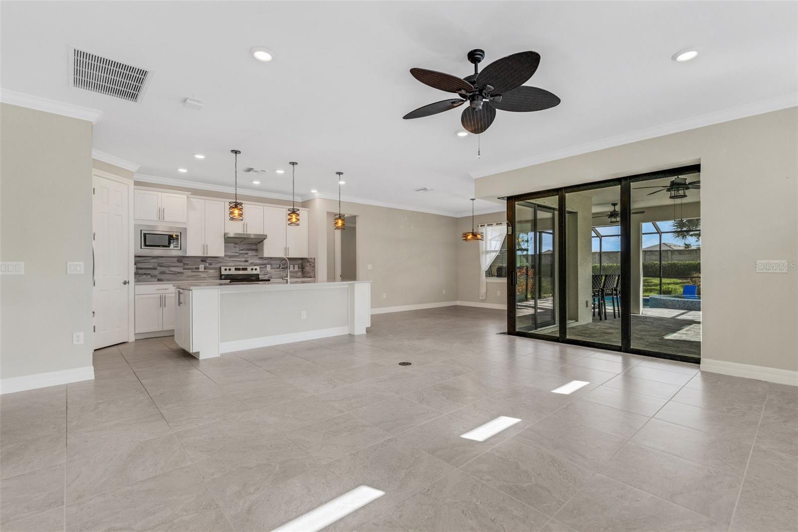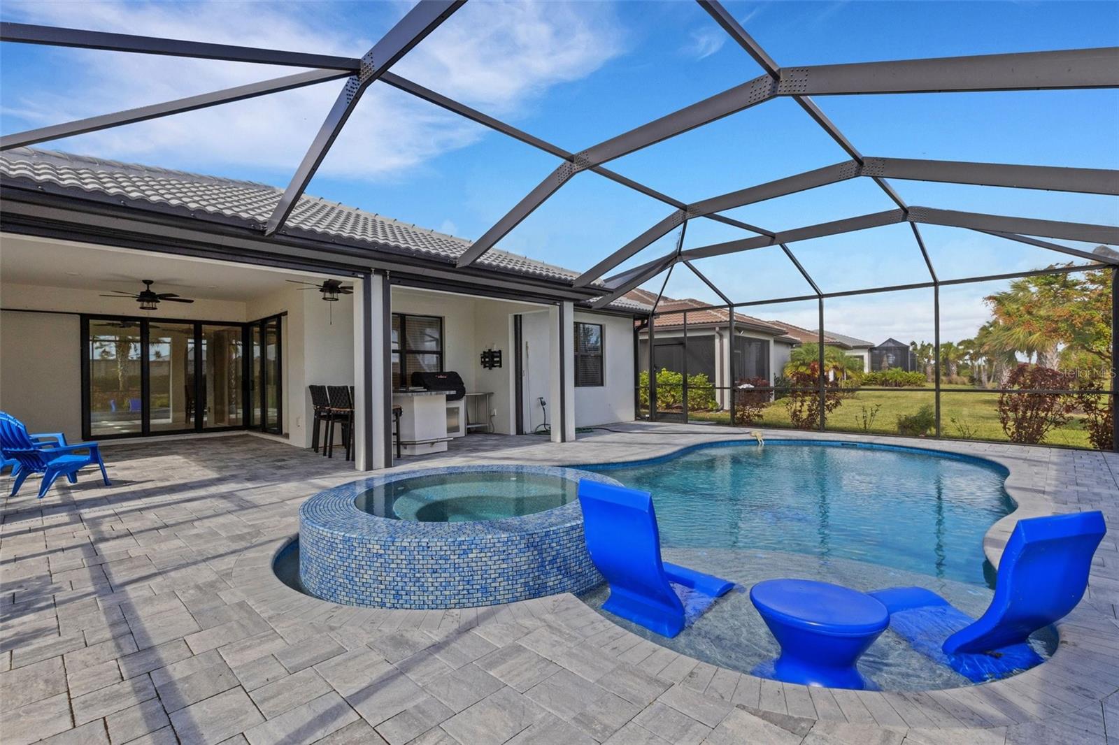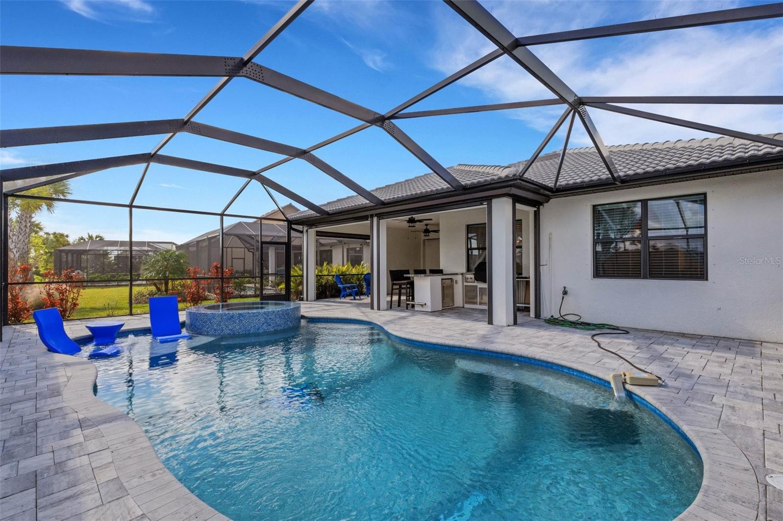 This Summerwood Model has all the Bells and Whistles, designed for entertaining. This plan had the most extensive array of Structural Options to be offered in a Classic Series Home. This Configuration offers some of the best: a 3rd plus Den. 8' Doors and Lots of Crown Molding. The Front Entry is Screened. The Foyer has a spacious landing zone and through the Hall is Bedroom 2 & Den/Study on your right. TOn your left, the Garage Access, a 9'x9' Laundry/Utility Room & 3rd Bedroom. The essence of a "Split Plan, this home opens up into the Great Room, Kitchen and area for Formal Dining. The Master Bedroom Suite has a private set-off entry, wonderful Master Bath and huge Walk-in Closet. The Great Room and Kitchen open up to Zero Corner Sliding Glass Doors to the Extended Covered Lanai. That has over 370 sf under roof with extra space for Outdoor Grilling and plenty of room for Lounging and (Partying?) The Outdoor Grill and Bar Remain. The Pool /Spa is a Custom Design, Salt Water, with Heated Spa and a Shallow Water pool deck. Features of this Home Site. At the back home faces Southeast providing the Morning Sun and Southern Exposure throughout the day, Cool Evenings. Being narrower at the front and wider at the back you gain more space and privacy between your neighbors where it counts. The Garage has a 4’ Extension and Epoxy Floor. The added Pavers have been sealed and the Driveway widened to 20’ Feet. Easy to park full size Vehicles. That Extension actually adds the 4' to the back of the footprint. On either side this home extends beyond the adjoining homes. The View is a Green Belt with Trees and Landscaped Berm. The Privacy Fence extends 25’ beyond the Property Line and beyond it is a Conservation Area. Quieter and more private perhaps than a Pond, all that space is maintained by the HOA. IslandWalk at the West Villages has been the “Home Run” of Active Adult Communities in what is now known as Wellen Park. No other Development in this area can surpass or compete with the quality and number of Social and Recreational Activities that DiVosta delivered as promised after the closing of a new home. It offers maintenance free living, a 24-hour manned Guard Gate, a second Residents Only gated access/egress is a few minute away to take you quickly to Downtown Wellen without having to use Hwy 41. The Community has mature landscaping, beautiful water features and conservation areas.. There is something for everyone with fitness centers, pickleball, tennis, bocce, community garden and pet friendly. Golf Carts are allowed too. The Amenities are extraordinary and IslandWalk has a full time dynamic Lifestyle Director planning social and recreational events, scheduled every day of the week. What's a better place to be? Venice itself is culturally rich yet still retains a friendly small seacoast town quality of life. It has had its own Symphony Orchestra since 1974; it's new venue is The Venice Performing Art Center. There is our renowned and beloved Venice "Little" Theatre founded in 1950 on the way recovery after substantial damage from Hurricane Ian last Fall - Venice Strong!. All this within a 5 to 20 minutes drive to all shopping, medical services , fine and casual dining, area beaches and access to I-75. This is a wonderful home in a marvelous area, yours to enjoy. Fast Closing too!