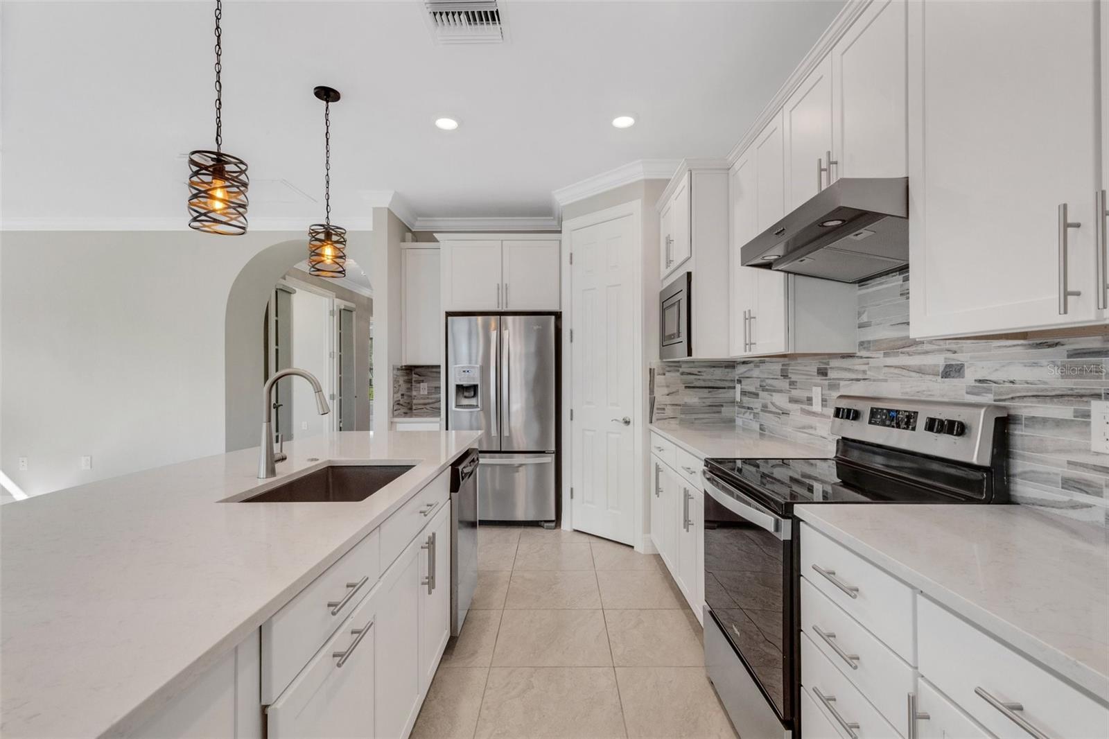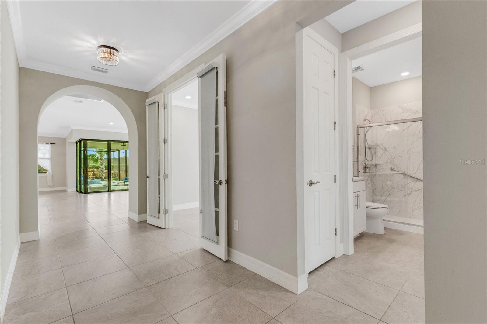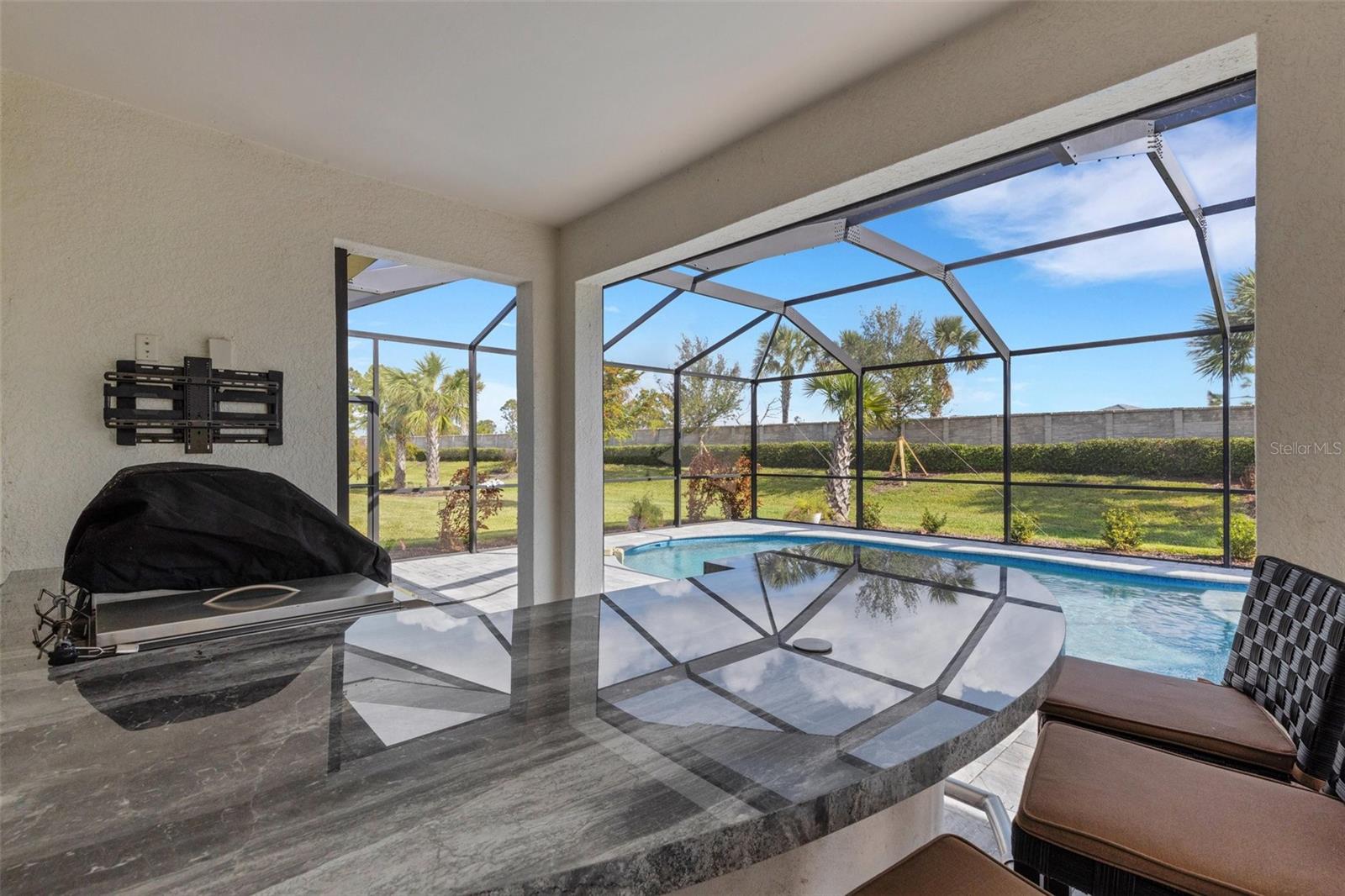 This Summerwood Model has all the Bells and Whistles, designed for entertaining. This plan had the most extensive array of Structural Options to be offered in a Classic Series Home. This Configuration offers some of the best: a 3rd plus Den. 8' Doors and Lots of Crown Molding. The Front Entry is Screened. The Foyer has a spacious landing zone and through the Hall is Bedroom 2 & Den/Study on your right. TOn your left, the Garage Access, a 9'x9' Laundry/Utility Room & 3rd Bedroom. The essence of a "Split Plan, this home opens up into the Great Room, Kitchen and area for Formal Dining. The Master Bedroom Suite has a private set-off entry, wonderful Master Bath and huge Walk-in Closet. The Great Room and Kitchen open up to Zero Corner Sliding Glass Doors to the Extended Covered Lanai. That has over 370 sf under roof with extra space for Outdoor Grilling and plenty of room for Lounging and (Partying?) The Outdoor Grill and Bar Remain. The Pool /Spa is a Custom Design, Salt Water, with Heated Spa and a Shallow Water pool deck. Features of this Home Site. At the back home faces Southeast providing the Morning Sun and Southern Exposure throughout the day, Cool Evenings. Being narrower at the front and wider at the back you gain more space and privacy between your neighbors where it counts. The Garage has a 4’ Extension and Epoxy Floor. The added Pavers have been sealed and the Driveway widened to 20’ Feet. Easy to park full size Vehicles. That Extension actually adds the 4' to the back of the footprint. On either side this home extends beyond the adjoining homes. The View is a Green Belt with Trees and Landscaped Berm. The Privacy Fence extends 25’ beyond the Property Line and beyond it is a Conservation Area. Quieter and more private perhaps than a Pond, all that space is maintained by the HOA. IslandWalk at the West Villages has been the “Home Run” of Active Adult Communities in what is now known as Wellen Park. No other Development in this area can surpass or compete with the quality and number of Social and Recreational Activities that DiVosta delivered as promised after the closing of a new home. It offers maintenance free living, a 24-hour manned Guard Gate, a second Residents Only gated access/egress is a few minute away to take you quickly to Downtown Wellen without having to use Hwy 41. The Community has mature landscaping, beautiful water features and conservation areas.. There is something for everyone with fitness centers, pickleball, tennis, bocce, community garden and pet friendly. Golf Carts are allowed too. The Amenities are extraordinary and IslandWalk has a full time dynamic Lifestyle Director planning social and recreational events, scheduled every day of the week. What's a better place to be? Venice itself is culturally rich yet still retains a friendly small seacoast town quality of life. It has had its own Symphony Orchestra since 1974; it's new venue is The Venice Performing Art Center. There is our renowned and beloved Venice "Little" Theatre founded in 1950 on the way recovery after substantial damage from Hurricane Ian last Fall - Venice Strong!. All this within a 5 to 20 minutes drive to all shopping, medical services , fine and casual dining, area beaches and access to I-75. This is a wonderful home in a marvelous area, yours to enjoy. Fast Closing too!
