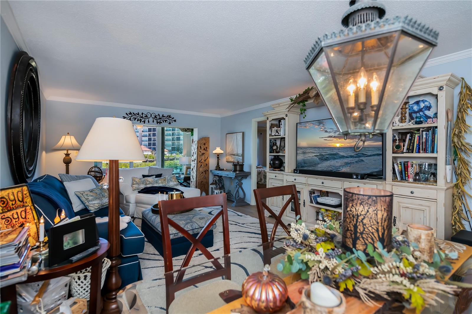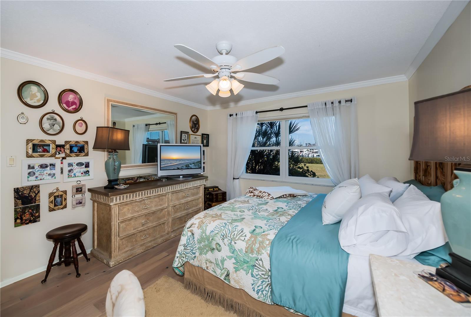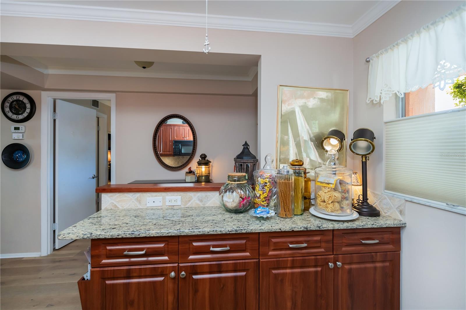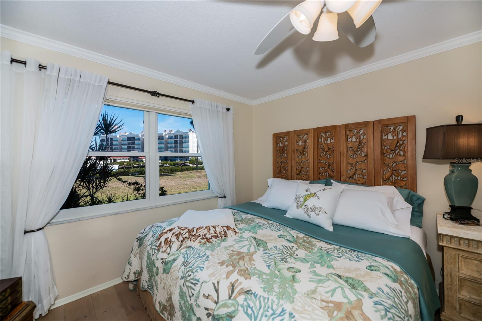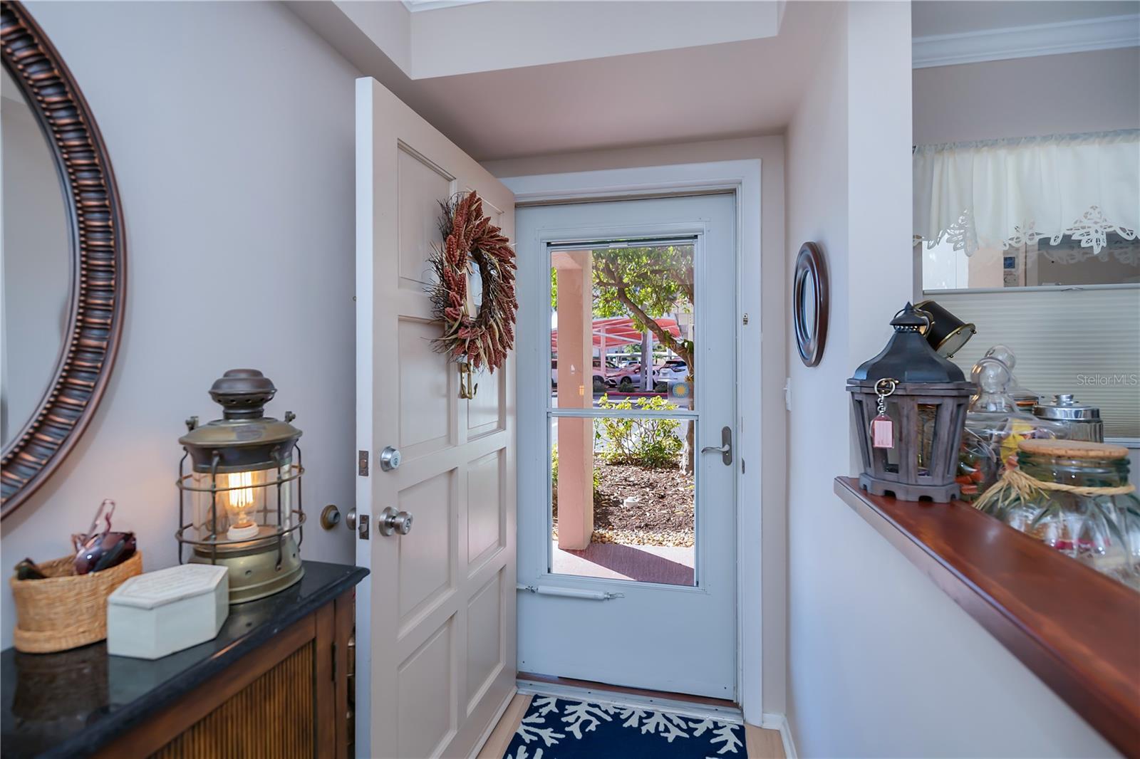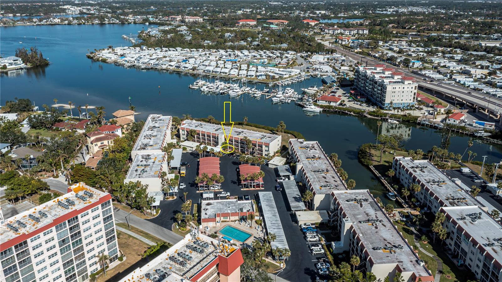 LOCATION-LOCATION-LOCATION... Water views from your living room, with theaters and restaurants just a short walk away. This beautifully updated 2-bedroom, 2-bathroom <b>first-floor</b> condo in Bella Costa offers stunning water views of the Intracoastal Waterway and Roberts Bay, providing a serene backdrop for everyday living. The condo features hurricane windows and sliding glass doors, ensuring both comfort and safety. You'll find beautiful wood floors (installed in 2020) throughout the unit, adding style and charm. The kitchen has been thoughtfully renovated with granite countertops, wood cabinets, and ample storage and counter space—perfect for cooking and entertaining. The spacious living and dining areas are designed to take full advantage of the gorgeous water views, or relax in the bonus enclosed sunroom, an ideal spot for watching boats glide by on warm days. Both bedrooms come with their own ensuites, ensuring privacy and convenience. The master bedroom includes a generous walk-in closet with a built-in washer and dryer, offering plenty of storage space. The guest bedroom is perfect for visitors and work, featuring a built-in Murphy bed, built-in desk, and walk-in closet. Bella Costa is ideally located just a short walk to historic downtown Venice, the Venice Theatre, pristine beaches, shopping, dining, medical facilities, and entertainment. The active community amenities include a clubhouse with a community activity calendar featuring exercise classes, movie nights, a book club, an active pool room, card playing, a small gym, heated pool, outdoor grill, and a fire pit situated between the buildings along the water—perfect for socializing and enjoying the beautiful Florida weather. It's great for watching the holiday boat parade and concerts hosted by the active clubhouse. Whether you're looking for a fantastic seasonal rental investment, a winter retreat, or a year-round residence, this condo offers a wonderful opportunity to live in one of Venice’s most desirable locations. Enjoy watching boats sail by from your private patio and experience the best of waterfront living! Don't miss the opportunity to live where others vacation! This won't last long, so make your appointment today to see this little piece of paradise and island living.