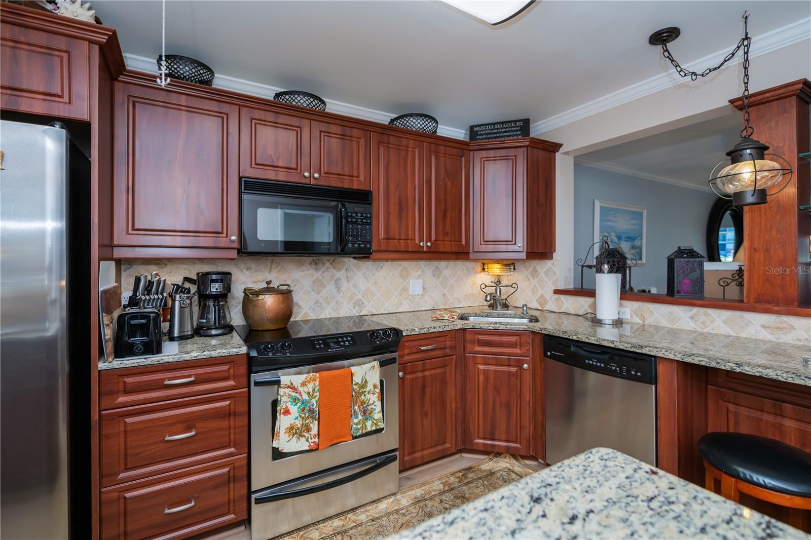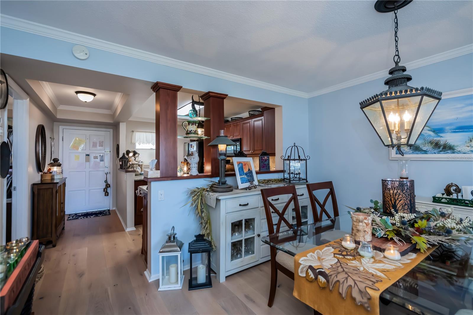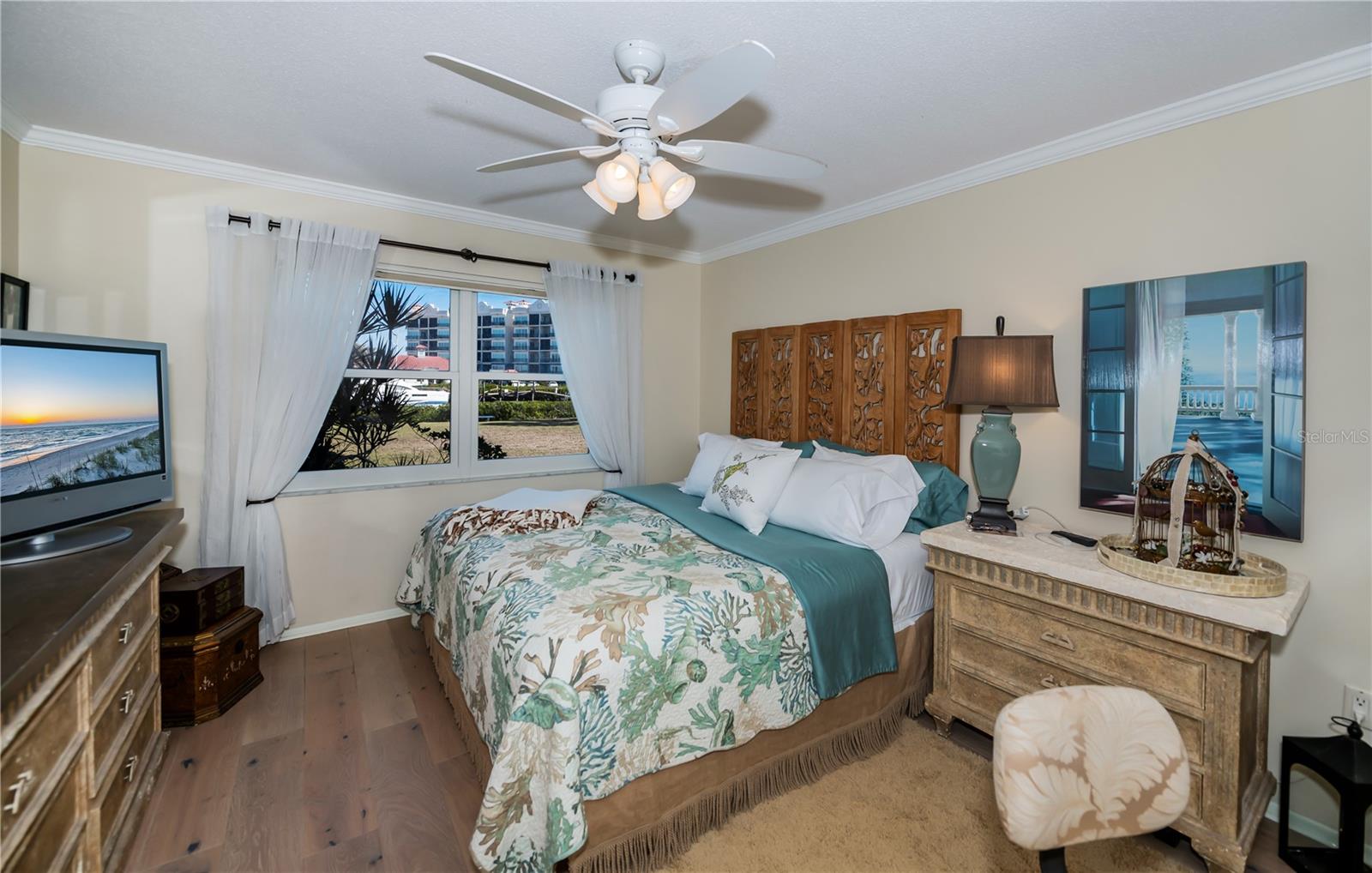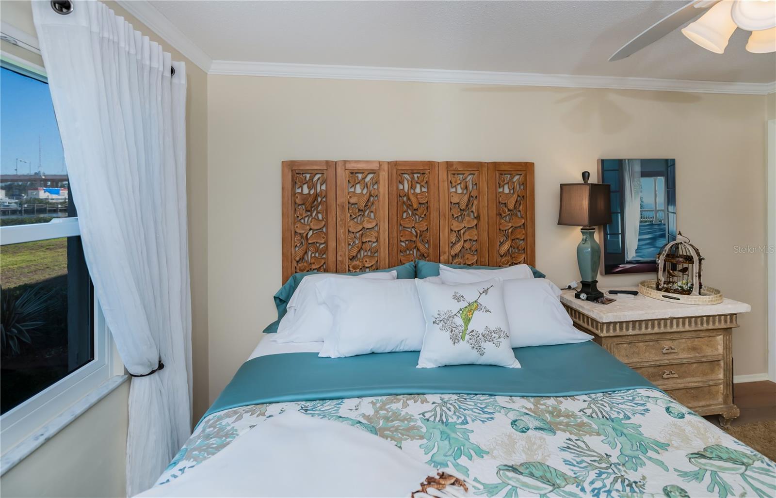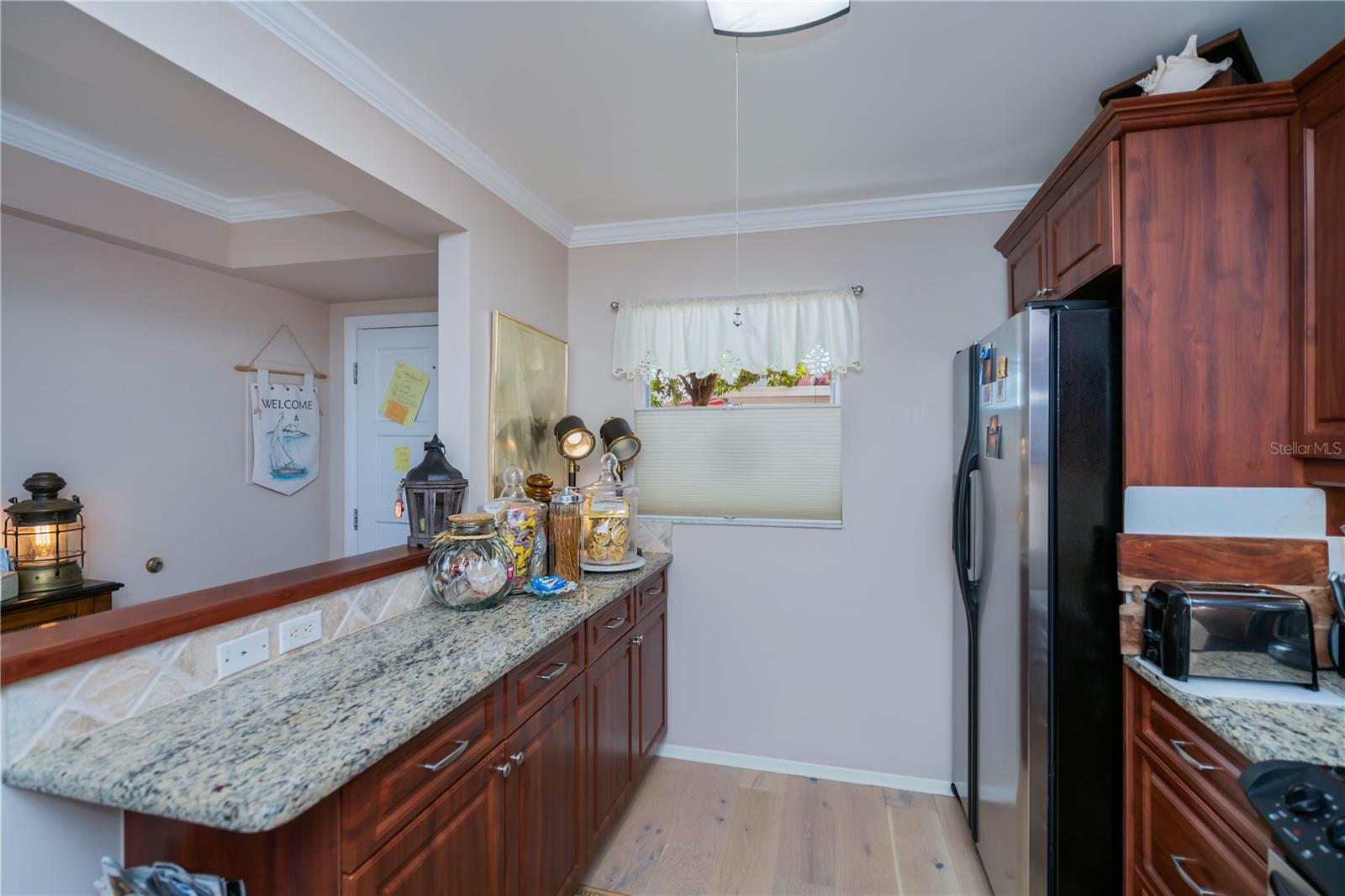 LOCATION-LOCATION-LOCATION... Water views from your living room, with theaters and restaurants just a short walk away. This beautifully updated 2-bedroom, 2-bathroom <b>first-floor</b> condo in Bella Costa offers stunning water views of the Intracoastal Waterway and Roberts Bay, providing a serene backdrop for everyday living. The condo features hurricane windows and sliding glass doors, ensuring both comfort and safety. You'll find beautiful wood floors (installed in 2020) throughout the unit, adding style and charm. The kitchen has been thoughtfully renovated with granite countertops, wood cabinets, and ample storage and counter space—perfect for cooking and entertaining. The spacious living and dining areas are designed to take full advantage of the gorgeous water views, or relax in the bonus enclosed sunroom, an ideal spot for watching boats glide by on warm days. Both bedrooms come with their own ensuites, ensuring privacy and convenience. The master bedroom includes a generous walk-in closet with a built-in washer and dryer, offering plenty of storage space. The guest bedroom is perfect for visitors and work, featuring a built-in Murphy bed, built-in desk, and walk-in closet. Bella Costa is ideally located just a short walk to historic downtown Venice, the Venice Theatre, pristine beaches, shopping, dining, medical facilities, and entertainment. The active community amenities include a clubhouse with a community activity calendar featuring exercise classes, movie nights, a book club, an active pool room, card playing, a small gym, heated pool, outdoor grill, and a fire pit situated between the buildings along the water—perfect for socializing and enjoying the beautiful Florida weather. It's great for watching the holiday boat parade and concerts hosted by the active clubhouse. Whether you're looking for a fantastic seasonal rental investment, a winter retreat, or a year-round residence, this condo offers a wonderful opportunity to live in one of Venice’s most desirable locations. Enjoy watching boats sail by from your private patio and experience the best of waterfront living! Don't miss the opportunity to live where others vacation! This won't last long, so make your appointment today to see this little piece of paradise and island living.