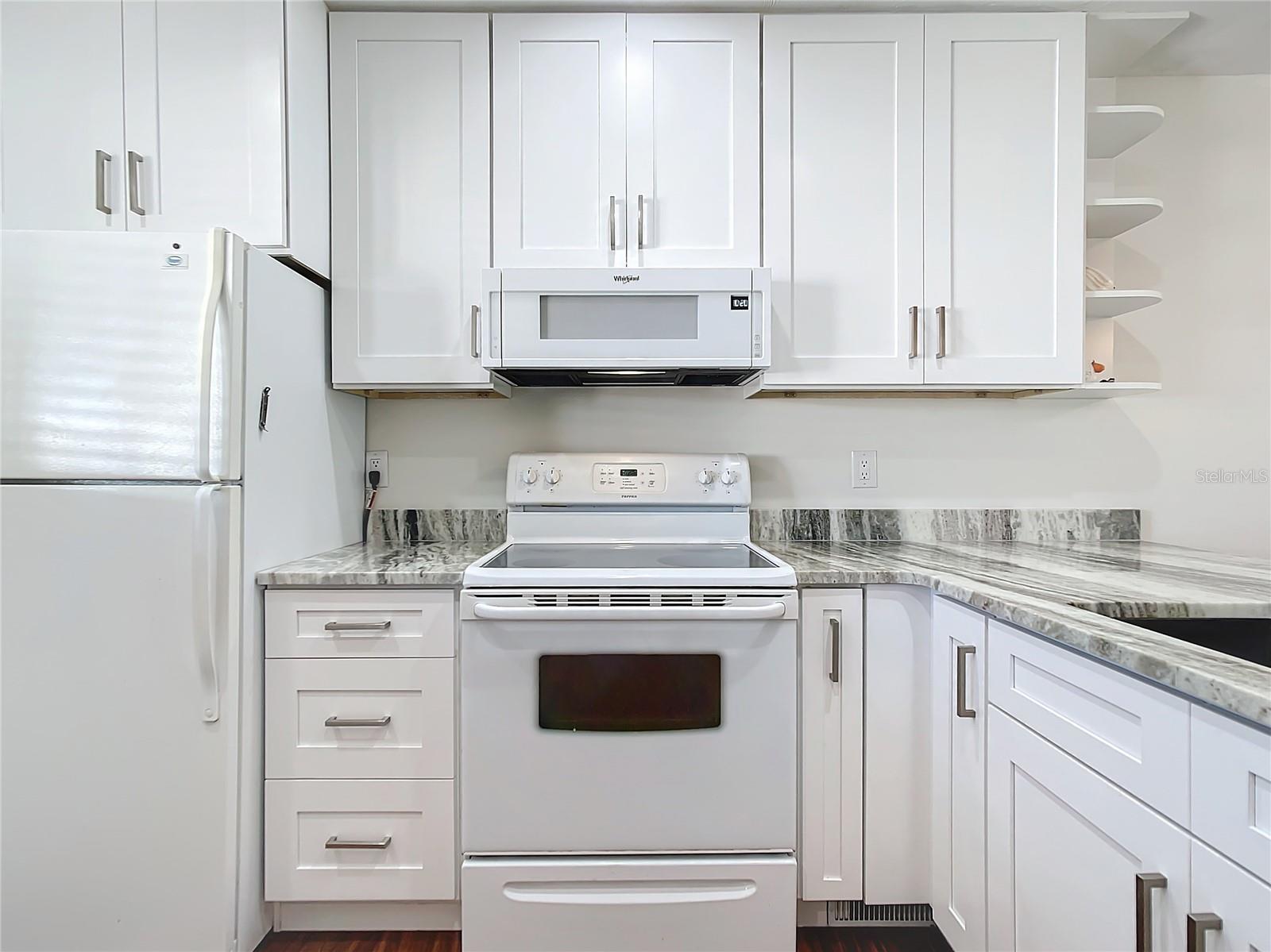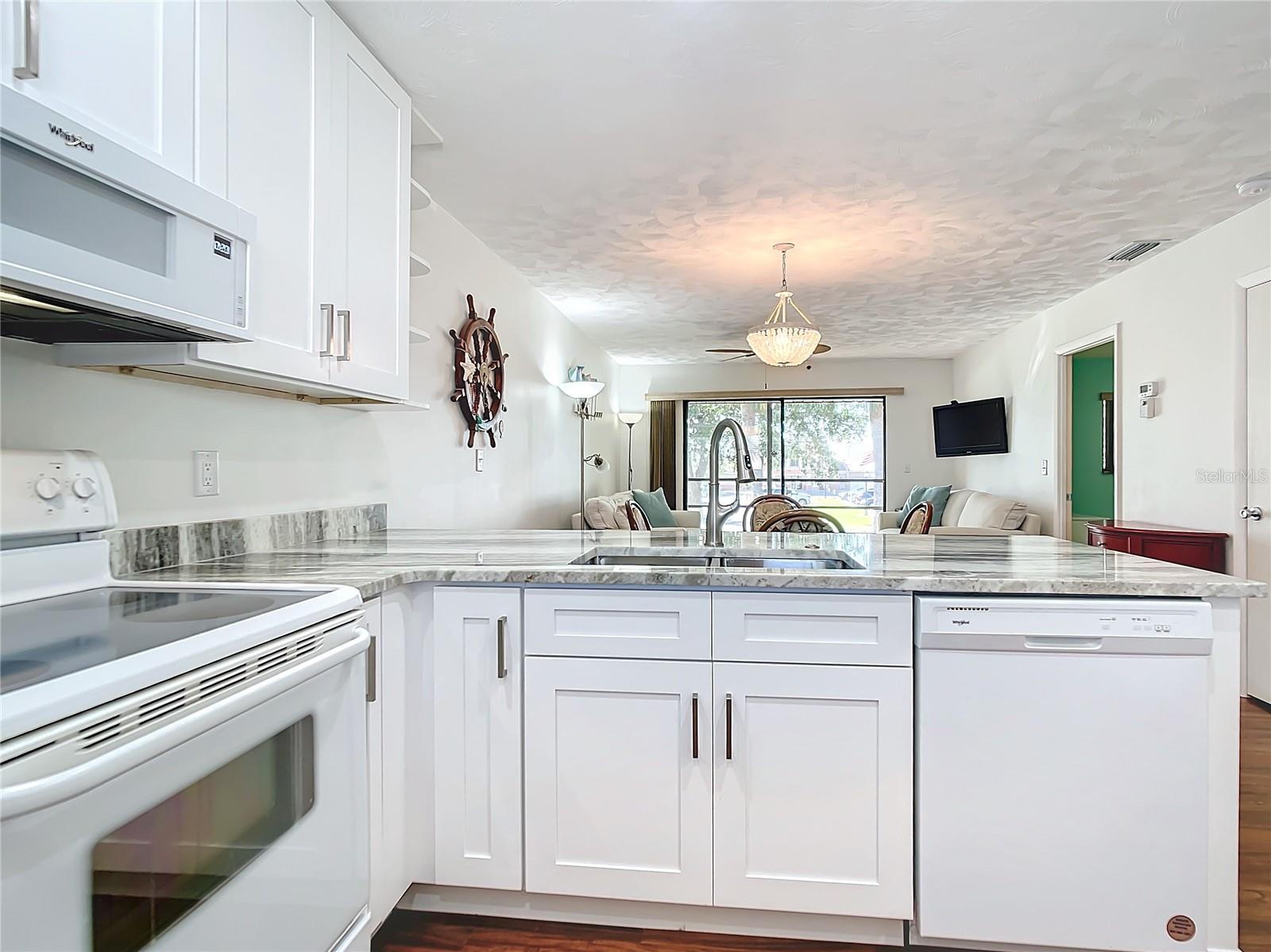 HUGE price reduction on this 2-bedroom, 2-bath condo is a true gem, ideally located just minutes from the beaches and the charming Historic Downtown Venice. It has been beautifully updated, with a remodeled kitchen featuring 42" shaker cabinets, a large granite countertop, and a farmhouse sink, all opening to the spacious living area—perfect for entertaining and family gatherings. The new luxury vinyl plank flooring flows seamlessly throughout the kitchen and living areas, adding to the modern aesthetic. The split floor plan offers privacy for guests, while the primary bedroom boasts generous storage space with a large walk-in closet. For added convenience, there's no need to step outside for laundry, as the full-size washer and dryer are located on the lanai. The building itself is well-maintained, with a new roof installed in 2019 and an HVAC system replaced in 2017. Recent updates include a new dryer, microwave, dishwasher, and disposal (all 2024). The low HOA fees cover high-speed internet, DirectTV Streaming, clubhouse access, a pool, water, pest control, and grilling areas—leaving only the electric bill for you to manage. Whether you're looking for a relaxing retreat or a full-time home, this condo offers everything you need in a fantastic location!