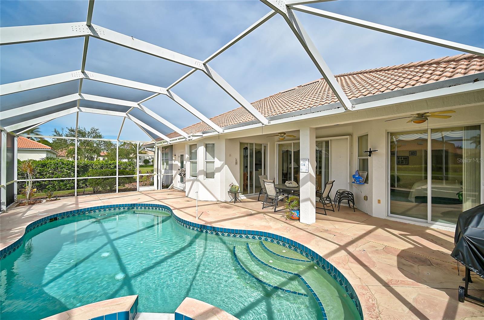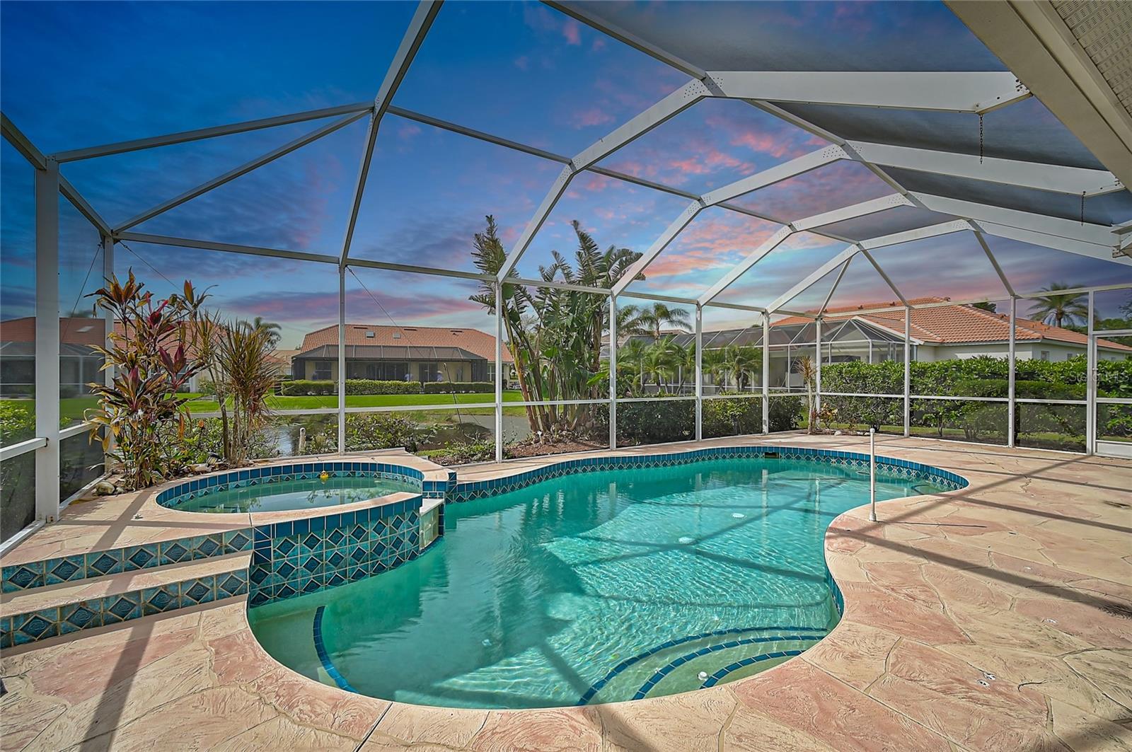 New and Improved Price! Welcome to your dream home in the highly sought-after Venetia community in Venice, Florida. From the moment you arrive, the lushly landscaped exterior sets the tone for the elegance and comfort that awaits inside. This stunning 3-bedroom, 2-bathroom residence features a spacious open-concept living and dining area, perfect for entertaining and creating lasting memories. The living room is enhanced with built-in shelves that provide both charm and functionality, ideal for displaying books, art, or cherished keepsakes. The kitchen overlooks the living space and is truly a chef’s delight, complete with ample counter space, bar seating, a pantry, and a cozy breakfast nook with serene views of the sparkling pool. The primary suite is a peaceful retreat, featuring sliding glass doors that open to the pool, allowing soft natural light to flood the room. With two walk-in closets and an en suite bathroom boasting dual sinks, a walk-in shower, and a linen closet, this suite offers both luxury and convenience. On the opposite side of the home, two additional bedrooms provide comfort and privacy, each with built-in closets and large windows. The second bathroom, located just outside these rooms, features a tub and direct pool access—perfect for guests. Throughout the home, a beautiful combination of carpet, tile, and wood flooring adds warmth and style to every space. Step outside into your private screened-in pool and spa area, where a covered patio overlooks a tranquil pond, creating the ideal setting for relaxation or entertaining. Additional features include a well-equipped laundry room with cabinet storage and a spacious 2-car garage for all your storage needs. Venetia offers a true resort-style lifestyle with amenities such as a clubhouse, shuffleboard, tennis courts, basketball courts, and a fitness center. This vibrant and social community is ideally located near shopping, dining, medical facilities, major roadways, CoolToday Park—the spring training home of the Atlanta Braves—and the exciting new Wellen Park development. And best of all, the stunning Gulf beaches are just a short drive away, where unforgettable sunsets await. Don’t miss the opportunity to make this exceptional home yours! ¤ Please see 3D Tour and Video ¤
