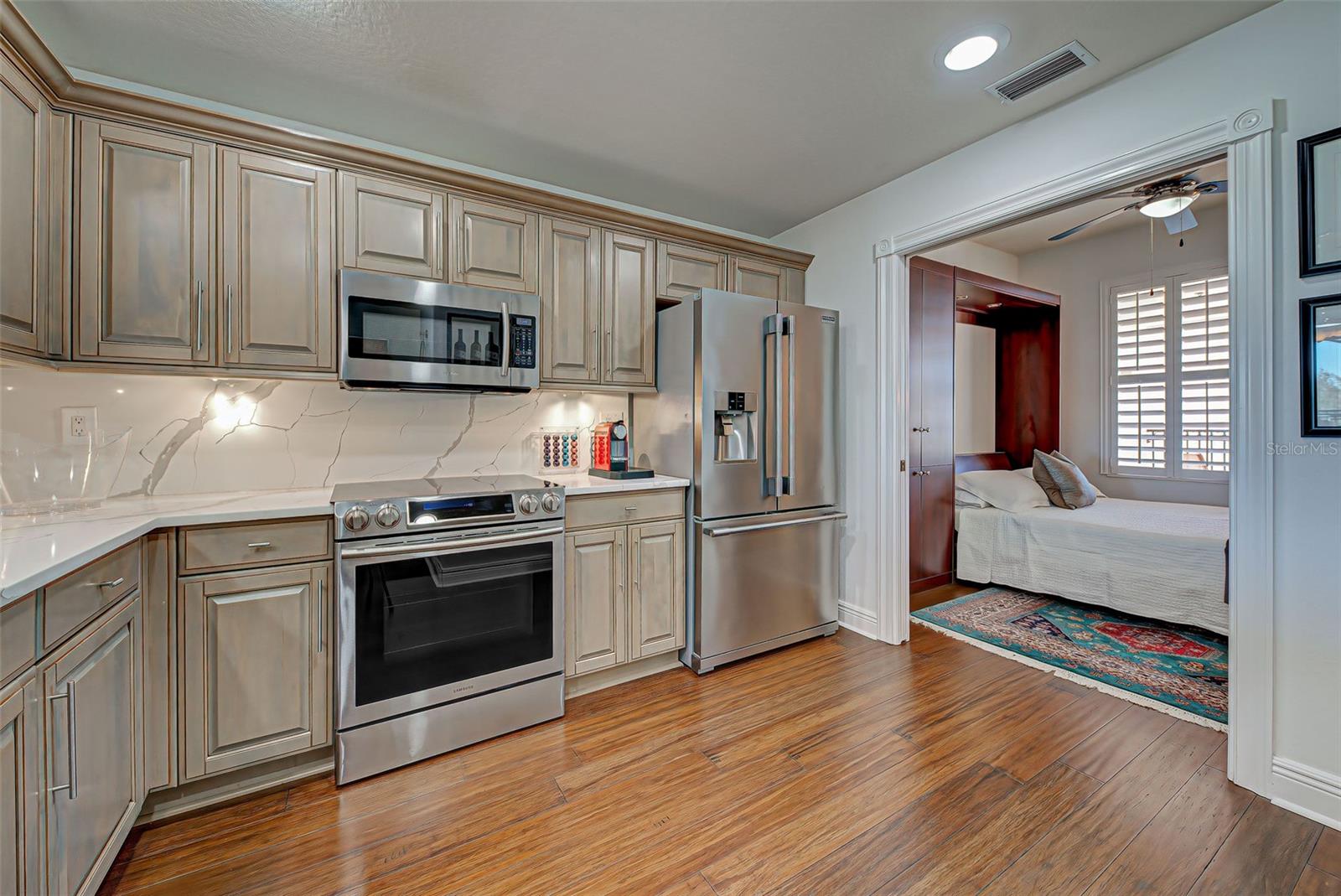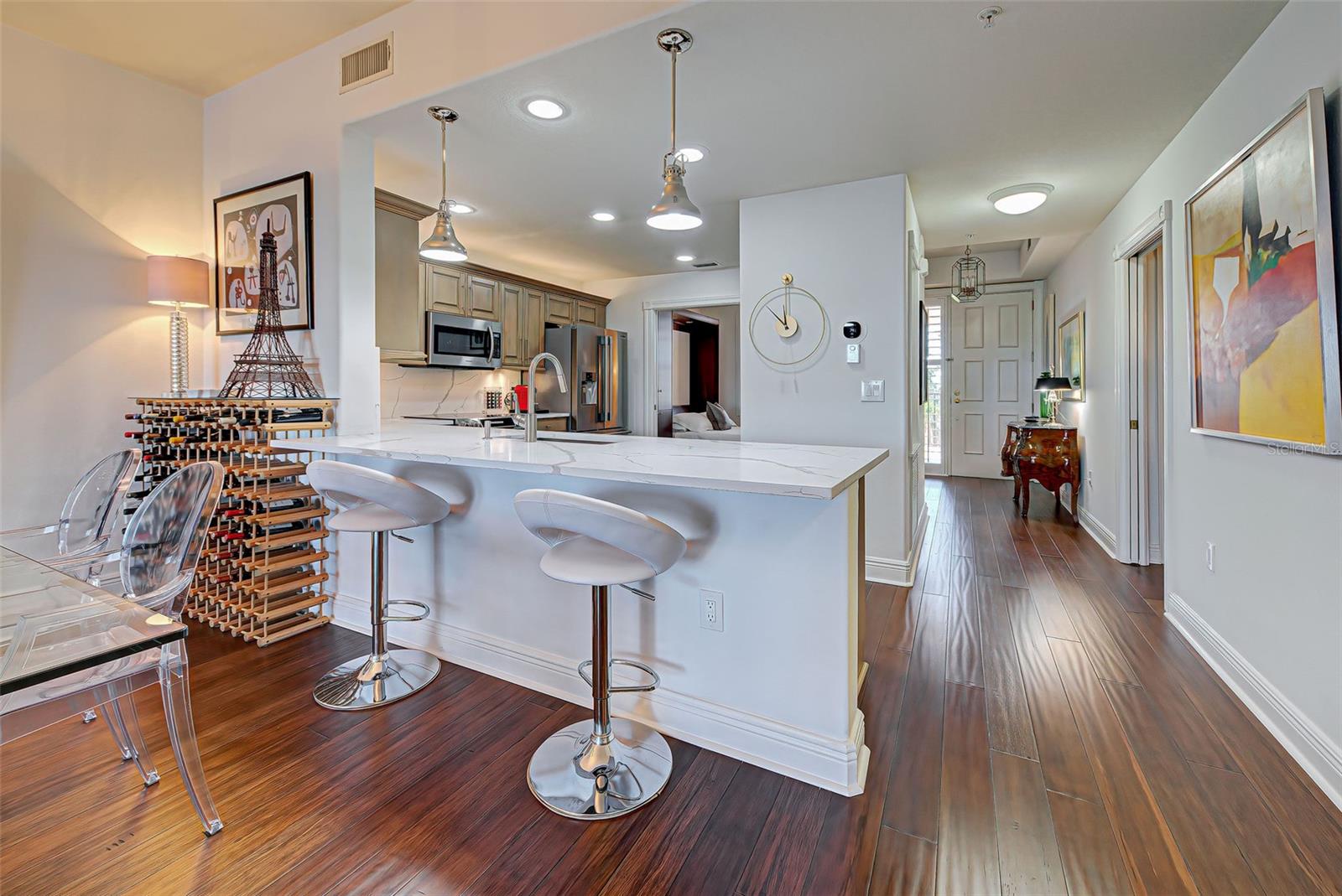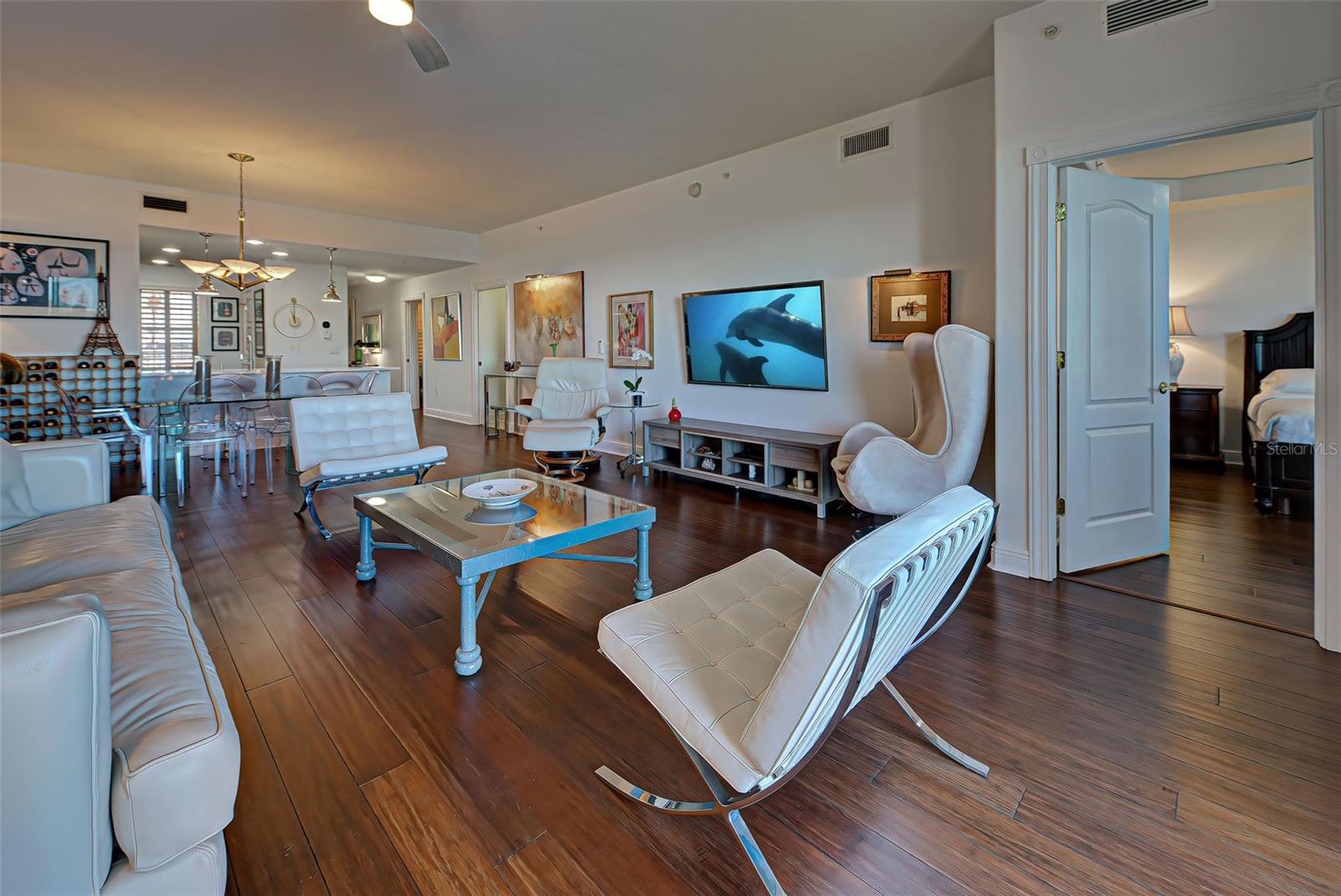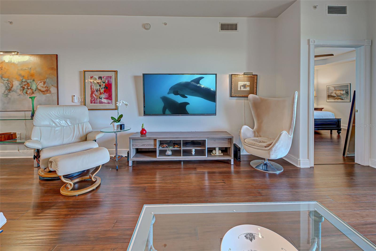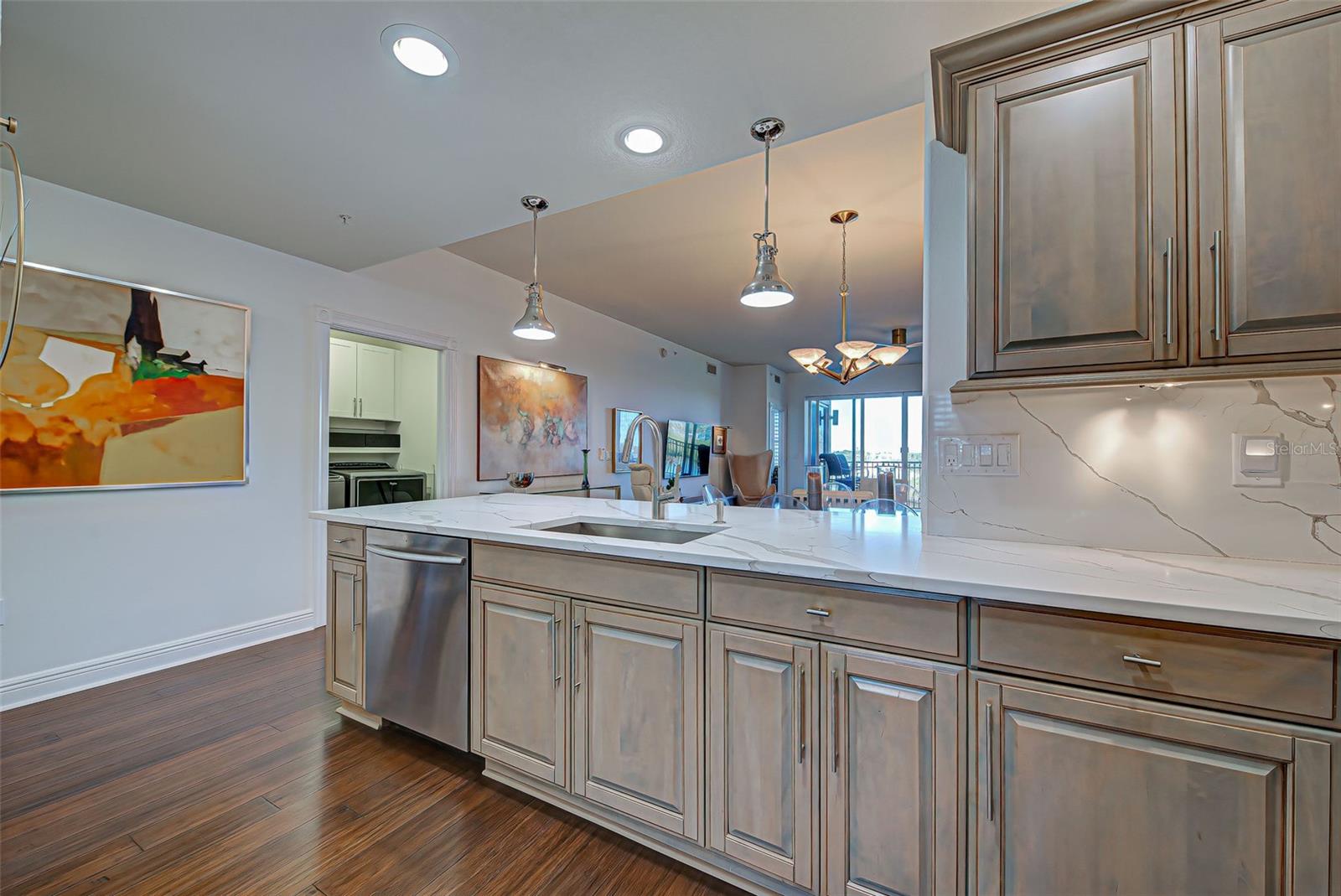 THE WATERFRONT ON VENICE ISLAND is located along the banks of the Intracoastal Waterway and features terrific views of the boats touring the ICW What an amazing place to call home. This 3rd floor condo has it all! This complex represents the epitome of the "Island lifestyle" with its' proximity to downtown Venice and all the fabulous amenities the Island has. Just a few blocks to the Venice Theater, the weekly Farmer's Market and historic Venice Avenue with all it's boutiques and great restaurants. The popular Legacy Trail bicycle route has access right from the complex. The Art Center, Community Center, Public Library and Performing Arts Center are located within a six block radius and the famous Venice beach is just at the end of our downtown region. Exquisitely designed, professionally decorated and meticulously maintained, this condo is sure to please those with even the most discerning taste. Bamboo floors have been installed through out and you will love the beautifully updated kitchen with Quartz countertops and back splash that overlooks an open living room and dining room, with impressive water views. The large sliding glass doors in the living room and primary bedroom open up to your private patio overlooking the Intracoastal waterway (ICW) where you can enjoy watching boats idle by and an array of wildlife including dolphins and birds. The condo has a split floor plan with two bedrooms, a den and two bathrooms. The primary bedroom features an en suite bathroom, complete with walk-in shower, dual sinks, a soaking tub, water closet and a spacious walk-in closet. Your guest bedroom has easy access to the second bathroom, and if you have additional quest, the Den has a Murphy bed and you can close the pocket doors for added privacy. NEW HVAC INSTALLED 3/2025!! THE WATERFRONT ON VENICE ISLAND is PET FRIENDLY, and this unit has under building assigned parking. The complex also features a day dock for you to tie up your boat and features a kayak and paddle boat launch. The complex has kayak storage on the property as well. If you are seeking a peaceful sanctuary with all that the ISLAND OF VENICE has for you, then this is it! Furnishings available. Owners have some personal items that will not be included.