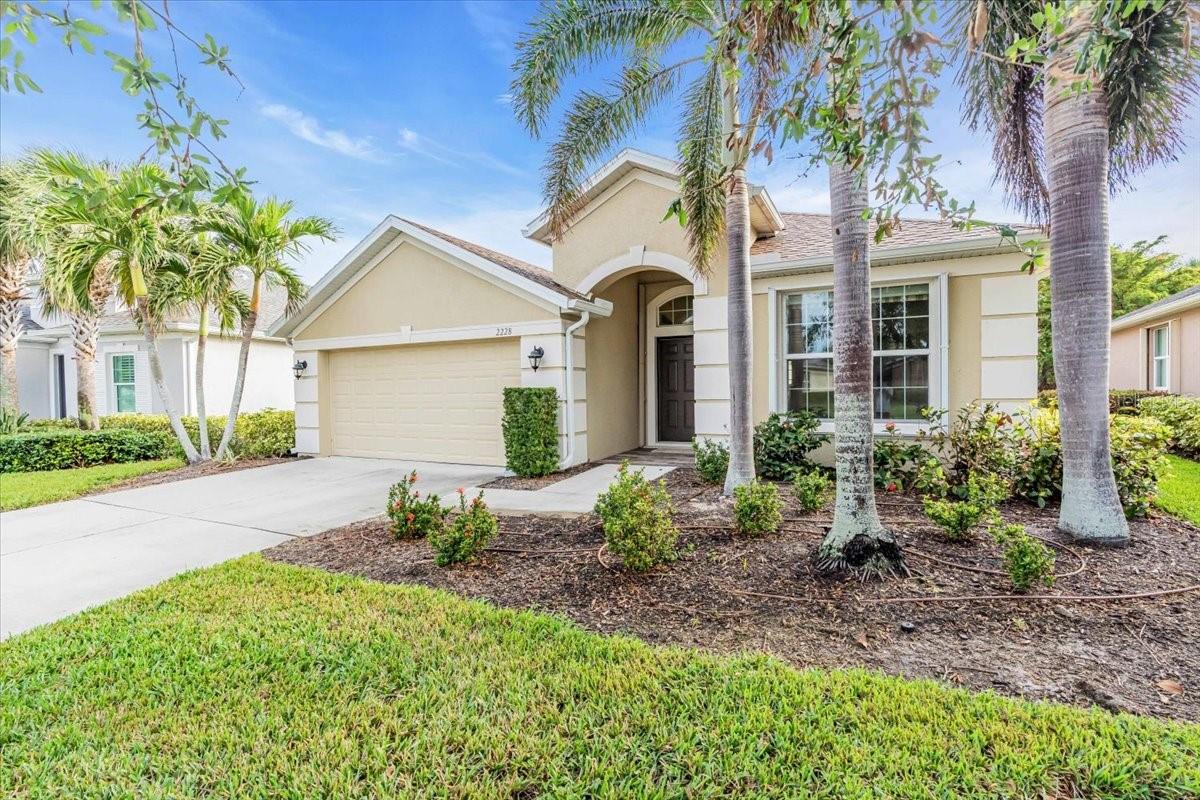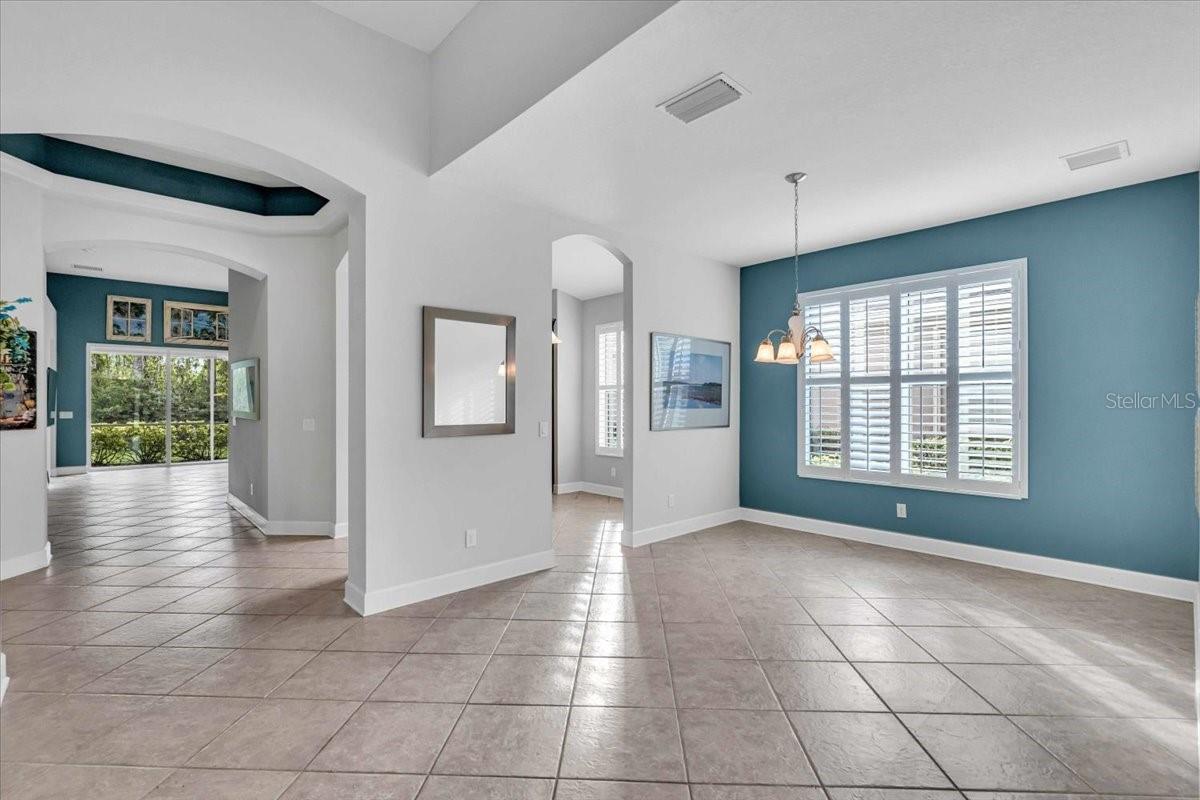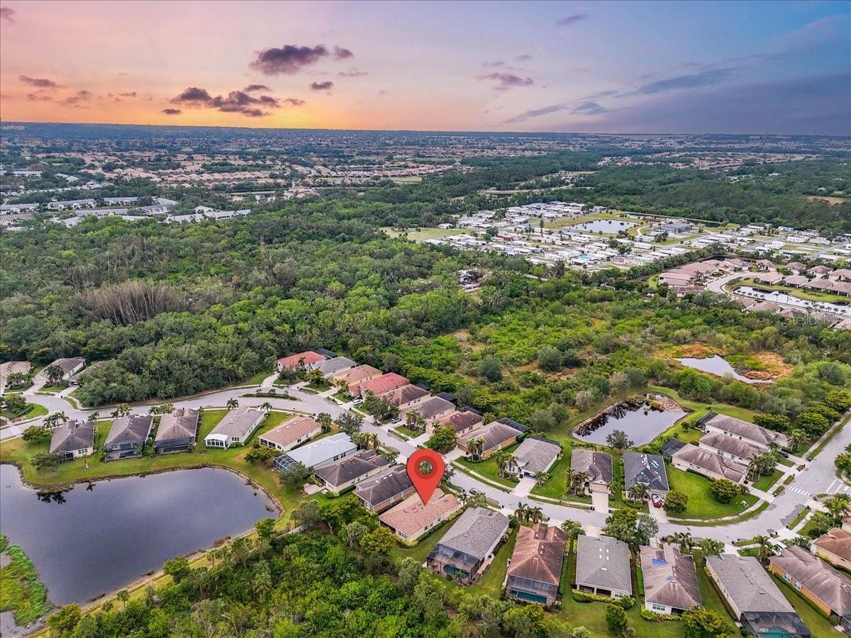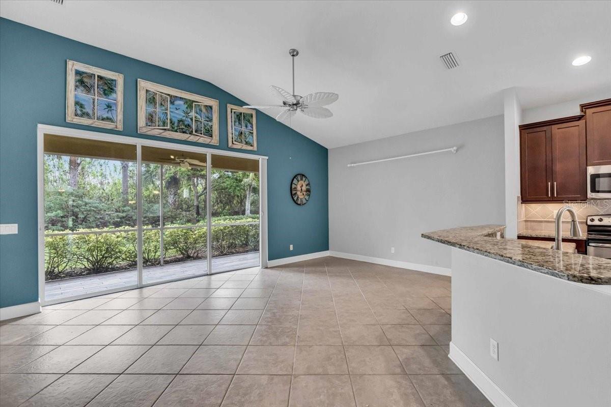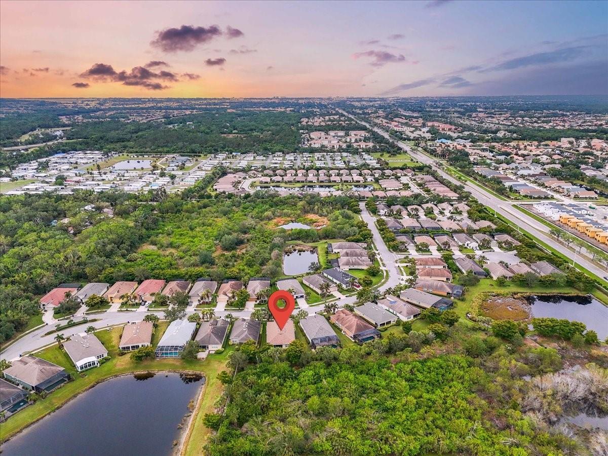 This charming 3-bedroom, 2-bathroom home, nestled in the sought-after Verona Reserve, offers an ideal blend of comfort, style, and convenience. The spacious interior features tile flooring throughout the living areas and bathrooms, with cozy carpet in the bedrooms for added warmth. The heart of the home is the large, open kitchen, complete with beautiful granite countertops, shaker-style cabinets, and a cozy breakfast nook that flows seamlessly into the family room with soaring high ceilings, creating a perfect space for both daily living and entertaining. Off the foyer, you’ll find a separate dining room, ideal for hosting formal meals or special gatherings. The home also includes a dedicated office/den space, perfect for remote work or quiet relaxation. A convenient laundry room adds to the home's functionality, and plantation shutters provide both style and privacy. The master bedroom offers a peaceful retreat, featuring two walk-in closets and an ensuite bathroom with dual sinks, a soaking tub, and a walk-in shower. It’s a perfect space to unwind after a long day. Outside, the screened lanai offers a tranquil setting to enjoy the serene preserve views, along with a corner glimpse of the lake, making it a peaceful place to relax. This home is just minutes from the historic downtown Venice, pristine beaches, shopping, dining, entertainment, I-75, and hospitals, combining a serene lifestyle with easy access to all the essentials. With its spacious layout, desirable location, and beautiful finishes, this home is truly a gem in Verona Reserve.
