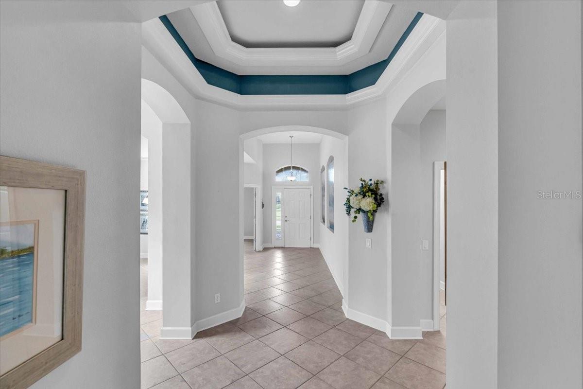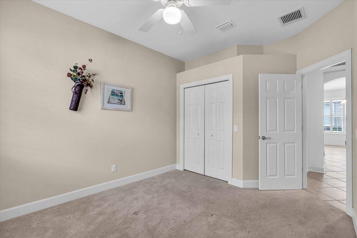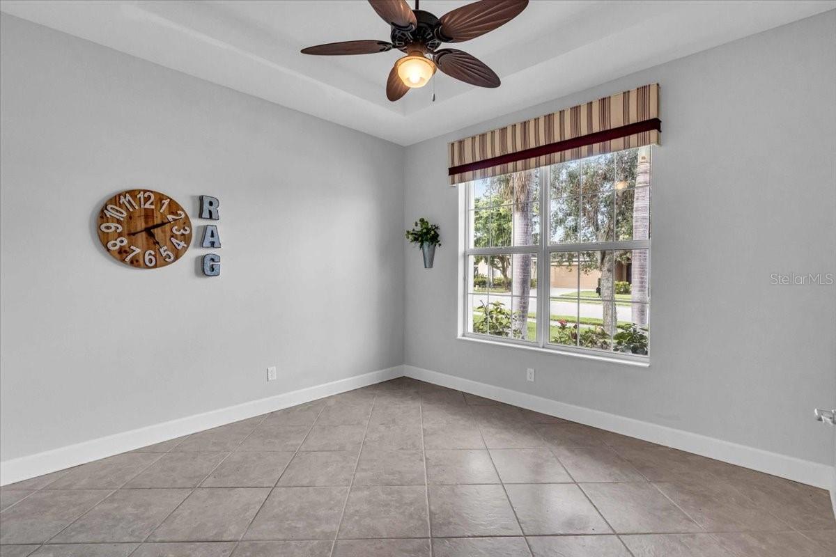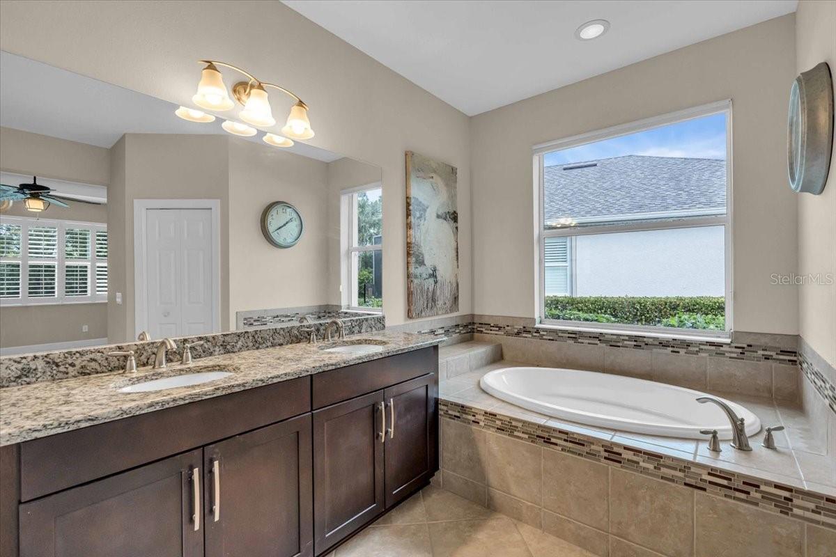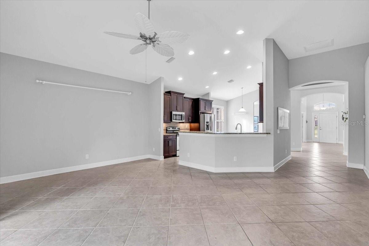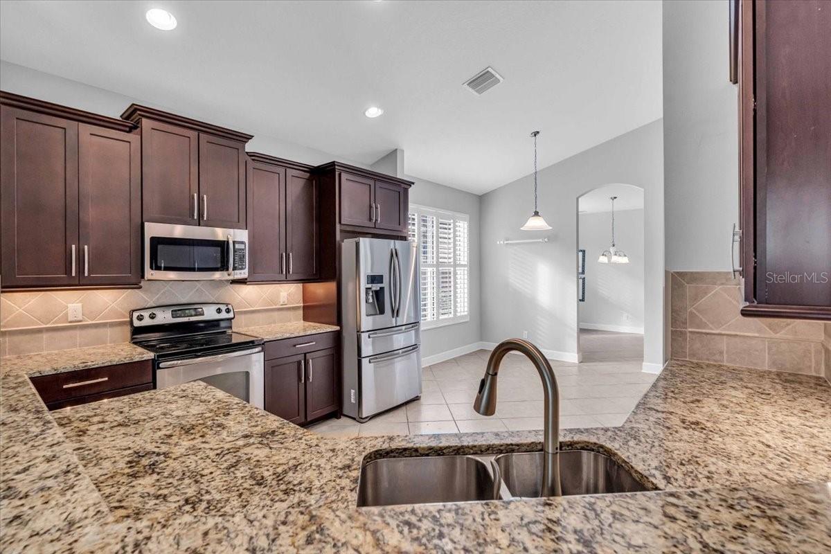This charming 3-bedroom, 2-bathroom home, nestled in the sought-after Verona Reserve, offers an ideal blend of comfort, style, and convenience. The spacious interior features tile flooring throughout the living areas and bathrooms, with cozy carpet in the bedrooms for added warmth. The heart of the home is the large, open kitchen, complete with beautiful granite countertops, shaker-style cabinets, and a cozy breakfast nook that flows seamlessly into the family room with soaring high ceilings, creating a perfect space for both daily living and entertaining. Off the foyer, you’ll find a separate dining room, ideal for hosting formal meals or special gatherings. The home also includes a dedicated office/den space, perfect for remote work or quiet relaxation. A convenient laundry room adds to the home's functionality, and plantation shutters provide both style and privacy. The master bedroom offers a peaceful retreat, featuring two walk-in closets and an ensuite bathroom with dual sinks, a soaking tub, and a walk-in shower. It’s a perfect space to unwind after a long day. Outside, the screened lanai offers a tranquil setting to enjoy the serene preserve views, along with a corner glimpse of the lake, making it a peaceful place to relax. This home is just minutes from the historic downtown Venice, pristine beaches, shopping, dining, entertainment, I-75, and hospitals, combining a serene lifestyle with easy access to all the essentials. With its spacious layout, desirable location, and beautiful finishes, this home is truly a gem in Verona Reserve.
