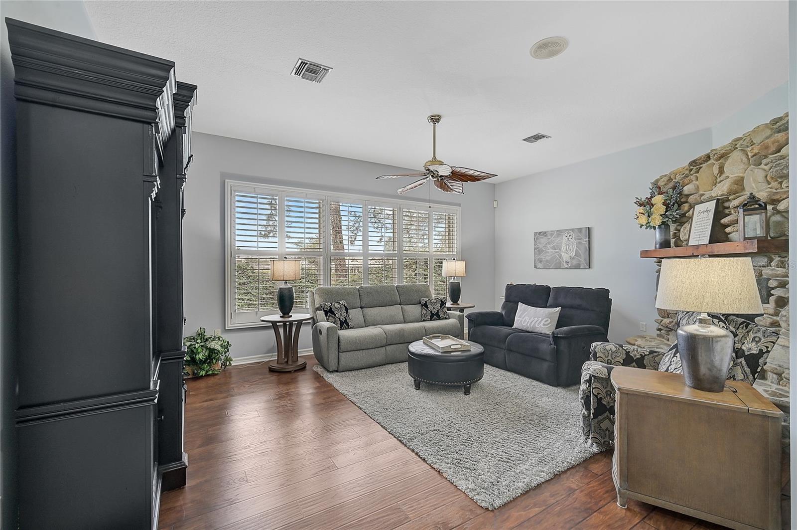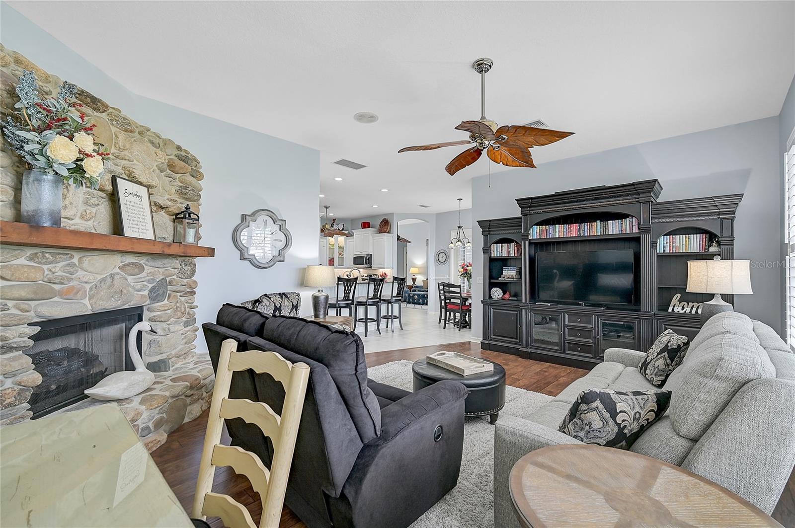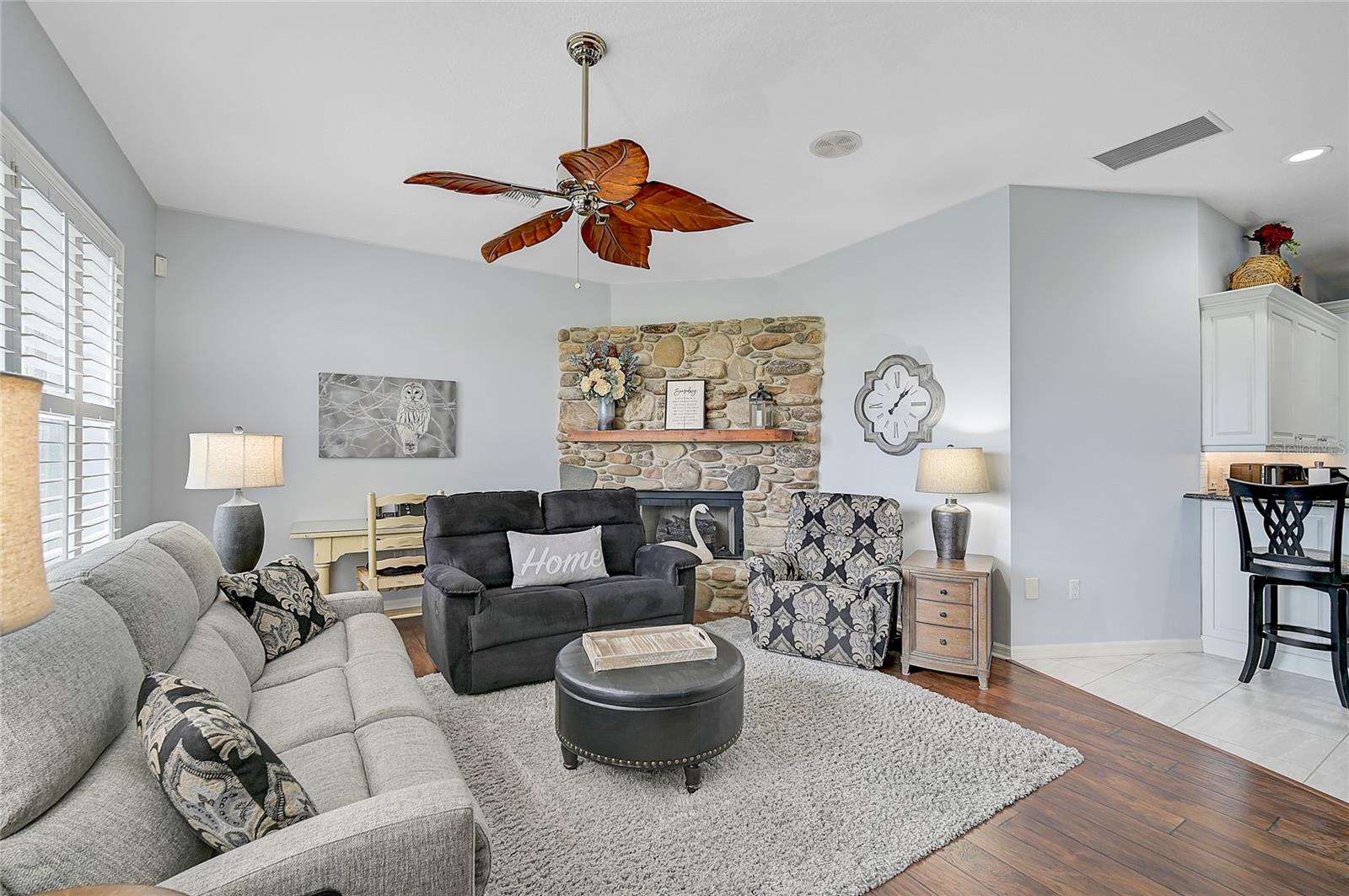 New and Improved Price! Welcome to your dream home in the coveted gated community of Venetia. This beautifully upgraded 3-bedroom, 2-bathroom residence is a perfect blend of style, comfort, and functionality. From the moment you step through the front door, you're greeted by a formal living and dining room that radiates charm and sophistication, with tranquil views of the backyard creating a relaxing ambiance. At the heart of the home lies a stunning kitchen, designed with entertaining in mind. It features a spacious island, breakfast bar, abundant cabinetry, and sleek stainless-steel appliances—everything you need to create and enjoy delicious meals. The inviting layout flows seamlessly into the family room, where a dramatic wood-burning fireplace with floor-to-ceiling stonework sets the tone for cozy gatherings. The primary bedroom serves as a private retreat with rich laminate flooring, large windows that welcome natural light, and two expansive walk-in closets. You can step directly onto the patio from your suite or unwind in the luxurious ensuite bathroom, which offers a soaking tub, separate shower, and dual sinks. On the opposite side of the home, two additional bedrooms with built-in closets share a well-appointed second bathroom featuring a spacious shower, making this split floor plan ideal for privacy and comfort. Step outside to the screened-in patio—a perfect space for enjoying Florida’s sunshine year-round. The home's exterior boasts lush landscaping, while practical features like an extended two-car garage, hurricane shutters, and a dedicated laundry room add even more convenience. Living in Venetia means enjoying resort-style amenities including a clubhouse, shuffleboard, tennis and basketball courts, and a fully equipped fitness center. This vibrant and social community is conveniently located near shopping, dining, medical facilities, and major roadways, with quick access to CoolToday Park, home of the Atlanta Braves Spring Training, and the exciting new Wellen Park development. And best of all, the breathtaking Gulf Coast beaches are just a short drive away—perfect for experiencing those unforgettable Florida sunsets. Don’t miss your chance to make this exquisite home your own—schedule your private tour today! ¤ Please see 3D Tour and Video ¤