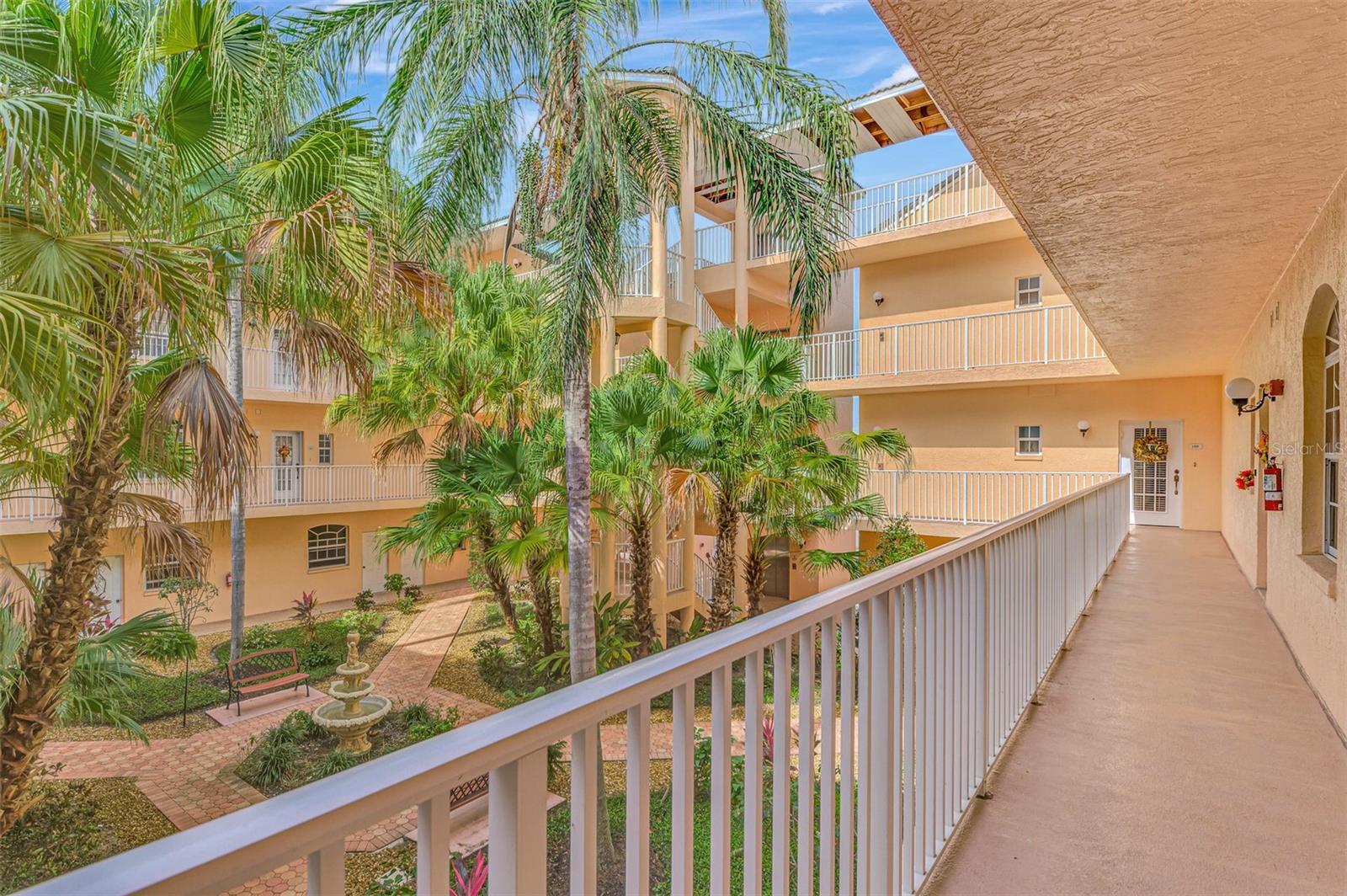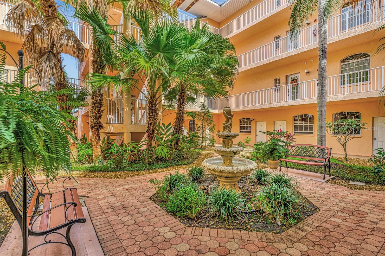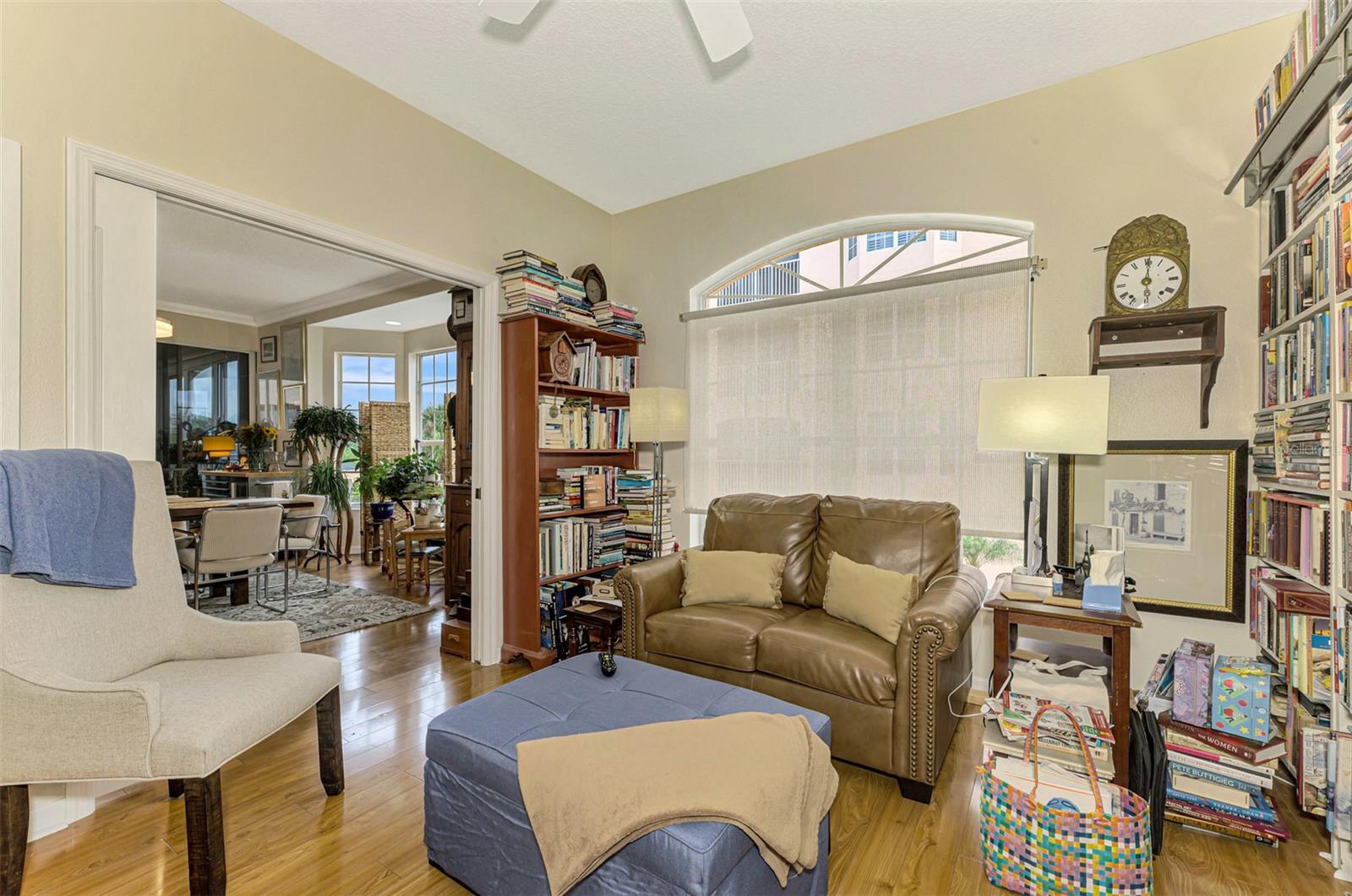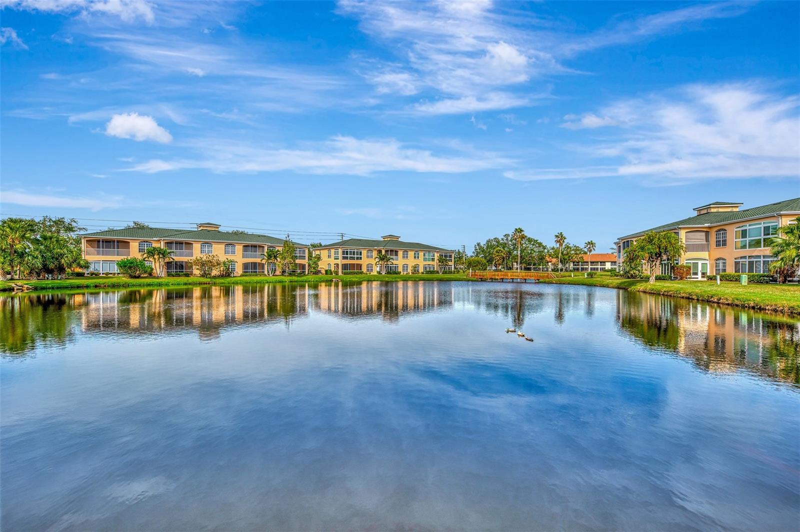 Appealing two bedroom, plus den, two bath condo with a two car garage, in desirable Courtyards at Gondola Park. Your condo has a spacious, open floor plan, with beautiful water views from the large lanai. Classy wood floors in all areas except the kitchen and lanai. The kitchen features Quartz counter tops, stainless appliances, closet pantry and breakfast bar. Sliders from the master bedroom to your lanai. The third bedroom has been converted to a study/library. The condo does have a split bedroom floor plan that lets you shut off the entire side for your guests. The Courtyards at Gondola Park offer a large heated community pool and clubhouse and a kitchen, overlooking the lake. Tennis courts as well as two different fitness rooms, a craft/library room and a game room in different buildings. You are directly across the street from Capri Isles Golf Course. Walking distance to grocery store and shopping center. Within a few miles to downtown Venice and beautiful Venice Beach. Come and see this great buy!
