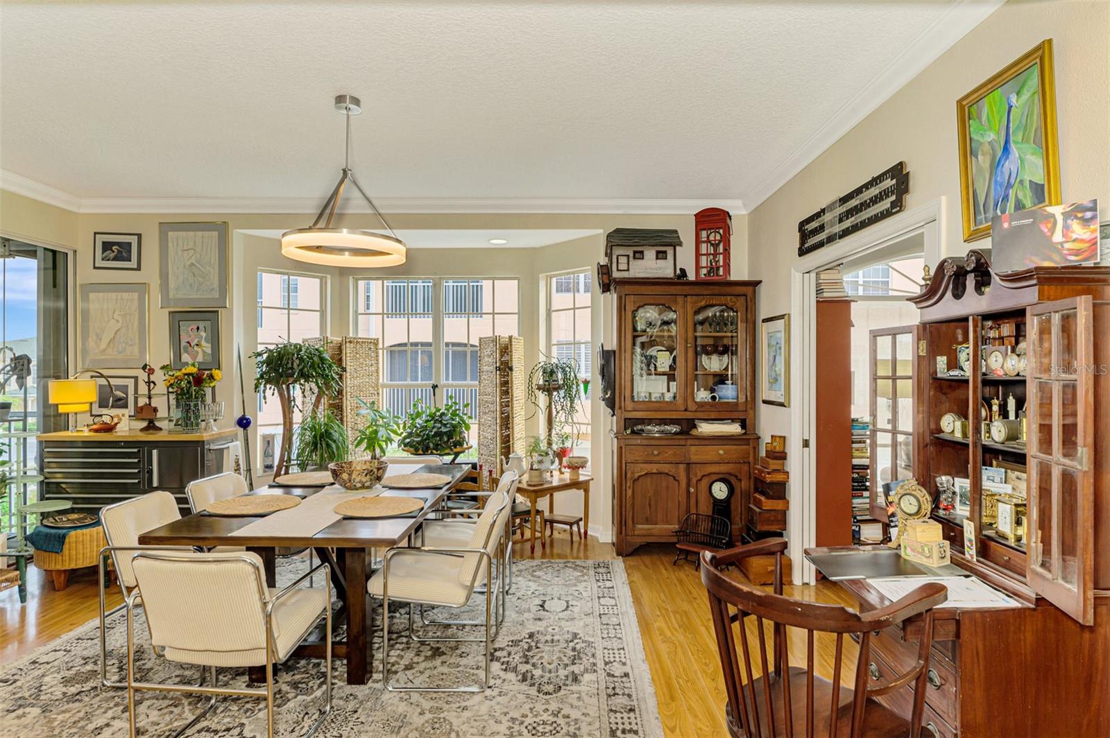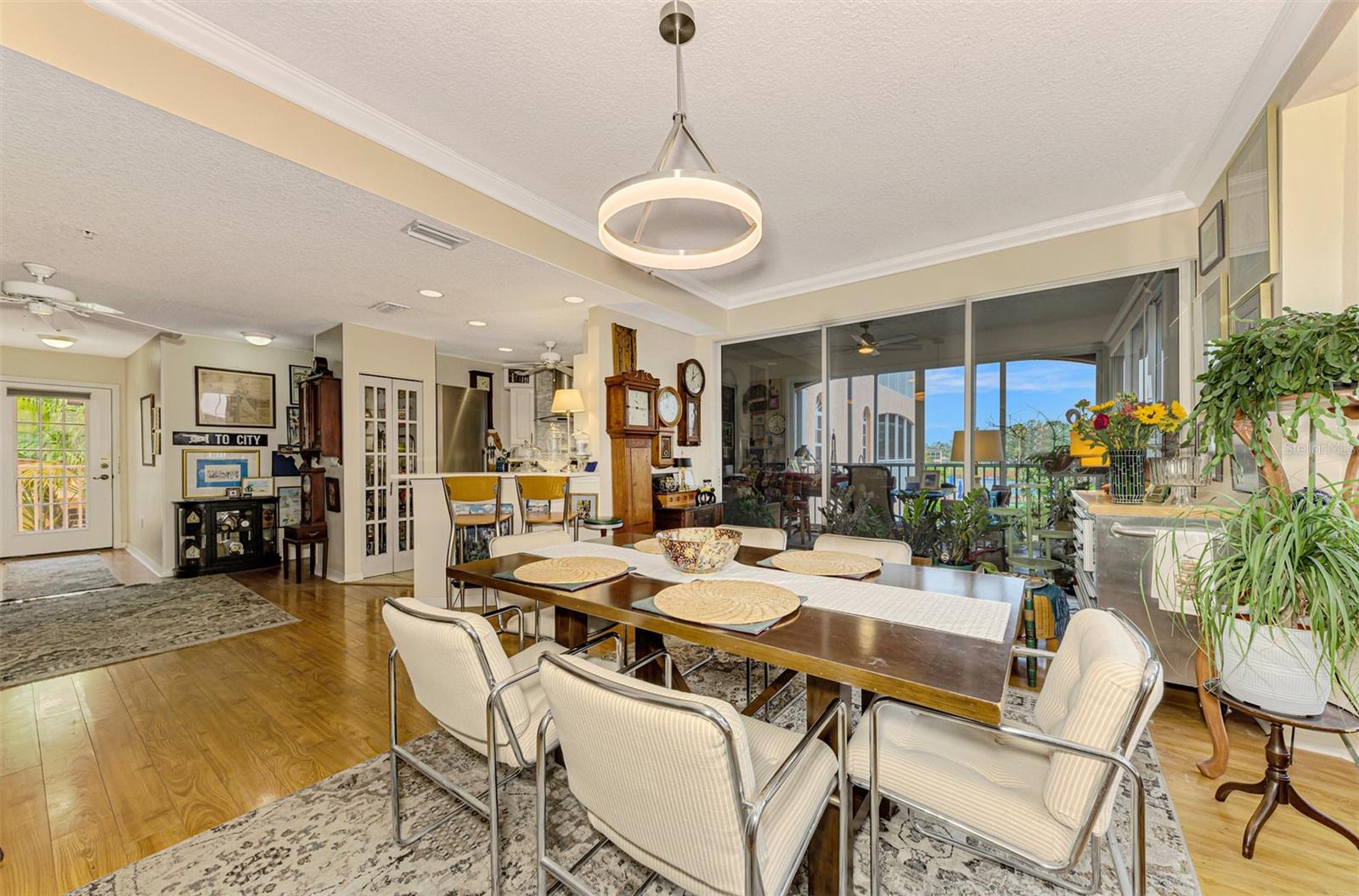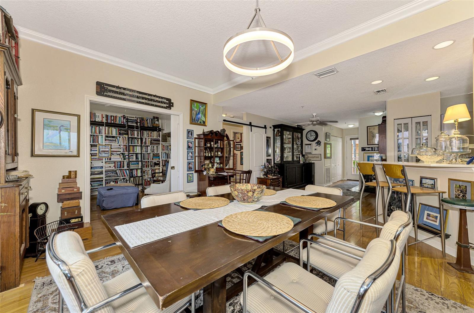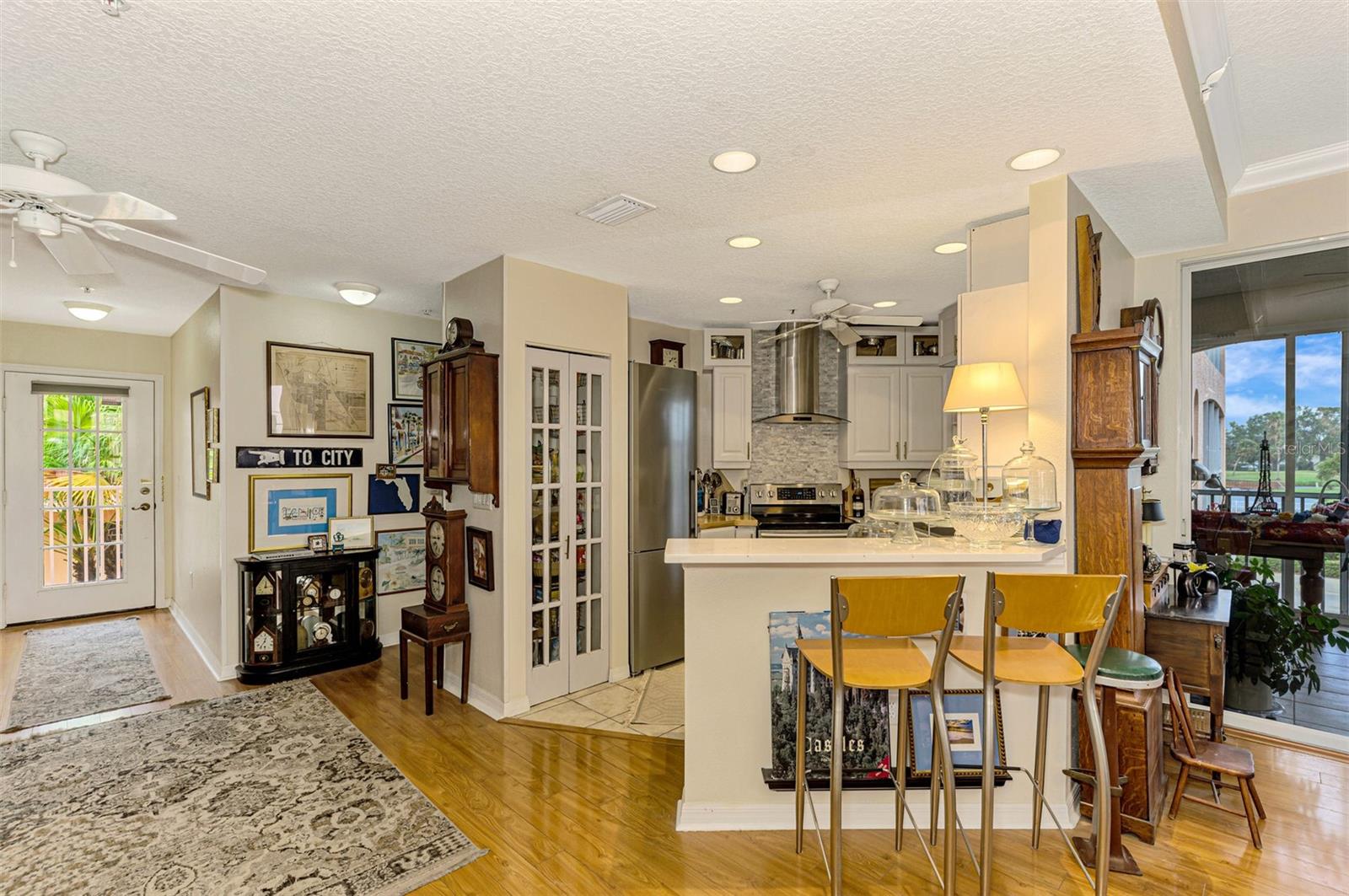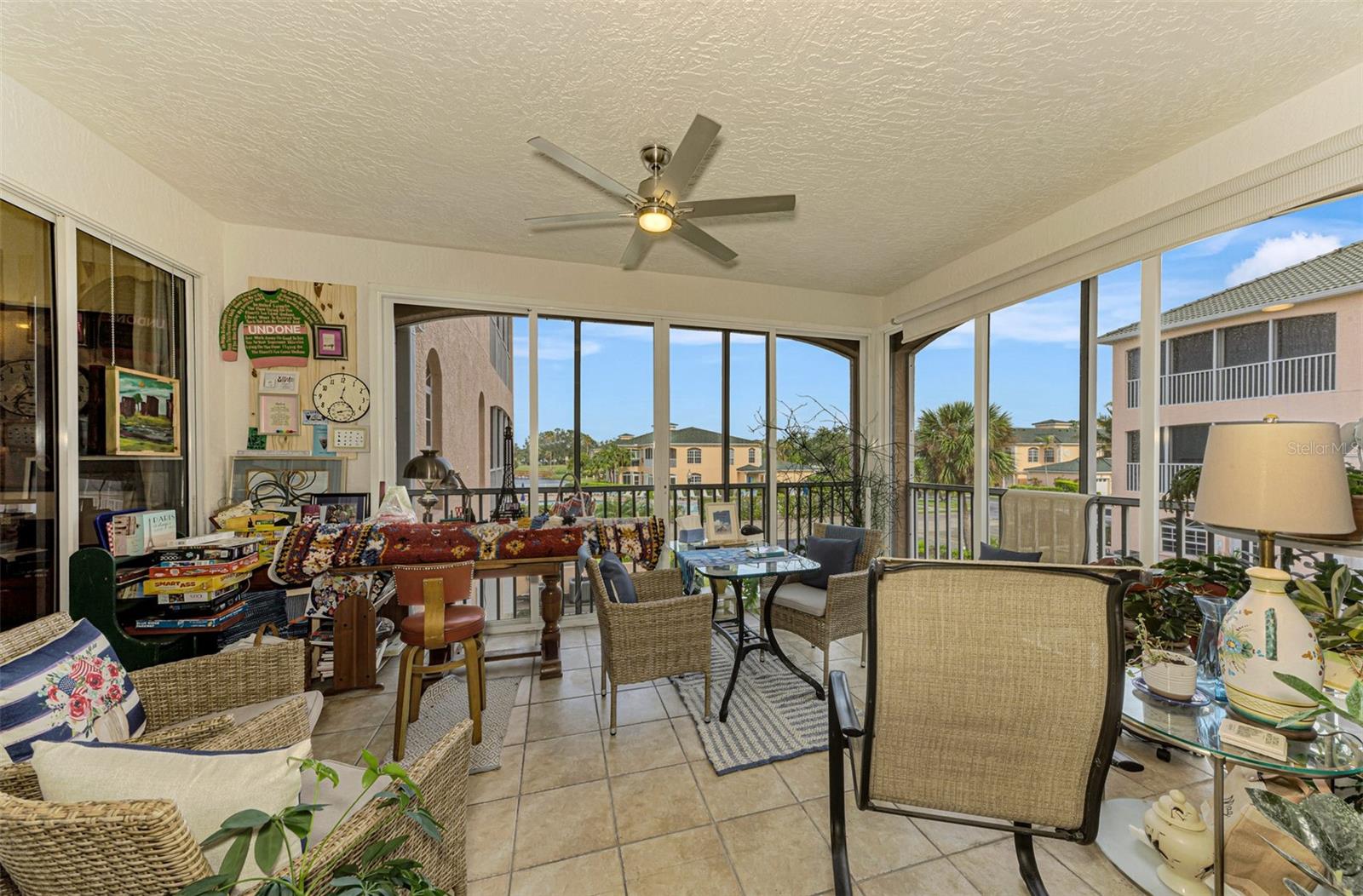 Appealing two bedroom, plus den, two bath condo with a two car garage, in desirable Courtyards at Gondola Park. Your condo has a spacious, open floor plan, with beautiful water views from the large lanai. Classy wood floors in all areas except the kitchen and lanai. The kitchen features Quartz counter tops, stainless appliances, closet pantry and breakfast bar. Sliders from the master bedroom to your lanai. The third bedroom has been converted to a study/library. The condo does have a split bedroom floor plan that lets you shut off the entire side for your guests. The Courtyards at Gondola Park offer a large heated community pool and clubhouse and a kitchen, overlooking the lake. Tennis courts as well as two different fitness rooms, a craft/library room and a game room in different buildings. You are directly across the street from Capri Isles Golf Course. Walking distance to grocery store and shopping center. Within a few miles to downtown Venice and beautiful Venice Beach. Come and see this great buy!