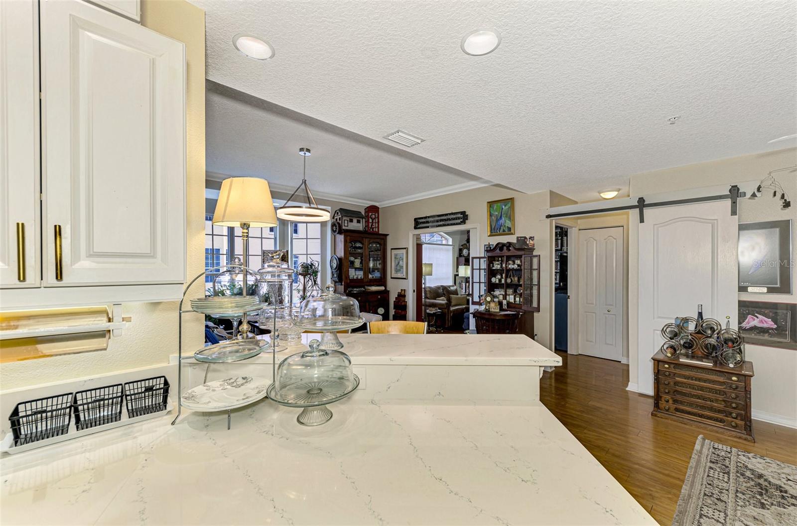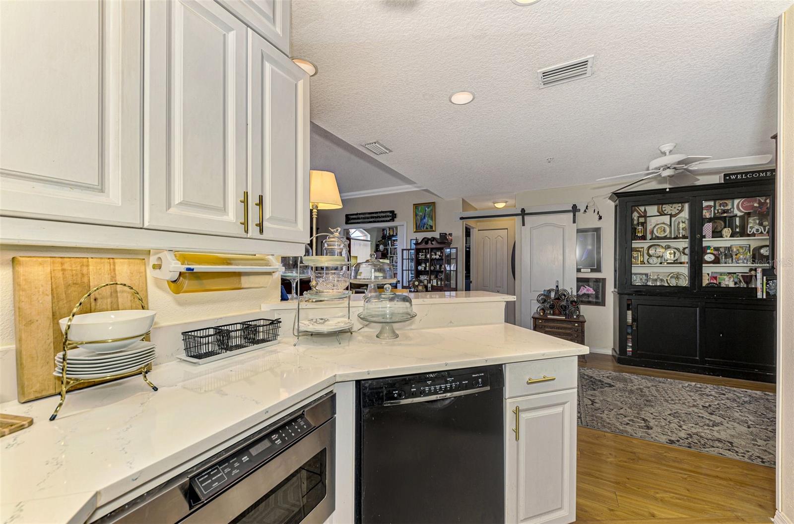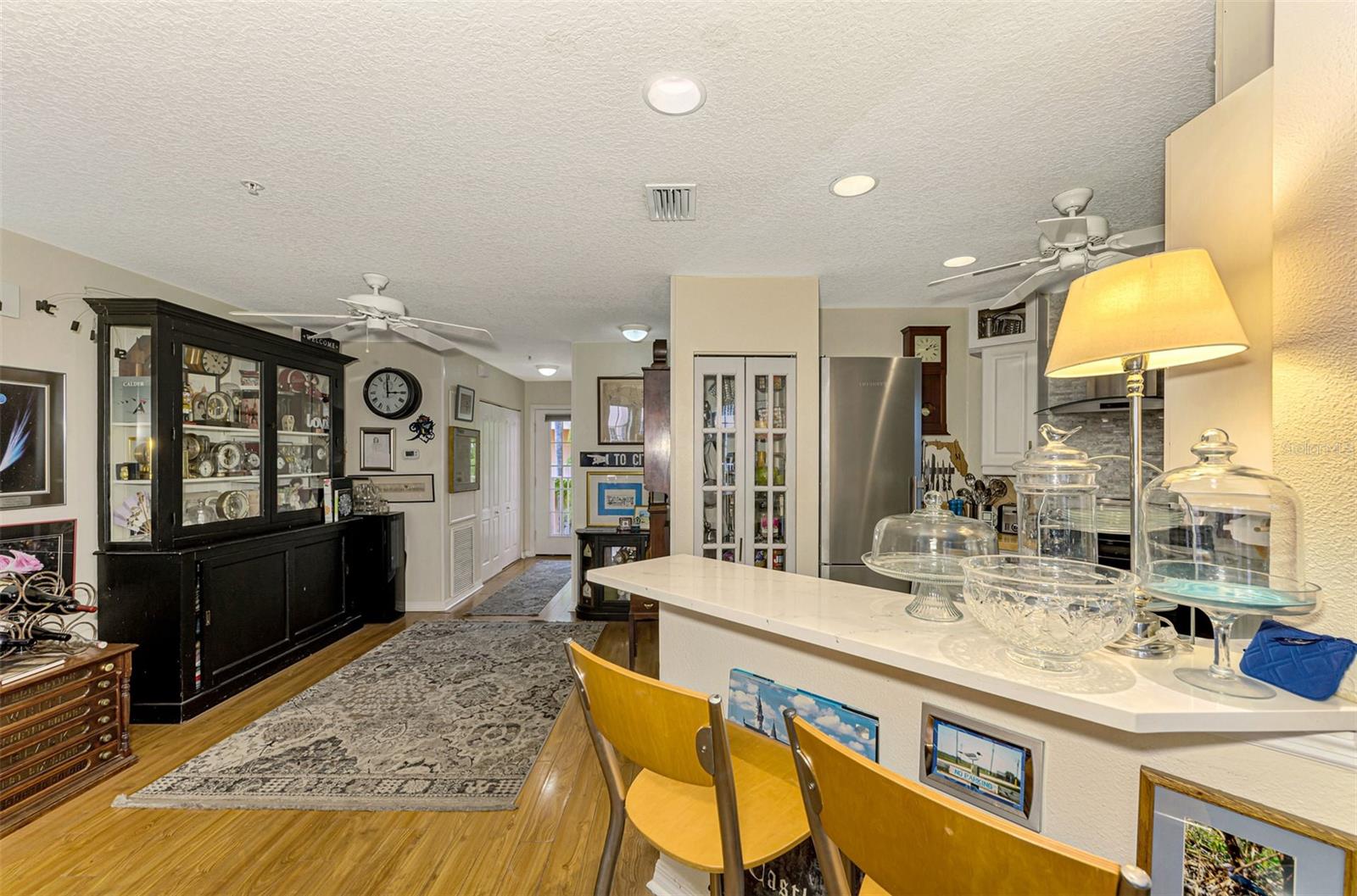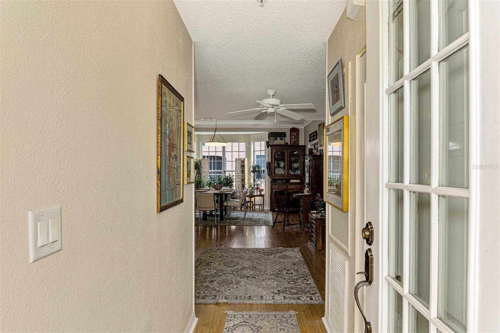 Appealing two bedroom, plus den, two bath condo with a two car garage, in desirable Courtyards at Gondola Park. Your condo has a spacious, open floor plan, with beautiful water views from the large lanai. Classy wood floors in all areas except the kitchen and lanai. The kitchen features Quartz counter tops, stainless appliances, closet pantry and breakfast bar. Sliders from the master bedroom to your lanai. The third bedroom has been converted to a study/library. The condo does have a split bedroom floor plan that lets you shut off the entire side for your guests. The Courtyards at Gondola Park offer a large heated community pool and clubhouse and a kitchen, overlooking the lake. Tennis courts as well as two different fitness rooms, a craft/library room and a game room in different buildings. You are directly across the street from Capri Isles Golf Course. Walking distance to grocery store and shopping center. Within a few miles to downtown Venice and beautiful Venice Beach. Come and see this great buy!