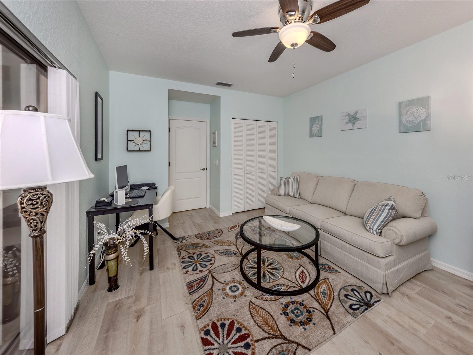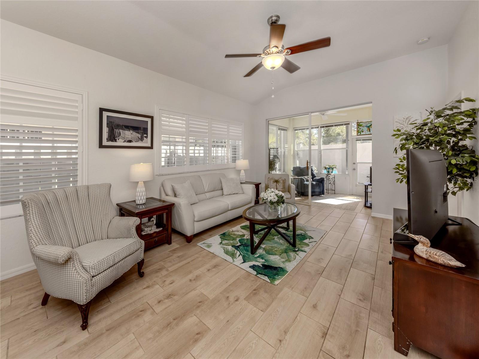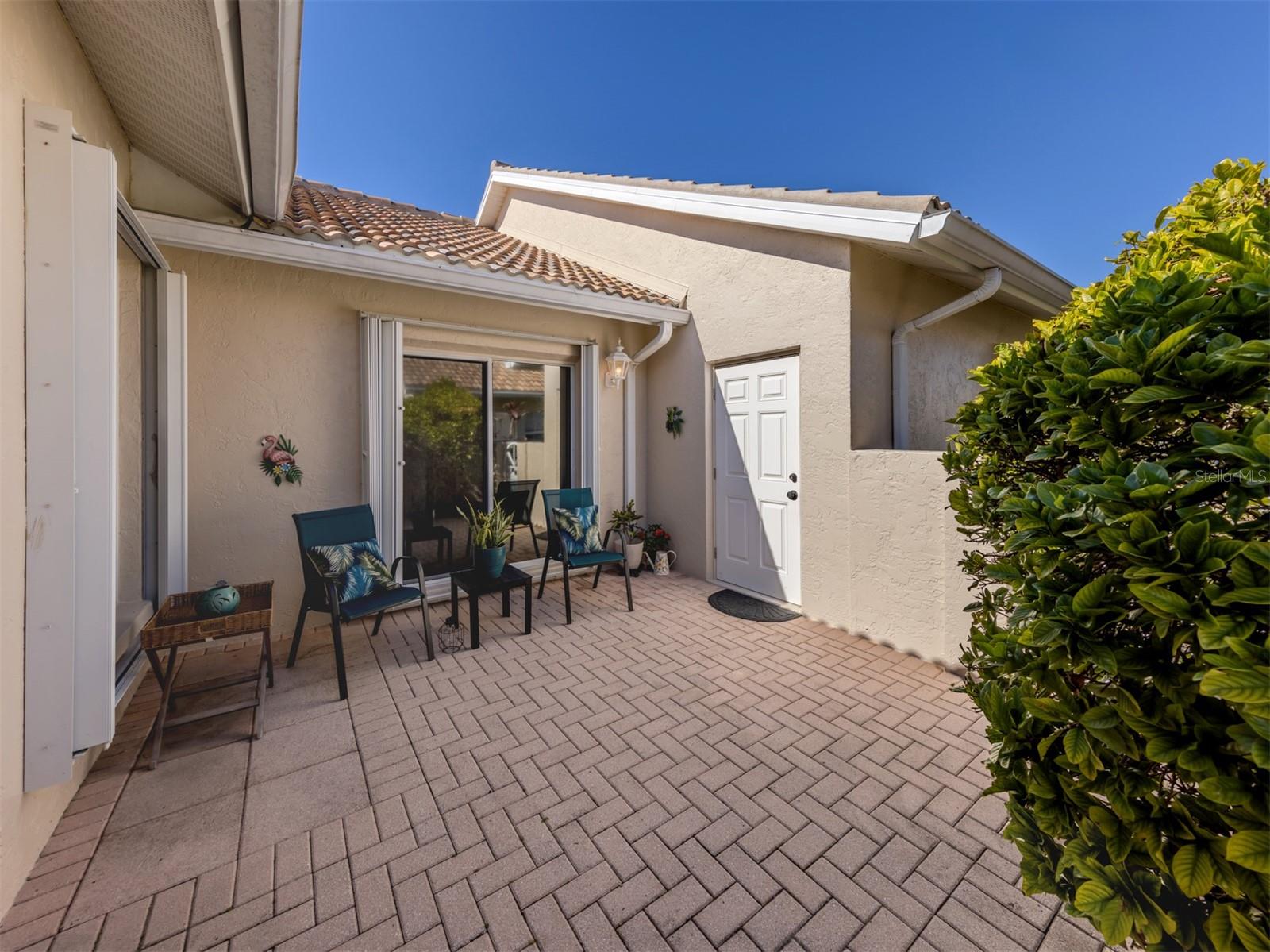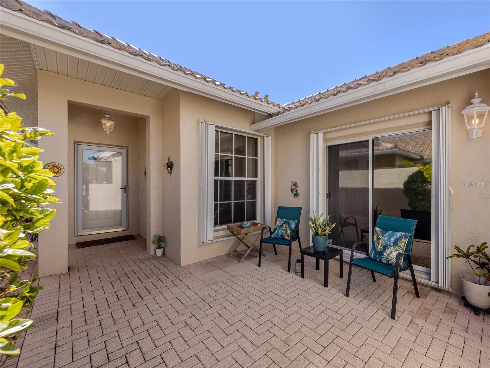 Berkshire Place Venice. Well maintained villa in this highly sought after gated community. LOCATION IS EVERYTHING! Conveniently located across from the pool! Soothing natural textures welcome you to this spacious home with 2 Bedrooms, 2 Bathrooms PLUS FAMILY ROOM/DEN/OFFICE or THIRD BEDROOM. Quiet and Private courtyard. Approximately 1,400 sq ft under air. NEW Tile Roof 2024 WITH TRANSFERRABLE WARRANTY. 2 CAR ATTACHED GARAGE. Upon entry you are welcomed with an abundance of NATURAL LIGHT, HIGH CEILINGS, PLANTATION SHUTTERS THROUGHOUT, TILE FLOORING. STAINLESS STEEL APPLIANCES, COAT CLOSET. LINEN CLOSET. Recent kitchen upgrades include QUARTZ COUNTERS, double sink, and upgraded kitchen cabinetry. Split floor plan for privacy. The primary bedroom is spacious with a BAY WINDOW, an en-suite bathroom with ample storage, a walk in shower and a WALK-IN CLOSET. The all-purpose 4-season FLORIDA ROOM is UNDER AIR. Perfect for relaxing or entertaining. Plenty of extra storage inside laundry area and throughout. This UNIQUE FLOOR PLAN boasts direct access to the home through the attached two car garage. Plenty of cabinetry and shelving in the garage. ACCORDIAN HURRICANE SHUTTERS for peace of mind. Water Heater 2022. Exterior painted in 2024. Lots of room for your grill and PET FRIENDLY. Clean and well maintained. Enjoy the community pools. Part of the Waterford Golf and Country Club where you may enjoy the many included amenities, hot tub, Jr Olympic pool, fitness room, Har-tru tennis courts, library and daily activities. Golf membership is not mandatory. Low HOA fees. No CDD fees. All centrally located minutes to Venice Island, Venice Downtown, beaches, shopping, theatres, restaurants, highways, airports, parks, and the new Sarasota Memorial Hospital. Minutes from Honore for access to Sarasota, Siesta Key. Plenty of walking paths nearby where you may relax and enjoy nature in abundance at PINEBROOK PARK and CURRY CREEK PRESERVE. This is a small maintenance free gated community that offers both LEISURE AND CONVENIENCE SURROUNDED BY GREEN SPACE. A Perfect full time residence or winter retreat.