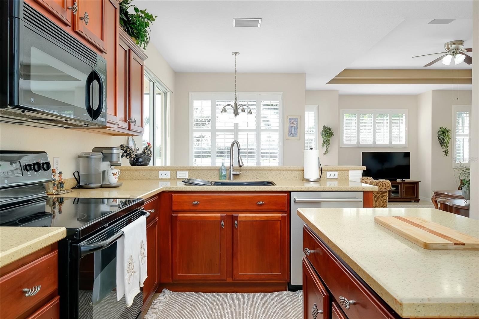 Your Dream Home Awaits in Stoneybrook! Discover the perfect blend of luxury and comfort in this stunning residence, where paradise meets practicality. If soaking up the sun and enjoying a vibrant lifestyle is your goal, this home is your Nirvana! Super spacious property that boasts three bedrooms, a den / office and another family room. The thoughtfully designed split-bedroom layout will ensure privacy for you and your guests. Ceramic tile floors flow throughout the home, offering both durability and elegance. As you step through the front door, a grand foyer welcomes you into the light-filled great room with breathtaking water views just ahead. Next, the gourmet kitchen is a chef's dream, featuring solid wood cabinets, Corian countertops, an island for prep work, nearly new appliances, and a spacious eat-in nook for casual meals. The adjacent trey ceiling in the family room provides the perfect space to unwind or connect with guests as you prepare a meal. The expansive living room offers soaring ceilings and sliders that seamlessly open to the lanai, creating a harmonious connection between indoor and outdoor living. Here, you can enjoy stunning sunsets over the lake or host alfresco dinners with tranquil water views. The master suite is a true retreat, featuring tray ceilings, plantation shutters, and direct access to the lanai, His-and-hers closets provide ample storage, while the spa-like master bath boasts a Roman tub, walk-in shower, dual vanities, and an abundance of space. Stoneybrook offers an exceptional lifestyle with its world-class amenities, including a community center, fitness facilities, lagoon-style pool, splash pad, spa, lighted tennis and pickleball courts, basketball courts, a soccer field, and a baseball diamond. Scenic walking trails wind through the community, while catch-and-release fishing is available in the serene lakes. With easy access to I-75 and historic downtown Venice, you’ll enjoy both convenience and charm. This home isn’t just a place to live—it’s an experience. Embrace the vibrant, sun-soaked lifestyle you’ve been dreaming of in a home that offers comfort, elegance, and endless opportunities for enjoyment. Turnkey with 2 minor exceptions. Contact agent for exceptional showing appointment.