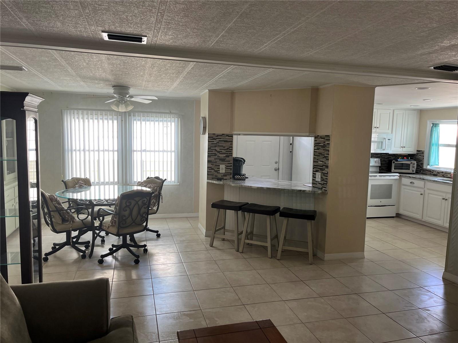 This home is fully furnished and ready to move right in. It has a new large garage and carport, a membrane roof over and vinyl siding. The private rear patio is an excellent entertaining or relaxing spot. The interior boasts Newer windows, all new kitchen cabinets with granite counters, the newer inside home washer and dryer is an ease for laundry. The open floor plan invites home owners to relax and enjoy the space. Venice Isle is the premier resident owned over 55 Mobile home Park in Venice. There are close to 1000 homes with the most active residents. There is always something going on for you to do. We have many Park gatherings and first rate shows on site. The Park has every amenity you can imagine. Come take a walk through both of our 2 clubhouses and make yourself at home. The Park has 2 tennis courts, a fitness center, 2 heated pools, 2 hot tubs, saunas, putting greens, shuffleboard, Bocce ball, miniature golf, art rooms, pool room, TV lounges, card rooms, library, horseshoes, ceramic kilns, 2 huge ballrooms, Sunday services and much more!