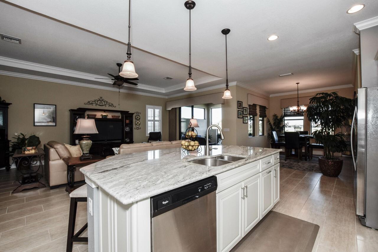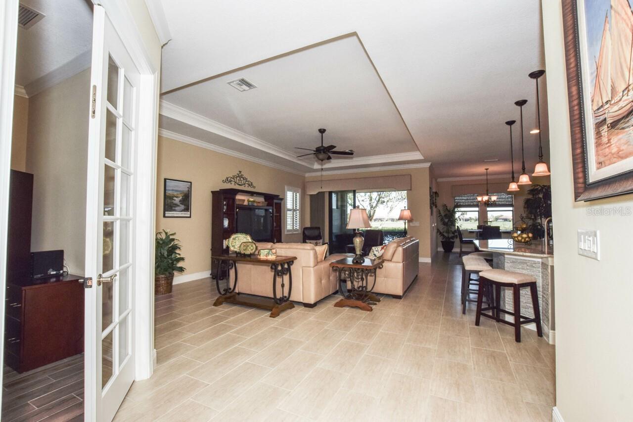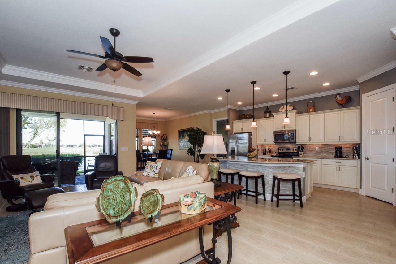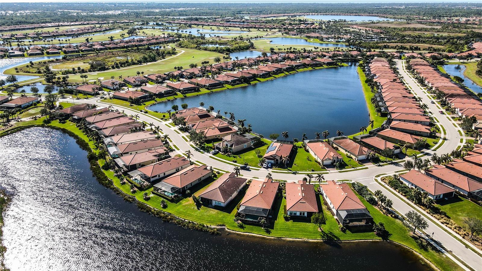 Welcome home to this WCI built Martinique floor plan. This home is 2492 SF of spacious living, featuring 3 bed, 3.5 baths, den, 2 car garage. As you enter the home through the screened front entry, you'll notice the 12 X 24 porcelain tile, the den has wood-like tile and the kitchen has stunning granite counter tops and back splash to match. The back splash was even installed on the island for an even more dramatic look. The Martinique has a very unique dining area adjacent to a very large great room. All bedrooms have walk-in closets and all are en-suites! And since this is a WCI home you'll notice the 8' doors throughout, the 10' ceiling heights, tile to the ceiling in all showers and the lanai is plumbed for an outdoor kitchen. The view from the lanai is beautiful...lake to golf course. Relax and enjoy your favorite beverage while watching the golfers approach the 11th. green. This fine home is tastefully decorated and beautifully maintained and some furnishings are available on a separate bill of sale. There is room for a pool or extended lanai. This great home is in the golf village of Sarasota National with two memberships included. There is no initiation fee at Sarasota National, it's amenities are second to none! Golf Pro Shop and 19th hole, main dining is in the Palm Lounge, wait until you see the resort pool with TIKI Bar that serves lunch and beverages daily! And don't forget about the 7000 sq. ft. fitness center, as well and the 8 pickle ball courts, 5 Har-tru tennis courts, and bocce ball courts. Close to the best gulf beaches, Cool Today Park, Wellen Park and beautiful downtown Venice. Most furnishings are available.