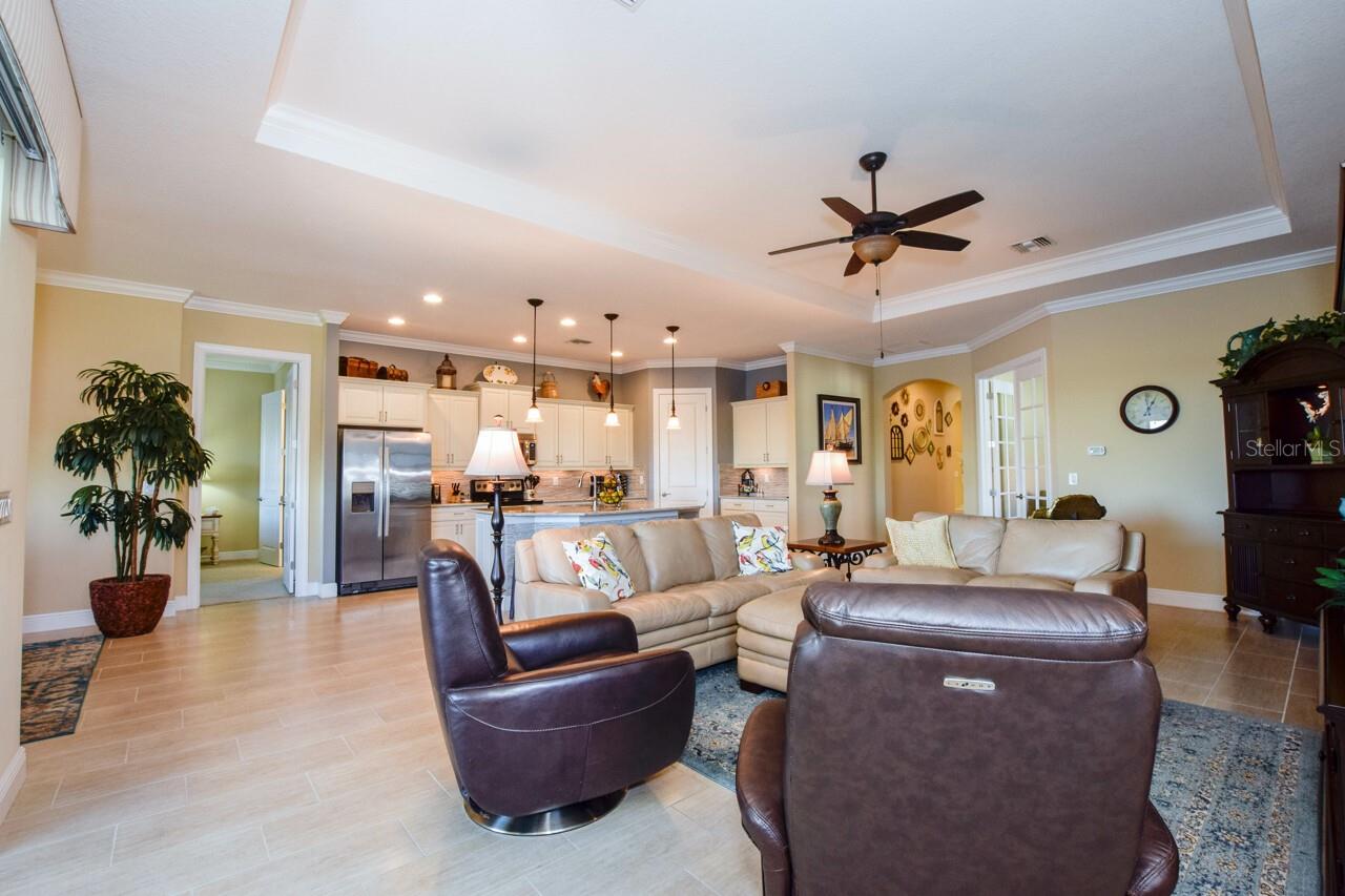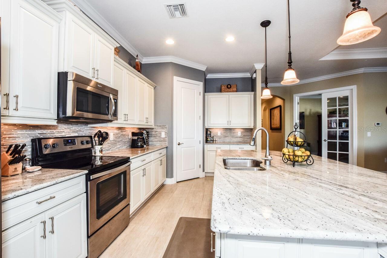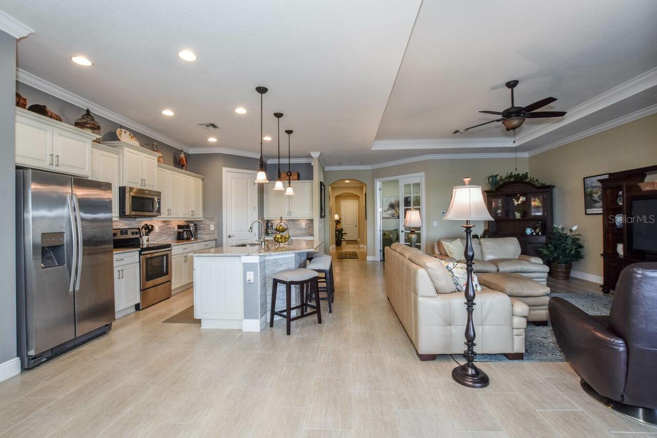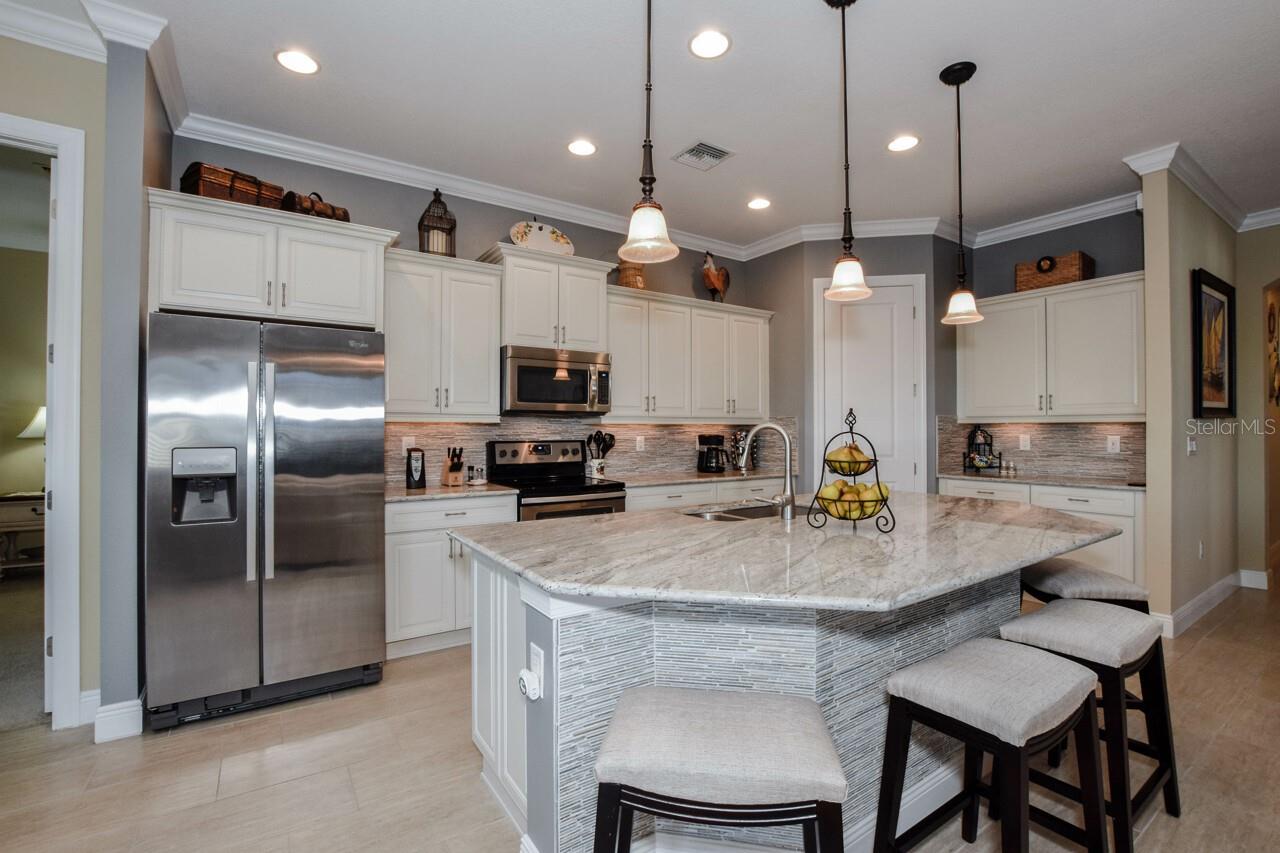 Welcome home to this WCI built Martinique floor plan. This home is 2492 SF of spacious living, featuring 3 bed, 3.5 baths, den, 2 car garage. As you enter the home through the screened front entry, you'll notice the 12 X 24 porcelain tile, the den has wood-like tile and the kitchen has stunning granite counter tops and back splash to match. The back splash was even installed on the island for an even more dramatic look. The Martinique has a very unique dining area adjacent to a very large great room. All bedrooms have walk-in closets and all are en-suites! And since this is a WCI home you'll notice the 8' doors throughout, the 10' ceiling heights, tile to the ceiling in all showers and the lanai is plumbed for an outdoor kitchen. The view from the lanai is beautiful...lake to golf course. Relax and enjoy your favorite beverage while watching the golfers approach the 11th. green. This fine home is tastefully decorated and beautifully maintained and some furnishings are available on a separate bill of sale. There is room for a pool or extended lanai. This great home is in the golf village of Sarasota National with two memberships included. There is no initiation fee at Sarasota National, it's amenities are second to none! Golf Pro Shop and 19th hole, main dining is in the Palm Lounge, wait until you see the resort pool with TIKI Bar that serves lunch and beverages daily! And don't forget about the 7000 sq. ft. fitness center, as well and the 8 pickle ball courts, 5 Har-tru tennis courts, and bocce ball courts. Close to the best gulf beaches, Cool Today Park, Wellen Park and beautiful downtown Venice. Most furnishings are available.