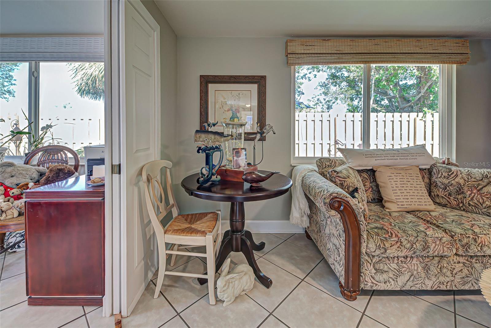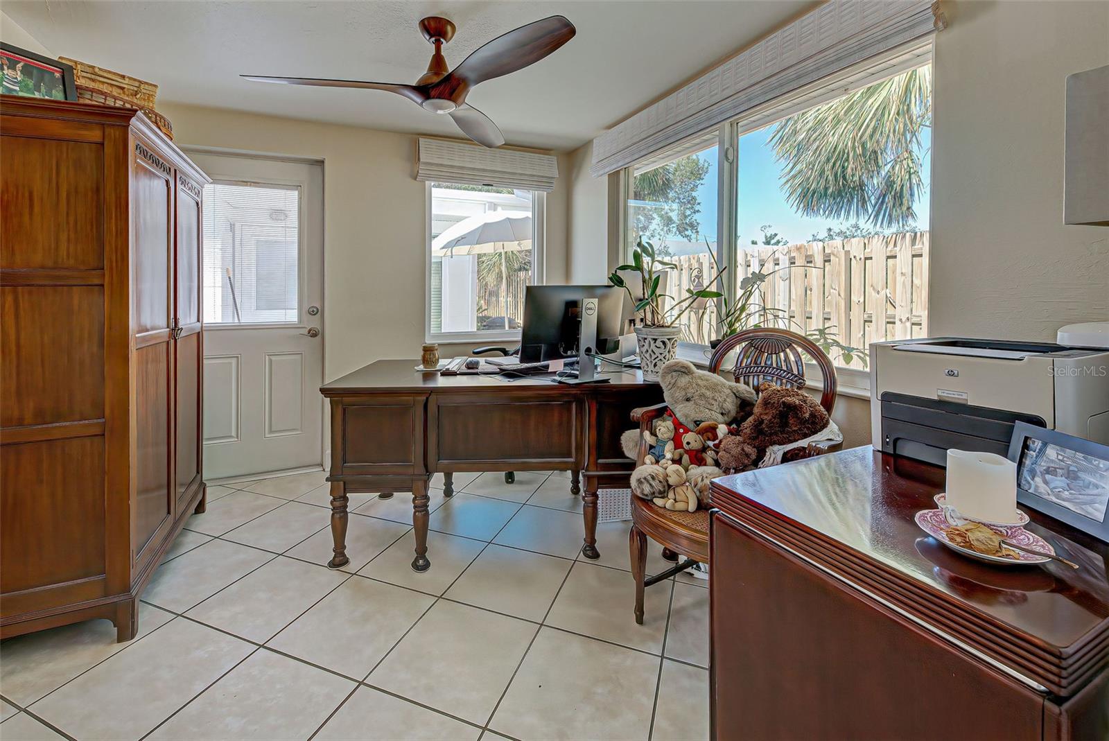 HOA WILL REIMBURSE NEW OWNER $20,000 IN 2025 FOR ROOF INSTALLED IN 2024. Are you dreaming of the perfect affordable, cozy, comfy getaway or a full-time residence in paradise? This is a charming 1 bedroom with a den/study - stand-alone villa which has been meticulously maintained and updated by the owner. This villa is a real gem and offers a serene retreat with all the modern conveniences you could wish for. Beautifully updated, it features ceramic tile floors throughout, new ceiling fans, new light fixtures, new appliances and updated kitchen cabinets. The den/study has pocket doors which adds to the charm of this villa. The NEW ROOF WITH 35 YEAR WARRANTY, NEW HURRICANE WINDOWS WITH LIFETIME WARRANTY, new custom blinds throughout, epoxy finished carport, Butler pavers and so much more! This villa is being offered partially furnished and has plenty of storage, this is a 55+ community and it is move in ready! Seller has had Inspection done in January 2025 and happy to share this with new owner. THE HOA FEES WILL BE DECREASED TO $485.29/MONTH DUE TO CHANGES TO GOVERNING DOCUMENTS. NEW CARPORT SCHEDULED FOR APRIL 2025. We welcome you to make an appointment to come see this villa!