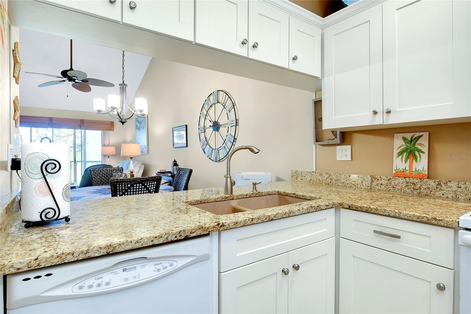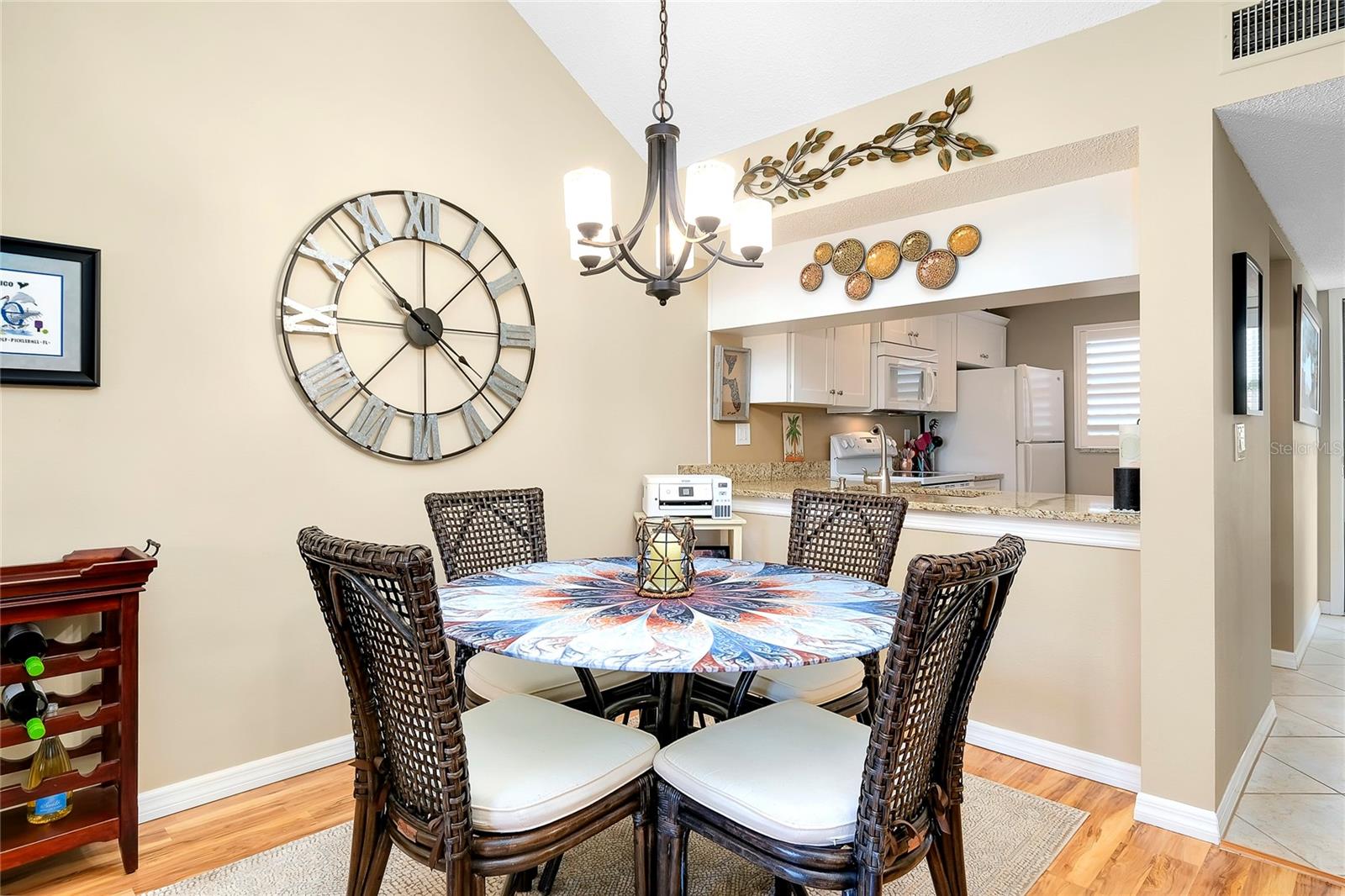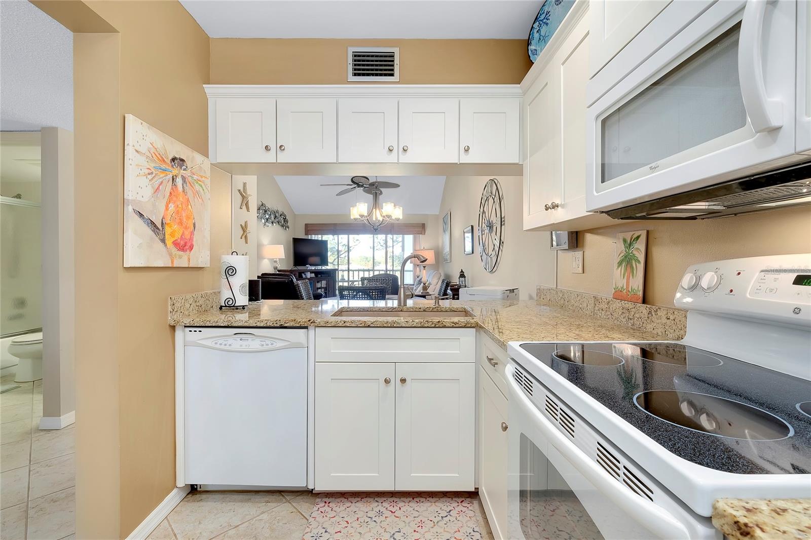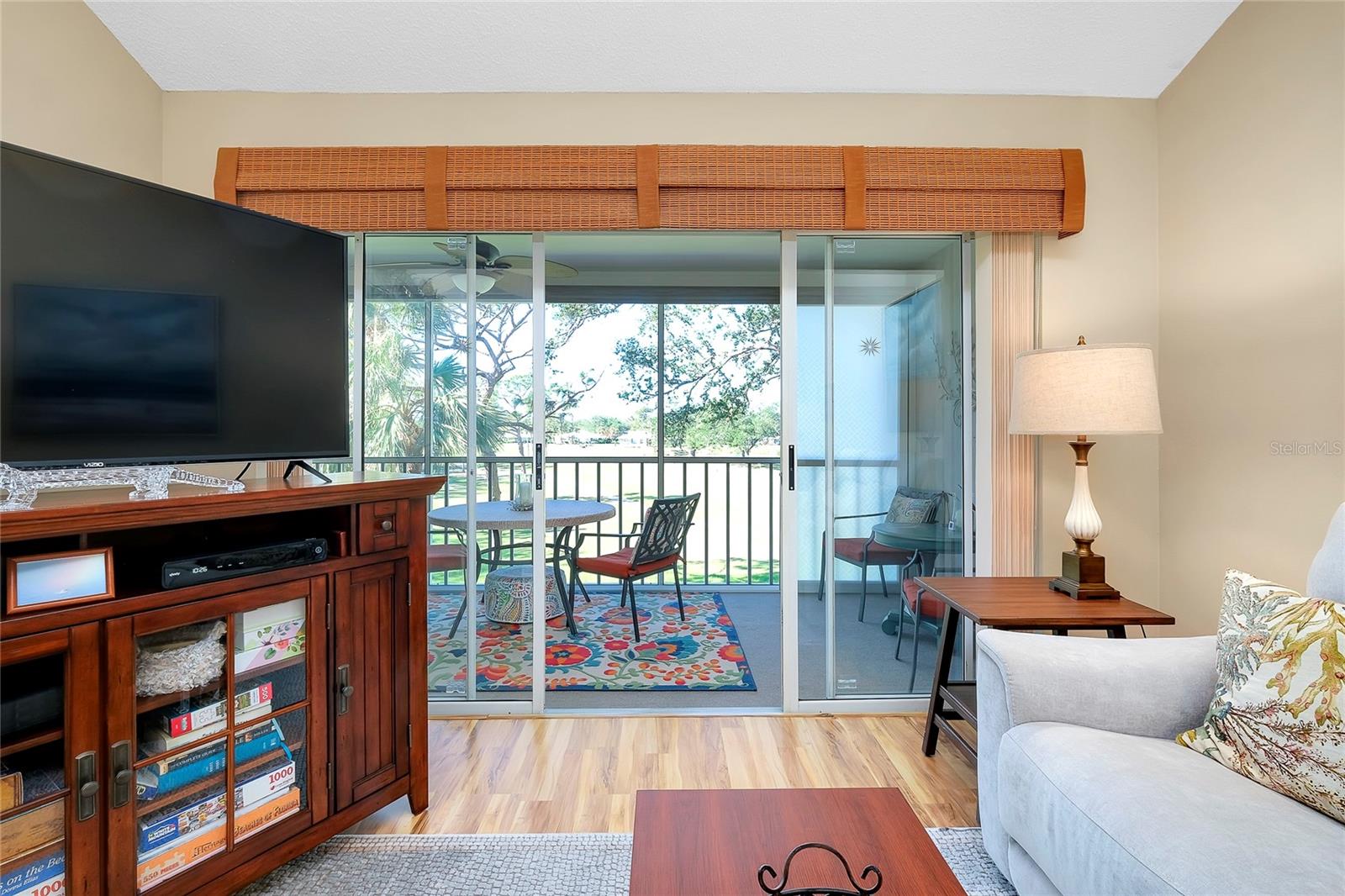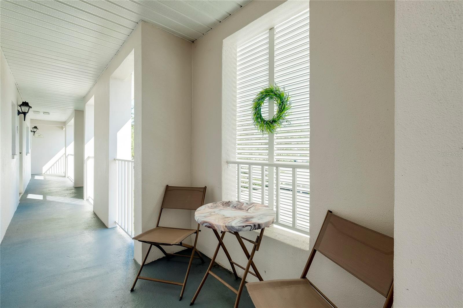 Whether a seasonal retreat or a full-time residence, this tasteful and meticulous home is a delight for the senses and spirit. Located on the 3rd level (with stairs or elevator access) you’ll feel “on top of the world” with expansive views front and back and yet grounded in a lovely well-groomed established community among tropical plantings. The residential buildings all have brand new (2024) metal tile roofs! The home’s palette and décor boast a tasteful combo of easy-living seaside with traditional styling. Enter from the tiled foyer to the main living area with cathedral ceilings where dining and living areas are open to one another creating a feeling of spaciousness yet connection. Wood-look laminate flooring in the dining and living areas complement the tones of the tile floors in the entry foyer, kitchen and baths. The kitchen features easy-clean cabinetry with easy-close doors and granite counter tops. A plantation-shuttered window allows both light and privacy. The primary bedroom has a private en suite bath featuring separate dual vanities with granite counter tops, an ample shower, a walk-in closet and a separate and convenient enclosed closet for the stack-able washer and dryer. Separation of bedrooms adds a level of privacy. The secondary bedroom is cozy and comfortable offering easy access to the second full bath. Sliders from the living room and primary bedroom access the rear covered lanai overlooking the lake with a view of the 5th green of the Bobcat course. With its westerly position, it’s a great place for a morning beverage, reading a good book in the afternoon or watching blazing sunsets. The lanai also features the bonus of having a full set of both “interior” and “exterior” sliders providing the option to easily enclose the area to create a delightful living area in any season, weather or temperature. The detached carport with parking for one vehicle has an attached locking storage room. There is plenty of additional parking very nearby. All this, and with one of the best locations within the Farmington Vistas complex, set back with a westerly rear view, and yet convenient and just steps away to the easterly positioned clubhouse and pool and outside grills amid mature tropical landscaping. The master Plantation community is a wonderful place to enjoy the Florida lifestyle. Membership to Plantation Golf and Country Club is optional and offers additional amenities including two 18-hole golf courses, clubhouse with a restaurant, fitness room, tennis, bocce and pickle ball courts, and a large community pool. All of this located close to some of the Gulf coast’s most beautiful beaches, historic downtown Venice with cultural and art centers, shopping, dining, parks and recreation areas.