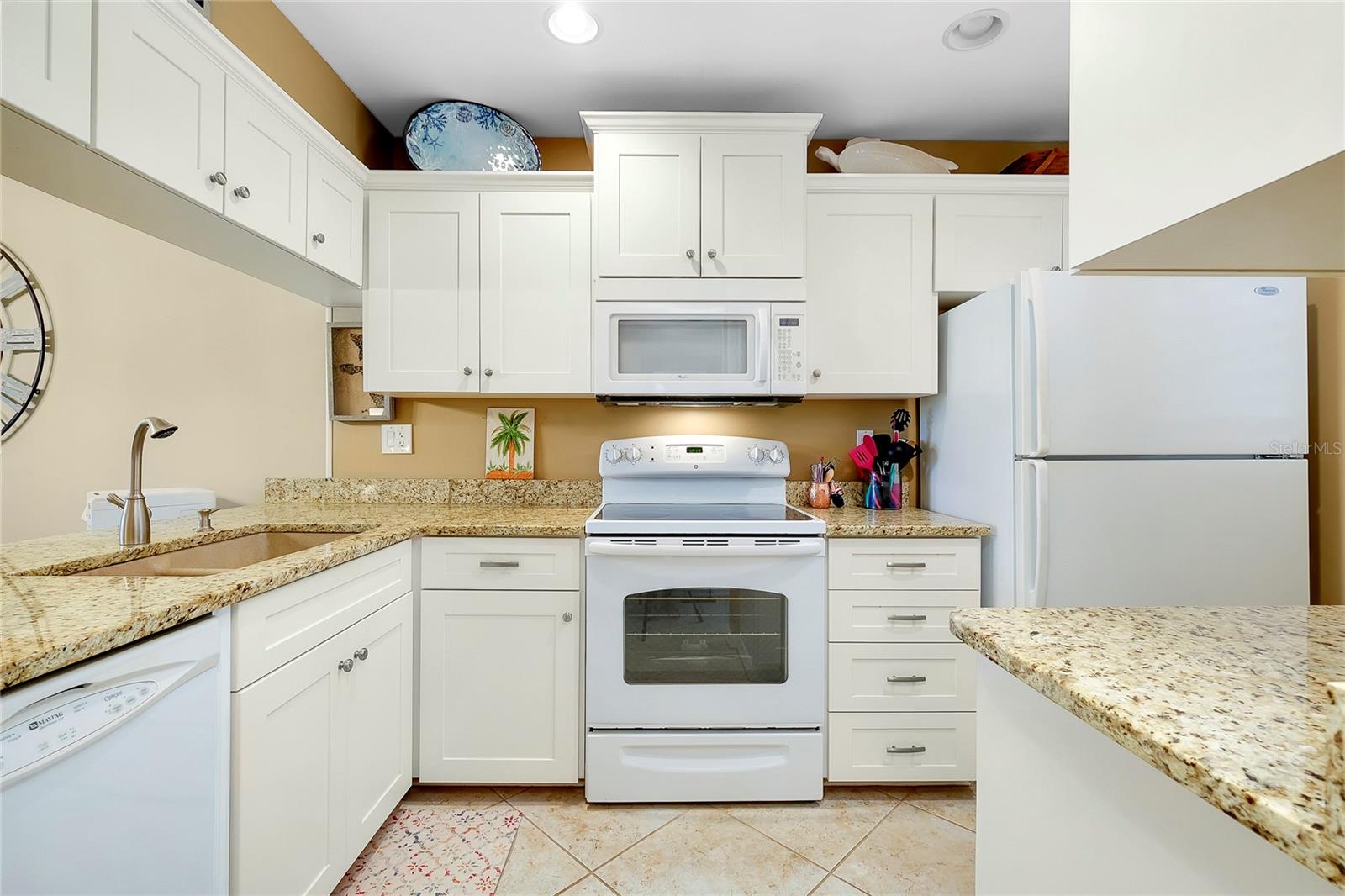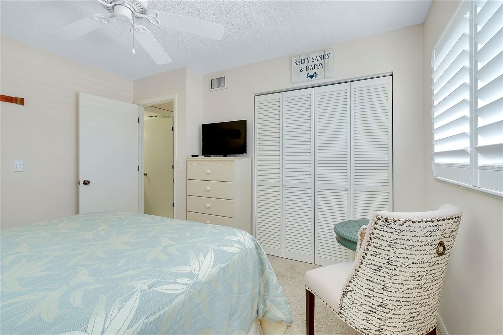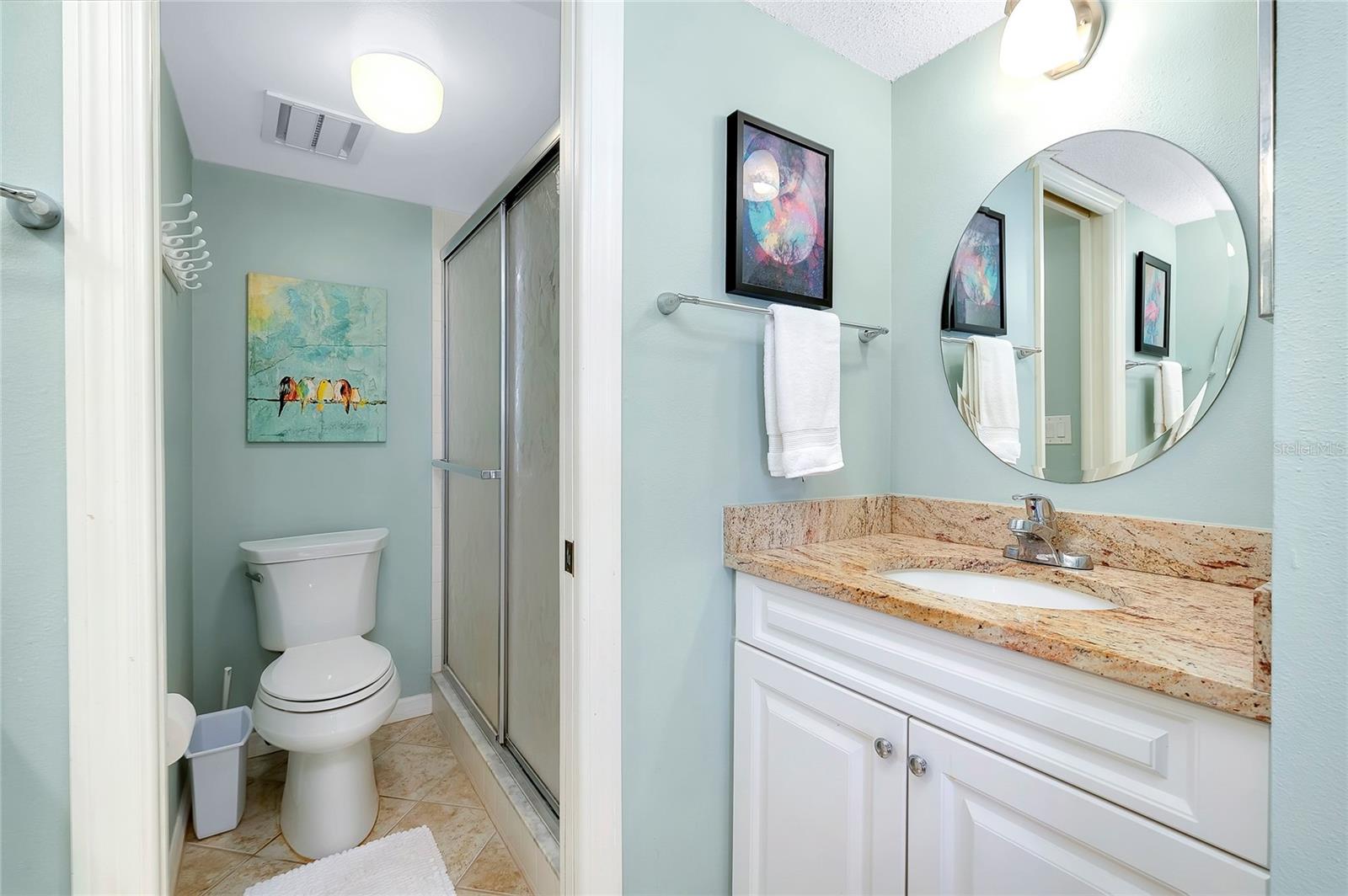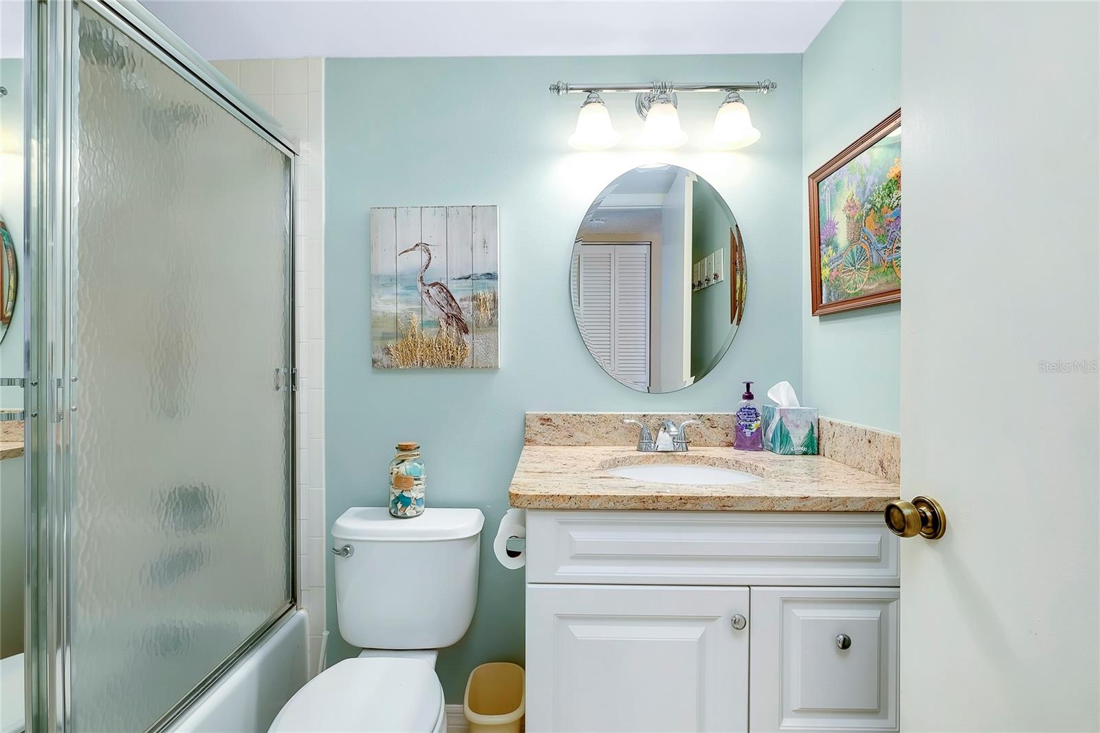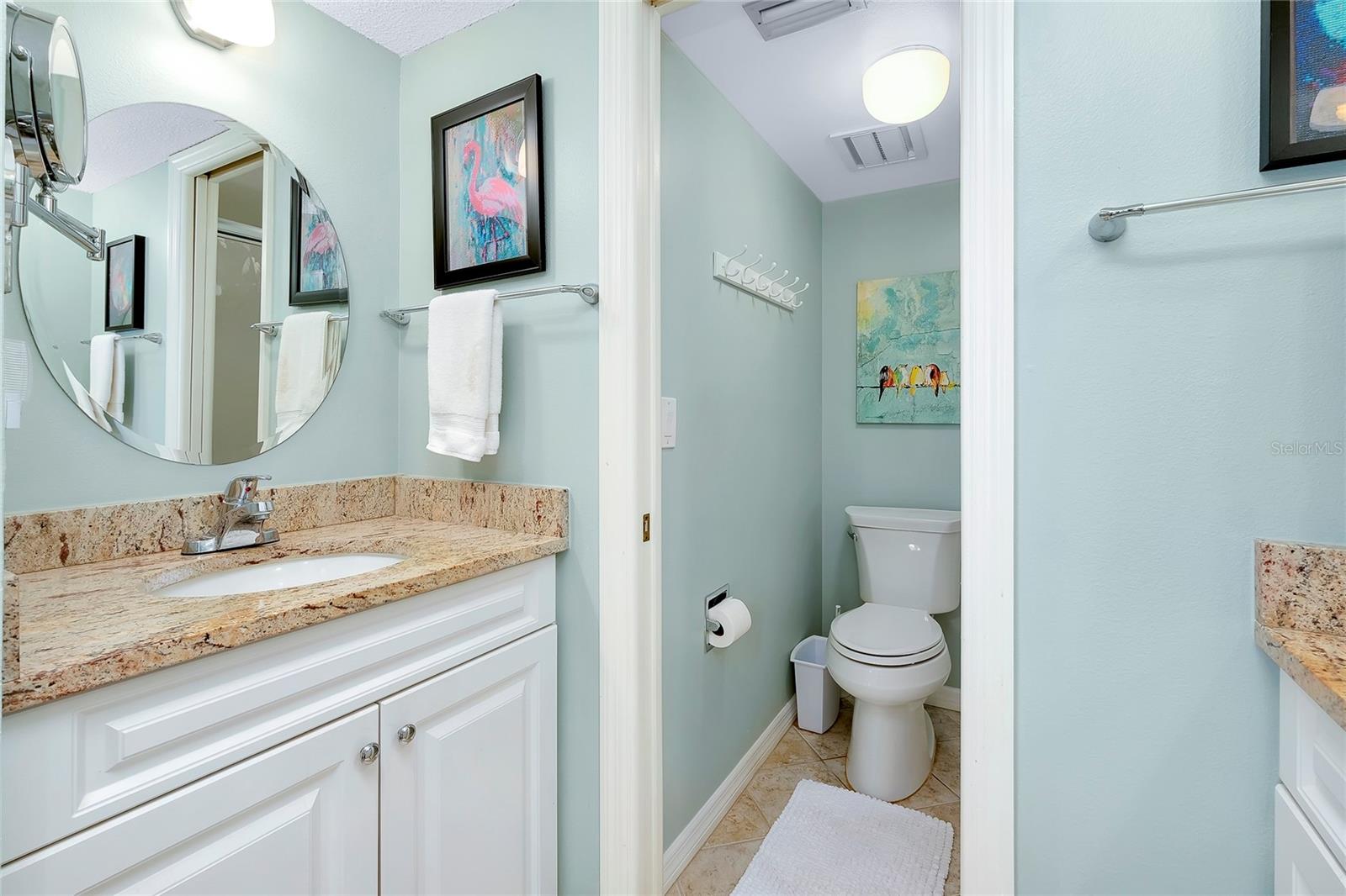 Whether a seasonal retreat or a full-time residence, this tasteful and meticulous home is a delight for the senses and spirit. Located on the 3rd level (with stairs or elevator access) you’ll feel “on top of the world” with expansive views front and back and yet grounded in a lovely well-groomed established community among tropical plantings. The residential buildings all have brand new (2024) metal tile roofs! The home’s palette and décor boast a tasteful combo of easy-living seaside with traditional styling. Enter from the tiled foyer to the main living area with cathedral ceilings where dining and living areas are open to one another creating a feeling of spaciousness yet connection. Wood-look laminate flooring in the dining and living areas complement the tones of the tile floors in the entry foyer, kitchen and baths. The kitchen features easy-clean cabinetry with easy-close doors and granite counter tops. A plantation-shuttered window allows both light and privacy. The primary bedroom has a private en suite bath featuring separate dual vanities with granite counter tops, an ample shower, a walk-in closet and a separate and convenient enclosed closet for the stack-able washer and dryer. Separation of bedrooms adds a level of privacy. The secondary bedroom is cozy and comfortable offering easy access to the second full bath. Sliders from the living room and primary bedroom access the rear covered lanai overlooking the lake with a view of the 5th green of the Bobcat course. With its westerly position, it’s a great place for a morning beverage, reading a good book in the afternoon or watching blazing sunsets. The lanai also features the bonus of having a full set of both “interior” and “exterior” sliders providing the option to easily enclose the area to create a delightful living area in any season, weather or temperature. The detached carport with parking for one vehicle has an attached locking storage room. There is plenty of additional parking very nearby. All this, and with one of the best locations within the Farmington Vistas complex, set back with a westerly rear view, and yet convenient and just steps away to the easterly positioned clubhouse and pool and outside grills amid mature tropical landscaping. The master Plantation community is a wonderful place to enjoy the Florida lifestyle. Membership to Plantation Golf and Country Club is optional and offers additional amenities including two 18-hole golf courses, clubhouse with a restaurant, fitness room, tennis, bocce and pickle ball courts, and a large community pool. All of this located close to some of the Gulf coast’s most beautiful beaches, historic downtown Venice with cultural and art centers, shopping, dining, parks and recreation areas.