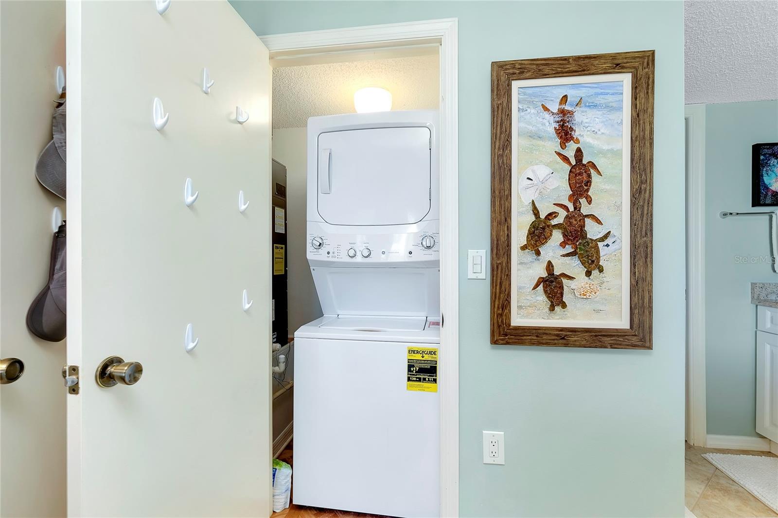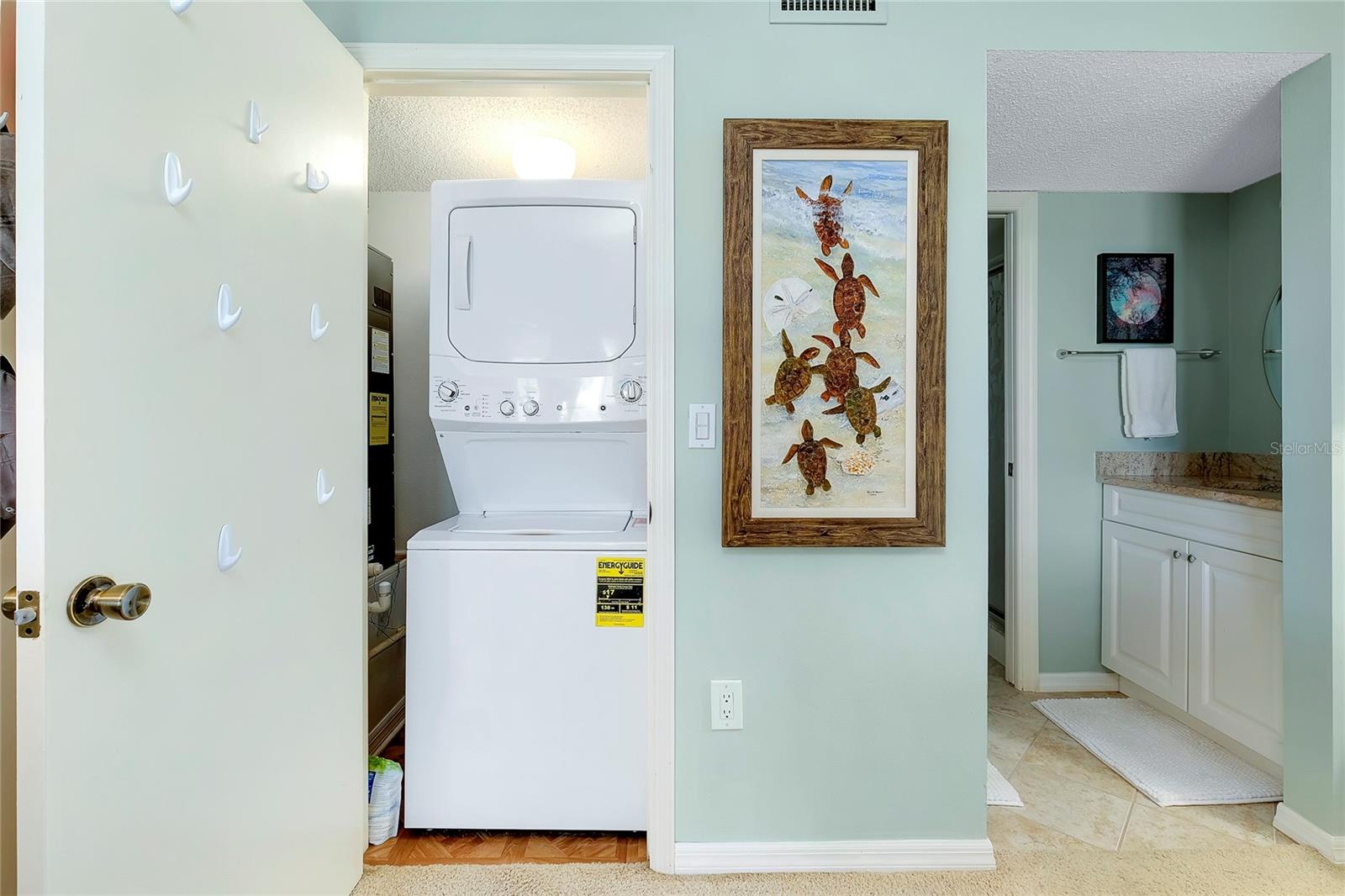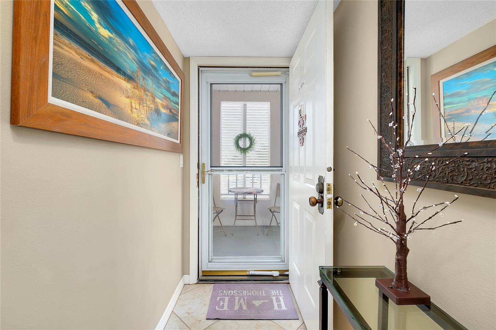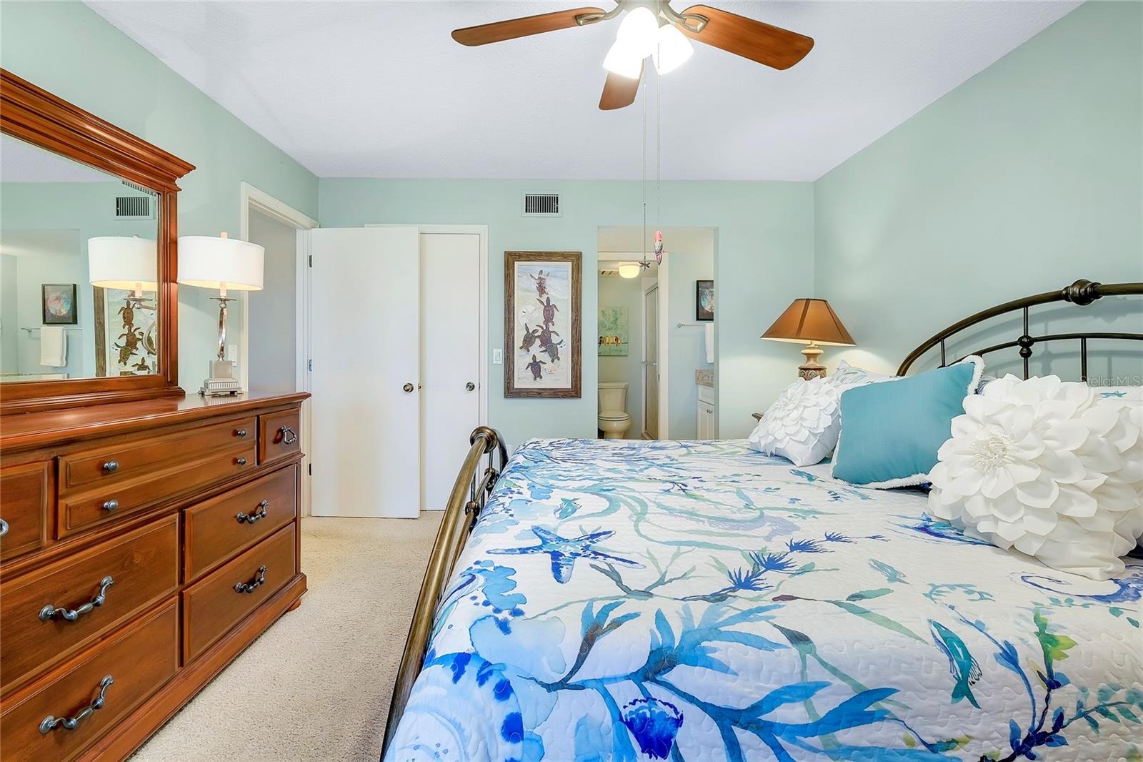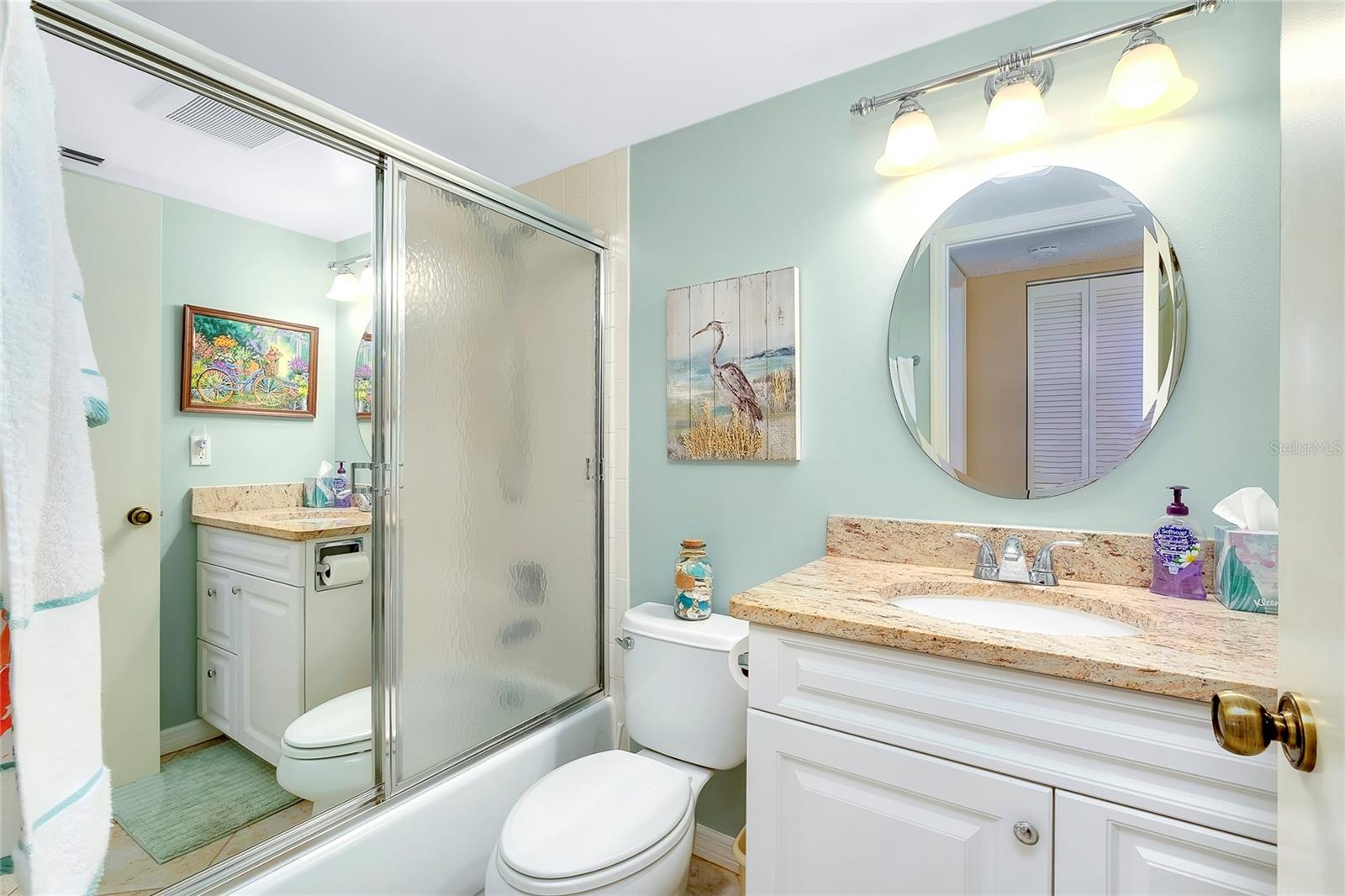 Whether a seasonal retreat or a full-time residence, this tasteful and meticulous home is a delight for the senses and spirit. Located on the 3rd level (with stairs or elevator access) you’ll feel “on top of the world” with expansive views front and back and yet grounded in a lovely well-groomed established community among tropical plantings. The residential buildings all have brand new (2024) metal tile roofs! The home’s palette and décor boast a tasteful combo of easy-living seaside with traditional styling. Enter from the tiled foyer to the main living area with cathedral ceilings where dining and living areas are open to one another creating a feeling of spaciousness yet connection. Wood-look laminate flooring in the dining and living areas complement the tones of the tile floors in the entry foyer, kitchen and baths. The kitchen features easy-clean cabinetry with easy-close doors and granite counter tops. A plantation-shuttered window allows both light and privacy. The primary bedroom has a private en suite bath featuring separate dual vanities with granite counter tops, an ample shower, a walk-in closet and a separate and convenient enclosed closet for the stack-able washer and dryer. Separation of bedrooms adds a level of privacy. The secondary bedroom is cozy and comfortable offering easy access to the second full bath. Sliders from the living room and primary bedroom access the rear covered lanai overlooking the lake with a view of the 5th green of the Bobcat course. With its westerly position, it’s a great place for a morning beverage, reading a good book in the afternoon or watching blazing sunsets. The lanai also features the bonus of having a full set of both “interior” and “exterior” sliders providing the option to easily enclose the area to create a delightful living area in any season, weather or temperature. The detached carport with parking for one vehicle has an attached locking storage room. There is plenty of additional parking very nearby. All this, and with one of the best locations within the Farmington Vistas complex, set back with a westerly rear view, and yet convenient and just steps away to the easterly positioned clubhouse and pool and outside grills amid mature tropical landscaping. The master Plantation community is a wonderful place to enjoy the Florida lifestyle. Membership to Plantation Golf and Country Club is optional and offers additional amenities including two 18-hole golf courses, clubhouse with a restaurant, fitness room, tennis, bocce and pickle ball courts, and a large community pool. All of this located close to some of the Gulf coast’s most beautiful beaches, historic downtown Venice with cultural and art centers, shopping, dining, parks and recreation areas.