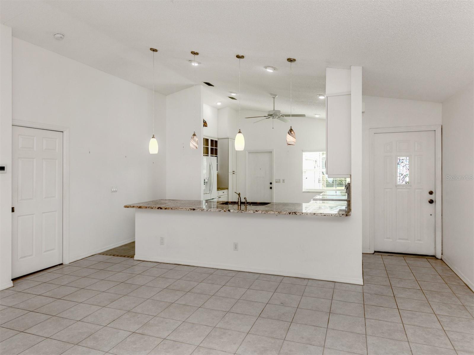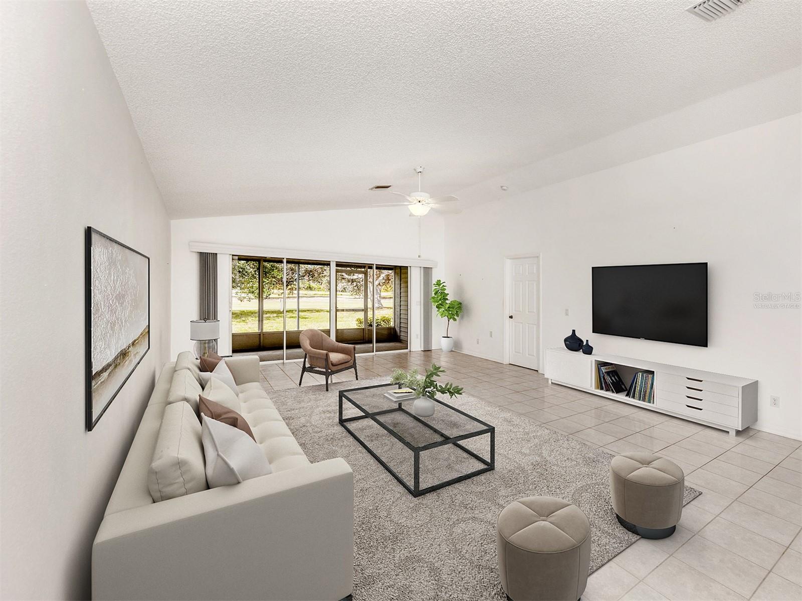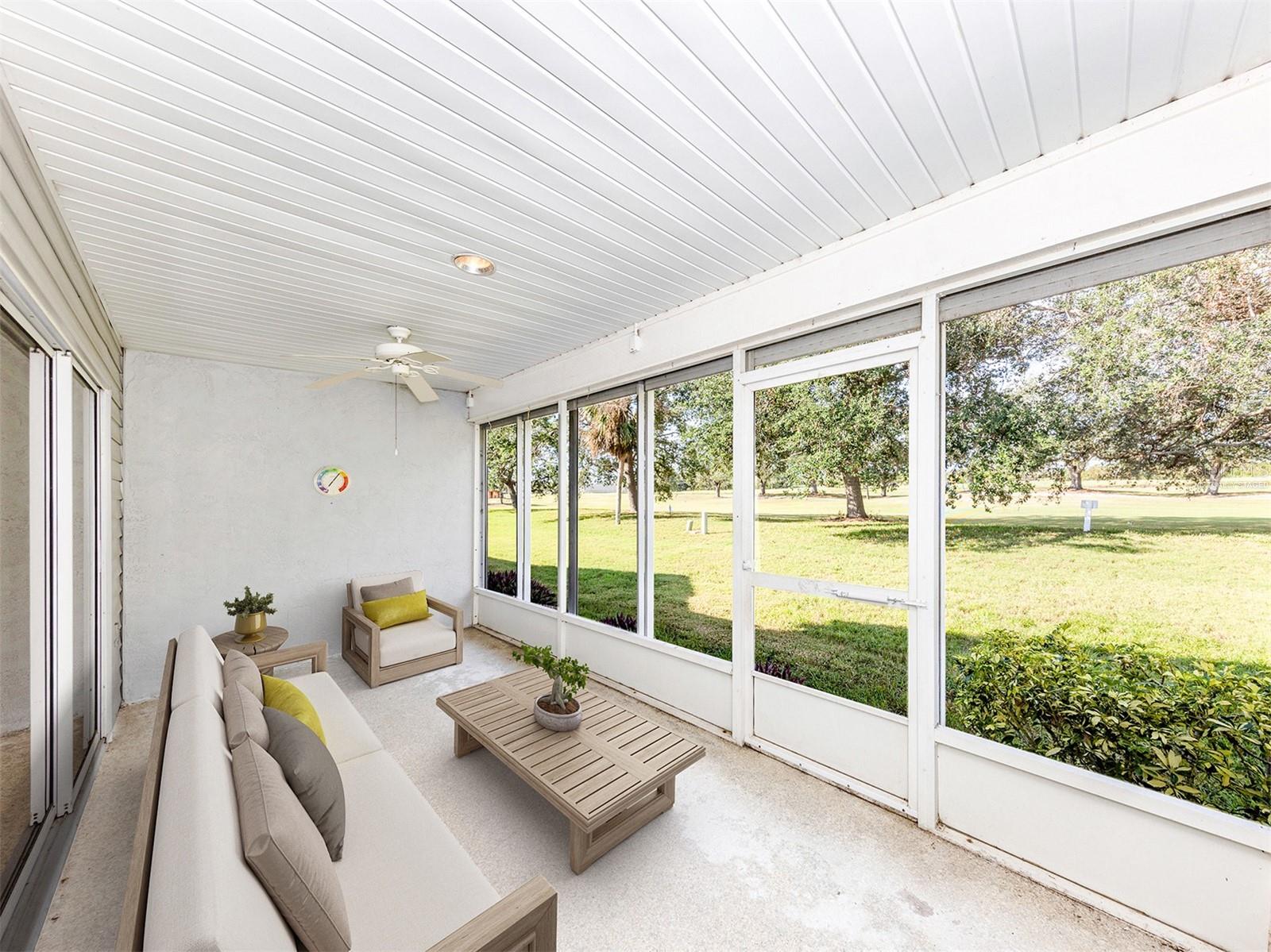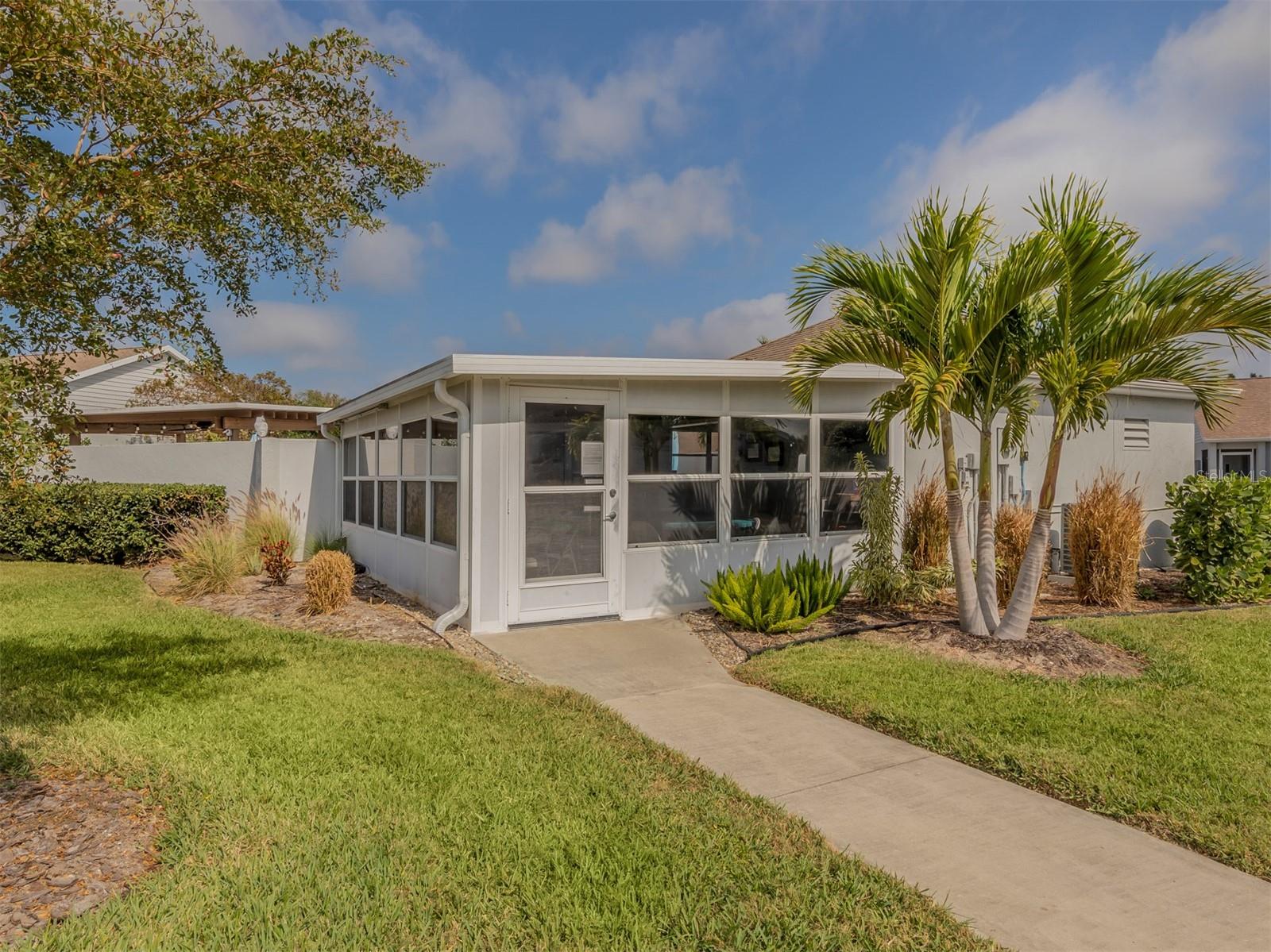 One or more photo(s) has been virtually staged. Look no further! This is the one for you. Experience living life in this desirable maintenance-free community overlooking the Capri Isles Golf Course. Many upgrades have already been done to this two-bedroom, two-bath, two-car garage villa such as roof in 2023, electrical panel in 2024, water heater and air conditioner in 2021. Some windows are hurricane impact while the others have hurricane shutters to protect them during a storm. This villa has a nice open floor plan, high vaulted ceilings, recessed lighting in the oversized kitchen, oversize granite kitchen countertops with barstool seating area and elegant kitchen cabinetry with soft close drawers. The primary bedroom has vaulted ceilings with a view to the golf course, an oversized walk-in closet, an en-suite bath with walk-in shower and two deep-sized extra closets for all your linens including a side door to exit outdoor onto the private fenced in patio. There is also a screened-in lanai to enjoy your morning coffee while overlooking the golf course views out back. The two-car garage has pull down attic stairs, epoxy coated flooring for a nice clean crisp look along with washer, dryer and utility sink. Feel at ease knowing exterior maintenance such as lawn care and landscaping are all taken care of by the association allowing you free time to engage in the Florida lifestyle. Get ready to live your life in paradise as this is a prime location that offers proximity to Capri Isles golfing half a mile, historic downtown Venice 2.5 miles, Venice Beach 3.5 miles, and fine dining and shopping. Be prepared to call this your home and reserve your appointment today to see this adorable villa.