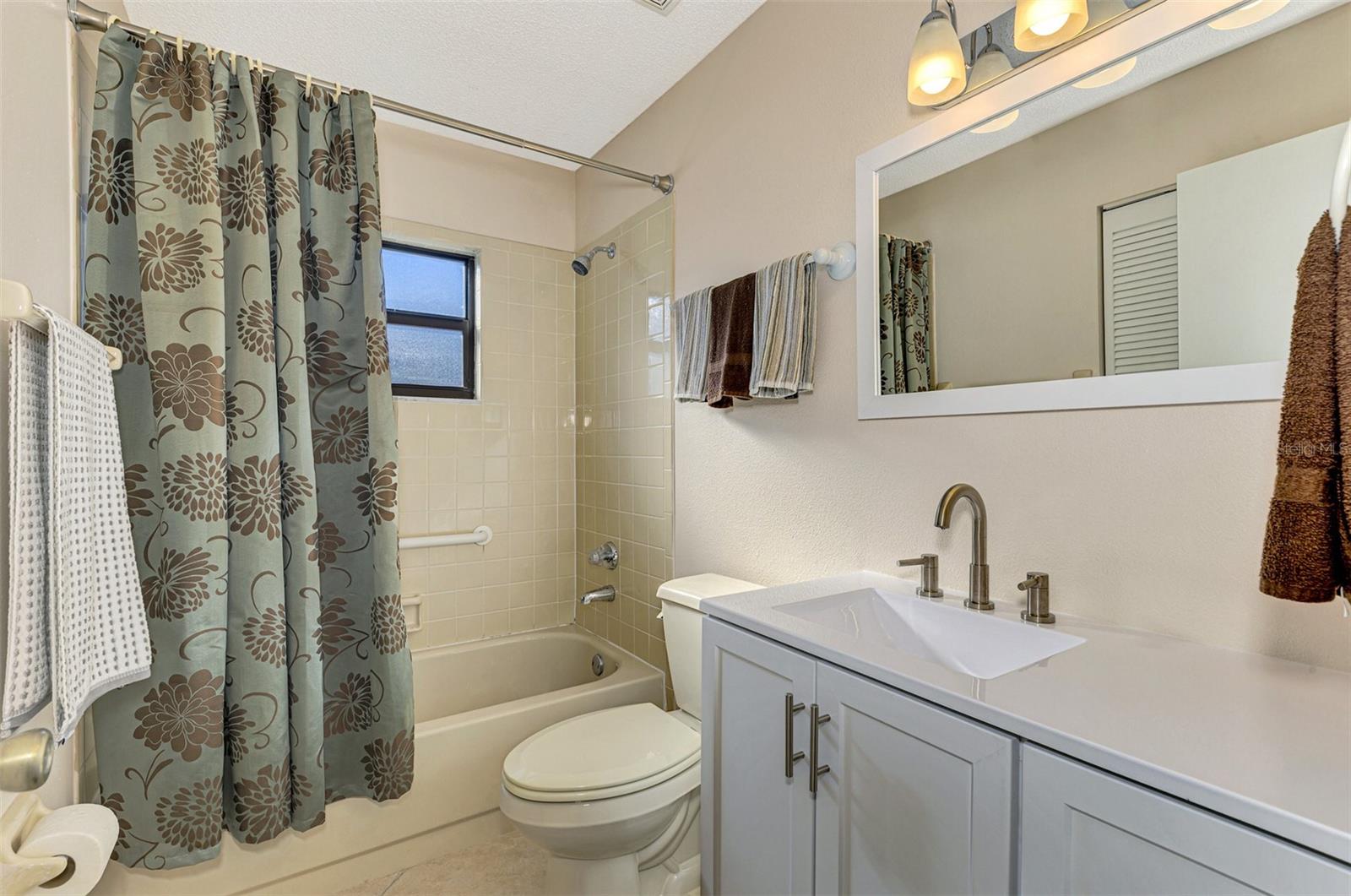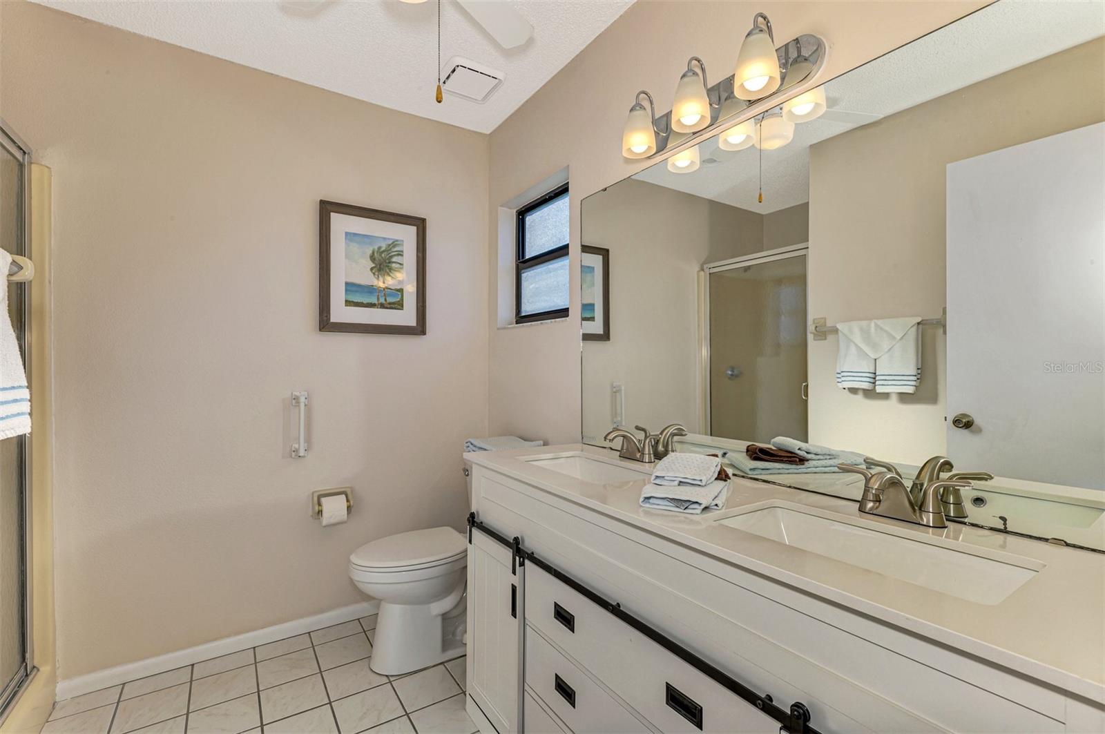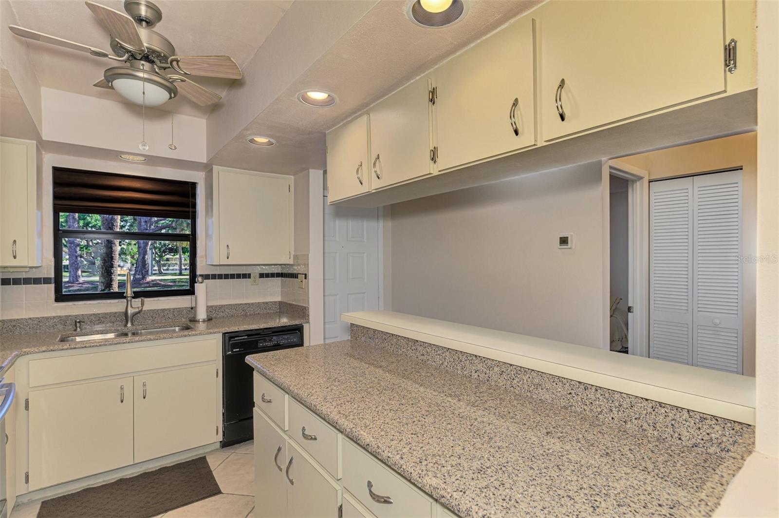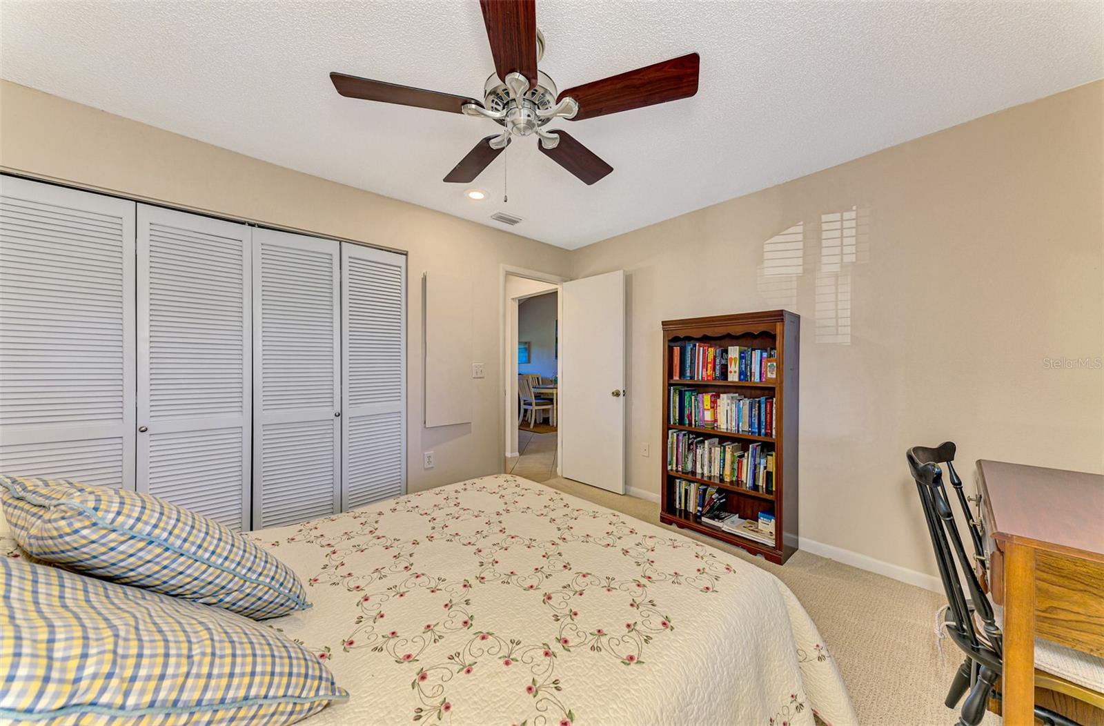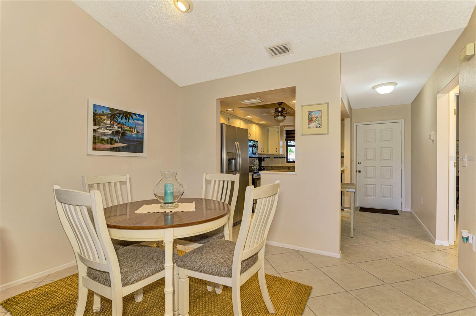 Highly sought after Capri Isles leads you to this amazing end unit "villa" with no neighbors above or below you! This wonderful condo features sweeping views of the 18th fairway of Capri Isles Golf Course. Walking up to the front door, you will notice the private fenced in courtyard area which adds to the appeal of this residence. Inside you will find an open floor plan, cathedral ceiling and a pleasant neutral decor. Tumbled ceramic tile floors through much of the condo laid on the diagonal and the bedrooms feature new carpets. An appealing kitchen with nice workspace on the granite counters, plenty of cabinet space and comes with appliances. Open living room features cathedral ceilings and flows with the dining room for easy entertaining. A real plus is the condo has PGT hurricane windows and slider! Off the living room, the slider leads out to the wonderful lanai to watch the golfers. The primary bedroom features a walk in closet, bathroom with a new double vanity. The secondary bedroom is also spacious. The second bath also features a new vanity! Washer and dryer inside the condo, good storage space with the private storage area. The reasonable condo fee includes water and cable! Par Four has social events if you wish to participate and a nice clubhouse and heated pool. The location is amazing with easy access to pristine beaches, renowned dining establishments, shopping centers and close to Sarasota Memorial. Whether you are an avid golfer, nature enthusiast or simply seeking a tranquil haven to call home, this condo will appeal to you!
