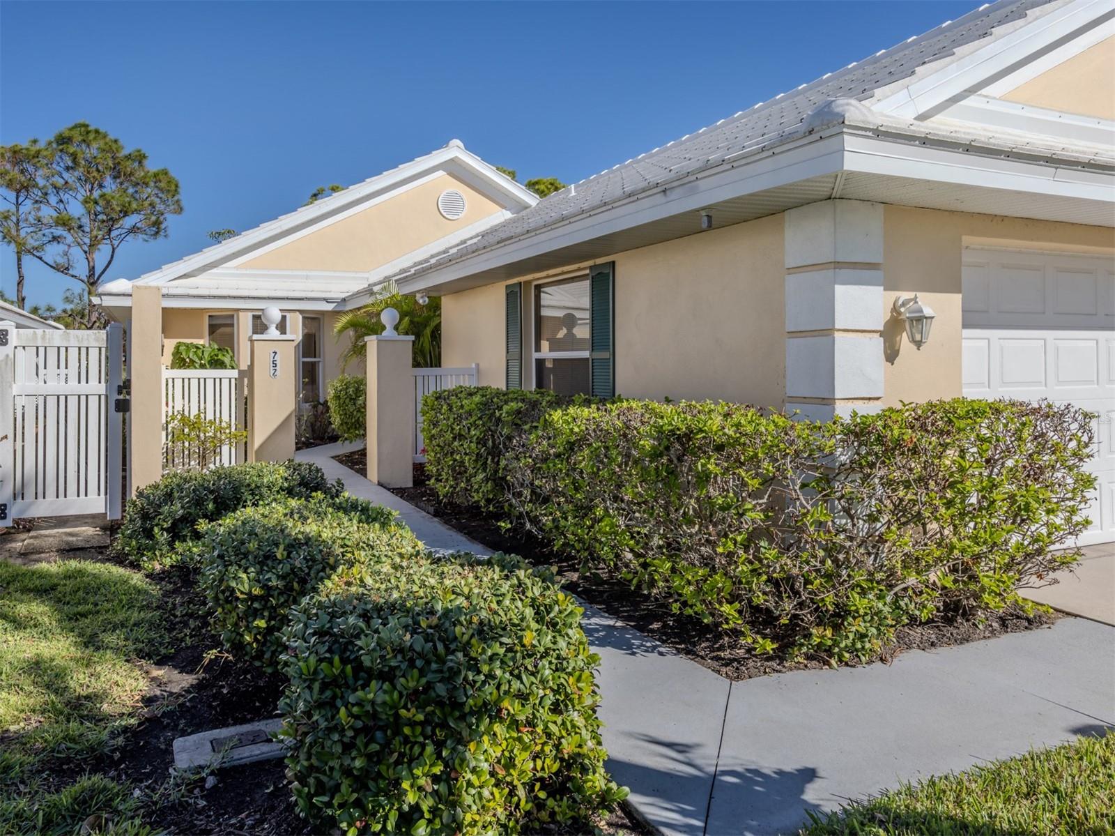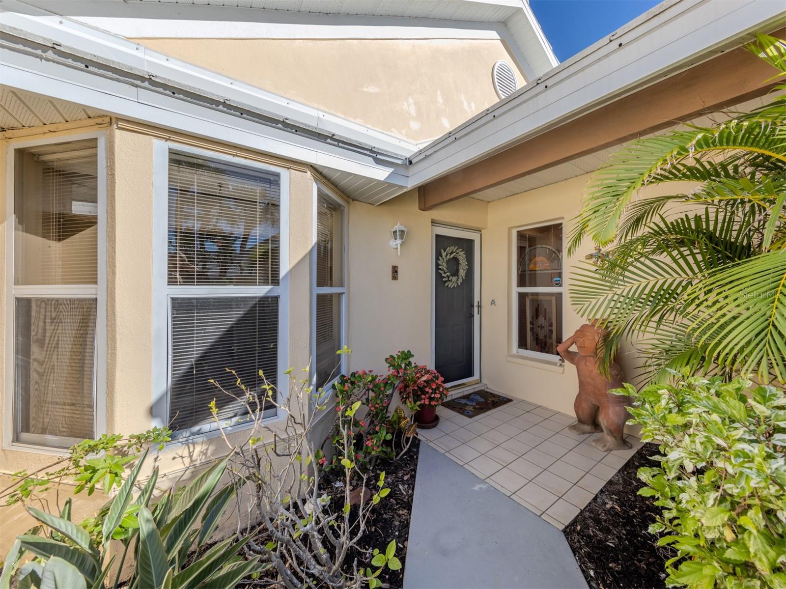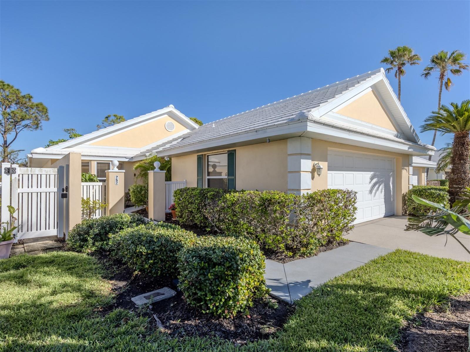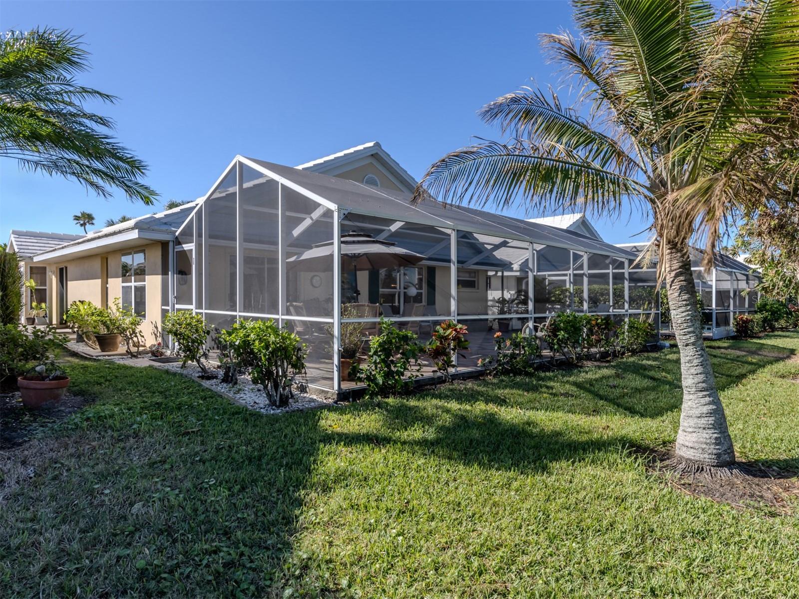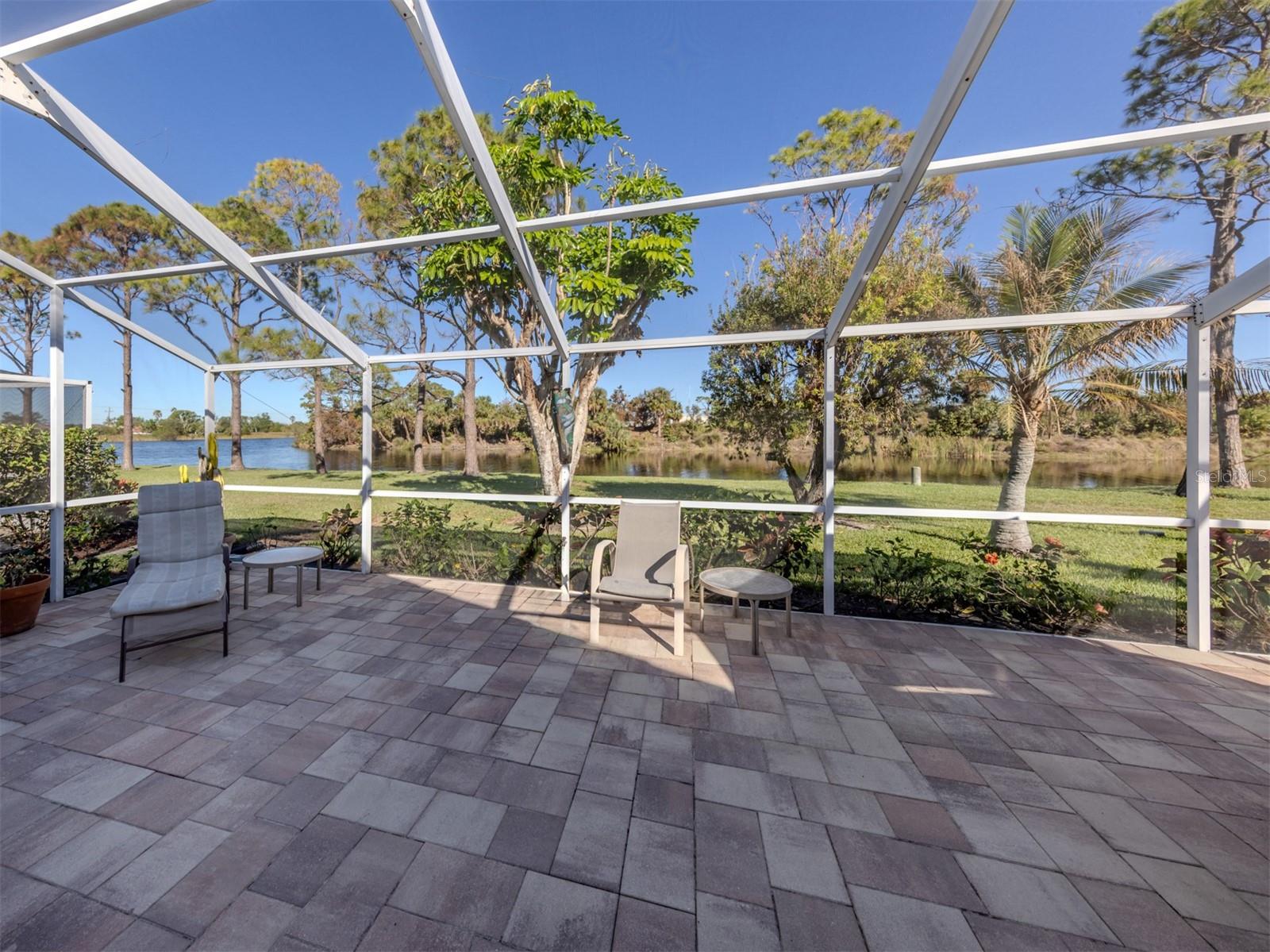 Desirable location with a lake view, privacy, and room for a pool, in Harrington Lake at The Plantation in Venice, Florida. Harrington Lake is a unique maintenance free community of villas with its own pool and very active clubhouse. Beautifully landscaped front entrance welcomes you into this delightful 1492 sq ft villa with an expansive lake view from the living areas. The home has a spacious primary suite and a guest bedroom, both with tastefully updated bathrooms. All floors are tiled except the guest room which is carpeted. Well equipped kitchen with lots of cabinets, and counter space, a kitchen nook, a closet pantry, and recessed lighting. Open dining/living area and family room connect seamlessly with the 20ft by 35ft screened, pavered lanai which draws you to this outdoor living space for entertaining, bird watching, or just enjoying the view. A pavered side patio , accessible from the kitchen and dining area, is perfect for barbequing, and enjoying morning coffee. The villa has been replumbed. Roof was replaced in April 2022. 2 car attached garage. The Plantation Golf & Country Club is nearby where a choice of memberships are available if you wish to join. A number of Florida's Gulf Coast beaches are 15 minutes away. Within a short drive there is everything to discover....historic Downtown Venice, vibrant Wellen Park, Cool Today Stadium, theater, performing arts, and limitless events and activities. Restaurants, shopping, and all services are conveniently located close to home.