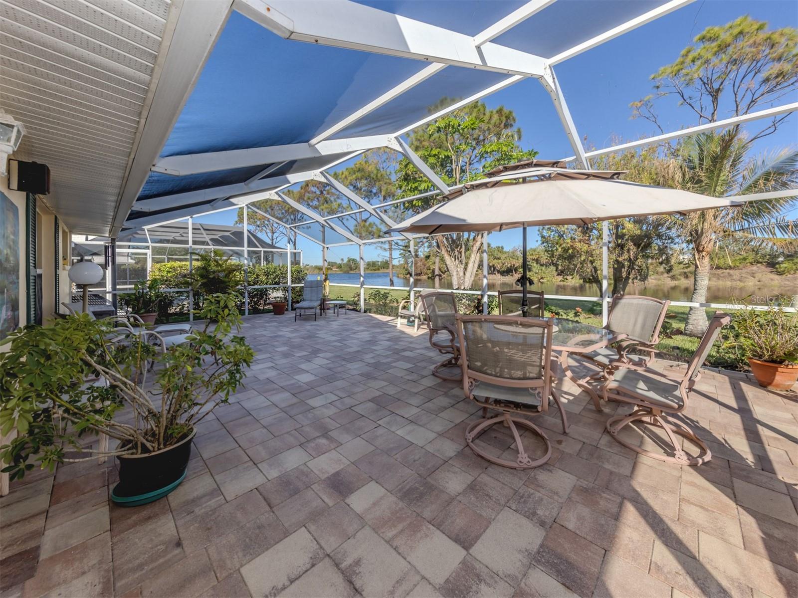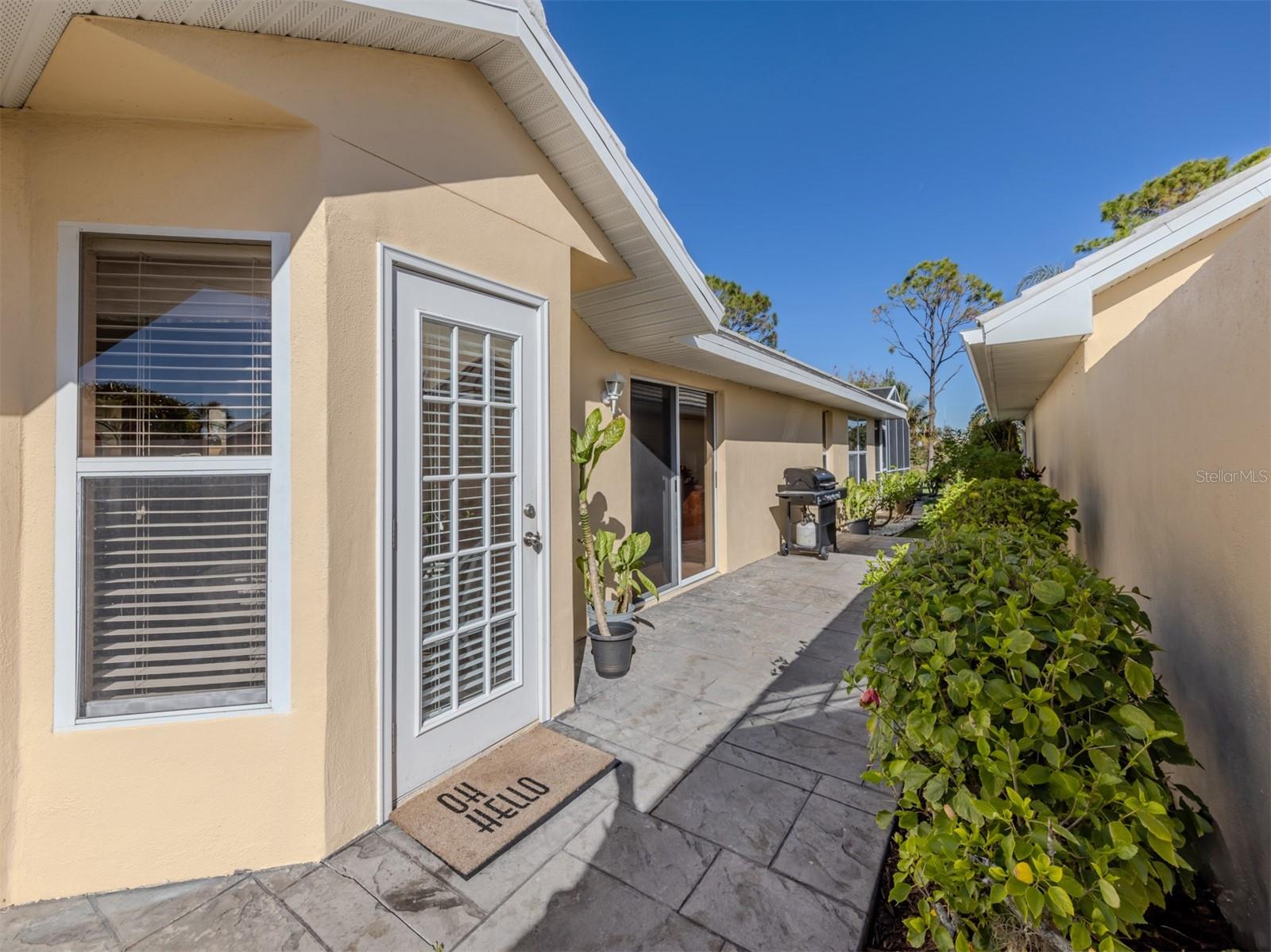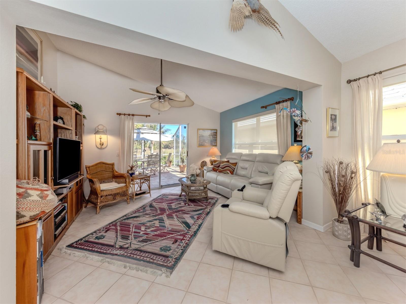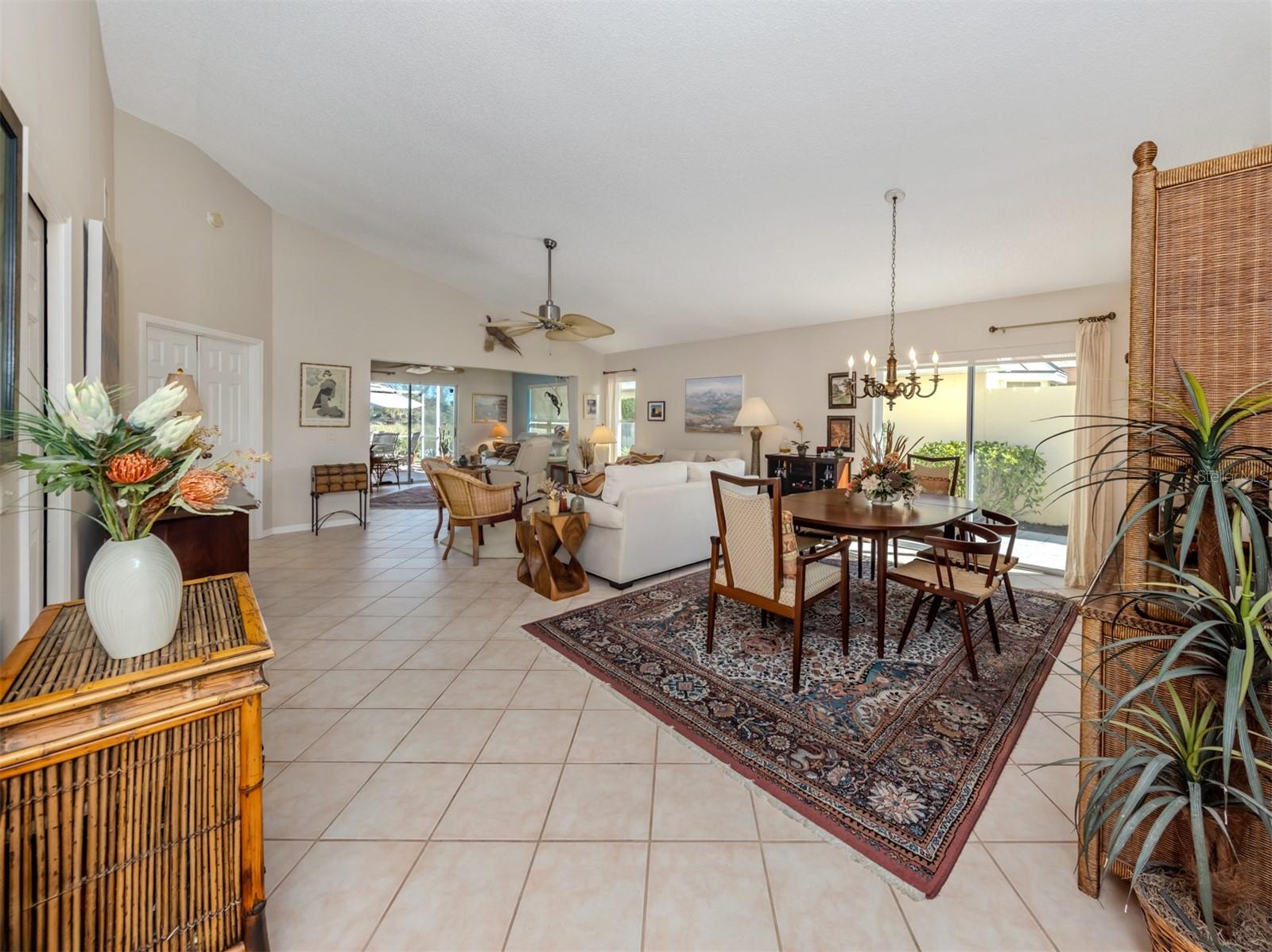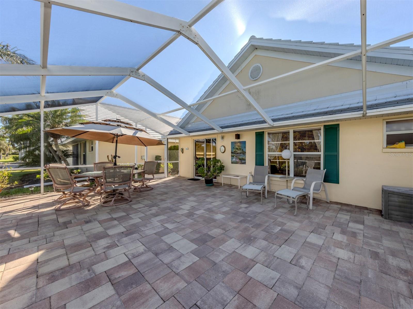 Desirable location with a lake view, privacy, and room for a pool, in Harrington Lake at The Plantation in Venice, Florida. Harrington Lake is a unique maintenance free community of villas with its own pool and very active clubhouse. Beautifully landscaped front entrance welcomes you into this delightful 1492 sq ft villa with an expansive lake view from the living areas. The home has a spacious primary suite and a guest bedroom, both with tastefully updated bathrooms. All floors are tiled except the guest room which is carpeted. Well equipped kitchen with lots of cabinets, and counter space, a kitchen nook, a closet pantry, and recessed lighting. Open dining/living area and family room connect seamlessly with the 20ft by 35ft screened, pavered lanai which draws you to this outdoor living space for entertaining, bird watching, or just enjoying the view. A pavered side patio , accessible from the kitchen and dining area, is perfect for barbequing, and enjoying morning coffee. The villa has been replumbed. Roof was replaced in April 2022. 2 car attached garage. The Plantation Golf & Country Club is nearby where a choice of memberships are available if you wish to join. A number of Florida's Gulf Coast beaches are 15 minutes away. Within a short drive there is everything to discover....historic Downtown Venice, vibrant Wellen Park, Cool Today Stadium, theater, performing arts, and limitless events and activities. Restaurants, shopping, and all services are conveniently located close to home.
