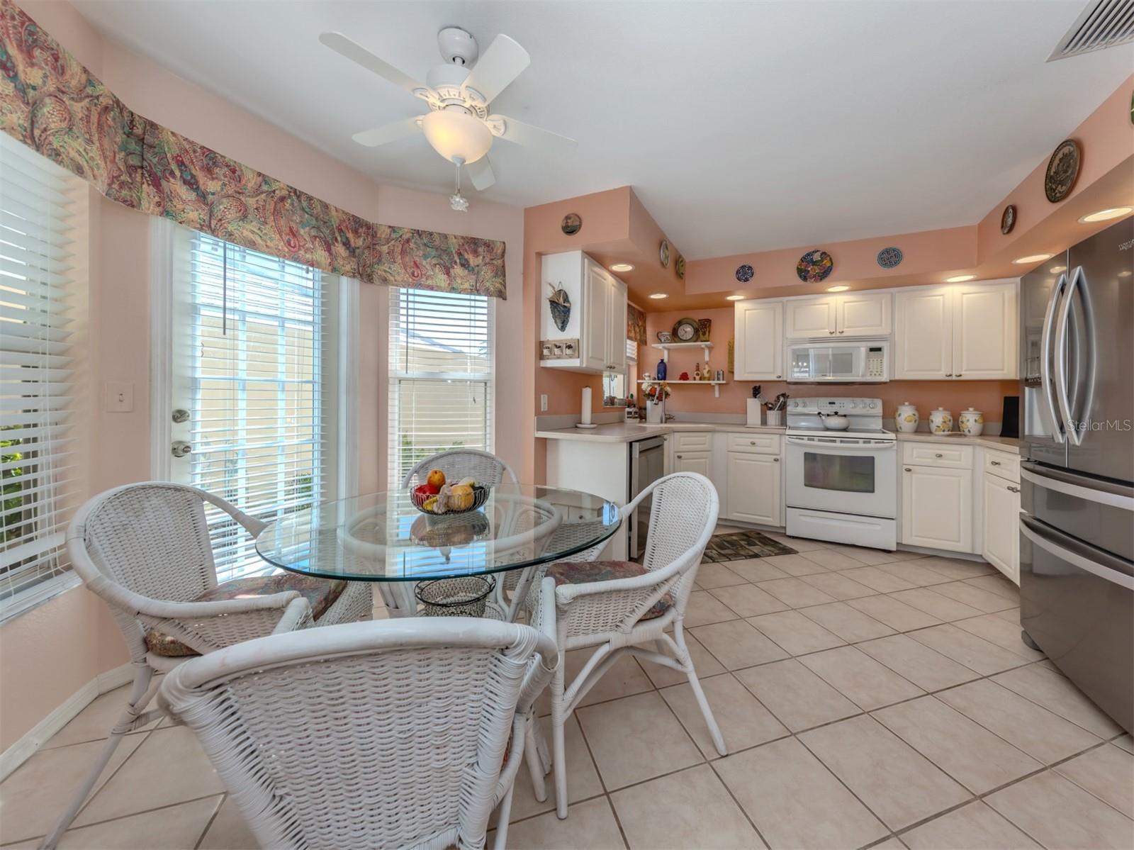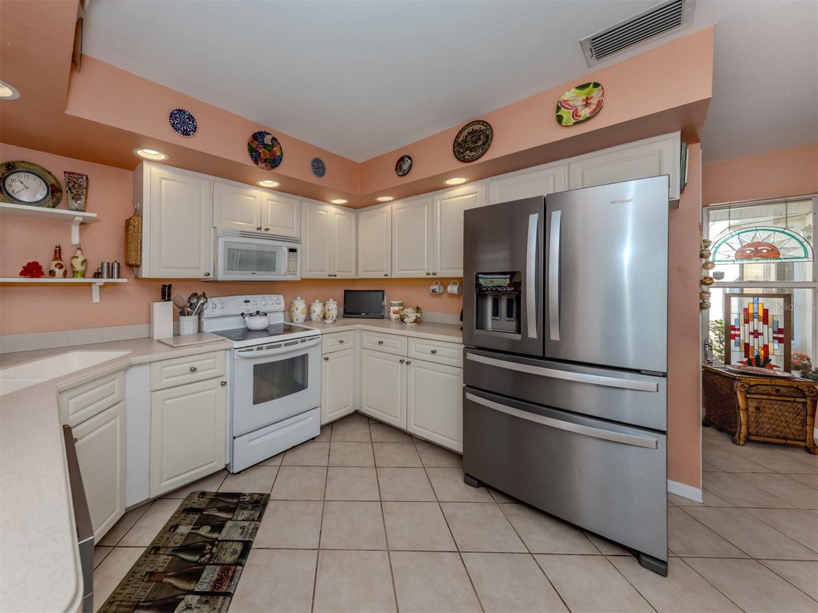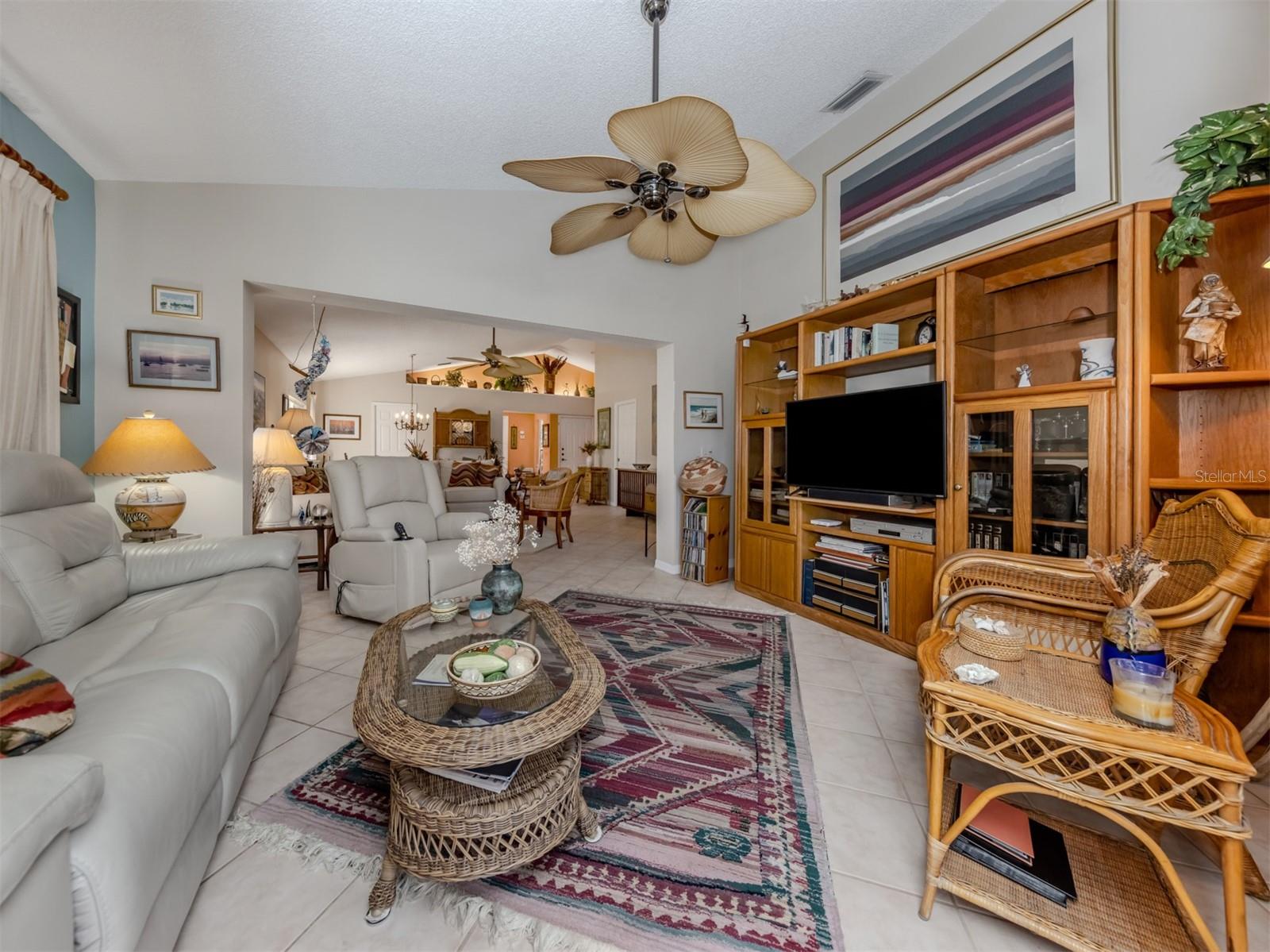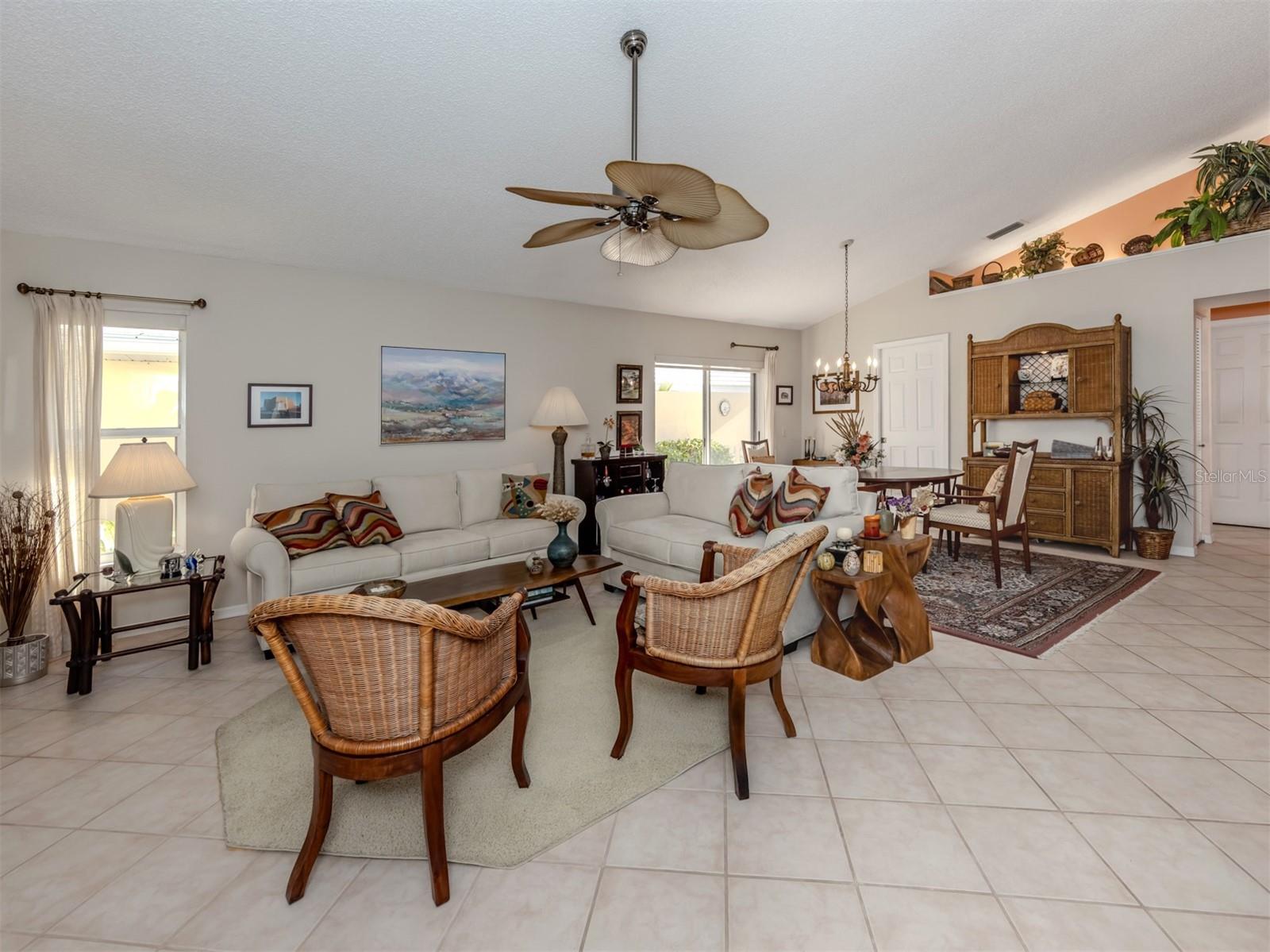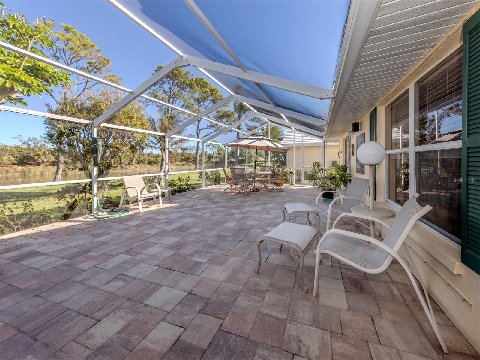 Desirable location with a lake view, privacy, and room for a pool, in Harrington Lake at The Plantation in Venice, Florida. Harrington Lake is a unique maintenance free community of villas with its own pool and very active clubhouse. Beautifully landscaped front entrance welcomes you into this delightful 1492 sq ft villa with an expansive lake view from the living areas. The home has a spacious primary suite and a guest bedroom, both with tastefully updated bathrooms. All floors are tiled except the guest room which is carpeted. Well equipped kitchen with lots of cabinets, and counter space, a kitchen nook, a closet pantry, and recessed lighting. Open dining/living area and family room connect seamlessly with the 20ft by 35ft screened, pavered lanai which draws you to this outdoor living space for entertaining, bird watching, or just enjoying the view. A pavered side patio , accessible from the kitchen and dining area, is perfect for barbequing, and enjoying morning coffee. The villa has been replumbed. Roof was replaced in April 2022. 2 car attached garage. The Plantation Golf & Country Club is nearby where a choice of memberships are available if you wish to join. A number of Florida's Gulf Coast beaches are 15 minutes away. Within a short drive there is everything to discover....historic Downtown Venice, vibrant Wellen Park, Cool Today Stadium, theater, performing arts, and limitless events and activities. Restaurants, shopping, and all services are conveniently located close to home.