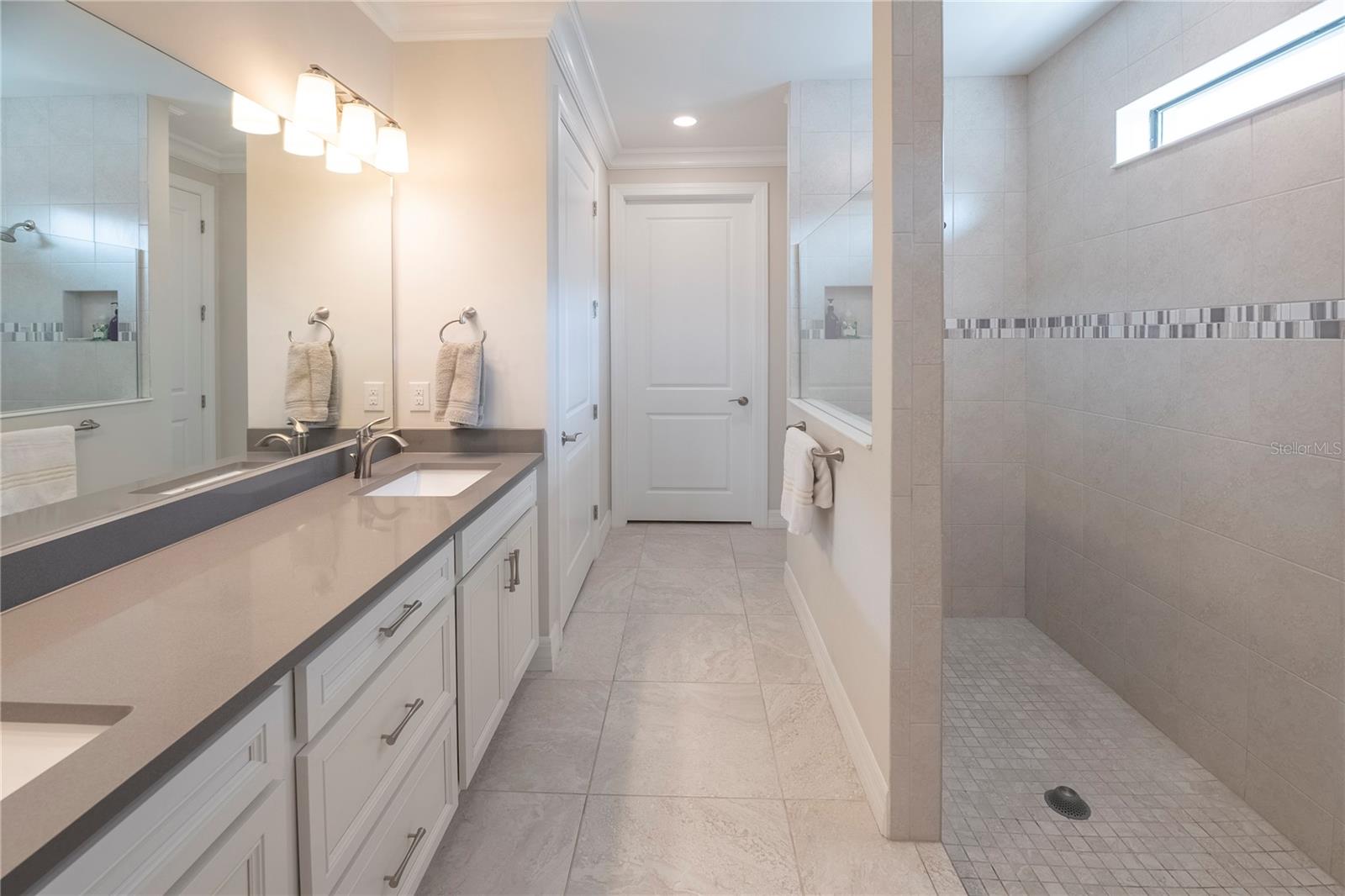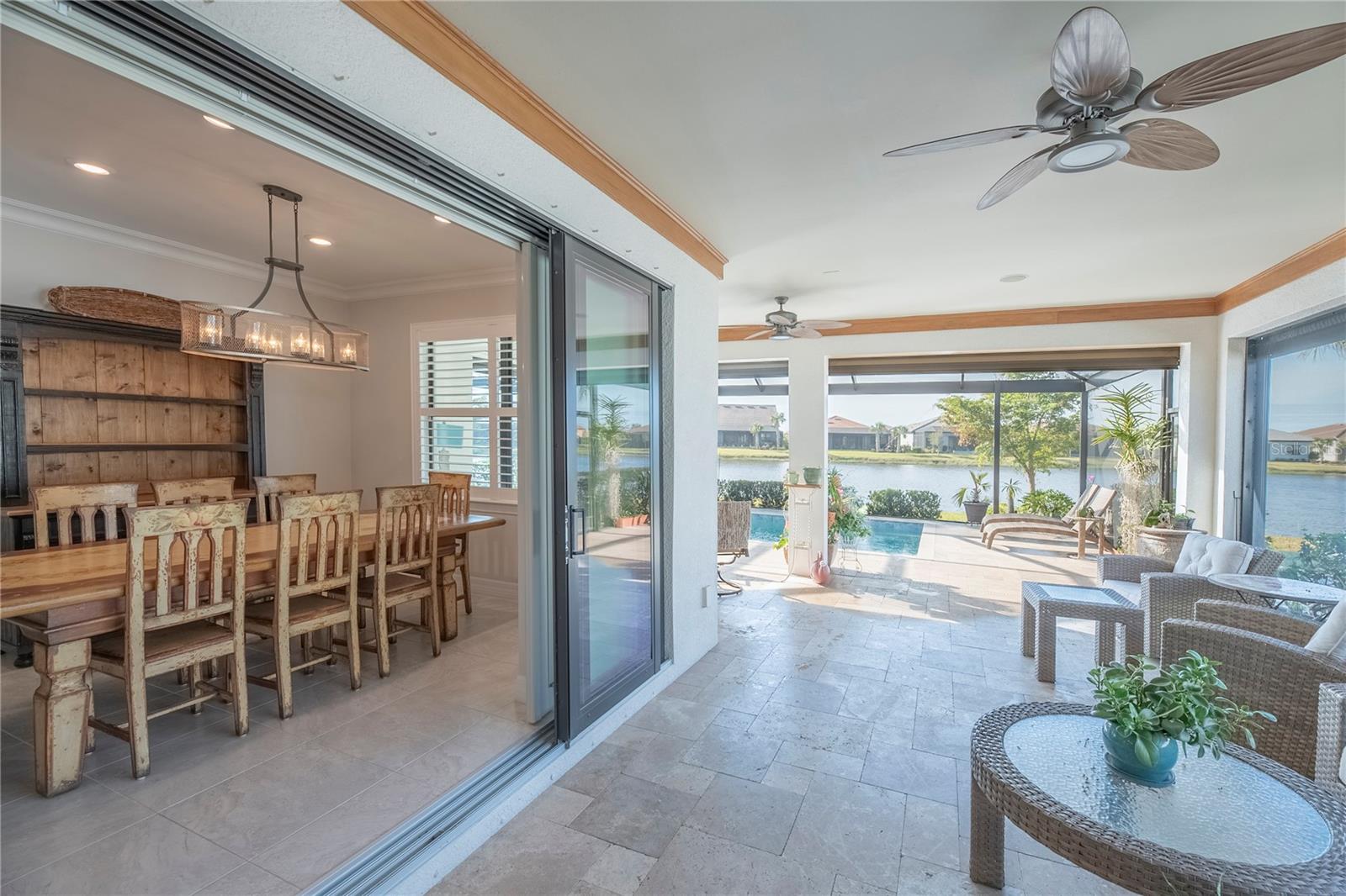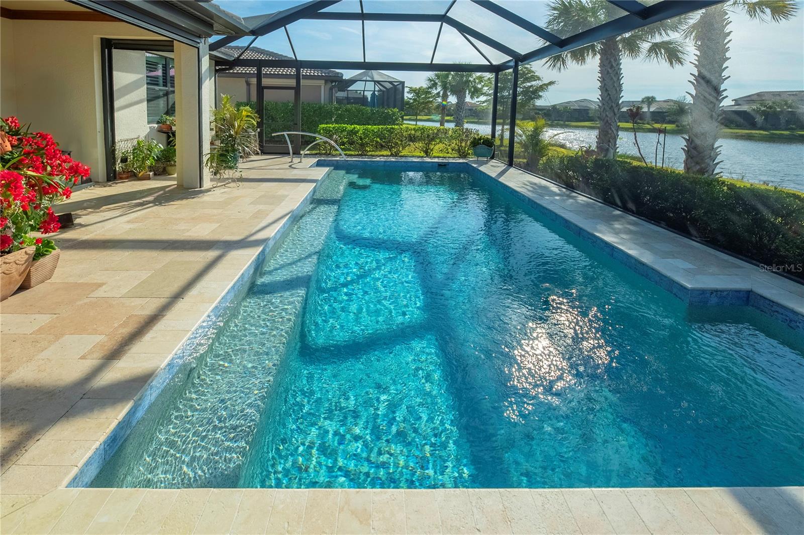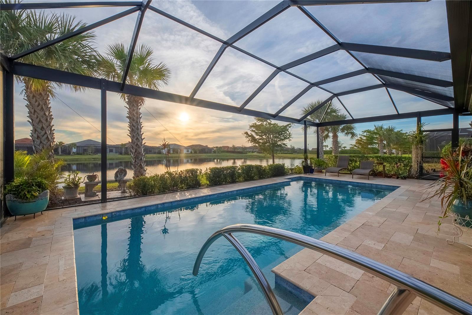 Welcome to Islandwalk, Venice’s premier resort-style community, where this stunning pool home offers breathtaking lake views. The sought-after Summerwood model, just four years new, features three bedrooms plus a bonus room enclosed with French doors—ideal as a fourth bedroom, office, or flex space. Step into the oversized primary suite through 8-foot doors leading to a spacious en-suite bathroom with dual vanities and a walk-in shower big enough to dance in. At the end of the suite, enjoy direct access to a large walk-in closet. The modern kitchen seamlessly complements plantation shutters throughout, while zero-corner sliding doors (with privacy blinds) create a seamless indoor-outdoor flow. These doors fully open to reveal the lanai and heated saltwater pool, perfect for year-round enjoyment. Situated on a premium waterfront lot, the home offers stunning lake views from the bedroom, kitchen, and living room. The lanai and pool area serve as a tranquil retreat, enhanced by power hurricane blinds, travertine tile flooring, and clear-view screens for unobstructed views. Added electrical outlets accommodate custom landscaping, making this outdoor space even more inviting. Inside, elegant details abound, including 6-1/4” crown molding, plantation shutters, custom trim on 8-foot doors, and upgraded shelving. The laundry room boasts soft-close cabinetry, deep uppers for storage, and a Kohler country sink. The garage is equipped with custom built-in storage, ceiling storage for bins, an insulated garage door for energy efficiency, epoxy flooring, and additional electrical circuitry. Islandwalk offers a vibrant yet serene lifestyle, with golf carts dotting the streets, mature greenery, and year-round activities. Residents enjoy two resort-style amenity centers, a dog park, and miles of scenic trails. The HOA ensures maintenance-free living, covering three pools, pickleball and tennis courts, a state-of-the-art fitness center, community room, exterior landscaping, high-speed internet, and 24-hour staffed security. This home is ideally located near the community exit for quick access to US-41, Tamiami Trail, and I-75. Wellen Park, with its restaurants, concerts, and events, is just five minutes away, while Gulf beaches, historic Venice Island, and local airports are within 25 minutes. Don’t miss your chance—schedule a private tour today! UPGRADES & FEATURES: • Saltwater pool with heater • Clear-view screen enclosure • Hurricane power blinds enclosing the lanai • Crown molding in every room • Oversized tile in living spaces • Additional electrical for landscaping lights • Zero-corner sliding doors with privacy blinds • Living room & lanai pre-wired for speakers • Cypress wood accents on front door and lanai ceiling trim • Five interior ceiling fans & two exterior lanai fans • Widened driveway & additional paver walkway • Custom art glass at front door • Custom cabinetry & shelving in laundry, pantry & closet • Custom sink & faucet in laundry room • living room and lanai are pre-wired for speakers • Cypress wood accents above the front door and on entire lanai ceiling trim • Ultra-high-end garage built-ins & storage solutions • Epoxy garage floor & additional electrical circuitry • Tile backsplash in kitchen • Custom tropical landscaping • Built-in computer desk & foyer ledge