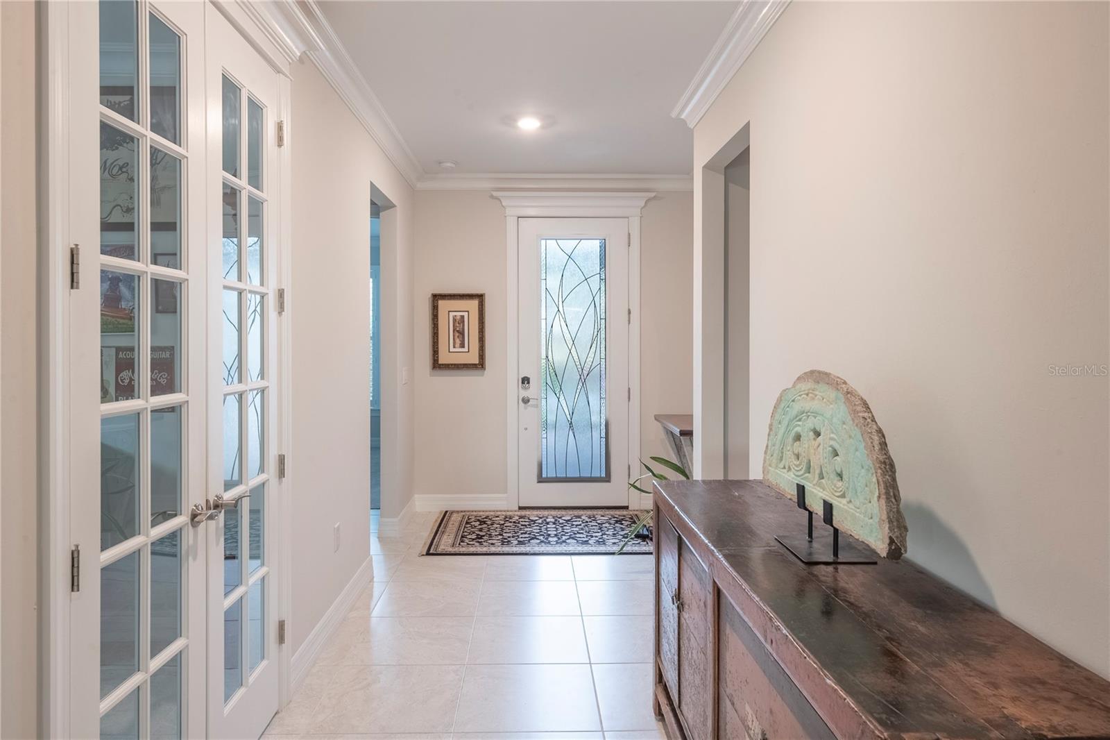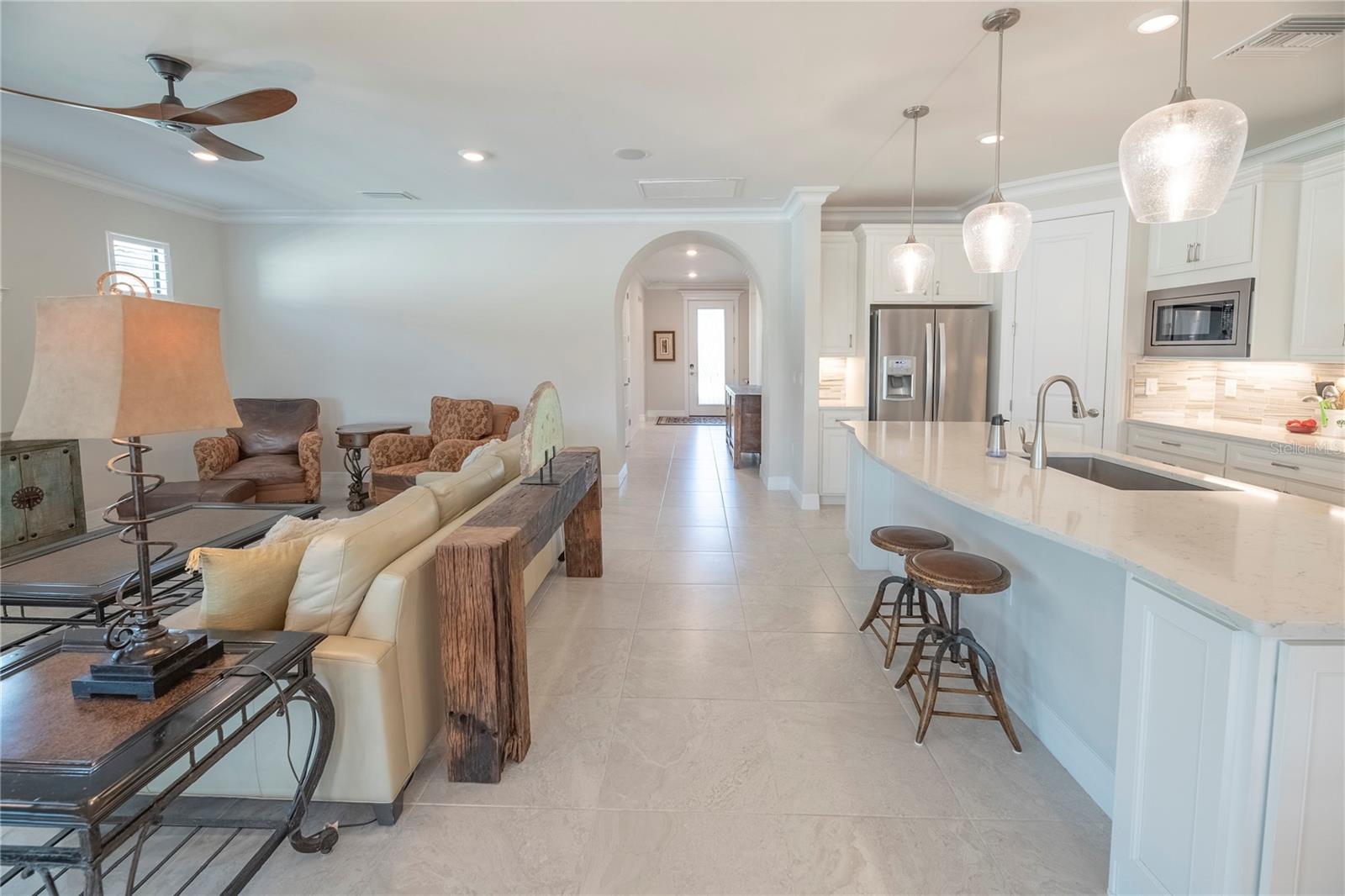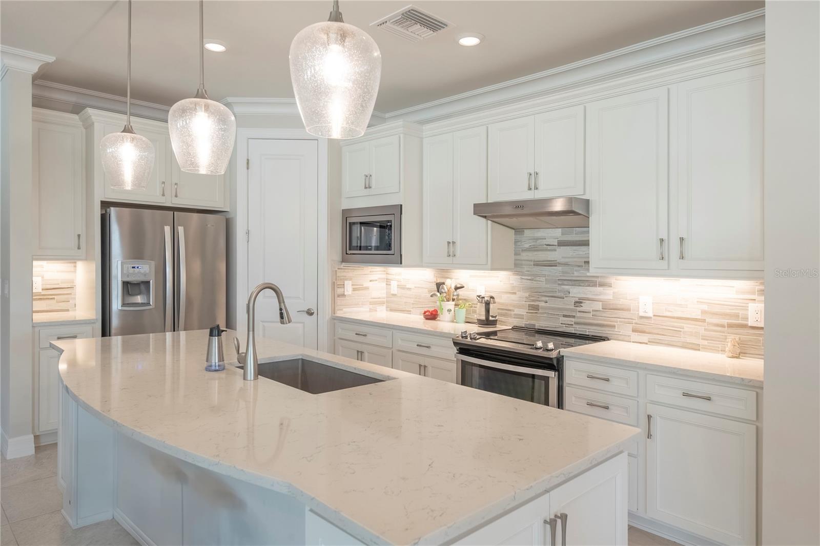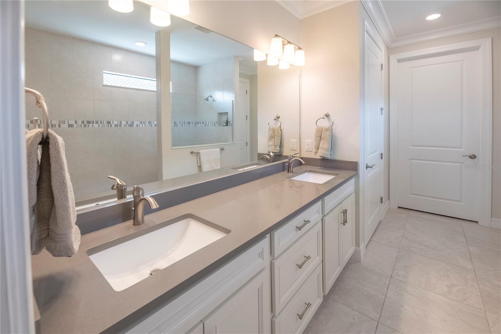 Welcome to Islandwalk, Venice’s premier resort-style community, where this stunning pool home offers breathtaking lake views. The sought-after Summerwood model, just four years new, features three bedrooms plus a bonus room enclosed with French doors—ideal as a fourth bedroom, office, or flex space. Step into the oversized primary suite through 8-foot doors leading to a spacious en-suite bathroom with dual vanities and a walk-in shower big enough to dance in. At the end of the suite, enjoy direct access to a large walk-in closet. The modern kitchen seamlessly complements plantation shutters throughout, while zero-corner sliding doors (with privacy blinds) create a seamless indoor-outdoor flow. These doors fully open to reveal the lanai and heated saltwater pool, perfect for year-round enjoyment. Situated on a premium waterfront lot, the home offers stunning lake views from the bedroom, kitchen, and living room. The lanai and pool area serve as a tranquil retreat, enhanced by power hurricane blinds, travertine tile flooring, and clear-view screens for unobstructed views. Added electrical outlets accommodate custom landscaping, making this outdoor space even more inviting. Inside, elegant details abound, including 6-1/4” crown molding, plantation shutters, custom trim on 8-foot doors, and upgraded shelving. The laundry room boasts soft-close cabinetry, deep uppers for storage, and a Kohler country sink. The garage is equipped with custom built-in storage, ceiling storage for bins, an insulated garage door for energy efficiency, epoxy flooring, and additional electrical circuitry. Islandwalk offers a vibrant yet serene lifestyle, with golf carts dotting the streets, mature greenery, and year-round activities. Residents enjoy two resort-style amenity centers, a dog park, and miles of scenic trails. The HOA ensures maintenance-free living, covering three pools, pickleball and tennis courts, a state-of-the-art fitness center, community room, exterior landscaping, high-speed internet, and 24-hour staffed security. This home is ideally located near the community exit for quick access to US-41, Tamiami Trail, and I-75. Wellen Park, with its restaurants, concerts, and events, is just five minutes away, while Gulf beaches, historic Venice Island, and local airports are within 25 minutes. Don’t miss your chance—schedule a private tour today! UPGRADES & FEATURES: • Saltwater pool with heater • Clear-view screen enclosure • Hurricane power blinds enclosing the lanai • Crown molding in every room • Oversized tile in living spaces • Additional electrical for landscaping lights • Zero-corner sliding doors with privacy blinds • Living room & lanai pre-wired for speakers • Cypress wood accents on front door and lanai ceiling trim • Five interior ceiling fans & two exterior lanai fans • Widened driveway & additional paver walkway • Custom art glass at front door • Custom cabinetry & shelving in laundry, pantry & closet • Custom sink & faucet in laundry room • living room and lanai are pre-wired for speakers • Cypress wood accents above the front door and on entire lanai ceiling trim • Ultra-high-end garage built-ins & storage solutions • Epoxy garage floor & additional electrical circuitry • Tile backsplash in kitchen • Custom tropical landscaping • Built-in computer desk & foyer ledge
