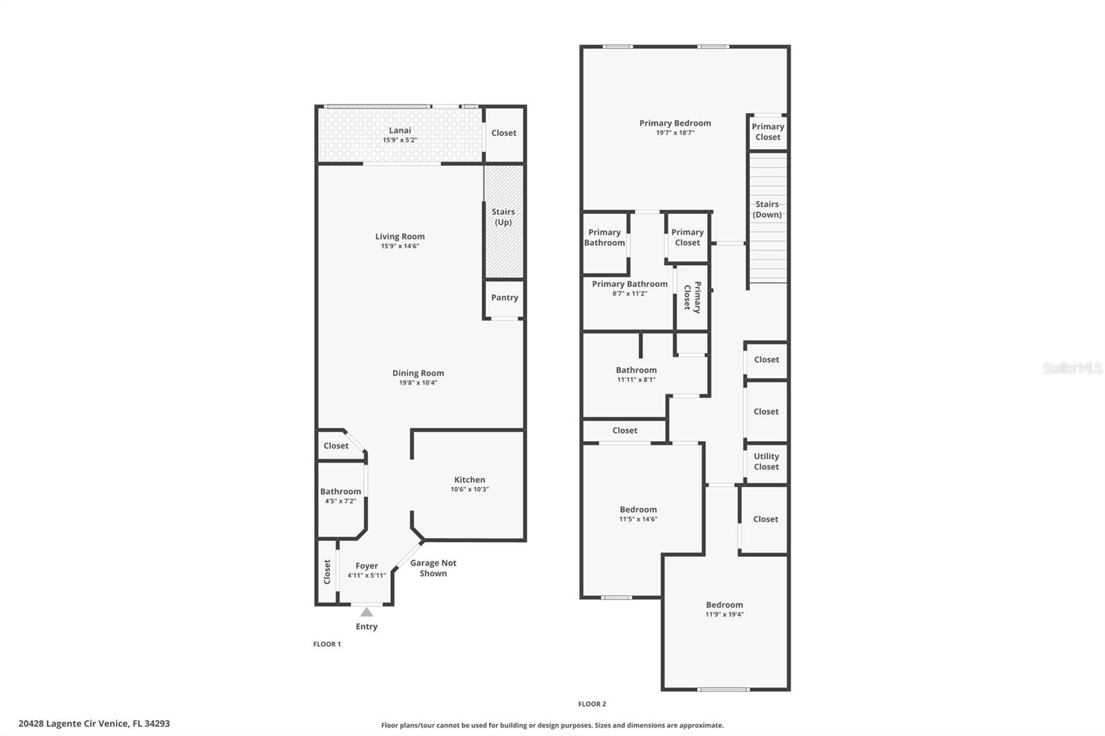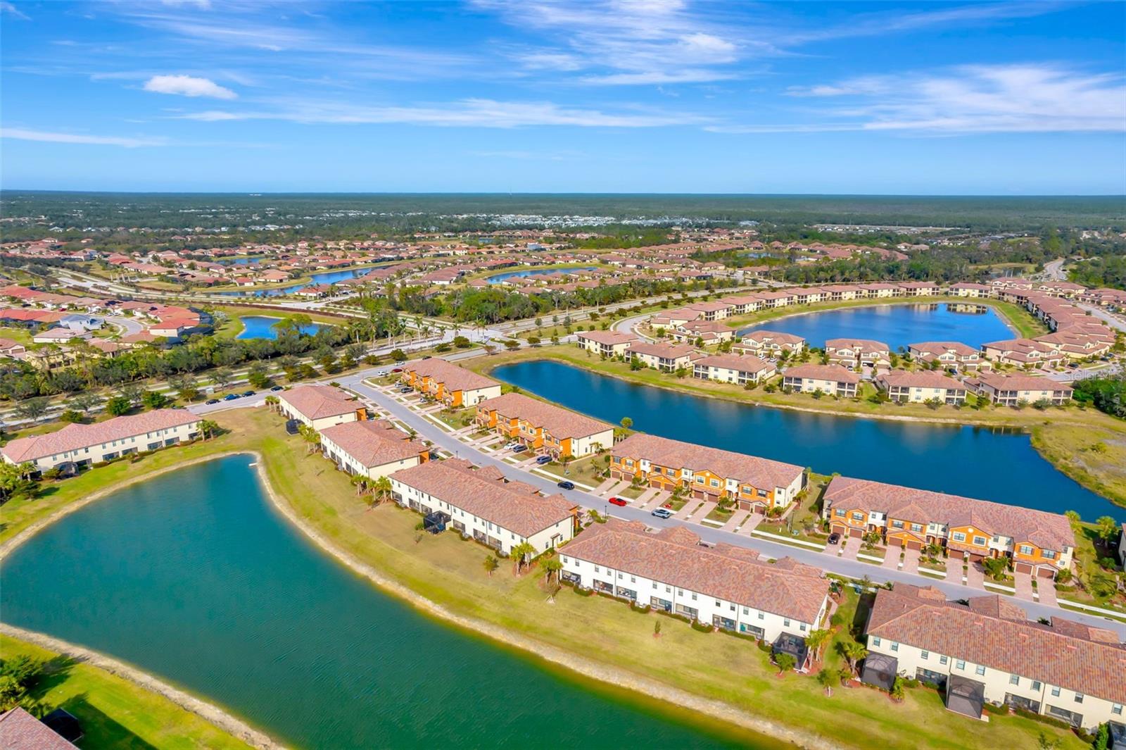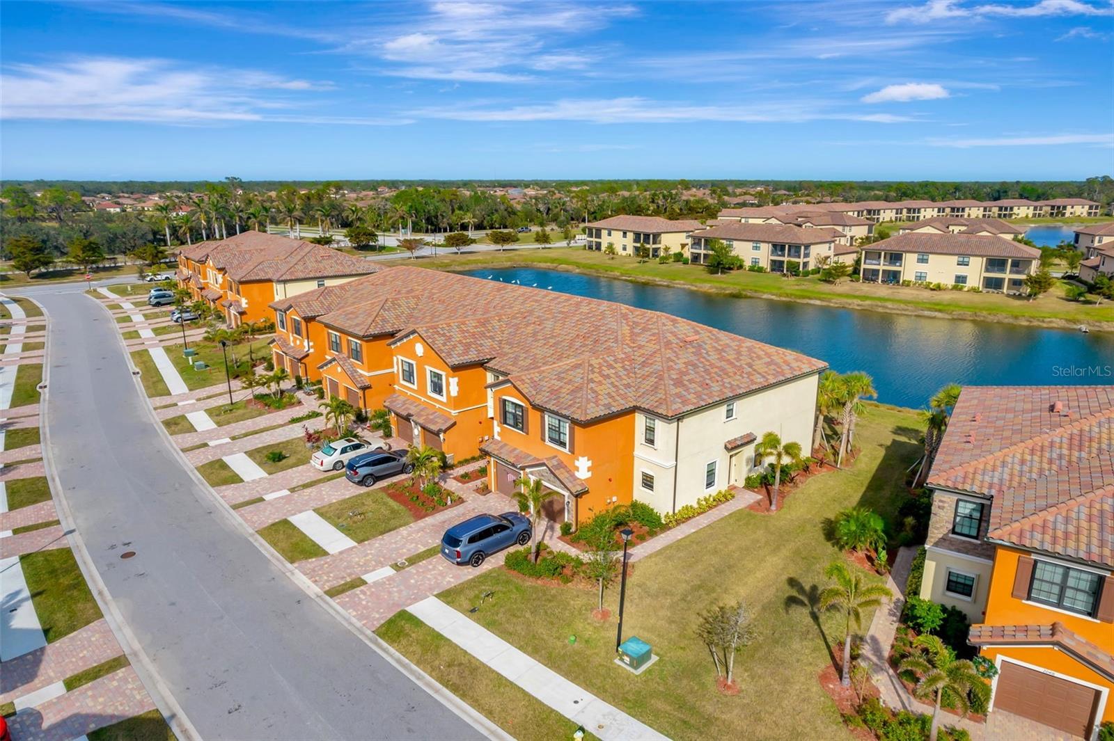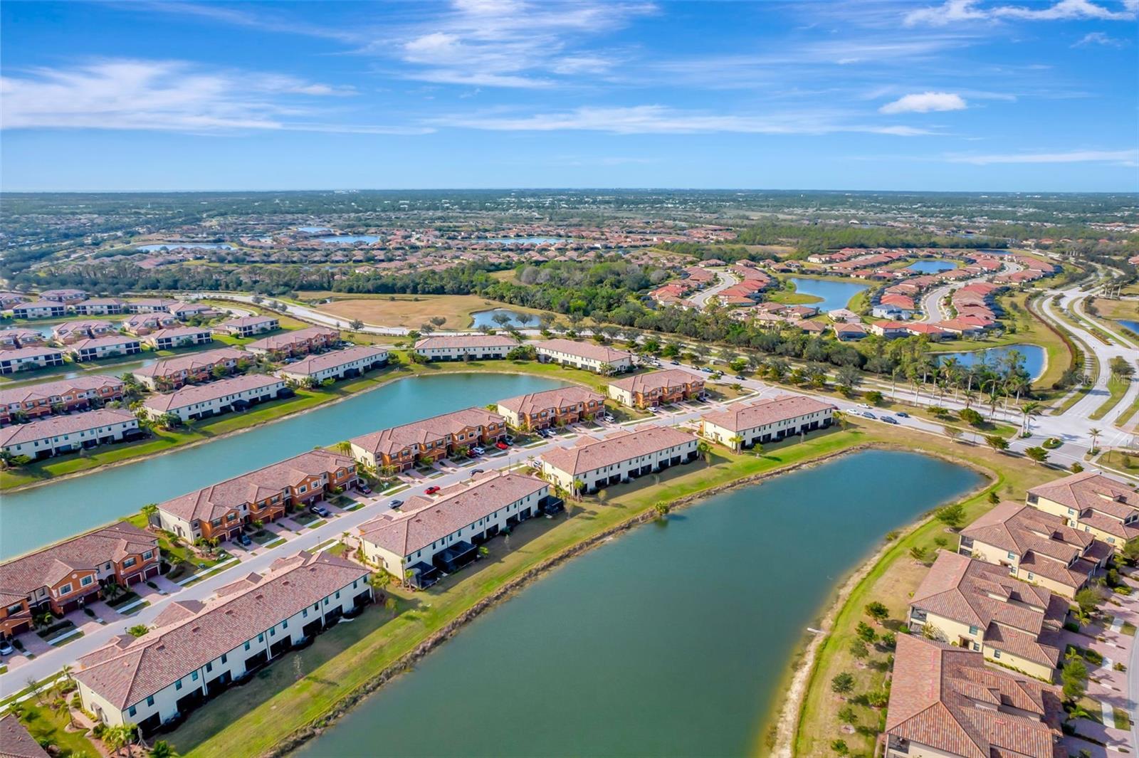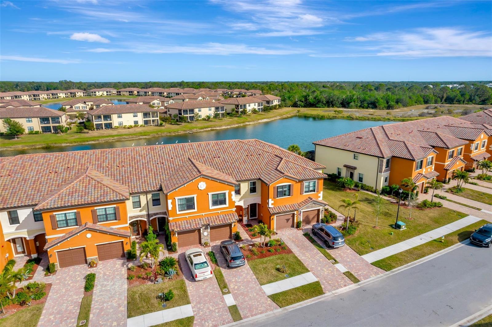 Very welcoming and beautifully presented, modern and elegant, owner-occupied townhome with 3 bedroom, 2.5 bathroom nestled in the desirable, resort style community of Gran Paradiso in Wellen Park in Venice. This charming, meticulously crafted townhome blends convenience with style. Enjoy an open floor plan, spacious and bright, great features and upgrades. The first-floor tiled throughout offers spacious foyer, living/dining room combo, beautifully remodeled kitchen with real wood cabinets, granite countertops and stainless-steel appliances, a large pantry closet, convenient half-bath and an extra storage space beneath the staircase. Enjoy the beautiful water view from your screened lanai. The 2nd floor features a large Primary suite with bathroom and 2 walk-in closets, double sinks, linen closet and large shower. There are also 2 additional, good size bedrooms, full size bathroom, and a laundry closet. Attached, one car garage offers extra storage space with added shelving and ceiling racking. NOT in the Flood Zone! This beautiful home has been professionally repainted, updated with a water purification system, folding hurricane shutters on the 2nd floor, screen for the front door and surge protector. HOA fees include cable tv and internet. Gran Paradiso, Tuscan inspired resort style community has a large range of amenities for homeowners to enjoy all year round: pool, fitness center, aerobics room, game room, poker/pool room, library, tennis and pickleball courts, basketball court, and much, much more. This beautiful home combines all you need to enjoy living in the Sunshine State: comfort, style, and an excellent location. Just off US-41 for easy commuting and right in the master planned and nationwide popular Wellen Park with it`s beautiful brand-new downtown, large lake offering water sports, walking trails, up-scale restaurants to dine and many places to entertain and socialize with weekly live music events. Only 10 miles from Historic downtown in Venice Island. Pristine, world-famous beaches on the Gulf of Mexico like MANASOTA BEACH, VENICE BEACH, CASPERSEN BEACH are just 15-20 minutes drive away. Don`t miss out. Paradise awaits!
