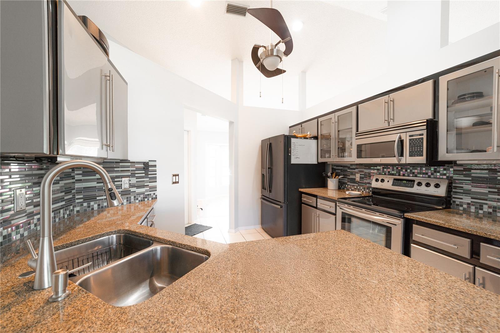 Brand New Roof installed in January 2025! Welcome to this charming 3-bedroom, 2-bathroom home in the highly desirable Lake of the Woods community, where you can enjoy the best of Venice living without CDD fees and a low HOA. The large master bedroom is thoughtfully located on one side of the house for added privacy and features two walk-in closets and an en-suite bathroom. Fresh interior paint gives the home a bright, clean look and is complemented by new luxury vinyl flooring in the main living area (installed November 2024), modern light fixtures, and abundant windows that fill the space with natural light. The kitchen offers everything you need, including granite countertops, a glass tile backsplash, and stainless-steel appliances - functional and ready for your personal touch. Two additional bedrooms, each with walk-in closets, provide ample storage and comfort for family, guests, or home office. No more trips to the garage, enjoy the convenience of an indoor laundry room. Newly installed garage door December 2024 enhances curb appeal. Lake of the Woods offers beautiful sidewalks and walking trails, ideal for leisurely strolls or active outdoor living. This family-oriented neighborhood is just minutes from the vibrant Wellen Park, featuring activities for all ages, as well as downtown Venice, where you can explore shopping, dining, entertainment, and some of the most beautiful beaches in the world. Don't Miss Out! This home is a true gem in a fantastic location. Schedule your private showing today!