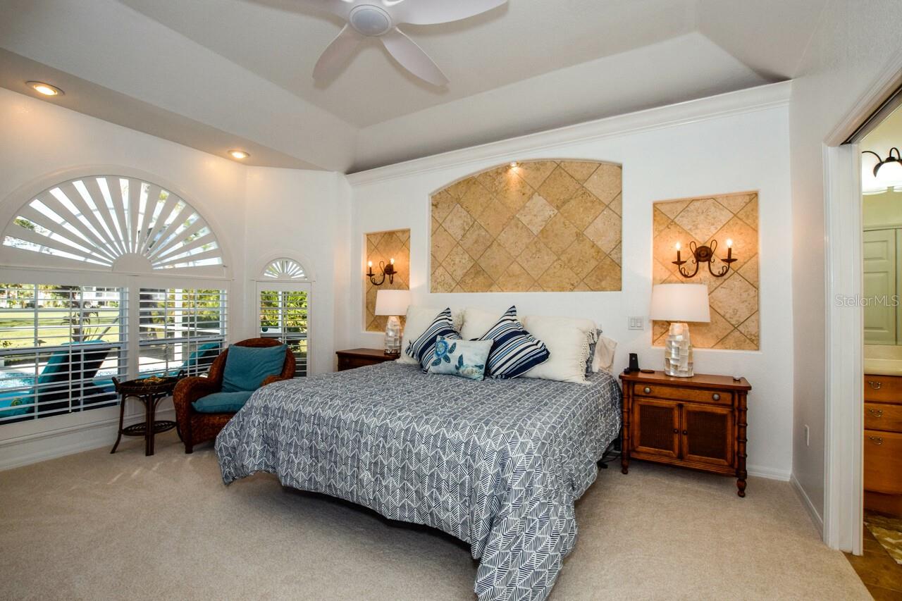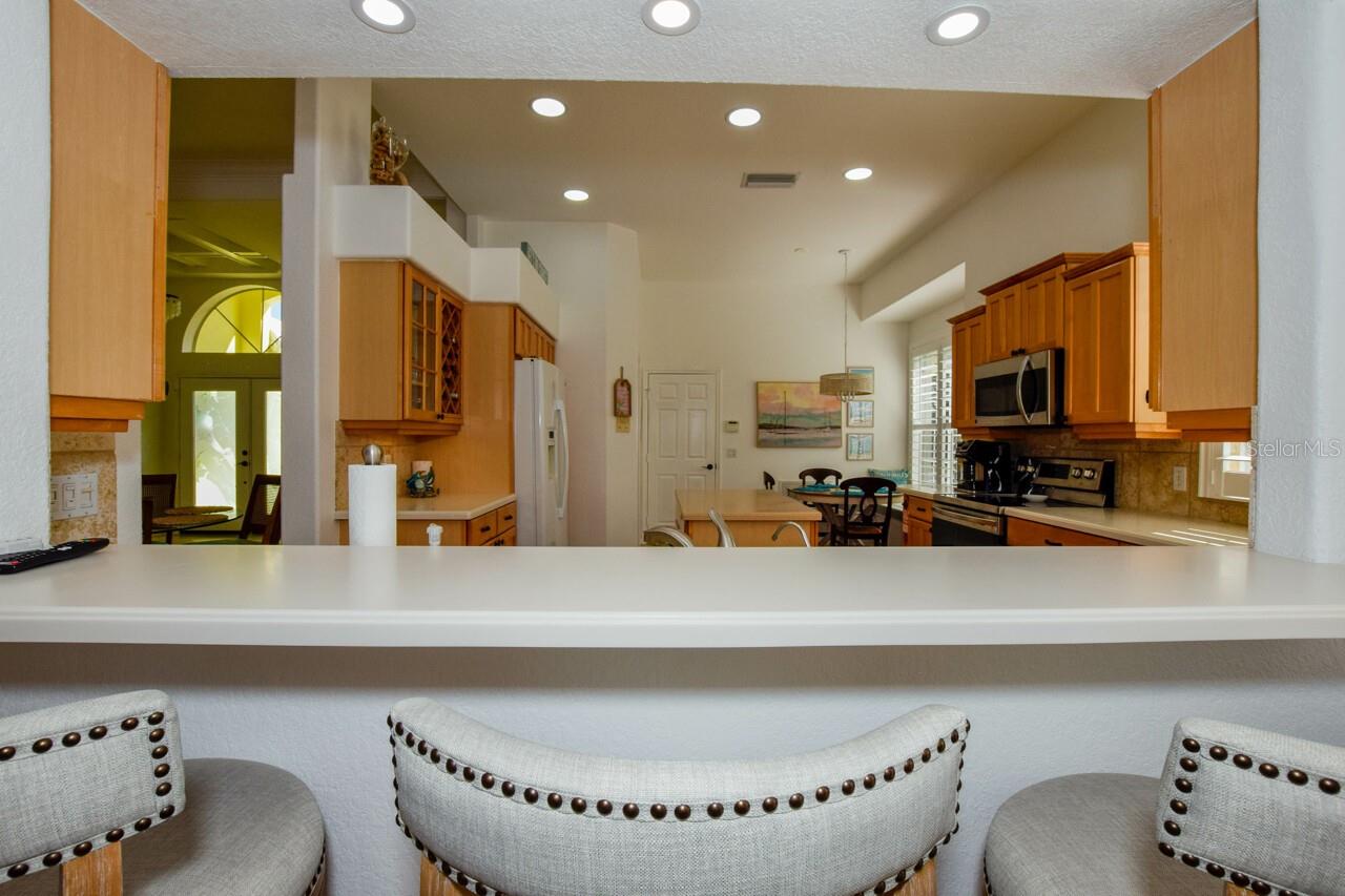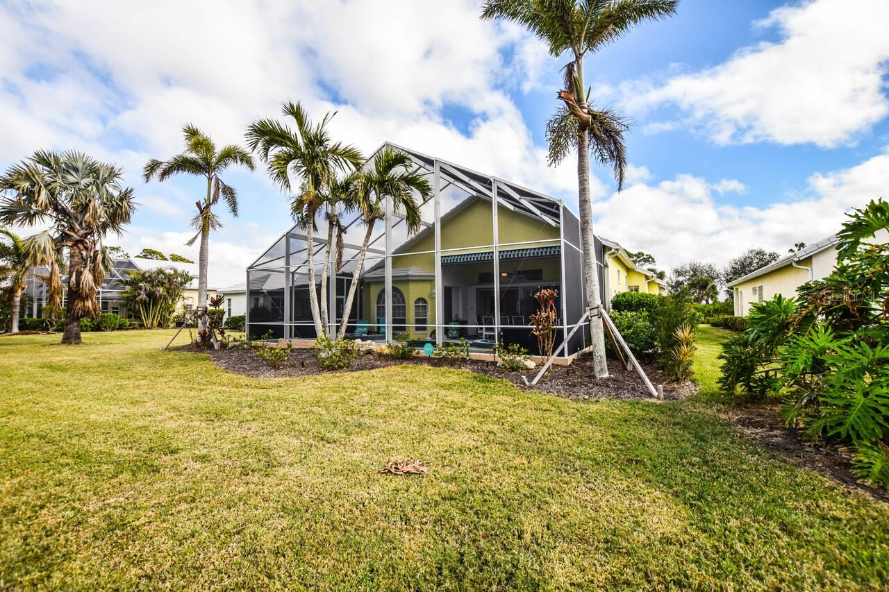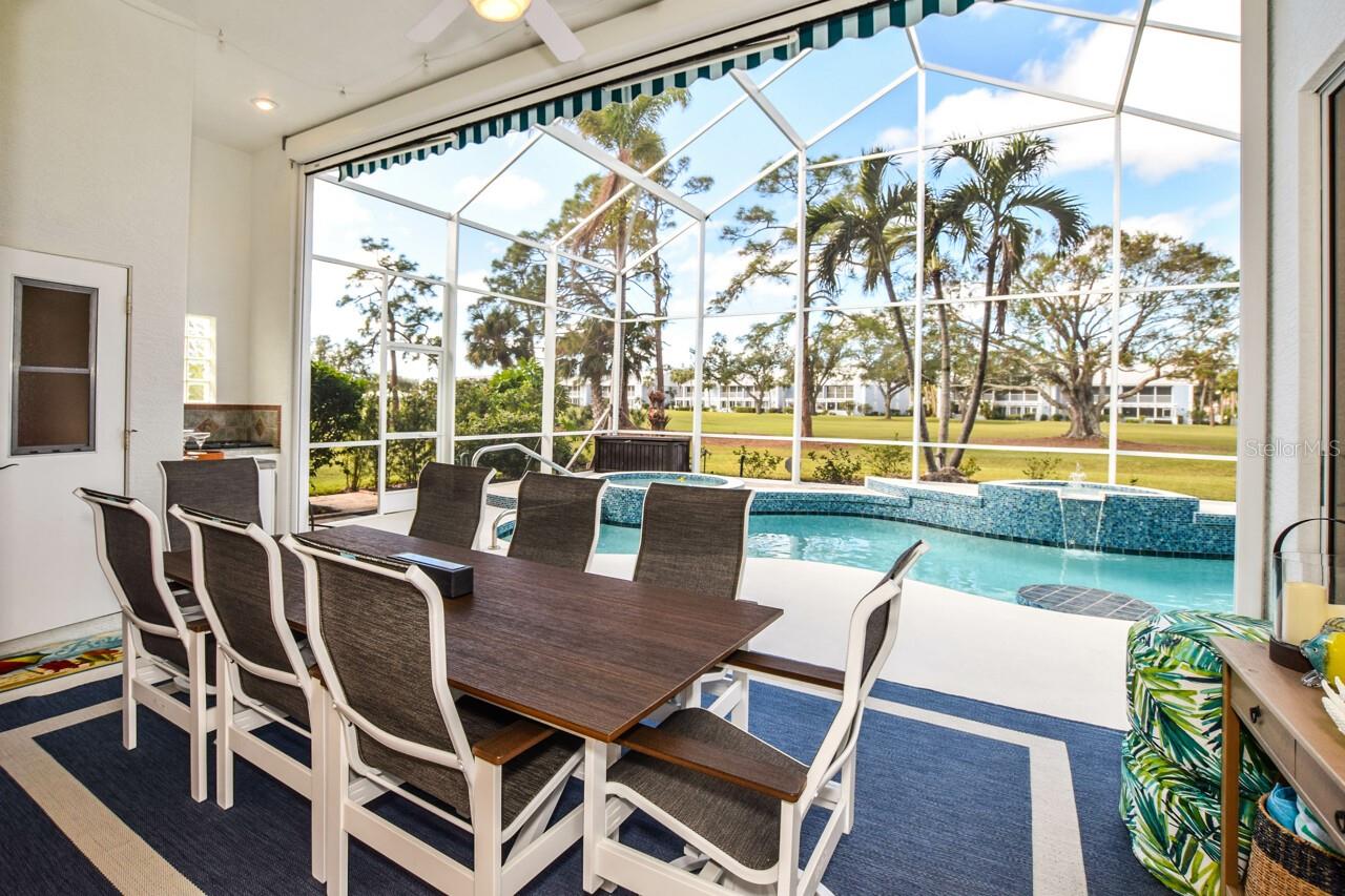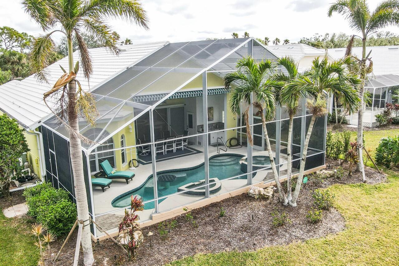 Welcome to this stunning pool home with a wonderful golf course view. This meticulously maintained home boasts freshly painted walls and ceilings, brand new landscape around home and all new sod, new landscape lighting and irrigation heads (2024). Brand new plantation shutters throughout the home, fresh paint on walls and ceilings, new lighting, and let us not forget the completely renovated pool (2024). The pool was resurfaced with glass tile sparkles for added reflection, beautiful glass tile walls, spa and fountain. Newer pool pump and reconditioned pool heater. You will feel relaxation the minute you open the front doors to the open dining and living room. The view of the 2nd hole on Bobcat at the Plantation Golf and Country Club is a showstopper. Unwind in the pool’s spa, grab or drink or grill out by the outdoor kitchen or just sit on the in-pool bar seating. Open the brand-new retractable awning or extend the living room TV to catch the game. The design elements in this home are worth your perusal. The new electronic hurricane blind descends with the touch of a button to protect this home from weather and also can be used as a sunshade for those who seek it. The primary bedroom is located poolside, complete with a beautiful ensuite bathroom features a jetted tub, separate walk-in dual head shower, double sinks, enclosed water closet, linen closet and a large walk-in closet. All bedrooms have new (2025) antimicrobial carpet and pads. Bedroom 2 has built-in closet and wonderful view and Bedroom 3 has ample storage and can also be used as an office/sitting room. The kitchen is full of light and open to the living room has a reverse osmosis system, wine rack cupboard and undercabinet lighting. The eat-in banquette is a great place to relax on custom cushions and provides added storage. Conveniently located to this space is an office/butler’s pantry/mudroom. The 2 car garage has ample storage with access to attic storage. This home was previously loved by 2 new retirees that embraced this home and are sure you will too. Give it a look! The Plantation area is a wonderful place, the people here are so friendly. It’s a great place to learn to be retired, learn new things, find wonderful friendships, and embrace life. It all starts here! See you soon!