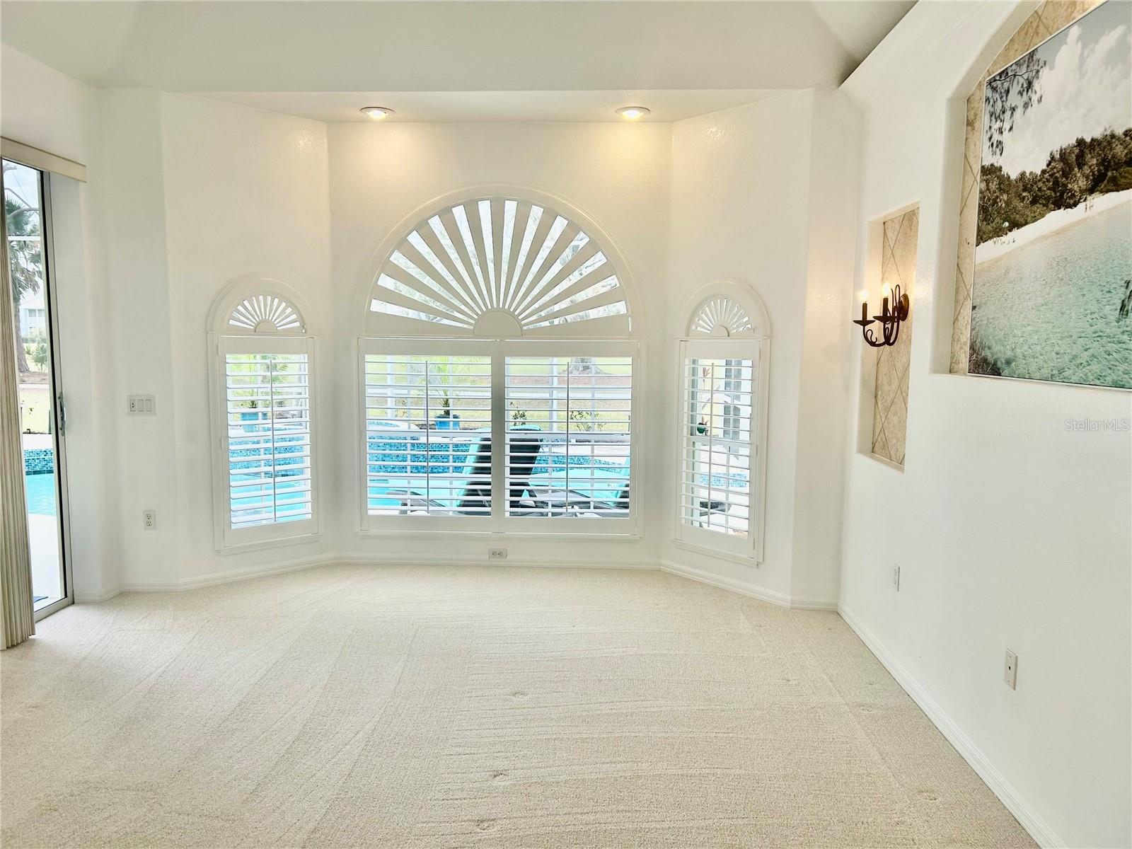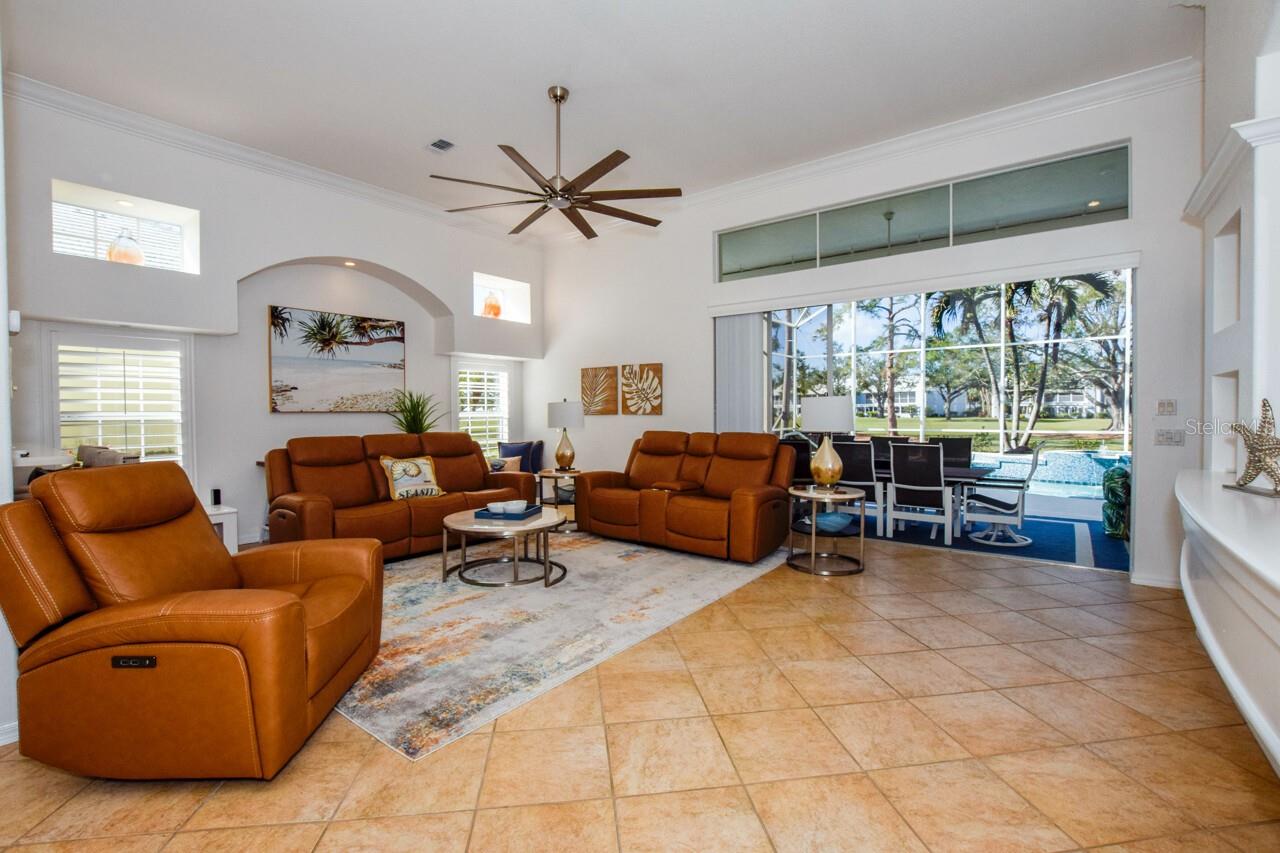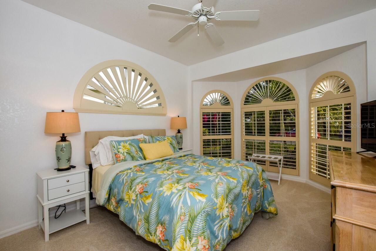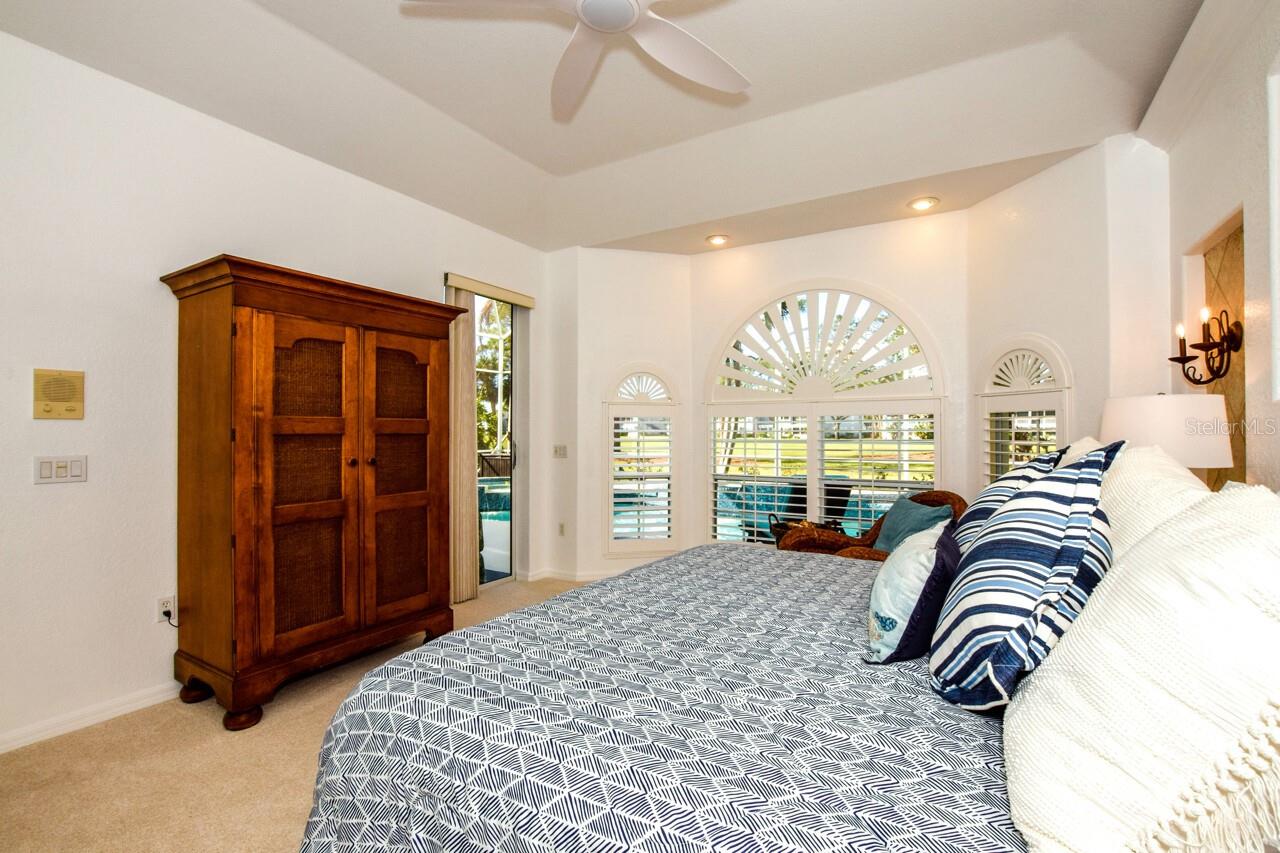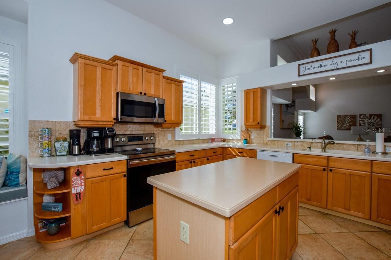 Welcome to this stunning pool home with a wonderful golf course view. This meticulously maintained home boasts freshly painted walls and ceilings, brand new landscape around home and all new sod, new landscape lighting and irrigation heads (2024). Brand new plantation shutters throughout the home, fresh paint on walls and ceilings, new lighting, and let us not forget the completely renovated pool (2024). The pool was resurfaced with glass tile sparkles for added reflection, beautiful glass tile walls, spa and fountain. Newer pool pump and reconditioned pool heater. You will feel relaxation the minute you open the front doors to the open dining and living room. The view of the 2nd hole on Bobcat at the Plantation Golf and Country Club is a showstopper. Unwind in the pool’s spa, grab or drink or grill out by the outdoor kitchen or just sit on the in-pool bar seating. Open the brand-new retractable awning or extend the living room TV to catch the game. The design elements in this home are worth your perusal. The new electronic hurricane blind descends with the touch of a button to protect this home from weather and also can be used as a sunshade for those who seek it. The primary bedroom is located poolside, complete with a beautiful ensuite bathroom features a jetted tub, separate walk-in dual head shower, double sinks, enclosed water closet, linen closet and a large walk-in closet. All bedrooms have new (2025) antimicrobial carpet and pads. Bedroom 2 has built-in closet and wonderful view and Bedroom 3 has ample storage and can also be used as an office/sitting room. The kitchen is full of light and open to the living room has a reverse osmosis system, wine rack cupboard and undercabinet lighting. The eat-in banquette is a great place to relax on custom cushions and provides added storage. Conveniently located to this space is an office/butler’s pantry/mudroom. The 2 car garage has ample storage with access to attic storage. This home was previously loved by 2 new retirees that embraced this home and are sure you will too. Give it a look! The Plantation area is a wonderful place, the people here are so friendly. It’s a great place to learn to be retired, learn new things, find wonderful friendships, and embrace life. It all starts here! See you soon!
