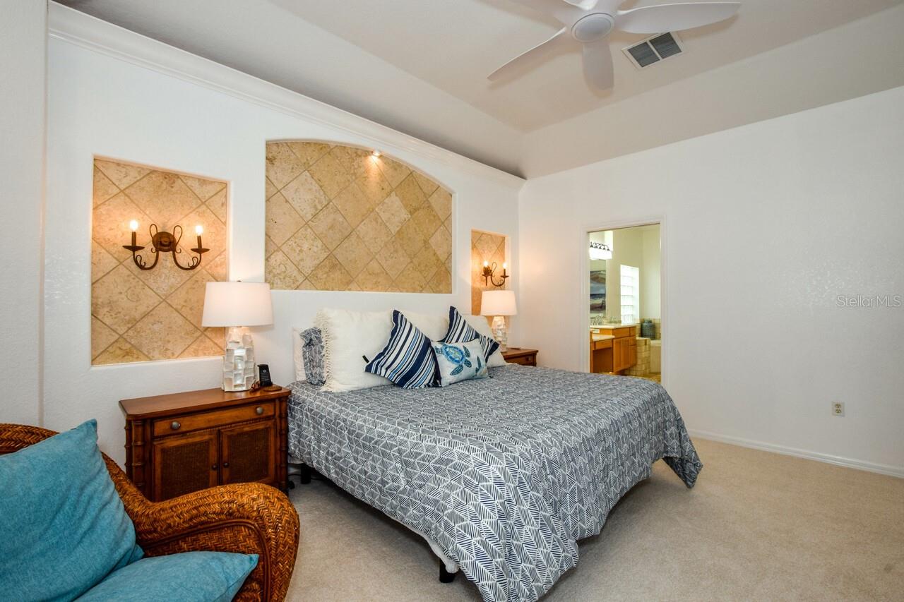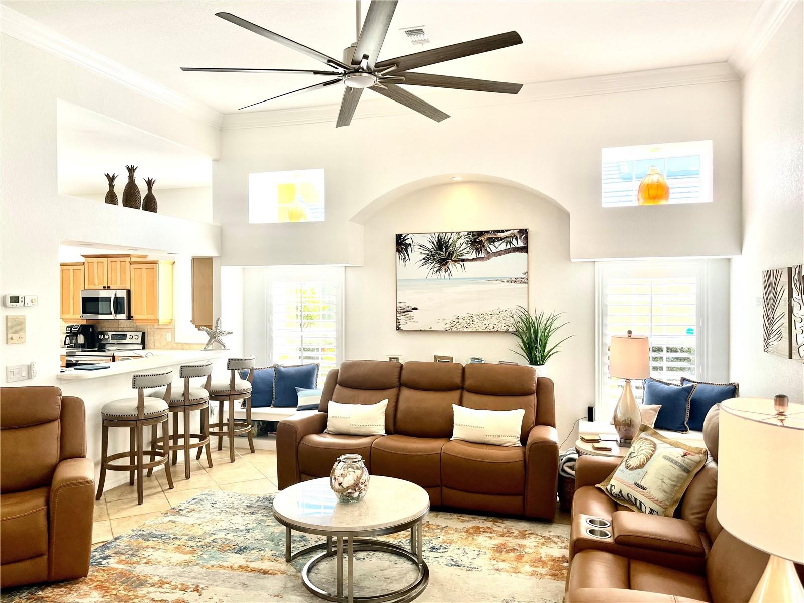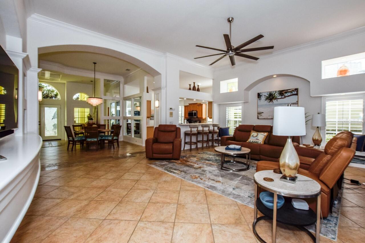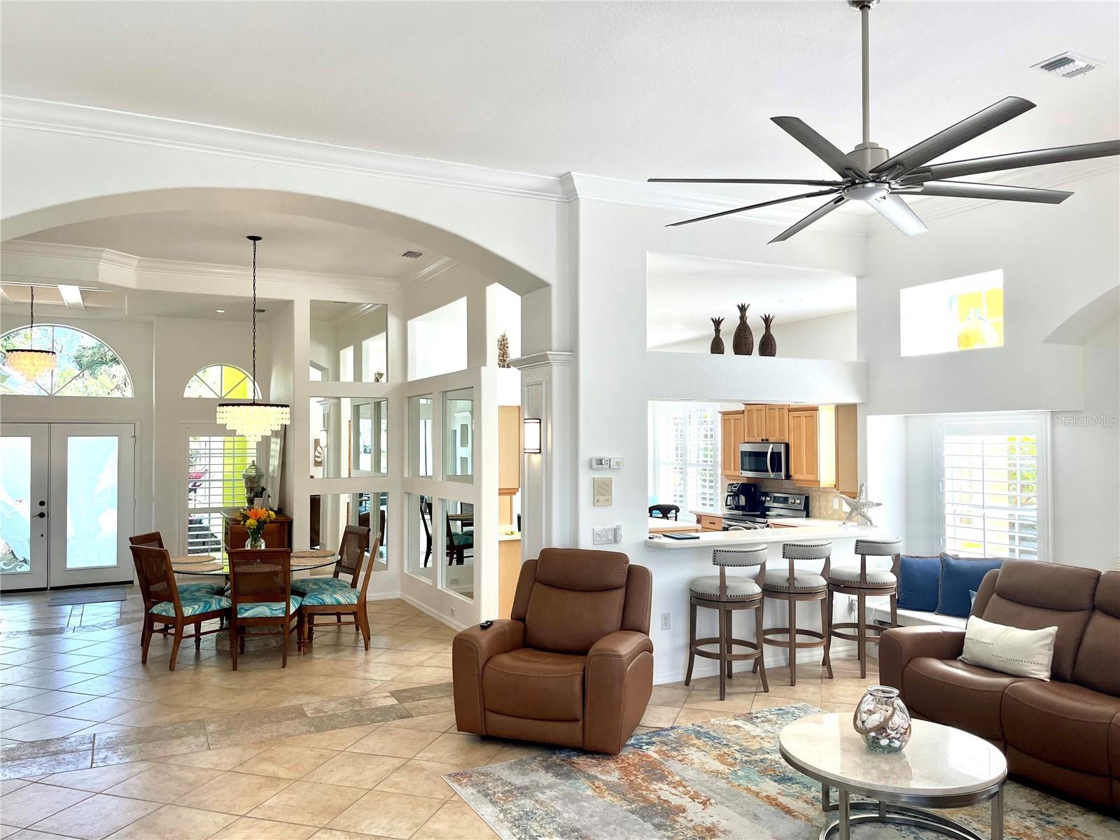 Welcome to this stunning pool home with a wonderful golf course view. This meticulously maintained home boasts freshly painted walls and ceilings, brand new landscape around home and all new sod, new landscape lighting and irrigation heads (2024). Brand new plantation shutters throughout the home, fresh paint on walls and ceilings, new lighting, and let us not forget the completely renovated pool (2024). The pool was resurfaced with glass tile sparkles for added reflection, beautiful glass tile walls, spa and fountain. Newer pool pump and reconditioned pool heater. You will feel relaxation the minute you open the front doors to the open dining and living room. The view of the 2nd hole on Bobcat at the Plantation Golf and Country Club is a showstopper. Unwind in the pool’s spa, grab or drink or grill out by the outdoor kitchen or just sit on the in-pool bar seating. Open the brand-new retractable awning or extend the living room TV to catch the game. The design elements in this home are worth your perusal. The new electronic hurricane blind descends with the touch of a button to protect this home from weather and also can be used as a sunshade for those who seek it. The primary bedroom is located poolside, complete with a beautiful ensuite bathroom features a jetted tub, separate walk-in dual head shower, double sinks, enclosed water closet, linen closet and a large walk-in closet. All bedrooms have new (2025) antimicrobial carpet and pads. Bedroom 2 has built-in closet and wonderful view and Bedroom 3 has ample storage and can also be used as an office/sitting room. The kitchen is full of light and open to the living room has a reverse osmosis system, wine rack cupboard and undercabinet lighting. The eat-in banquette is a great place to relax on custom cushions and provides added storage. Conveniently located to this space is an office/butler’s pantry/mudroom. The 2 car garage has ample storage with access to attic storage. This home was previously loved by 2 new retirees that embraced this home and are sure you will too. Give it a look! The Plantation area is a wonderful place, the people here are so friendly. It’s a great place to learn to be retired, learn new things, find wonderful friendships, and embrace life. It all starts here! See you soon!