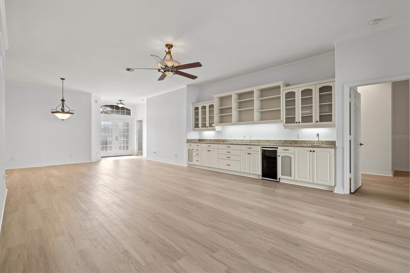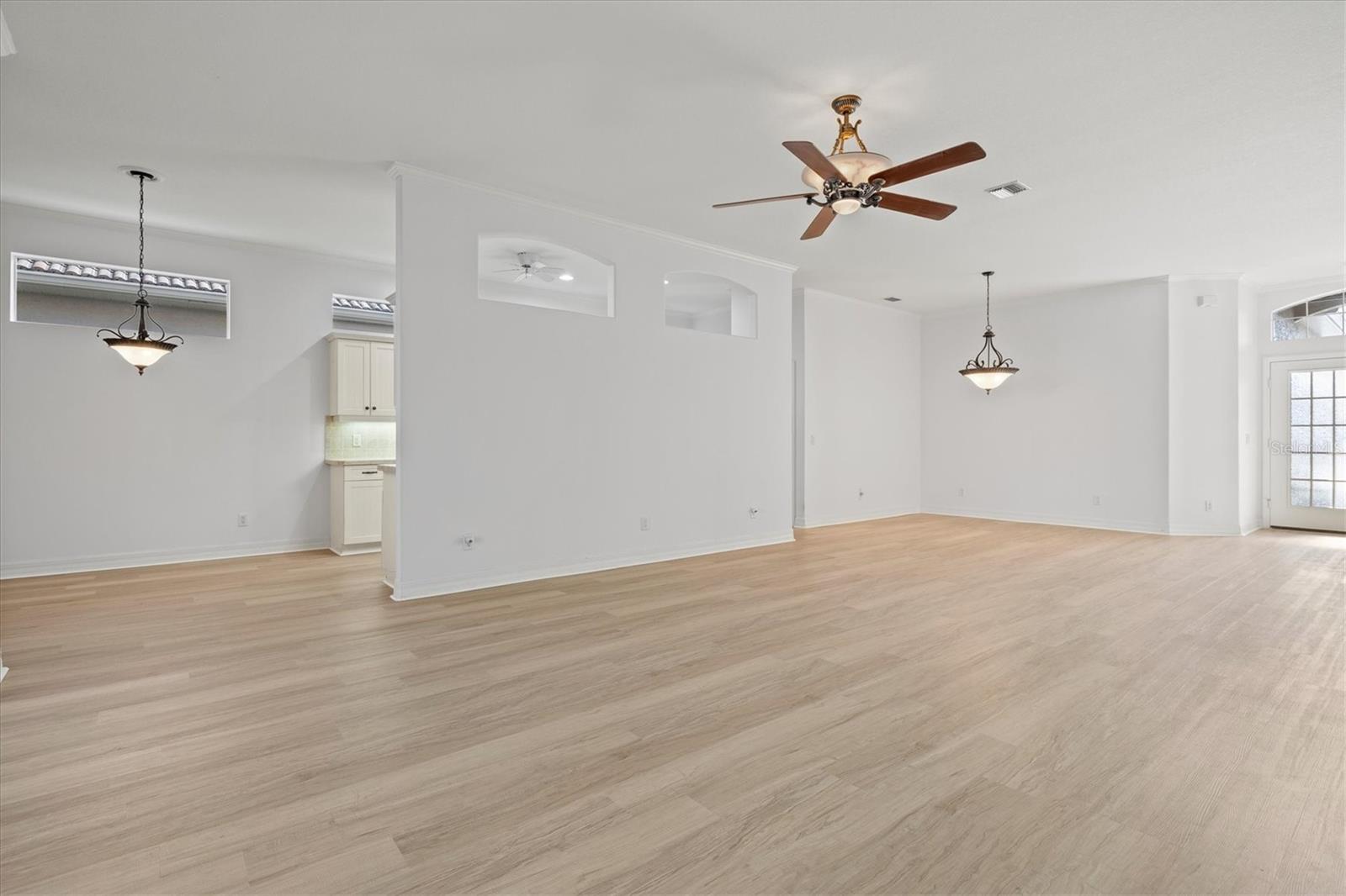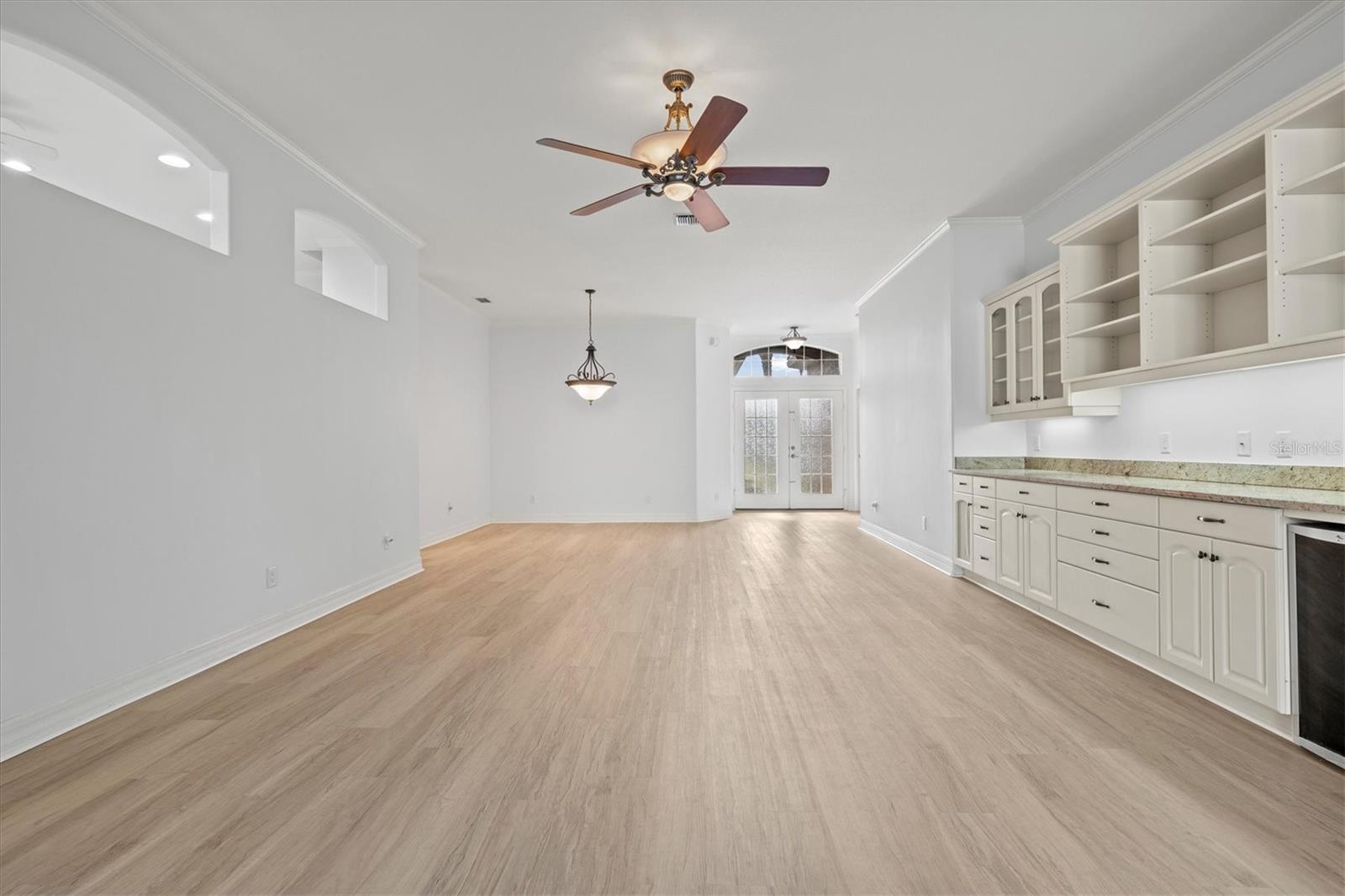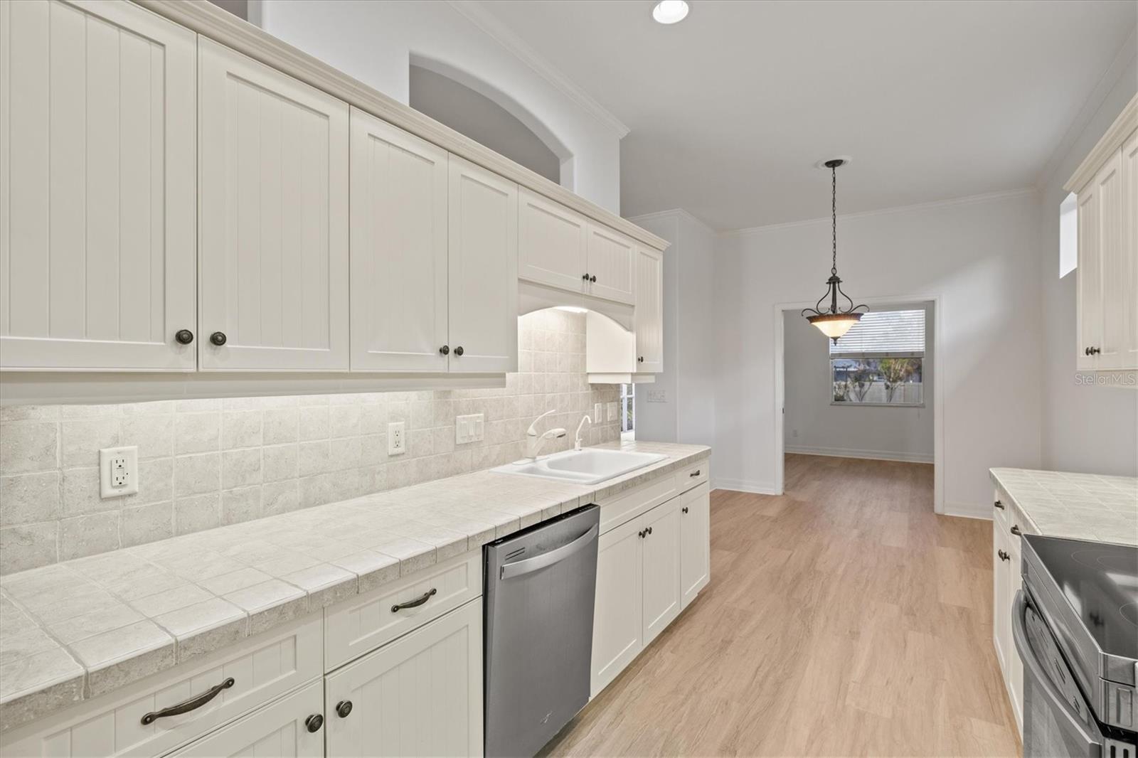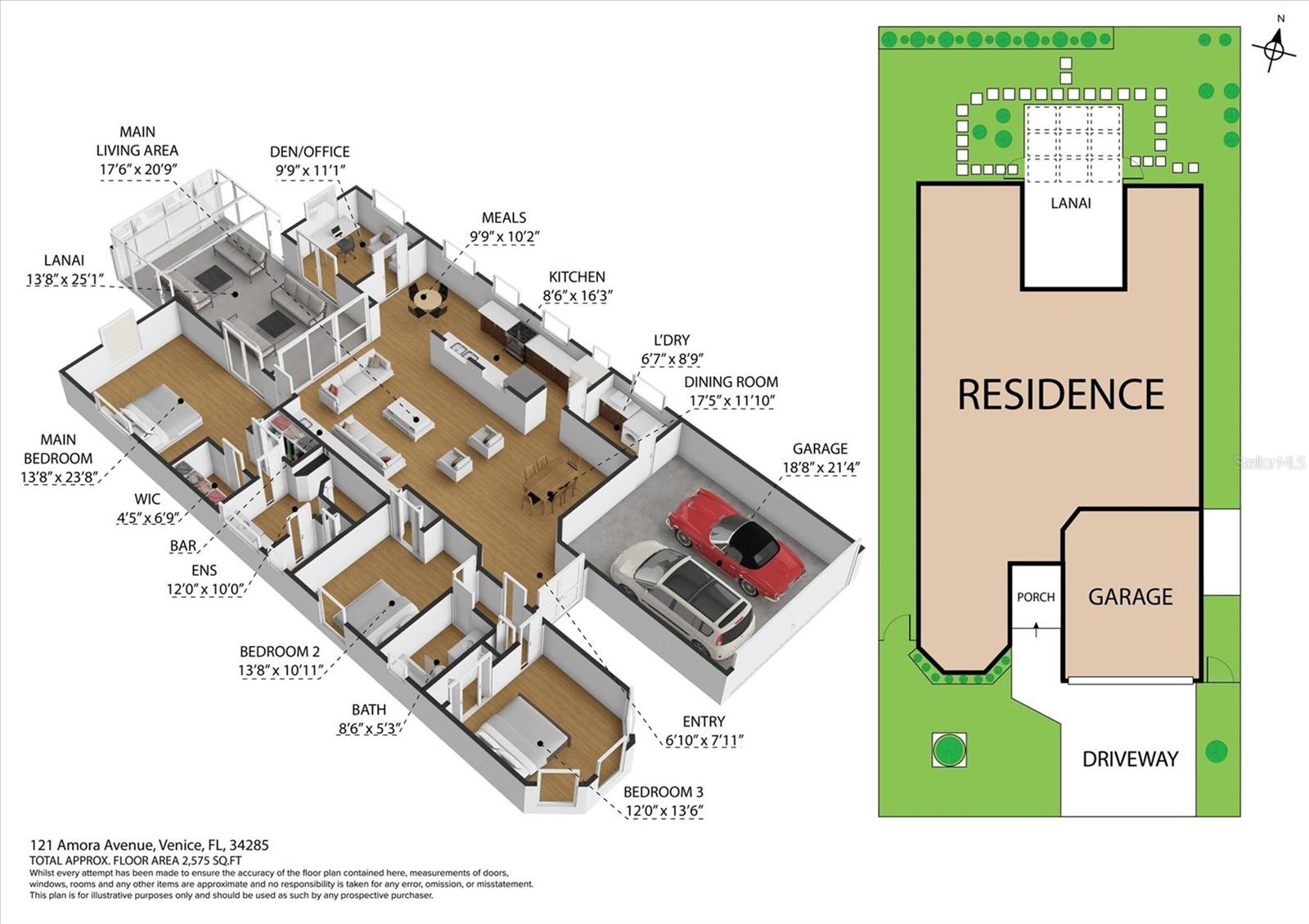 One or more photo(s) has been virtually staged. Classic Florida Elegance Meets Modern Comfort in the Heart of Venice! Nestled on the coveted Island of Venice, this spacious and contemporary home offers a perfect blend of classic Florida charm and modern design. Just minutes from shopping, dining, entertainment, and a host of outdoor activities, this home is ideally located to take full advantage of everything the Island lifestyle has to offer. From the moment you arrive, you’ll notice this home’s eye-catching curb appeal. A pair of elegant rain-glass double entry doors set the tone for the luxurious interior that awaits. Inside, you’re welcomed by an expansive open floor plan highlighted by soaring 10-foot ceilings, crown molding, and brand-new luxury vinyl plank flooring throughout. Perfectly crafted for gatherings, the open great room and dining room provide a spacious setting for family and friends to relax, dine, and socialize. A custom-built entertainment center, featuring a wet bar and wine cooler, doubles as a functional buffet and offers ample storage space. The kitchen is thoughtfully separated from the main living area by a privacy wall, allowing the chef to work their magic but still feel part of any gathering. With white Shaker V-Groove cabinetry, under-cabinet lighting, tile countertops and backsplash, and newer stainless-steel appliances, it’s a space that combines beauty and function. A cozy dining nook and bright den, complete with double pocket doors and sliding glass doors to the lanai, further enhance the home's charm and flow. The primary suite is a private sanctuary, featuring direct access to the covered lanai and views of lush Florida landscaping. Two large walk-in closets, a separate water closet, and a spacious vanity offer both comfort and convenience, while the walk-around shower is the perfect place to unwind. Two additional guest bedrooms and a guest bath are positioned at the front of the home, with a pocket door that can be closed for privacy. Three sets of sliders lead to an expansive covered lanai and extended screened patio, creating an inviting outdoor living space that spans an impressive 25’ x 13’. The serene setting is perfect for relaxation or entertaining, and there’s ample space to add a pool or spa if desired. Lovingly maintained by the original owner, this home is move-in ready. Upgrades include new luxury vinyl plank flooring, fresh interior paint, hurricane fabric for the lanai and front doors, a whole-house water filter, and a new water heater installed in 2017. Have peace of mind regarding insurance knowing the property was constructed to newer building codes, is located above the high-risk flood plain, and has a good 4-Point Inspection as well. Amora is a quaint deed-restricted community of just 21 homes with low monthly fees that cover lawn maintenance, yard pest control, tree and shrub trimming, irrigation maintenance, and irrigation water. Just a short stroll or bike ride away, you'll find a marina, a variety of restaurants, and the scenic Venetian Waterway Trail. Historic Downtown Venice and the Gulf beaches are only 1.5 miles away, offering endless opportunities for fun and relaxation. Amora offers a rare opportunity to experience the best of Venice Island living in a landscape maintenance-free environment with a low-cost HOA and no CDD fees. Homes in this community rarely come on the market, so don’t miss your chance to call this special place home!