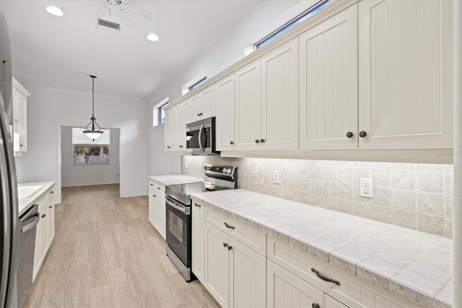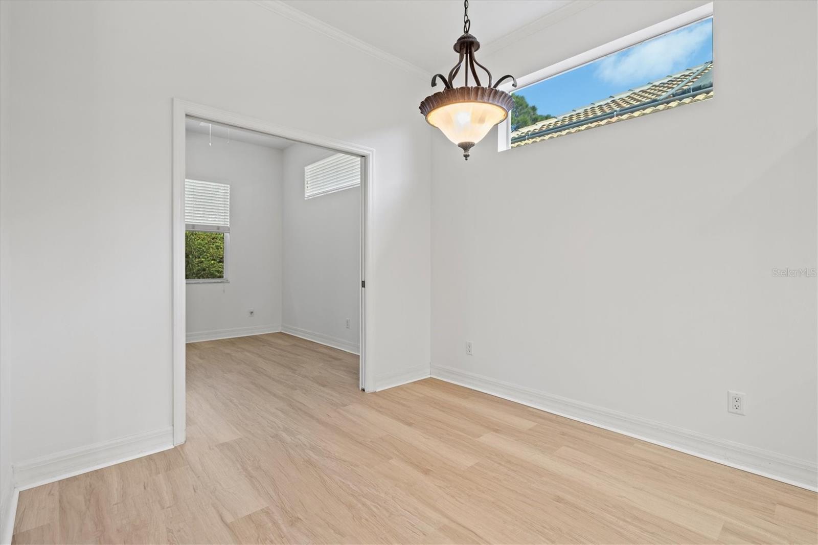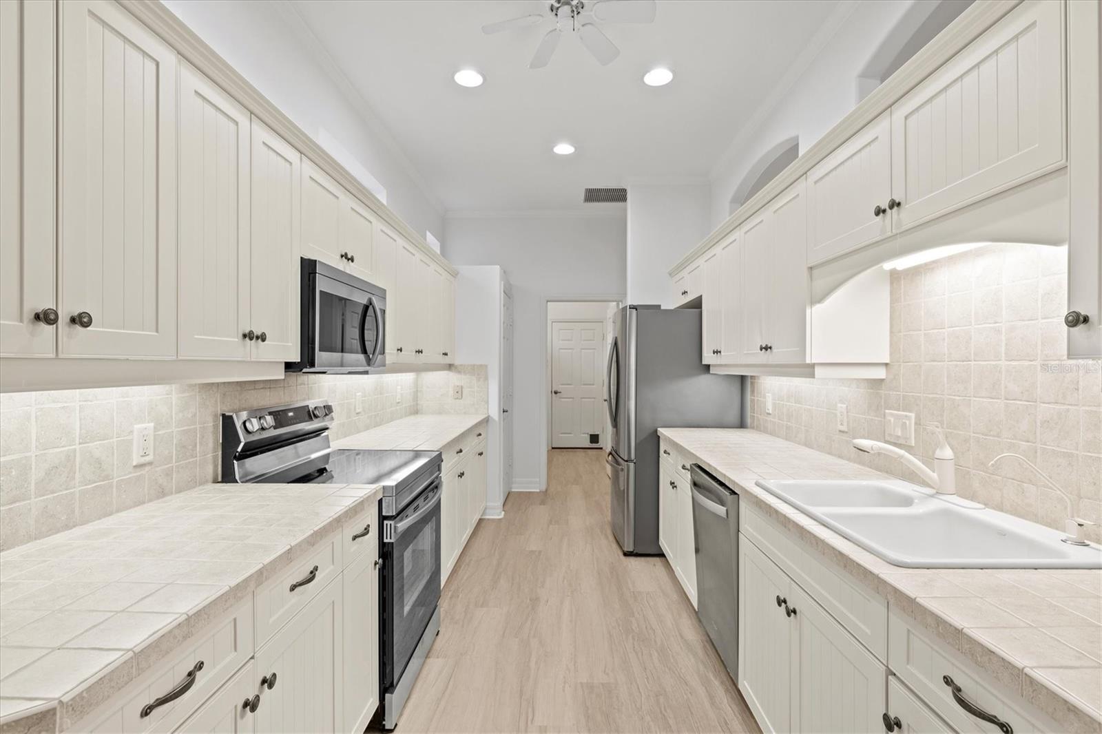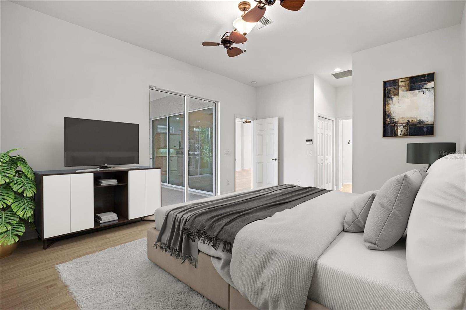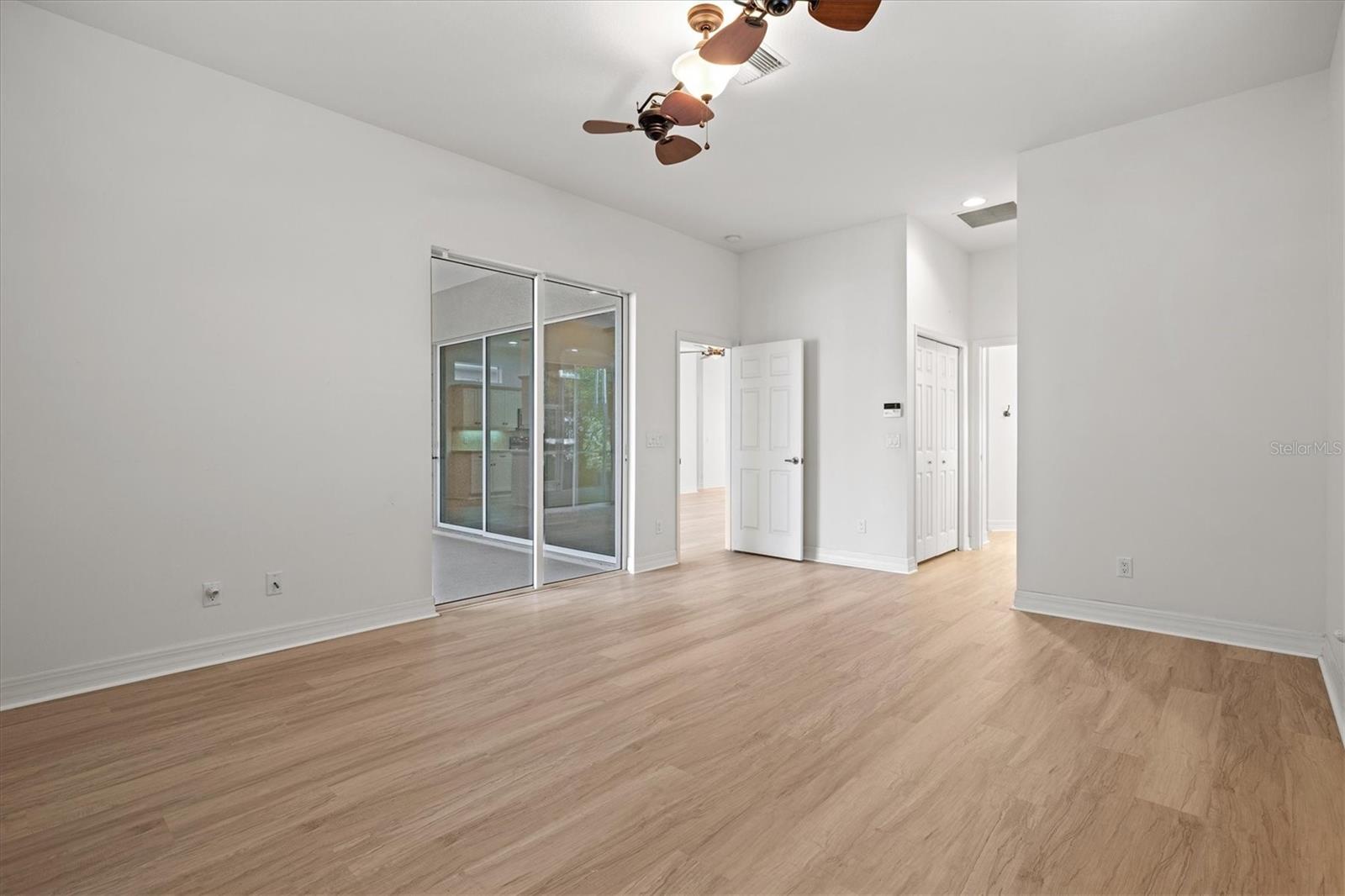 One or more photo(s) has been virtually staged. Classic Florida Elegance Meets Modern Comfort in the Heart of Venice! Nestled on the coveted Island of Venice, this spacious and contemporary home offers a perfect blend of classic Florida charm and modern design. Just minutes from shopping, dining, entertainment, and a host of outdoor activities, this home is ideally located to take full advantage of everything the Island lifestyle has to offer. From the moment you arrive, you’ll notice this home’s eye-catching curb appeal. A pair of elegant rain-glass double entry doors set the tone for the luxurious interior that awaits. Inside, you’re welcomed by an expansive open floor plan highlighted by soaring 10-foot ceilings, crown molding, and brand-new luxury vinyl plank flooring throughout. Perfectly crafted for gatherings, the open great room and dining room provide a spacious setting for family and friends to relax, dine, and socialize. A custom-built entertainment center, featuring a wet bar and wine cooler, doubles as a functional buffet and offers ample storage space. The kitchen is thoughtfully separated from the main living area by a privacy wall, allowing the chef to work their magic but still feel part of any gathering. With white Shaker V-Groove cabinetry, under-cabinet lighting, tile countertops and backsplash, and newer stainless-steel appliances, it’s a space that combines beauty and function. A cozy dining nook and bright den, complete with double pocket doors and sliding glass doors to the lanai, further enhance the home's charm and flow. The primary suite is a private sanctuary, featuring direct access to the covered lanai and views of lush Florida landscaping. Two large walk-in closets, a separate water closet, and a spacious vanity offer both comfort and convenience, while the walk-around shower is the perfect place to unwind. Two additional guest bedrooms and a guest bath are positioned at the front of the home, with a pocket door that can be closed for privacy. Three sets of sliders lead to an expansive covered lanai and extended screened patio, creating an inviting outdoor living space that spans an impressive 25’ x 13’. The serene setting is perfect for relaxation or entertaining, and there’s ample space to add a pool or spa if desired. Lovingly maintained by the original owner, this home is move-in ready. Upgrades include new luxury vinyl plank flooring, fresh interior paint, hurricane fabric for the lanai and front doors, a whole-house water filter, and a new water heater installed in 2017. Have peace of mind regarding insurance knowing the property was constructed to newer building codes, is located above the high-risk flood plain, and has a good 4-Point Inspection as well. Amora is a quaint deed-restricted community of just 21 homes with low monthly fees that cover lawn maintenance, yard pest control, tree and shrub trimming, irrigation maintenance, and irrigation water. Just a short stroll or bike ride away, you'll find a marina, a variety of restaurants, and the scenic Venetian Waterway Trail. Historic Downtown Venice and the Gulf beaches are only 1.5 miles away, offering endless opportunities for fun and relaxation. Amora offers a rare opportunity to experience the best of Venice Island living in a landscape maintenance-free environment with a low-cost HOA and no CDD fees. Homes in this community rarely come on the market, so don’t miss your chance to call this special place home!