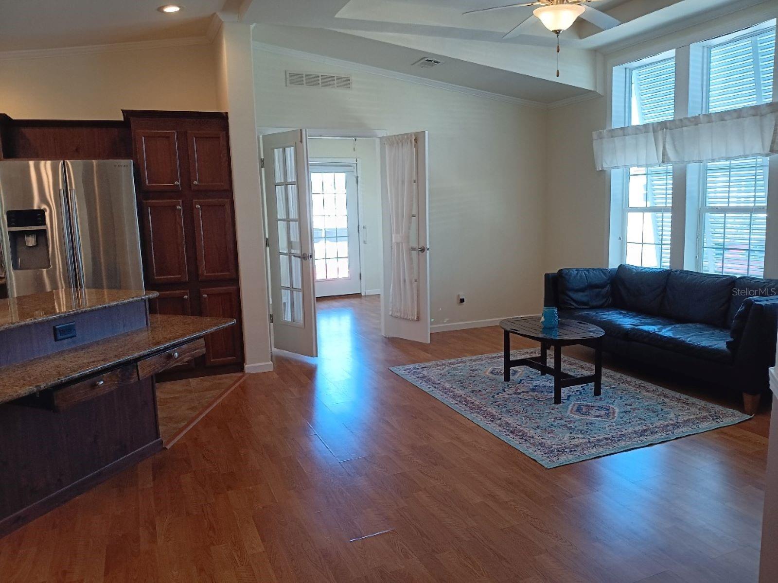 CHARMING ENTRANCE INTO A MULTI-PURPOSE ROOM WITH FRENCH DOORS IN THIS 2013 BUILT HOME WITH 2 BEDROOMS AND 2 BATHS, OPEN FLOOR PLAN, LARGE ISLAND IN THE KITCHEN W/STORAGE AND MULTIPLE SEATING IN THE PREMIER COMMUNITY OF COUNTRY CLUB ESTATES. LIVING SPACE HAS A VERY HIGH COFFERED CEILING AND BEAUTIFUL LARGE WINDOWS. PLENTY OF OFF-STREET PARKING OUTSIDE AND A SCREENED-IN LANAI AS WELL. THIS BEAUTIFUL COMMUNITY IS LOCATED ON VENICE ISLAND AND IS RESORT-STYLE LIVING. ENJOY THE HEATED POOL, WITH WATER AEROBICS AND EXERCISE CLASSES. COUNTRY CLUB ESTATES HAS TWO CLUBHOUSES, BOTH WITH KITCHENS, ONE CLUBHOUSE HAS A STAGE FOR BANDS AND PERFORMANCES. THE OTHER OVERLOOKS THE WATERWAY, WITH RENTED BOAT SLIPS FOR THE RESIDENTS. FROM THE BOAT CLUB TO THE BOOK CLUB, YOU WILL PROBABLY FIND IT HERE. PICKLEBALL, SHUFFLEBOARD, CORN HOLE, BILLIARDS, PING PONG, LIBRARY, FITNESS CENTER, MOST CARD GAMES, KARAOKE, EVENTS PLANNED FOR THE HOLIDAY, LOCAL BANDS, AND DJ'S FOR DANCES, NEIGHBORHOOD PARADES AND SCAVENGER HUNTS. TOO MANY TO LIST. THIS IS NOT JUST A PLACE TO LIVE--IT IS A LIFESTYLE. COME SEE FOR YOURSELF.