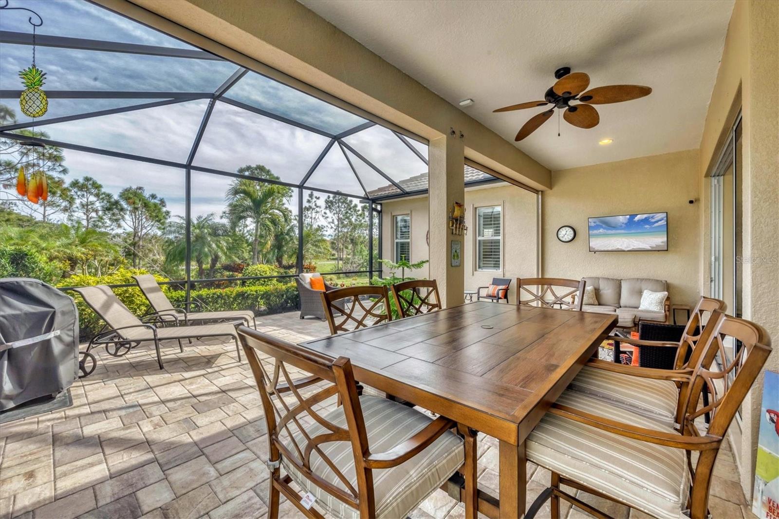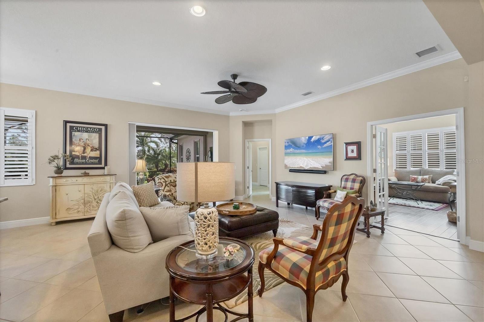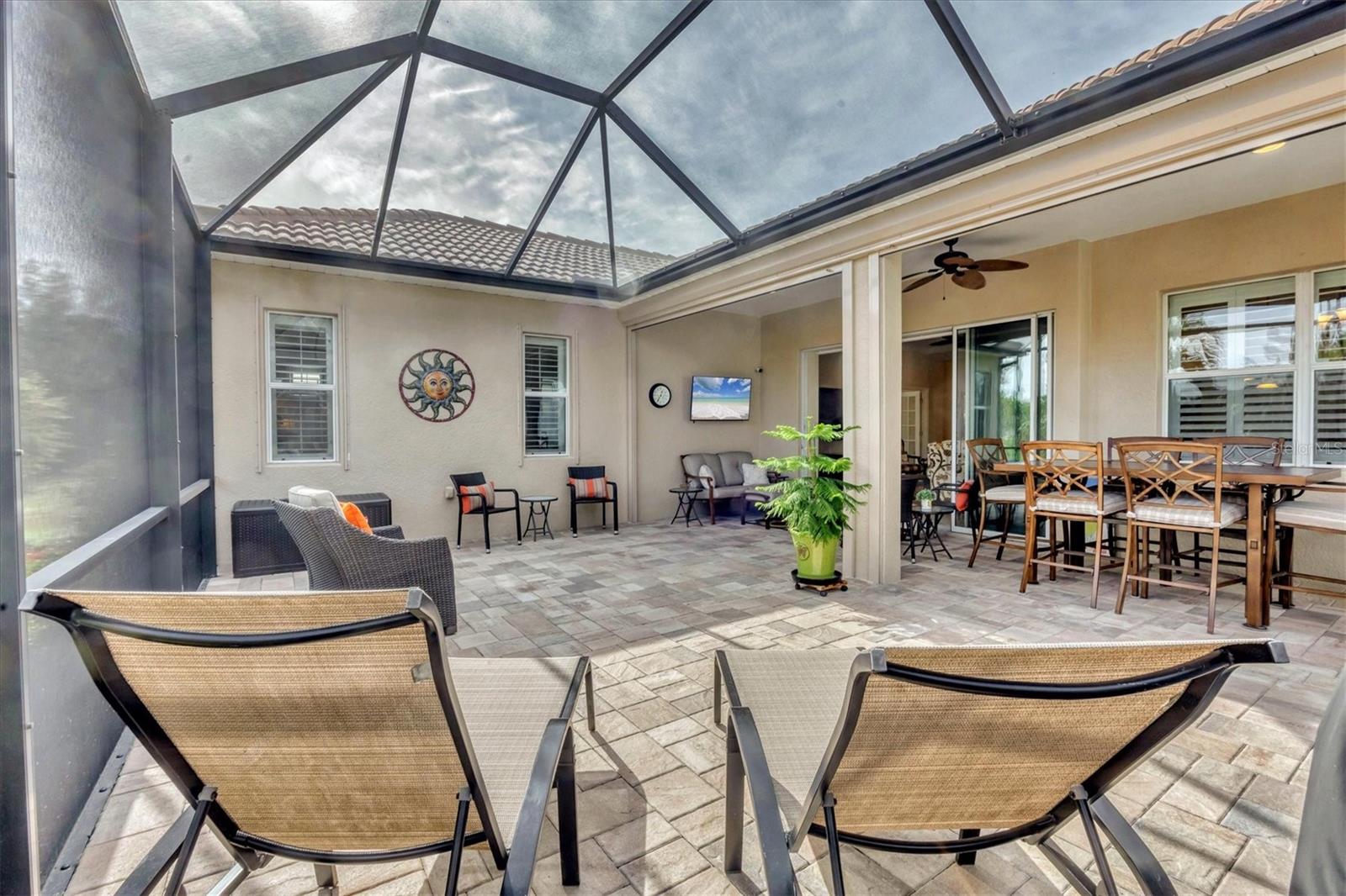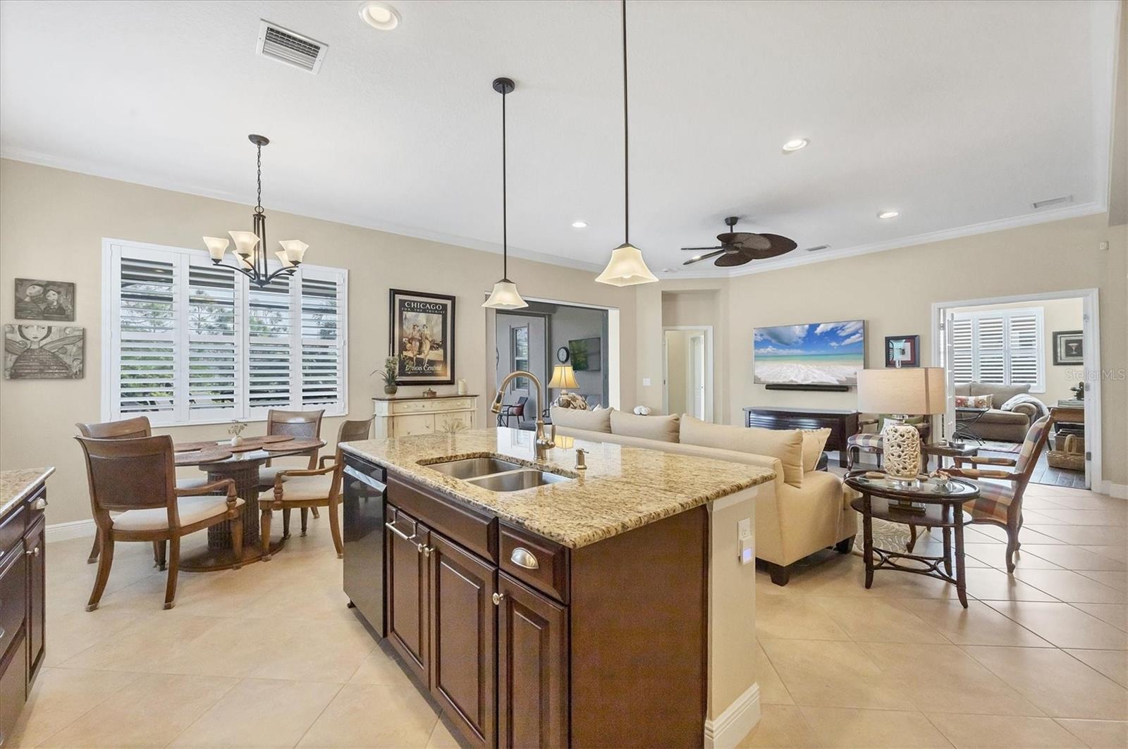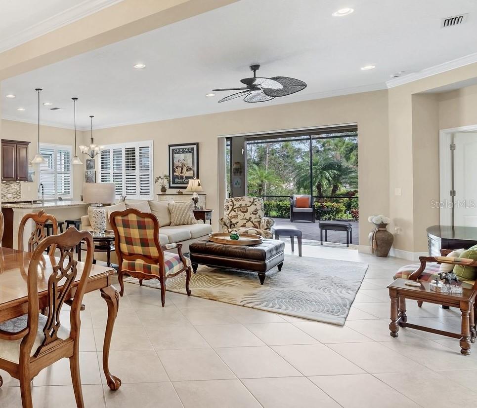 Welcome to this exquisite 3-bedroom, 2-bathroom home with a dedicated office, offering a lifestyle of comfort and elegance. From the moment you arrive, you'll be captivated by the impeccable curb appeal—lush palm trees, vibrant shrubs, and colorful flowers surround both the front and back of the property, creating a true tropical oasis that welcomes you home. Step inside to discover an immaculate interior where pride of ownership shines through. The owners have meticulously maintained every detail, ensuring the home is in pristine condition. The spacious great room offers the perfect layout for easy living, with a dining area flowing seamlessly into the living area and a beautifully appointed kitchen to one side. The kitchen is a chef's delight, featuring numerous updates, including a corner pantry, a sleek Moen faucet, a gas range for precise cooking, upgraded cabinets and hardware, additional drawers for convenience, and a stylish backsplash that ties it all together. The great room is designed for effortless entertaining, with pocket sliding doors that lead out to a vast 26' x 26' lanai. Whether you want to dine al fresco, relax with a good book, entertain guests, or perhaps add a hot tub, the lanai offers plenty of space for it all. The primary suite is nothing short of a dream. It features a wide entry hallway leading into a spacious bathroom with a beautiful walk-in shower, a large bedroom and two generous walk-in closets. Practicality meets luxury with a well-equipped laundry room, complete with cabinets for storage and a convenient laundry tub. For your peace of mind, the home has Storm Smart Motorized Hurricane Shades on the lanai and front entrance, and slide in hurricane protection on all the windows. Located in Grand Palm, which is a gorgeous community with a focus on nature and preservation of the natural landscape. Enjoy the natural vegetation and palm trees along the curved streets. Grand Palm has a few lakes with the largest being 32 acres, where you can kayak and paddleboard. There’s storage at the lake to store your kayak and paddleboard. They make it easy to stay healthy with miles of walking paths and bicycle trails, and a 10-acre Exploration Park. This home is located in The Cove which has a heated pool with a grill/barbeque area for use by the 85 homes located in there. Homes in The Cove also have lawn care, landscape care, and irrigation provided. There’re 3 other community pools in Grand Palm, along with two clubhouses, pickleball, tennis, basketball, beach volleyball, a large gym, dog park, splash pad, and more. Kayak or paddleboard on the 32-acre lake which has storage for kayaks and paddleboards. Also, enjoy nearby Downtown Wellen Park with daily entertainment, shopping and restaurants, along with walking paths and bike trails. The Cool Today Park is within a few miles... this is the spring training stadium for the Atlanta Braves, plus it has additional entertainment year long. A short drive will have you at the beautiful Gulf of Mexico beaches and/or in historical downtown Venice with numerous shops, restaurants, along with a theater, art galleries, wine bars, and more. Motivated seller, bring an offer.