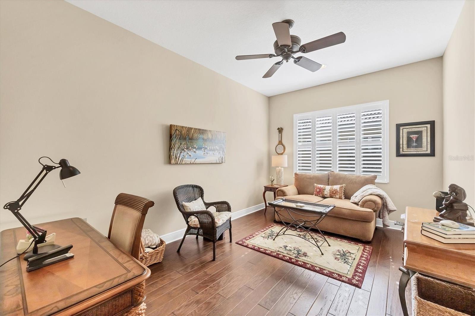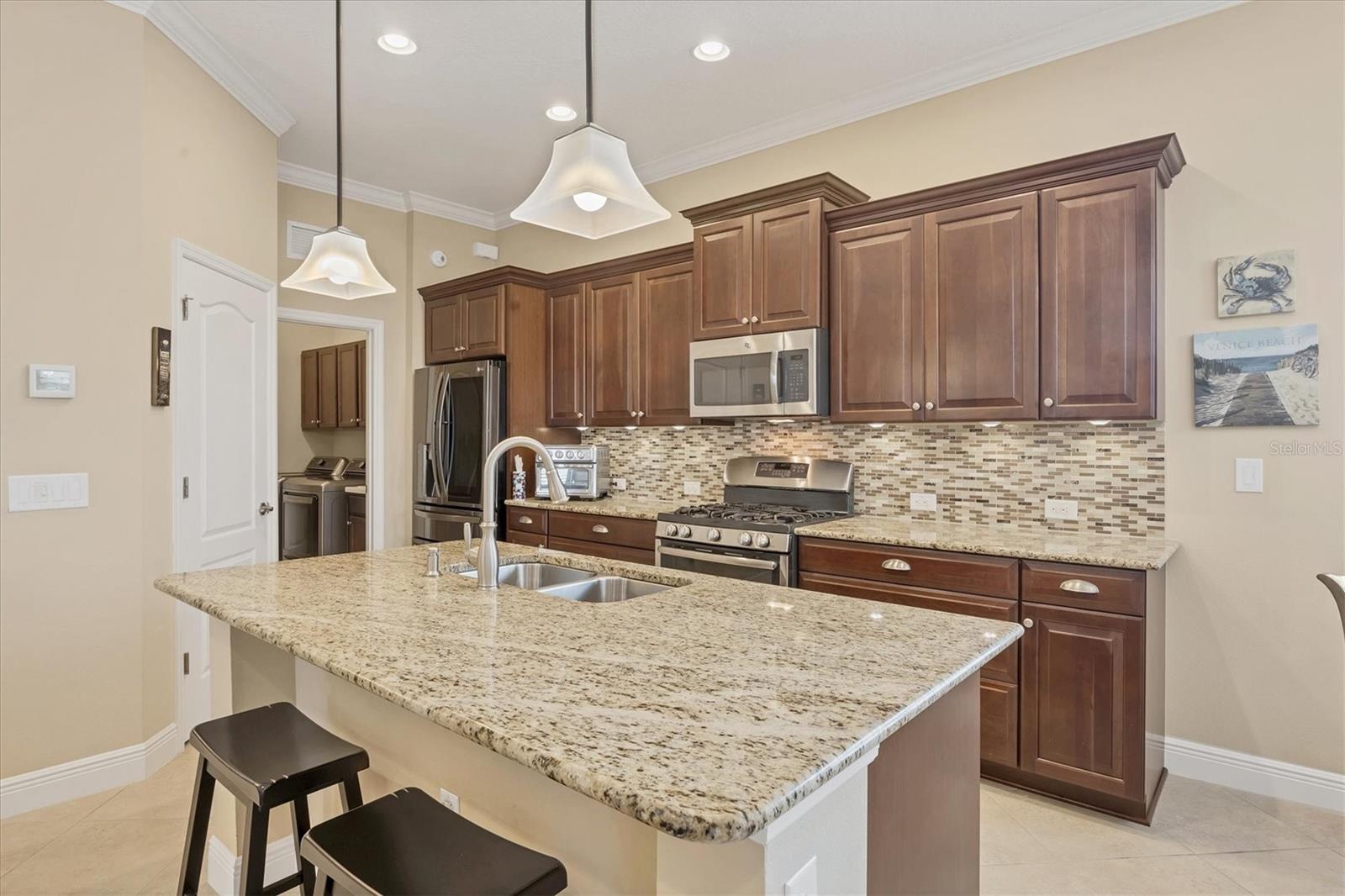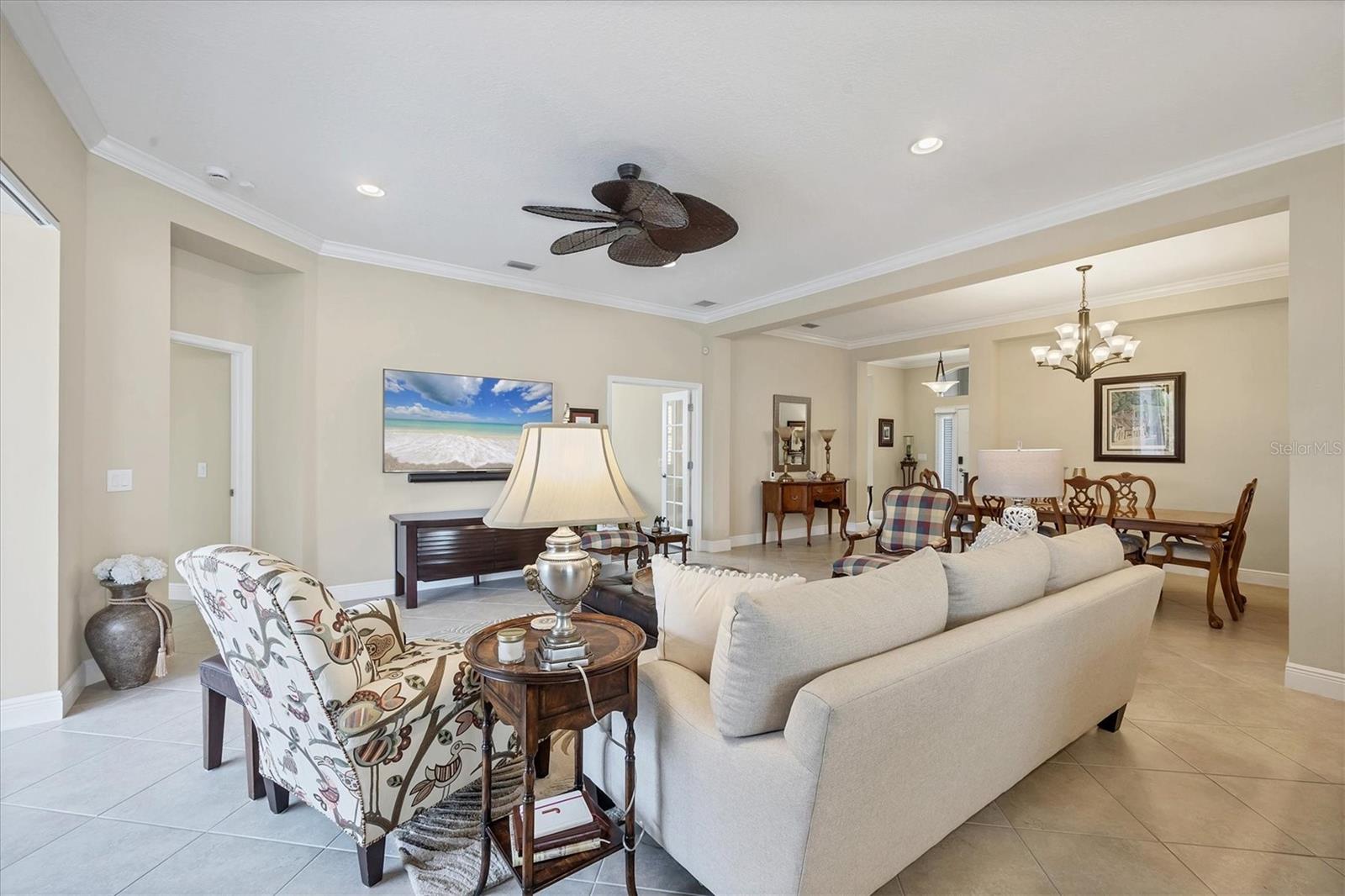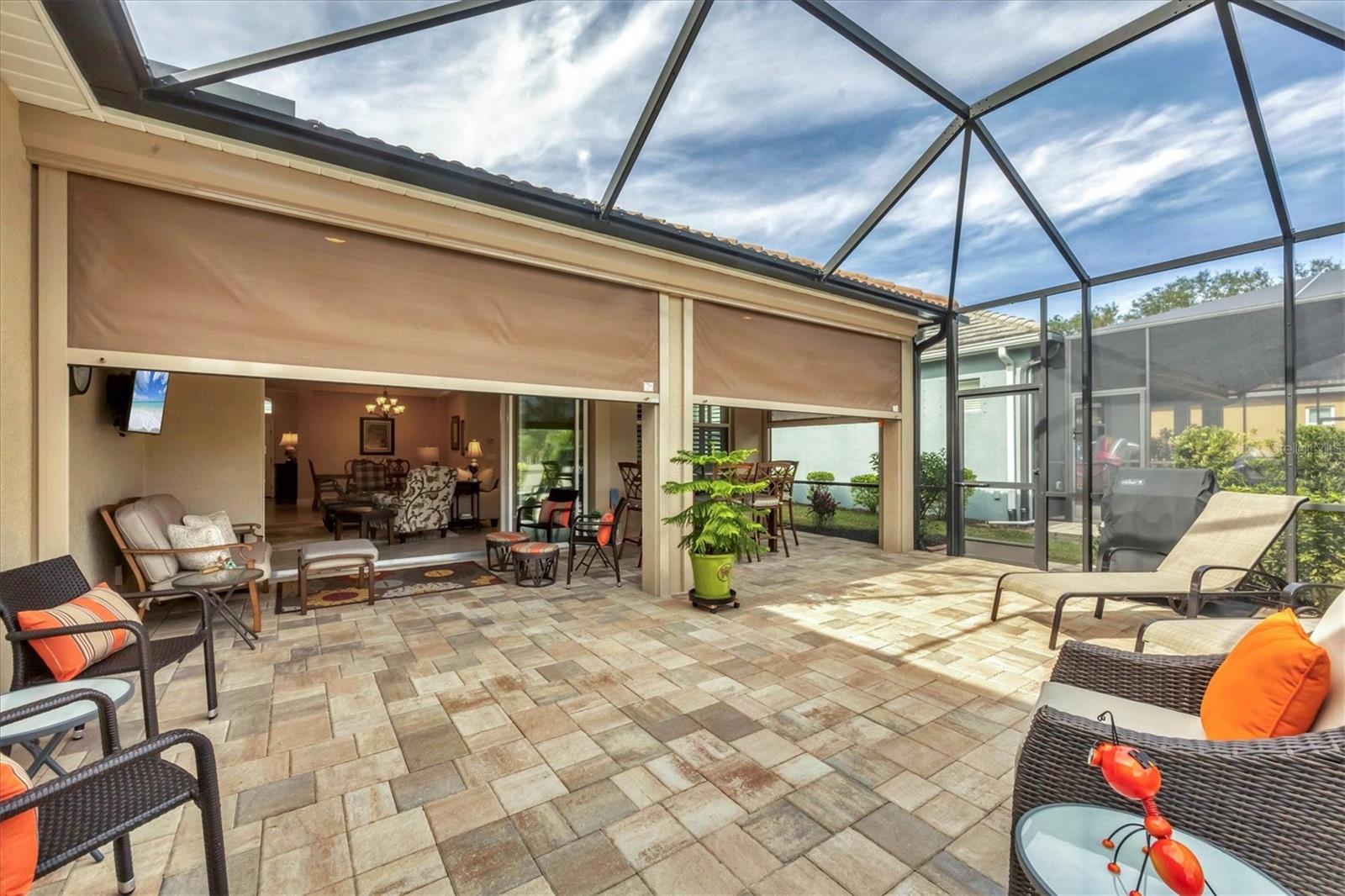 Welcome to this exquisite 3-bedroom, 2-bathroom home with a dedicated office, offering a lifestyle of comfort and elegance. From the moment you arrive, you'll be captivated by the impeccable curb appeal—lush palm trees, vibrant shrubs, and colorful flowers surround both the front and back of the property, creating a true tropical oasis that welcomes you home. Step inside to discover an immaculate interior where pride of ownership shines through. The owners have meticulously maintained every detail, ensuring the home is in pristine condition. The spacious great room offers the perfect layout for easy living, with a dining area flowing seamlessly into the living area and a beautifully appointed kitchen to one side. The kitchen is a chef's delight, featuring numerous updates, including a corner pantry, a sleek Moen faucet, a gas range for precise cooking, upgraded cabinets and hardware, additional drawers for convenience, and a stylish backsplash that ties it all together. The great room is designed for effortless entertaining, with pocket sliding doors that lead out to a vast 26' x 26' lanai. Whether you want to dine al fresco, relax with a good book, entertain guests, or perhaps add a hot tub, the lanai offers plenty of space for it all. The primary suite is nothing short of a dream. It features a wide entry hallway leading into a spacious bathroom with a beautiful walk-in shower, a large bedroom and two generous walk-in closets. Practicality meets luxury with a well-equipped laundry room, complete with cabinets for storage and a convenient laundry tub. For your peace of mind, the home has Storm Smart Motorized Hurricane Shades on the lanai and front entrance, and slide in hurricane protection on all the windows. Located in Grand Palm, which is a gorgeous community with a focus on nature and preservation of the natural landscape. Enjoy the natural vegetation and palm trees along the curved streets. Grand Palm has a few lakes with the largest being 32 acres, where you can kayak and paddleboard. There’s storage at the lake to store your kayak and paddleboard. They make it easy to stay healthy with miles of walking paths and bicycle trails, and a 10-acre Exploration Park. This home is located in The Cove which has a heated pool with a grill/barbeque area for use by the 85 homes located in there. Homes in The Cove also have lawn care, landscape care, and irrigation provided. There’re 3 other community pools in Grand Palm, along with two clubhouses, pickleball, tennis, basketball, beach volleyball, a large gym, dog park, splash pad, and more. Kayak or paddleboard on the 32-acre lake which has storage for kayaks and paddleboards. Also, enjoy nearby Downtown Wellen Park with daily entertainment, shopping and restaurants, along with walking paths and bike trails. The Cool Today Park is within a few miles... this is the spring training stadium for the Atlanta Braves, plus it has additional entertainment year long. A short drive will have you at the beautiful Gulf of Mexico beaches and/or in historical downtown Venice with numerous shops, restaurants, along with a theater, art galleries, wine bars, and more. Motivated seller, bring an offer.