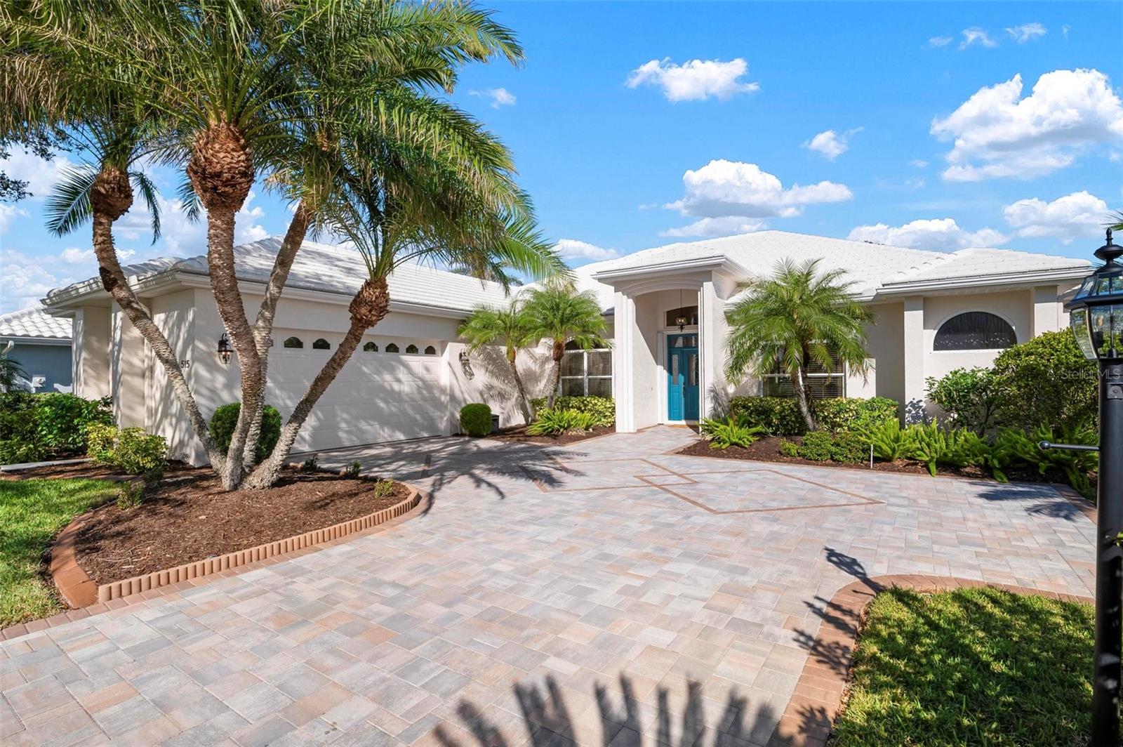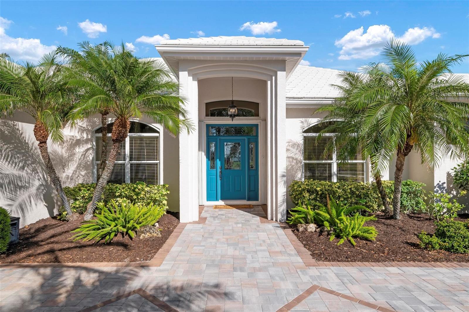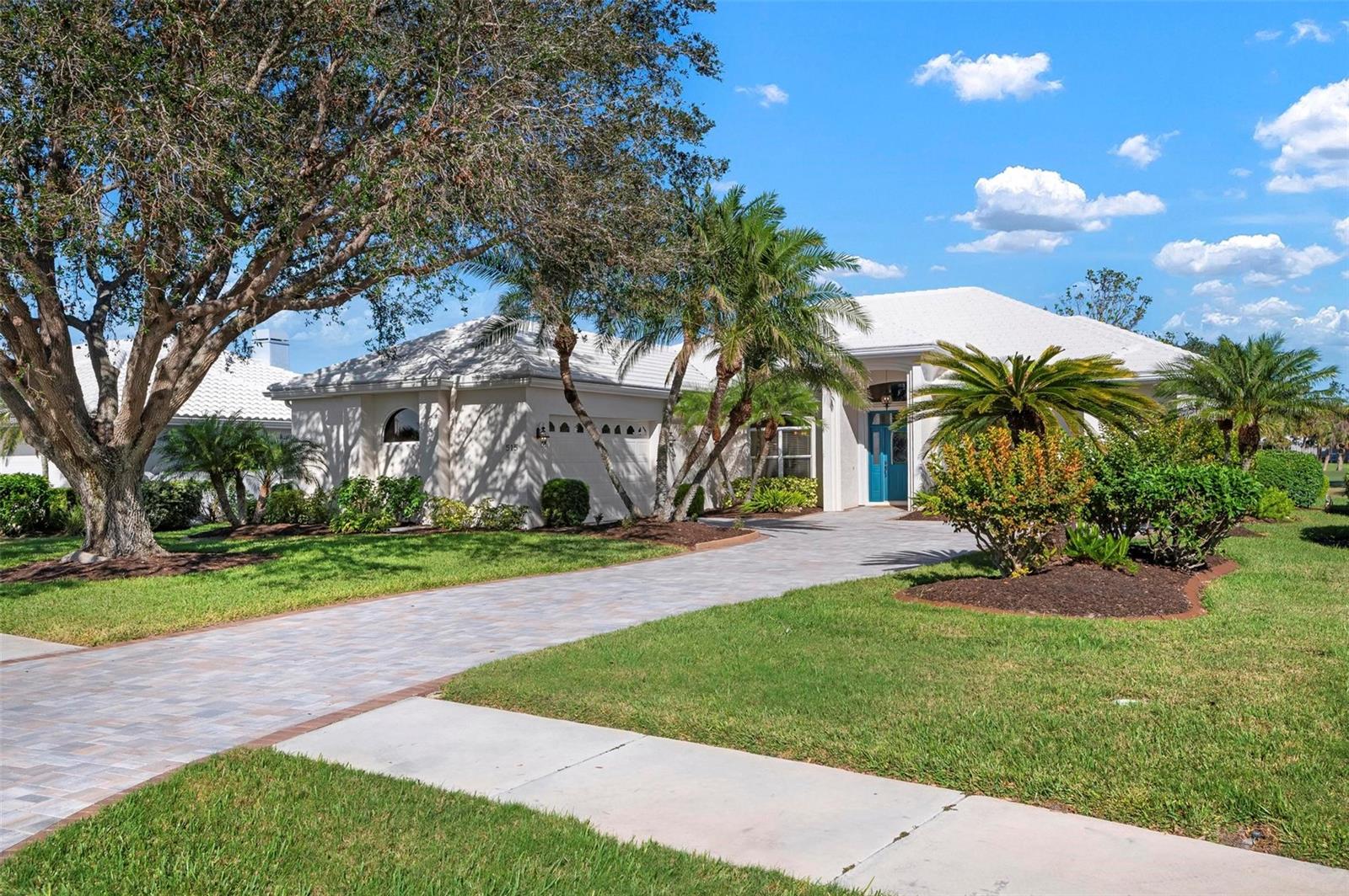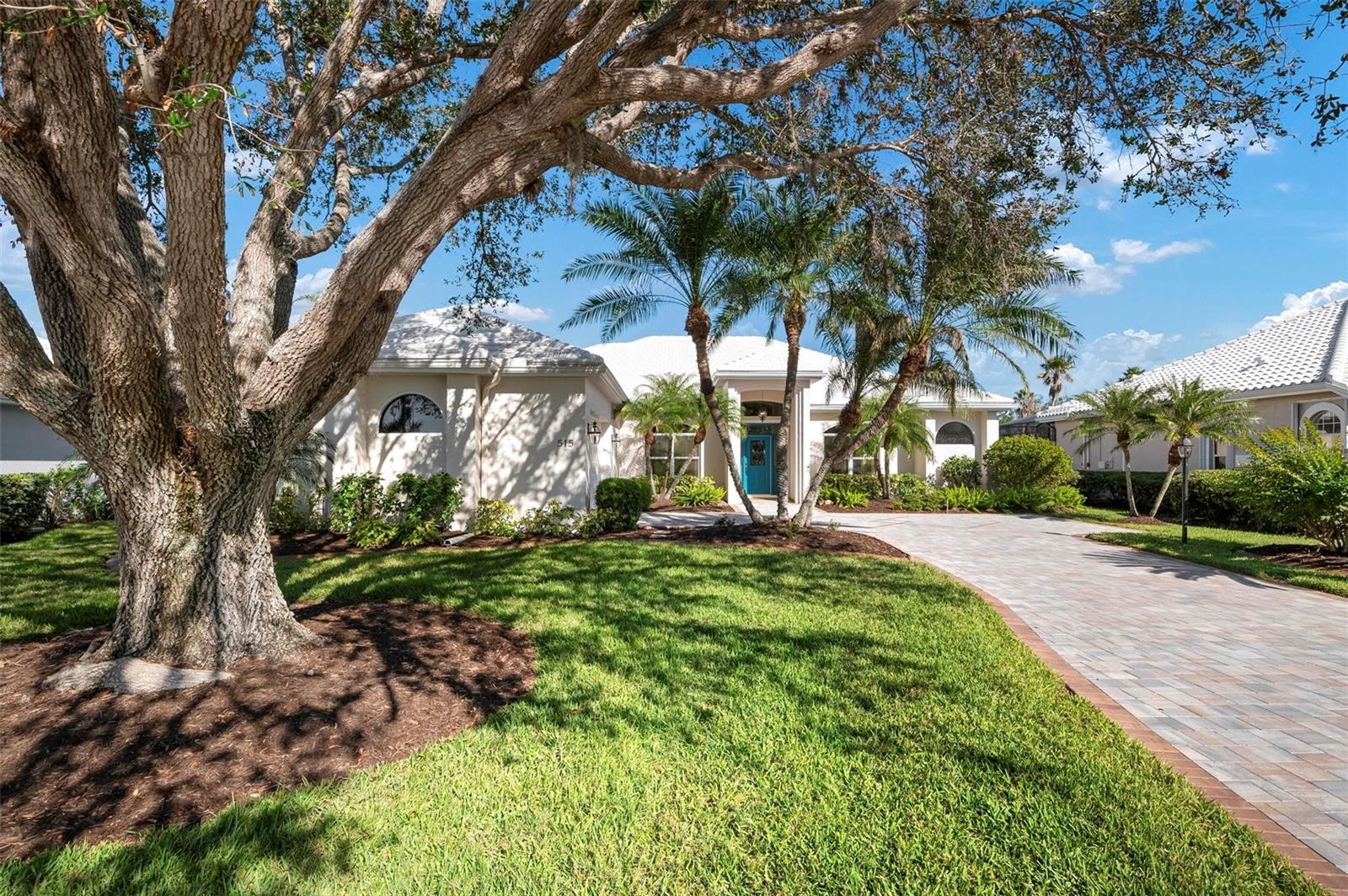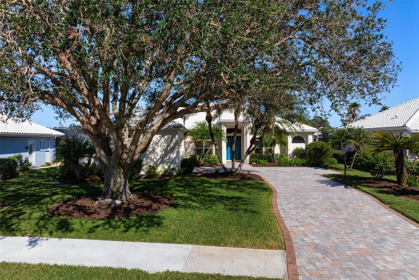 Premier Custom Country Club Home located in the highly desirable gated Governors Green neighborhood at The Plantation offers the lifestyle you desire. From the moment you arrive, you will be engaged by the meticulous care and attention this home has experienced, starting with the gorgeous paver driveway and mature tropical landscaping leading to the beautiful leaded glass entry door. Beyond the entry and spacious great room with its 12 foot ceilings, you'll love this home's sun-splashed split plan creating the perfect flow for entertaining family and guests. Walls of glass open to the tiled Florida sun-room and screened lanai, where you will enjoy expansive golf views of the 16th fairway of the Panther golf course. There's plenty of room for a pool if you decide to add one in the future. The great room plan offers volume 12 foot and 10 foot ceilings throughout the 3 large bedrooms, 2 ½ baths, formal dining room, spacious breakfast room, large and bright kitchen with lots of cabinet space, large pantry, and stainless steel appliances, plus the pleasant den/office for working at home or hiding away curled up with a good book. The large bay windows of the breakfast room and the master suite allow panoramic views of the golf course. Storage is never a problem with 11 closets and a super-sized 2+ car garage, perfect for storing your Florida beach toys. Rest easy knowing the home has full storm protection. Recent upgrades include new appliances and AC in 2023, new roof in 2018, HWH in 2020, and exterior paint, paver driveway, and ceiling lights and fans in 2024. Although membership in The Plantation Golf and Country Club is not mandatory, their two premier golf courses, tennis facilities, pool, and dining are a golfer’s paradise and the best of country club living. For the non-golfers, the beauty of the courses and the neighborhood certainly add to the charm of this delightful home. Located minutes from Historic Venice Island with its quaint shops, dining, beaches, biking/walking trails, fishing, performing arts center, and other cultural venues, and easy access to I-75 for quick trips to Sarasota and area airports.