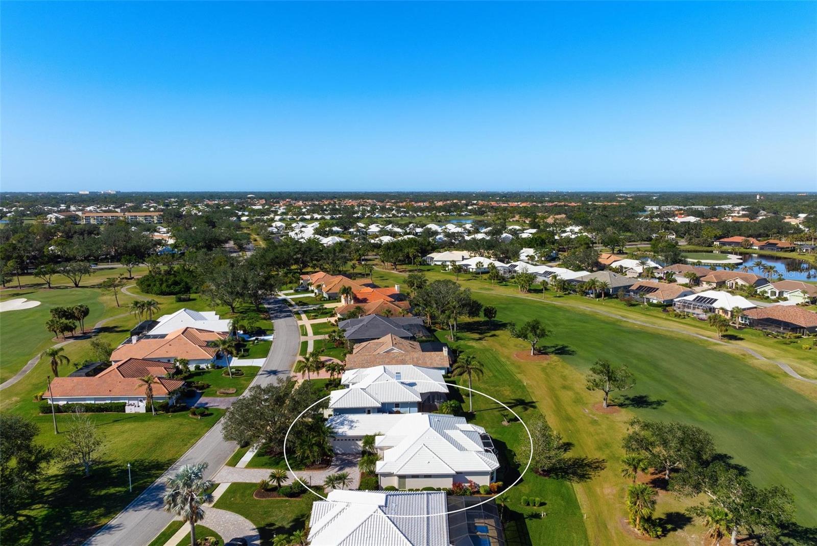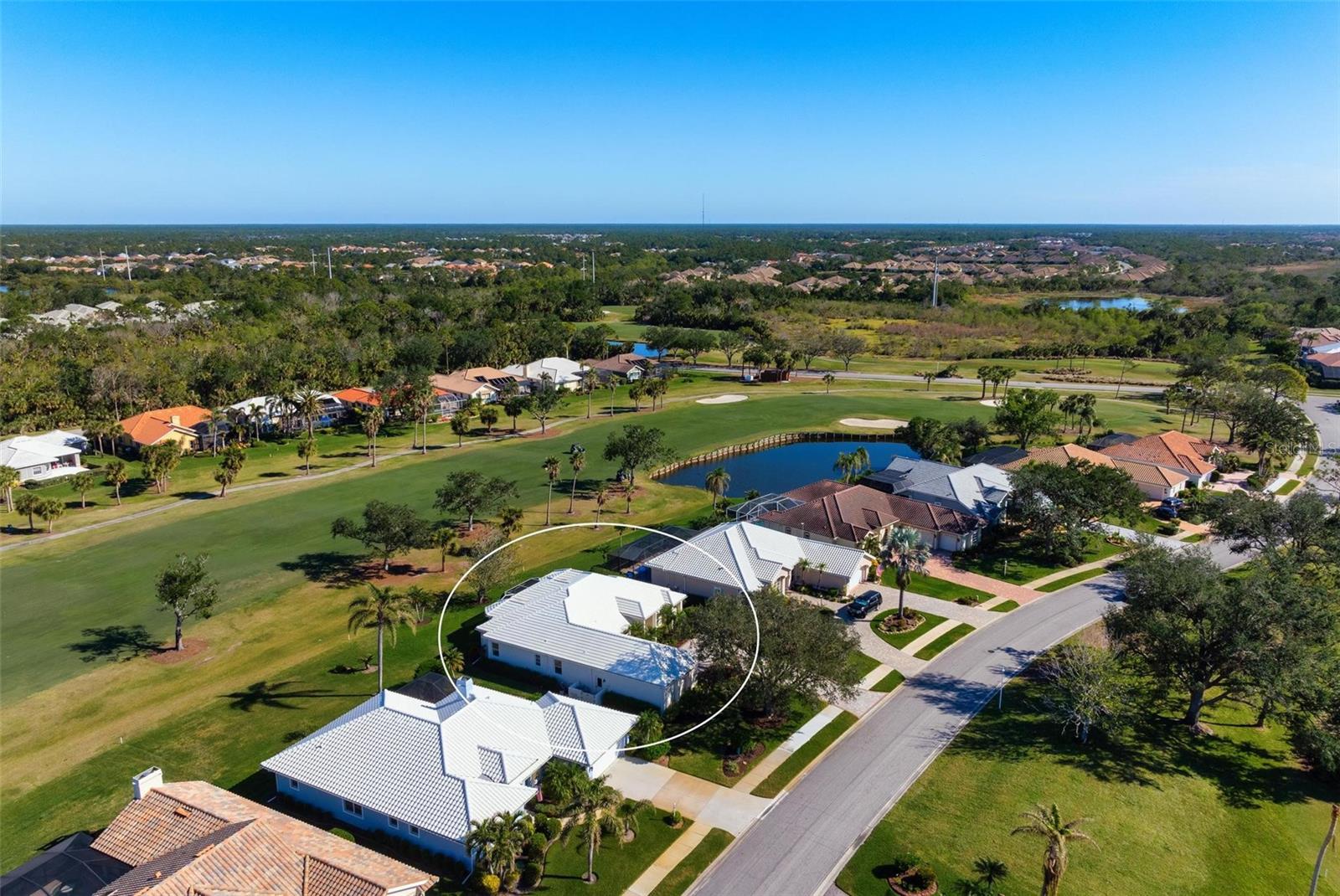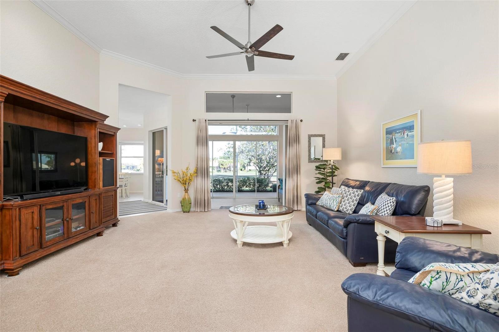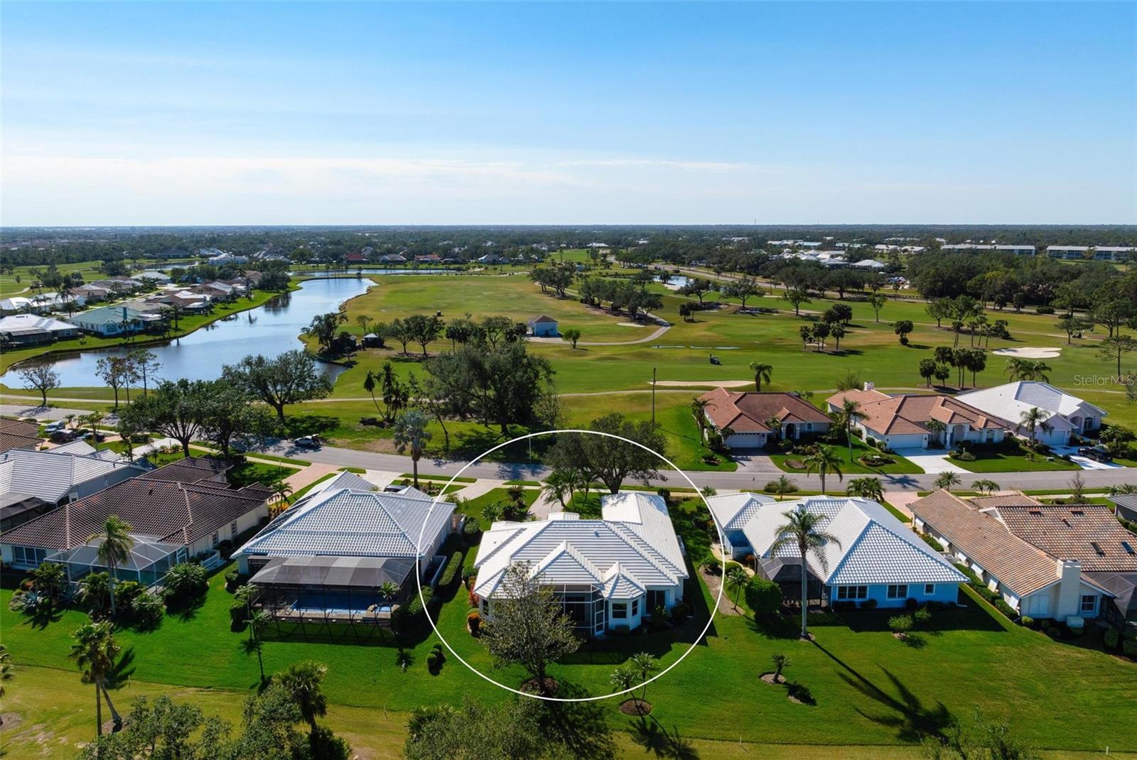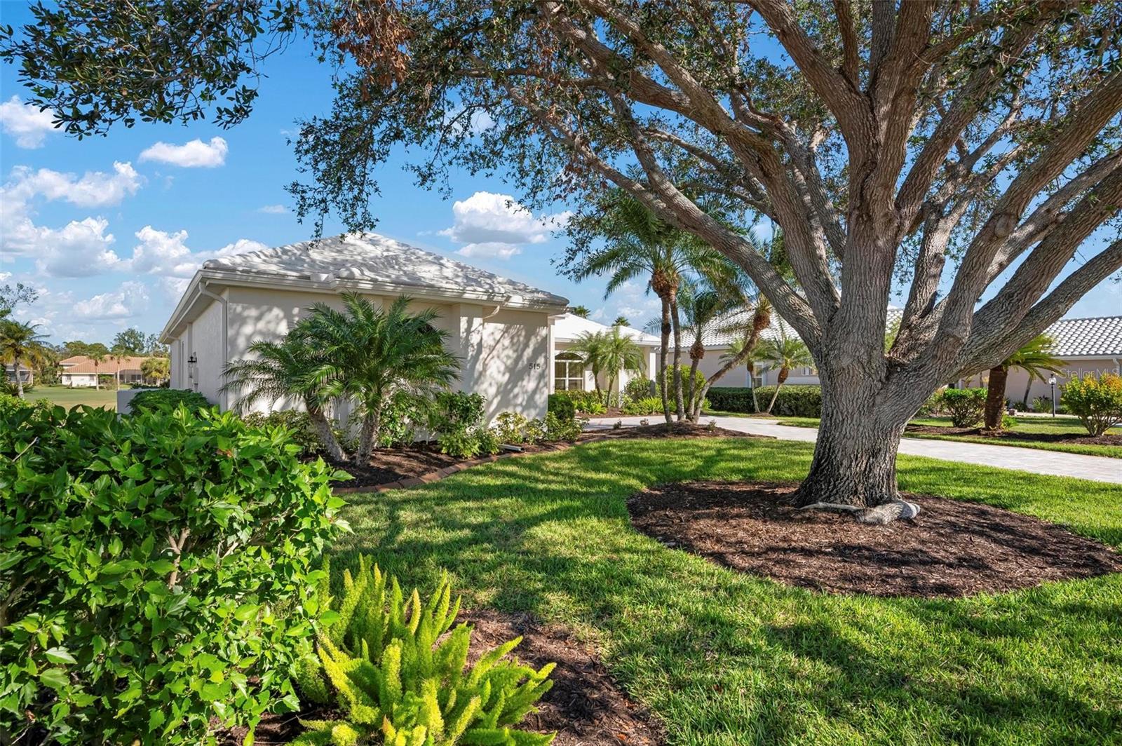 Premier Custom Country Club Home located in the highly desirable gated Governors Green neighborhood at The Plantation offers the lifestyle you desire. From the moment you arrive, you will be engaged by the meticulous care and attention this home has experienced, starting with the gorgeous paver driveway and mature tropical landscaping leading to the beautiful leaded glass entry door. Beyond the entry and spacious great room with its 12 foot ceilings, you'll love this home's sun-splashed split plan creating the perfect flow for entertaining family and guests. Walls of glass open to the tiled Florida sun-room and screened lanai, where you will enjoy expansive golf views of the 16th fairway of the Panther golf course. There's plenty of room for a pool if you decide to add one in the future. The great room plan offers volume 12 foot and 10 foot ceilings throughout the 3 large bedrooms, 2 ½ baths, formal dining room, spacious breakfast room, large and bright kitchen with lots of cabinet space, large pantry, and stainless steel appliances, plus the pleasant den/office for working at home or hiding away curled up with a good book. The large bay windows of the breakfast room and the master suite allow panoramic views of the golf course. Storage is never a problem with 11 closets and a super-sized 2+ car garage, perfect for storing your Florida beach toys. Rest easy knowing the home has full storm protection. Recent upgrades include new appliances and AC in 2023, new roof in 2018, HWH in 2020, and exterior paint, paver driveway, and ceiling lights and fans in 2024. Although membership in The Plantation Golf and Country Club is not mandatory, their two premier golf courses, tennis facilities, pool, and dining are a golfer’s paradise and the best of country club living. For the non-golfers, the beauty of the courses and the neighborhood certainly add to the charm of this delightful home. Located minutes from Historic Venice Island with its quaint shops, dining, beaches, biking/walking trails, fishing, performing arts center, and other cultural venues, and easy access to I-75 for quick trips to Sarasota and area airports.