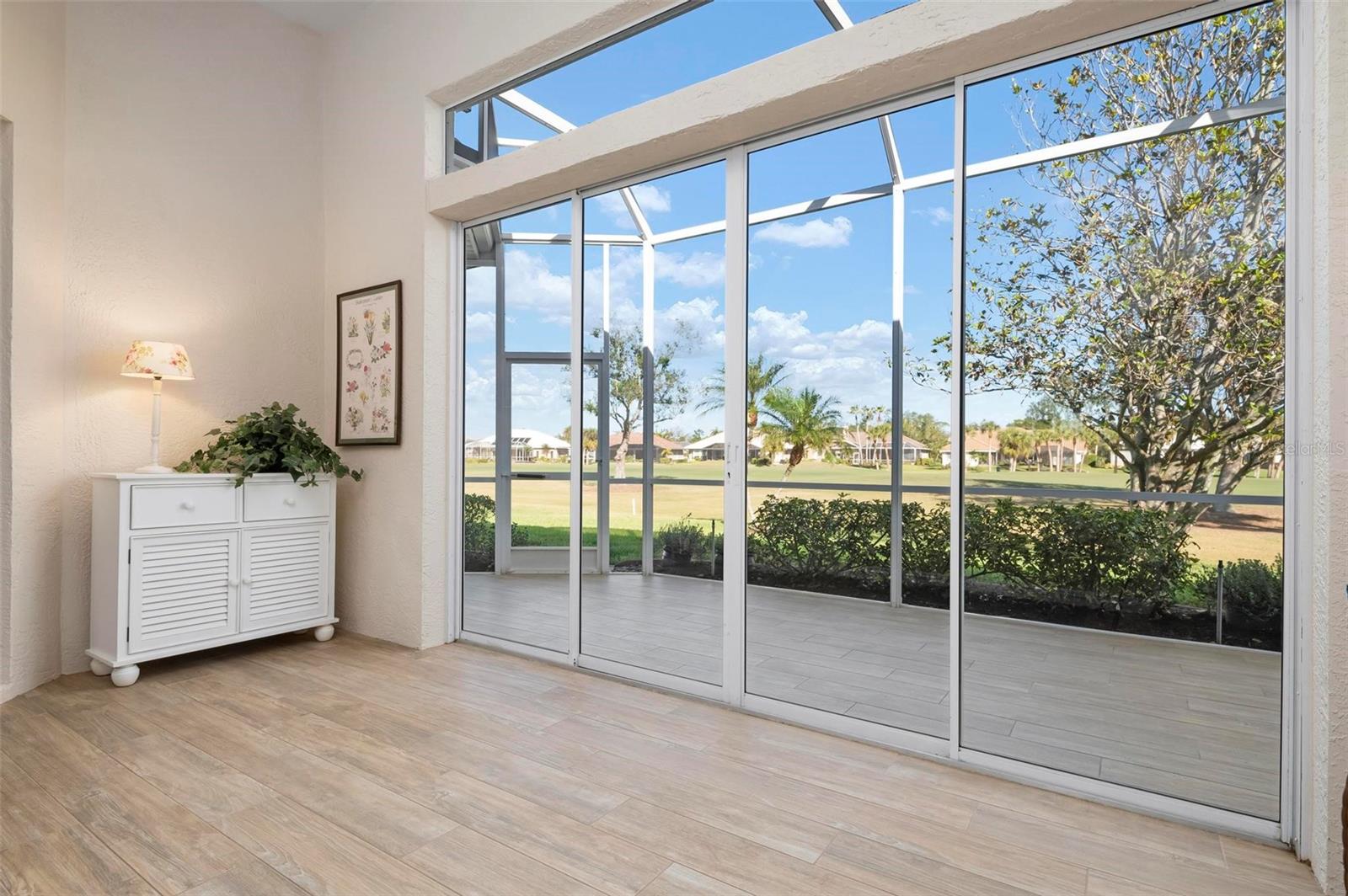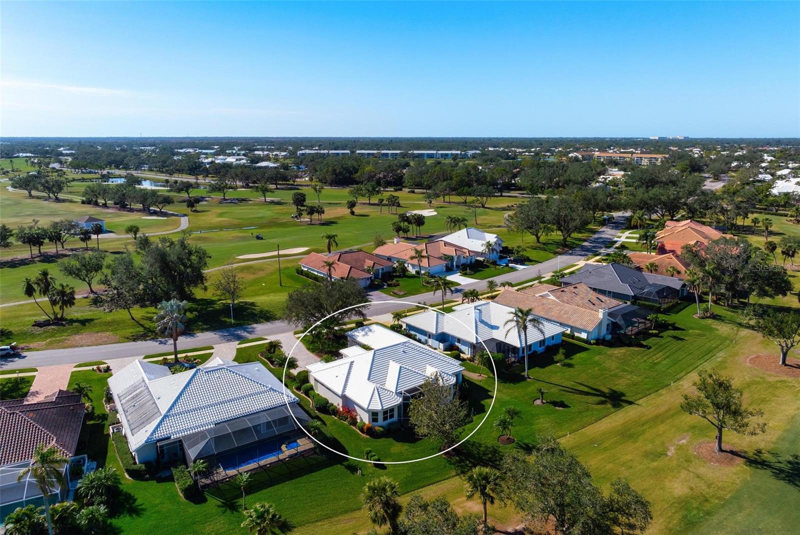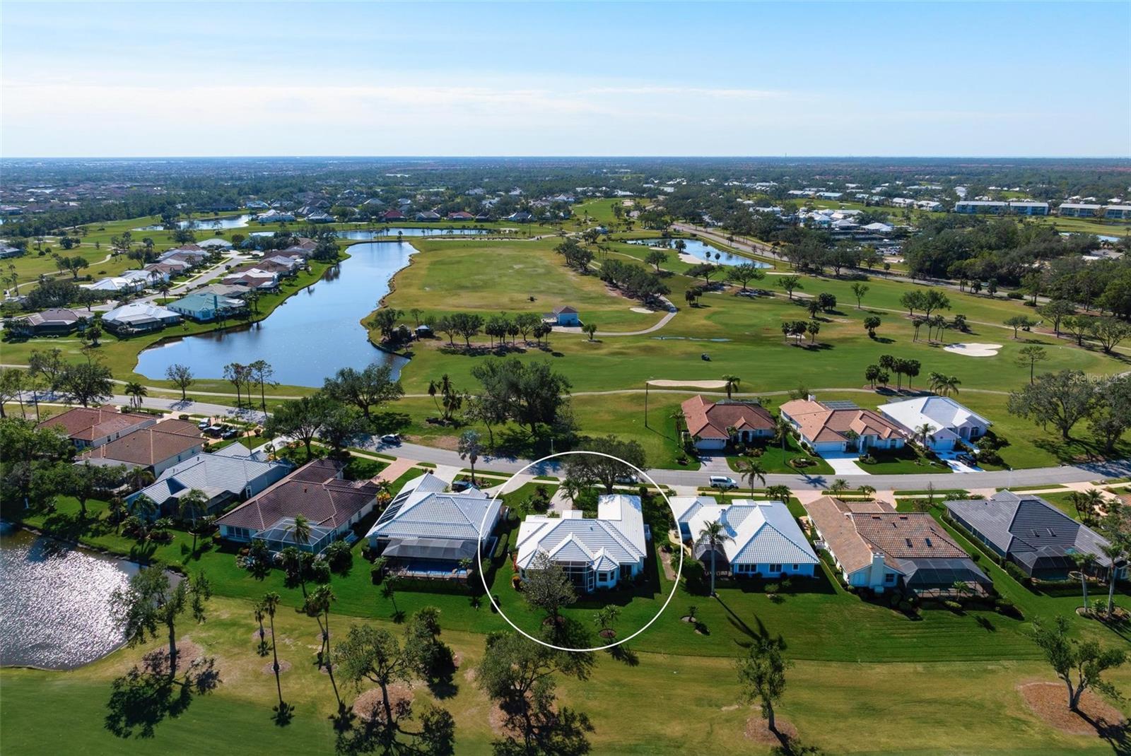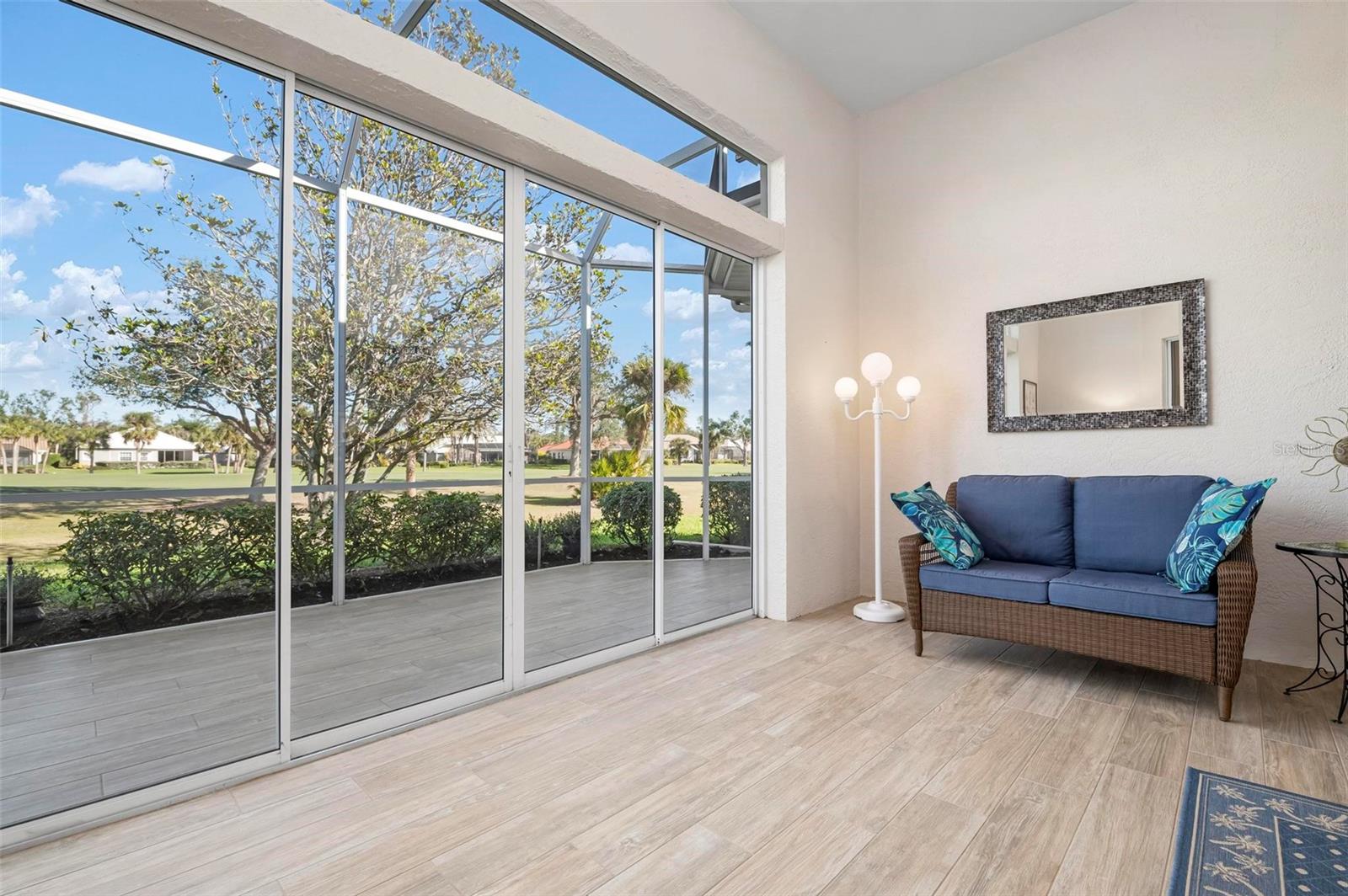 Premier Custom Country Club Home located in the highly desirable gated Governors Green neighborhood at The Plantation offers the lifestyle you desire. From the moment you arrive, you will be engaged by the meticulous care and attention this home has experienced, starting with the gorgeous paver driveway and mature tropical landscaping leading to the beautiful leaded glass entry door. Beyond the entry and spacious great room with its 12 foot ceilings, you'll love this home's sun-splashed split plan creating the perfect flow for entertaining family and guests. Walls of glass open to the tiled Florida sun-room and screened lanai, where you will enjoy expansive golf views of the 16th fairway of the Panther golf course. There's plenty of room for a pool if you decide to add one in the future. The great room plan offers volume 12 foot and 10 foot ceilings throughout the 3 large bedrooms, 2 ½ baths, formal dining room, spacious breakfast room, large and bright kitchen with lots of cabinet space, large pantry, and stainless steel appliances, plus the pleasant den/office for working at home or hiding away curled up with a good book. The large bay windows of the breakfast room and the master suite allow panoramic views of the golf course. Storage is never a problem with 11 closets and a super-sized 2+ car garage, perfect for storing your Florida beach toys. Rest easy knowing the home has full storm protection. Recent upgrades include new appliances and AC in 2023, new roof in 2018, HWH in 2020, and exterior paint, paver driveway, and ceiling lights and fans in 2024. Although membership in The Plantation Golf and Country Club is not mandatory, their two premier golf courses, tennis facilities, pool, and dining are a golfer’s paradise and the best of country club living. For the non-golfers, the beauty of the courses and the neighborhood certainly add to the charm of this delightful home. Located minutes from Historic Venice Island with its quaint shops, dining, beaches, biking/walking trails, fishing, performing arts center, and other cultural venues, and easy access to I-75 for quick trips to Sarasota and area airports.