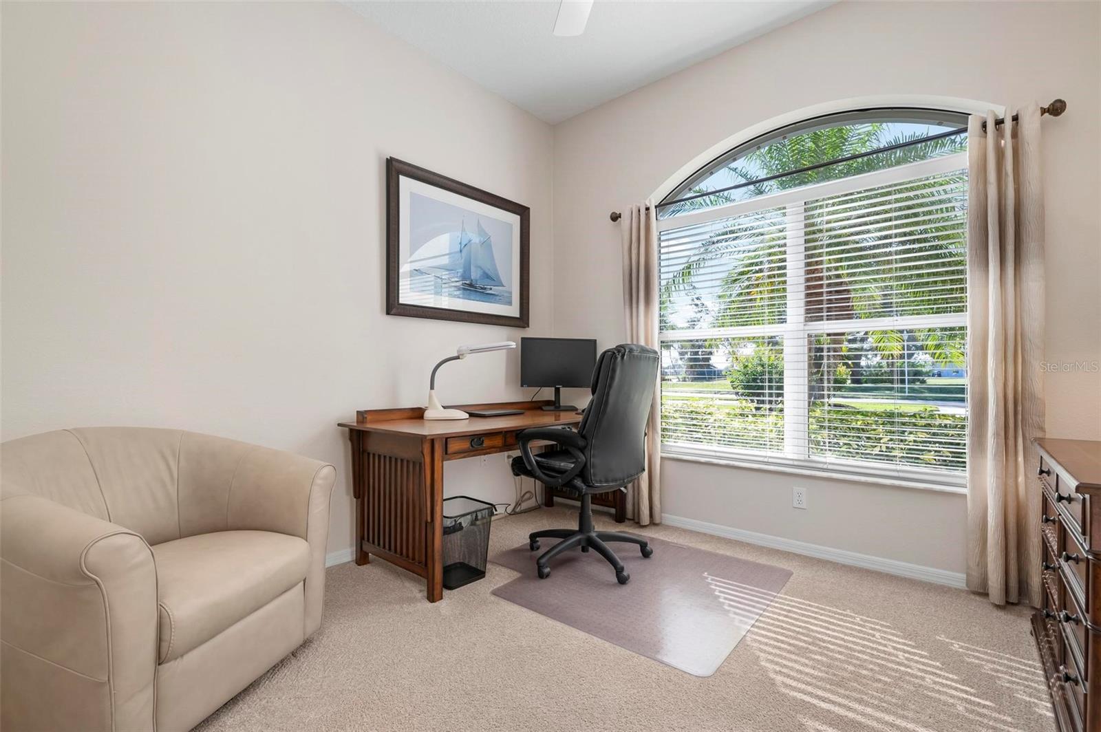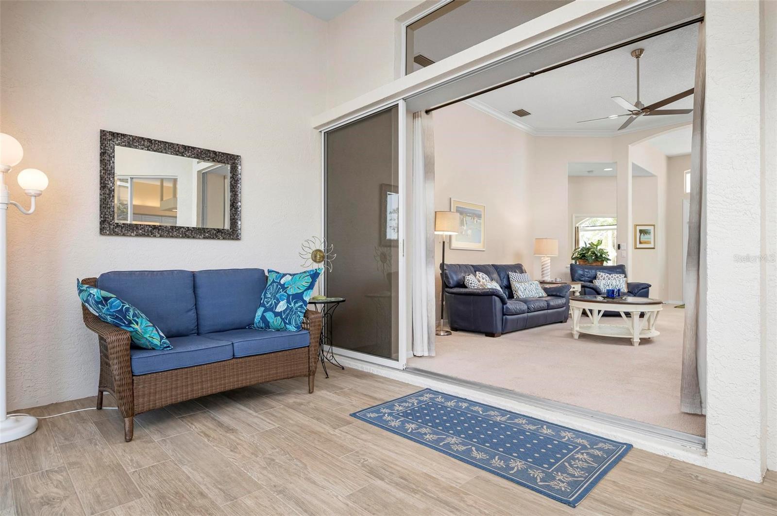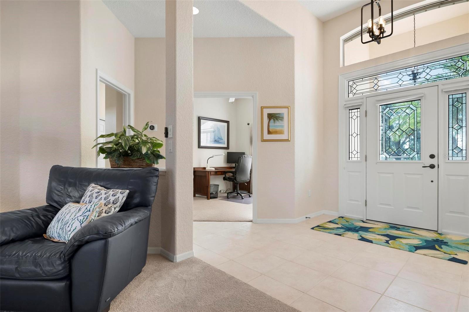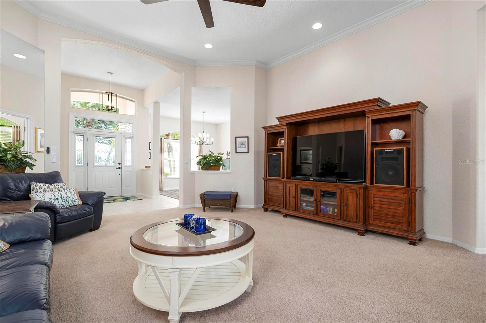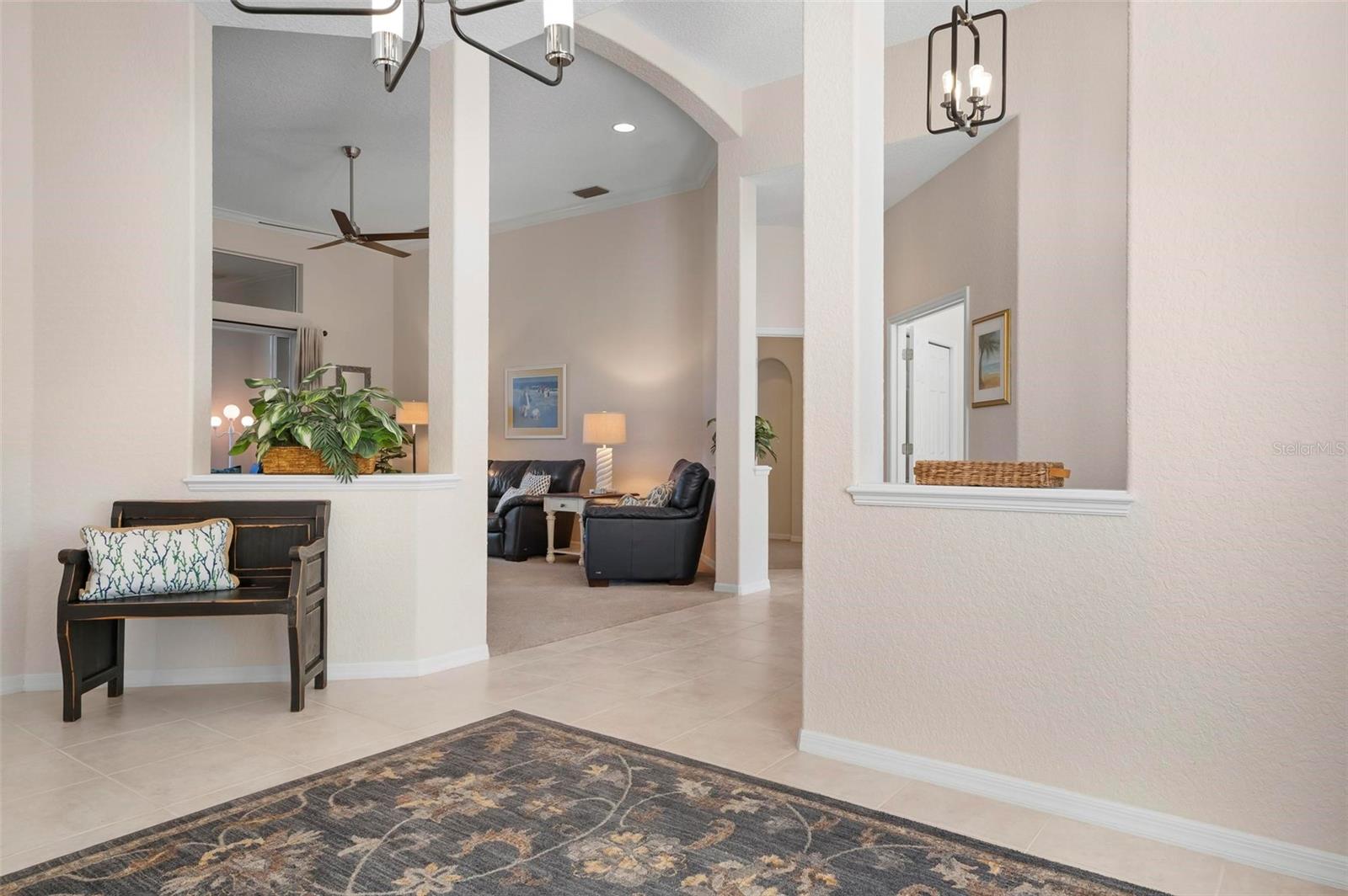 Premier Custom Country Club Home located in the highly desirable gated Governors Green neighborhood at The Plantation offers the lifestyle you desire. From the moment you arrive, you will be engaged by the meticulous care and attention this home has experienced, starting with the gorgeous paver driveway and mature tropical landscaping leading to the beautiful leaded glass entry door. Beyond the entry and spacious great room with its 12 foot ceilings, you'll love this home's sun-splashed split plan creating the perfect flow for entertaining family and guests. Walls of glass open to the tiled Florida sun-room and screened lanai, where you will enjoy expansive golf views of the 16th fairway of the Panther golf course. There's plenty of room for a pool if you decide to add one in the future. The great room plan offers volume 12 foot and 10 foot ceilings throughout the 3 large bedrooms, 2 ½ baths, formal dining room, spacious breakfast room, large and bright kitchen with lots of cabinet space, large pantry, and stainless steel appliances, plus the pleasant den/office for working at home or hiding away curled up with a good book. The large bay windows of the breakfast room and the master suite allow panoramic views of the golf course. Storage is never a problem with 11 closets and a super-sized 2+ car garage, perfect for storing your Florida beach toys. Rest easy knowing the home has full storm protection. Recent upgrades include new appliances and AC in 2023, new roof in 2018, HWH in 2020, and exterior paint, paver driveway, and ceiling lights and fans in 2024. Although membership in The Plantation Golf and Country Club is not mandatory, their two premier golf courses, tennis facilities, pool, and dining are a golfer’s paradise and the best of country club living. For the non-golfers, the beauty of the courses and the neighborhood certainly add to the charm of this delightful home. Located minutes from Historic Venice Island with its quaint shops, dining, beaches, biking/walking trails, fishing, performing arts center, and other cultural venues, and easy access to I-75 for quick trips to Sarasota and area airports.