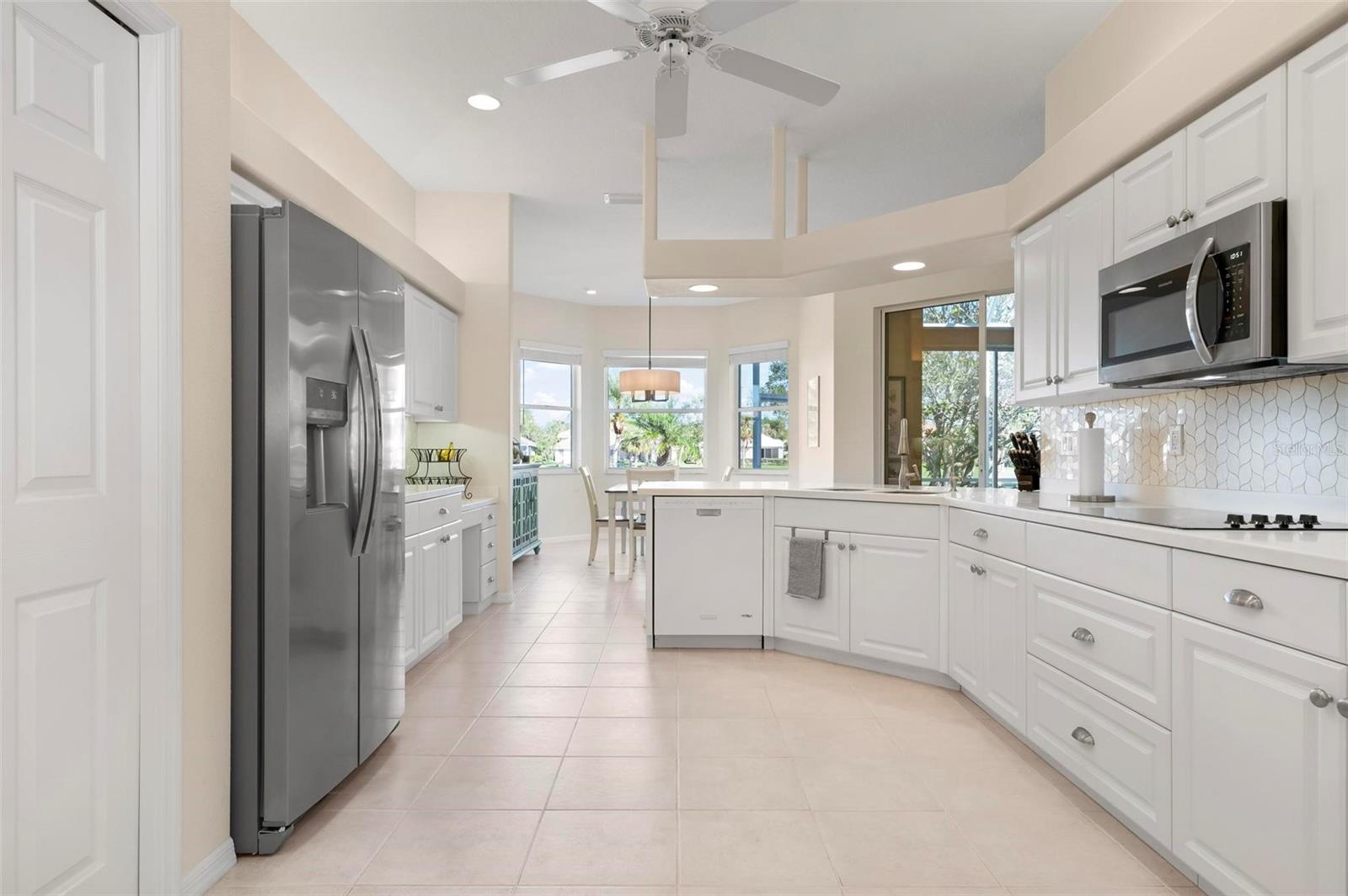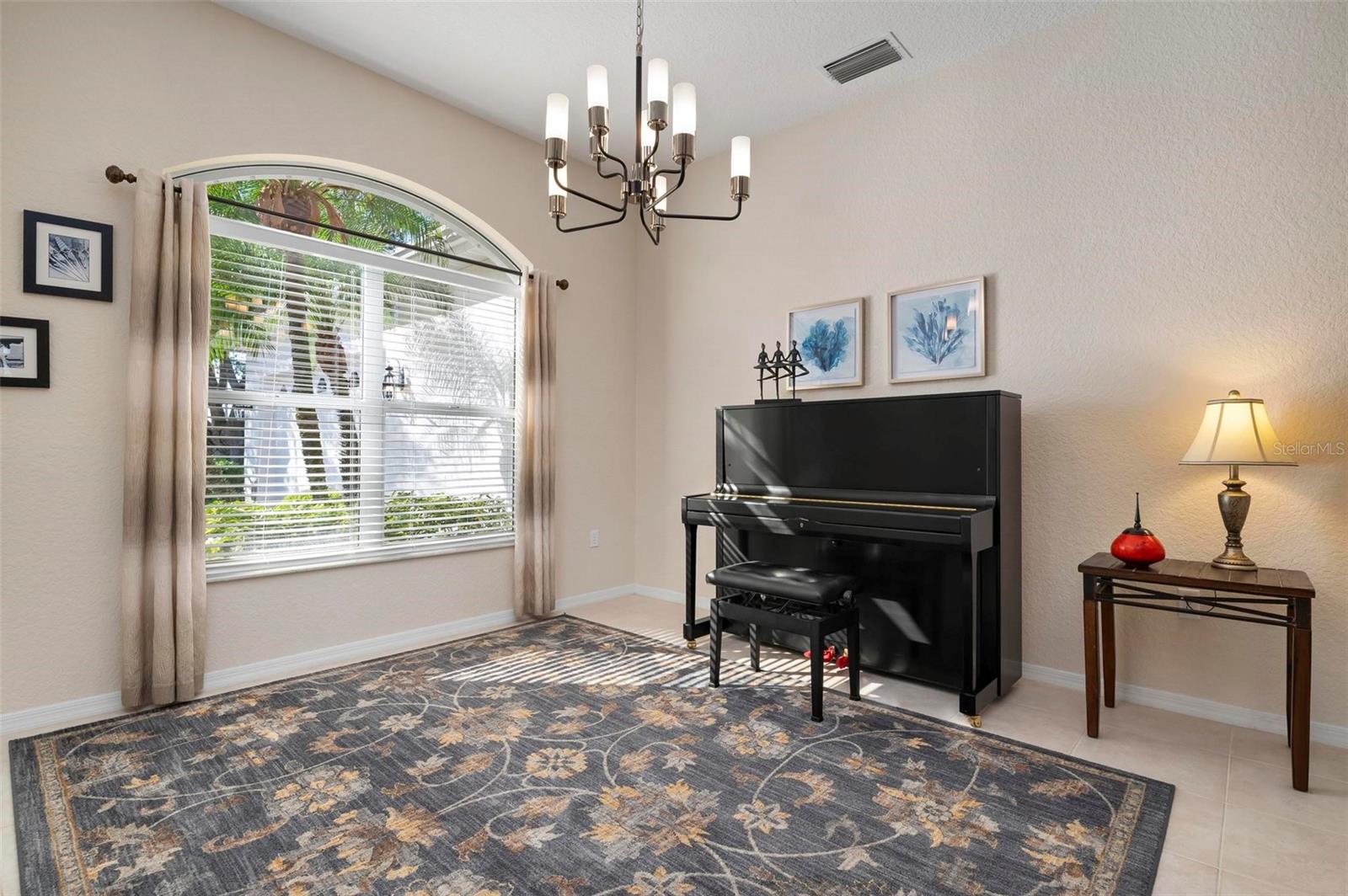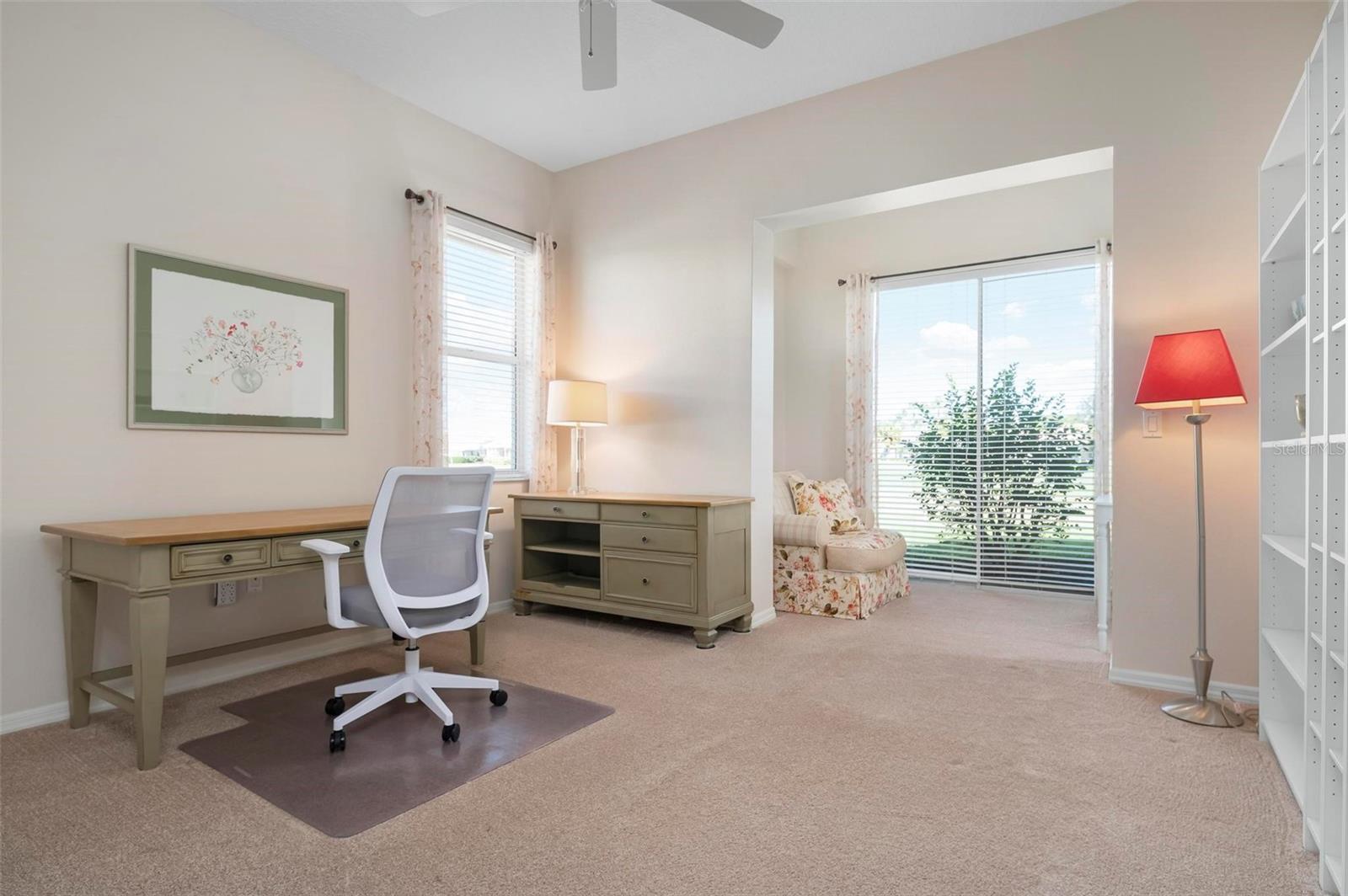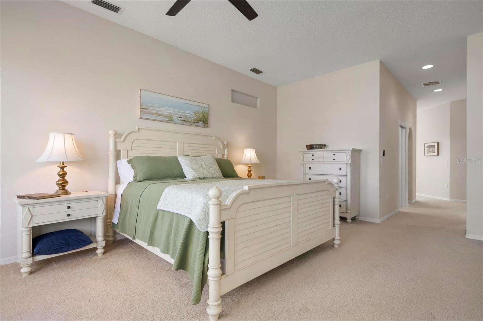 Premier Custom Country Club Home located in the highly desirable gated Governors Green neighborhood at The Plantation offers the lifestyle you desire. From the moment you arrive, you will be engaged by the meticulous care and attention this home has experienced, starting with the gorgeous paver driveway and mature tropical landscaping leading to the beautiful leaded glass entry door. Beyond the entry and spacious great room with its 12 foot ceilings, you'll love this home's sun-splashed split plan creating the perfect flow for entertaining family and guests. Walls of glass open to the tiled Florida sun-room and screened lanai, where you will enjoy expansive golf views of the 16th fairway of the Panther golf course. There's plenty of room for a pool if you decide to add one in the future. The great room plan offers volume 12 foot and 10 foot ceilings throughout the 3 large bedrooms, 2 ½ baths, formal dining room, spacious breakfast room, large and bright kitchen with lots of cabinet space, large pantry, and stainless steel appliances, plus the pleasant den/office for working at home or hiding away curled up with a good book. The large bay windows of the breakfast room and the master suite allow panoramic views of the golf course. Storage is never a problem with 11 closets and a super-sized 2+ car garage, perfect for storing your Florida beach toys. Rest easy knowing the home has full storm protection. Recent upgrades include new appliances and AC in 2023, new roof in 2018, HWH in 2020, and exterior paint, paver driveway, and ceiling lights and fans in 2024. Although membership in The Plantation Golf and Country Club is not mandatory, their two premier golf courses, tennis facilities, pool, and dining are a golfer’s paradise and the best of country club living. For the non-golfers, the beauty of the courses and the neighborhood certainly add to the charm of this delightful home. Located minutes from Historic Venice Island with its quaint shops, dining, beaches, biking/walking trails, fishing, performing arts center, and other cultural venues, and easy access to I-75 for quick trips to Sarasota and area airports.