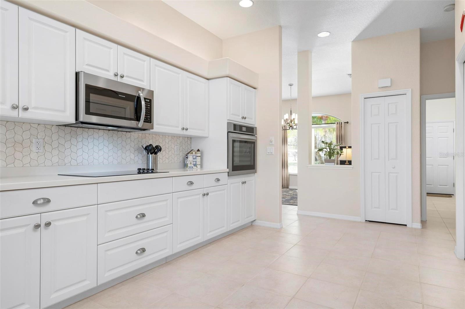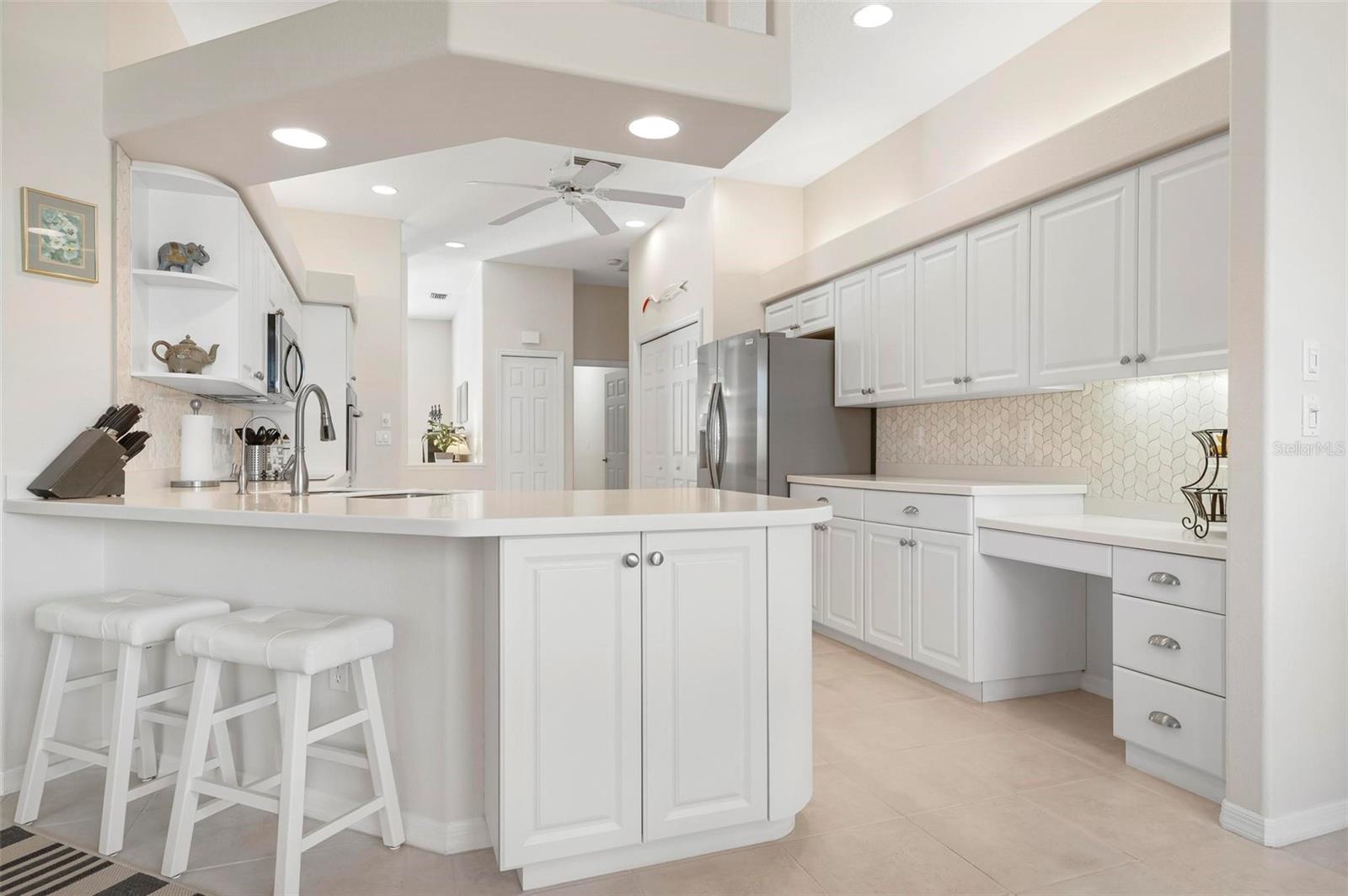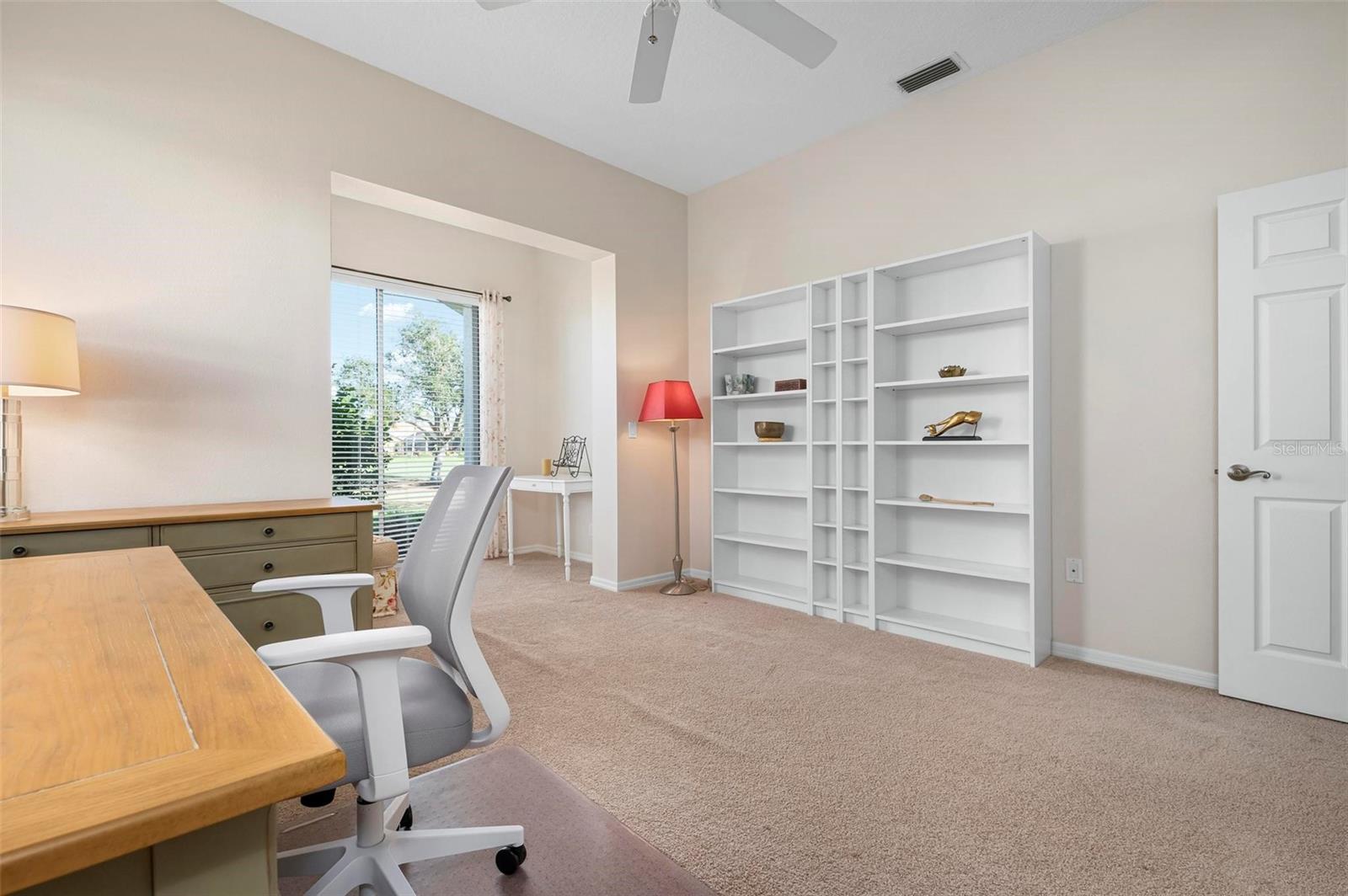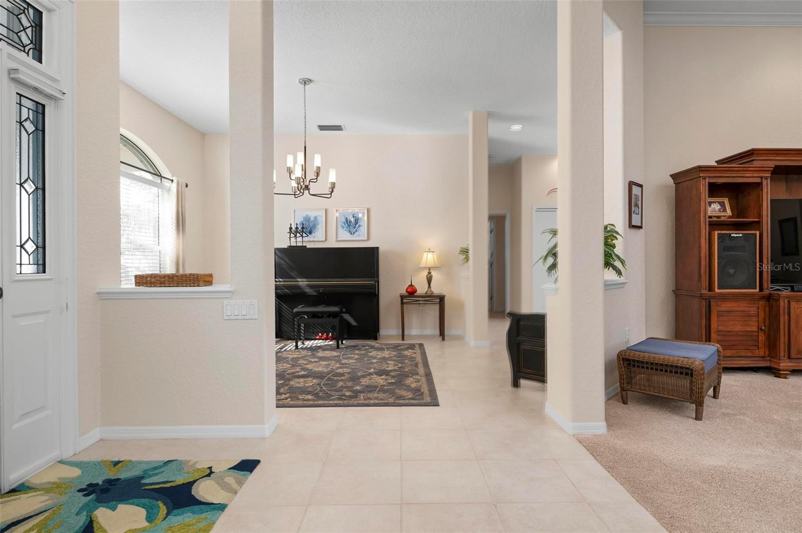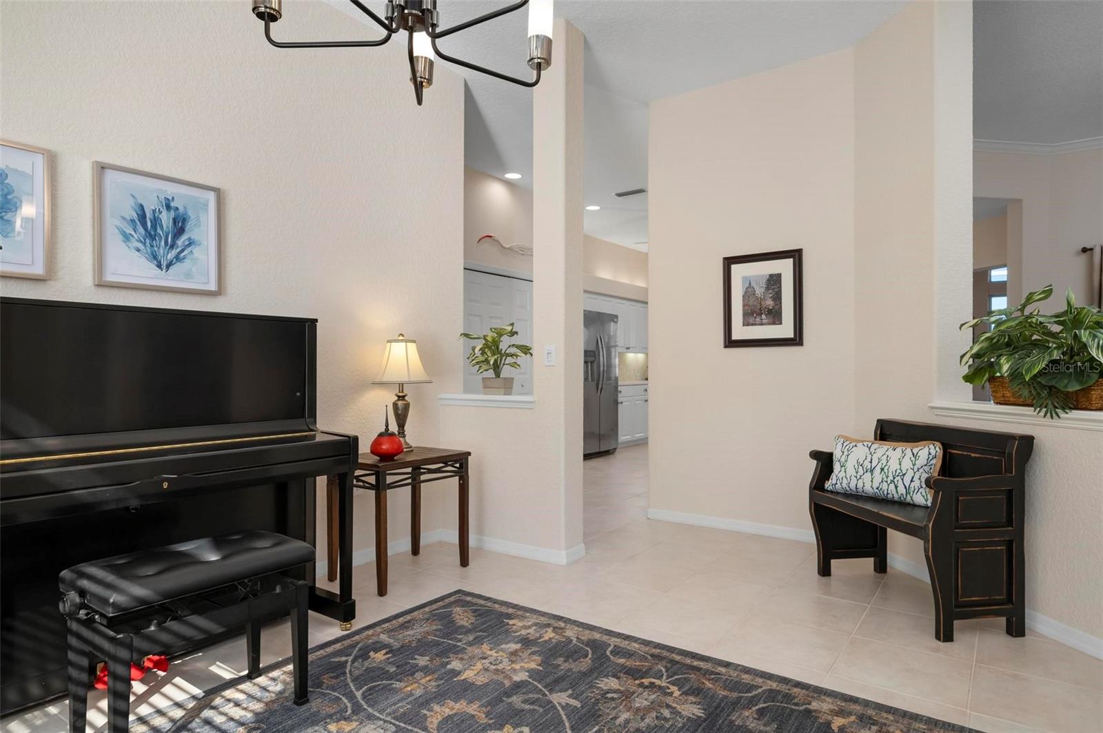 Premier Custom Country Club Home located in the highly desirable gated Governors Green neighborhood at The Plantation offers the lifestyle you desire. From the moment you arrive, you will be engaged by the meticulous care and attention this home has experienced, starting with the gorgeous paver driveway and mature tropical landscaping leading to the beautiful leaded glass entry door. Beyond the entry and spacious great room with its 12 foot ceilings, you'll love this home's sun-splashed split plan creating the perfect flow for entertaining family and guests. Walls of glass open to the tiled Florida sun-room and screened lanai, where you will enjoy expansive golf views of the 16th fairway of the Panther golf course. There's plenty of room for a pool if you decide to add one in the future. The great room plan offers volume 12 foot and 10 foot ceilings throughout the 3 large bedrooms, 2 ½ baths, formal dining room, spacious breakfast room, large and bright kitchen with lots of cabinet space, large pantry, and stainless steel appliances, plus the pleasant den/office for working at home or hiding away curled up with a good book. The large bay windows of the breakfast room and the master suite allow panoramic views of the golf course. Storage is never a problem with 11 closets and a super-sized 2+ car garage, perfect for storing your Florida beach toys. Rest easy knowing the home has full storm protection. Recent upgrades include new appliances and AC in 2023, new roof in 2018, HWH in 2020, and exterior paint, paver driveway, and ceiling lights and fans in 2024. Although membership in The Plantation Golf and Country Club is not mandatory, their two premier golf courses, tennis facilities, pool, and dining are a golfer’s paradise and the best of country club living. For the non-golfers, the beauty of the courses and the neighborhood certainly add to the charm of this delightful home. Located minutes from Historic Venice Island with its quaint shops, dining, beaches, biking/walking trails, fishing, performing arts center, and other cultural venues, and easy access to I-75 for quick trips to Sarasota and area airports.
