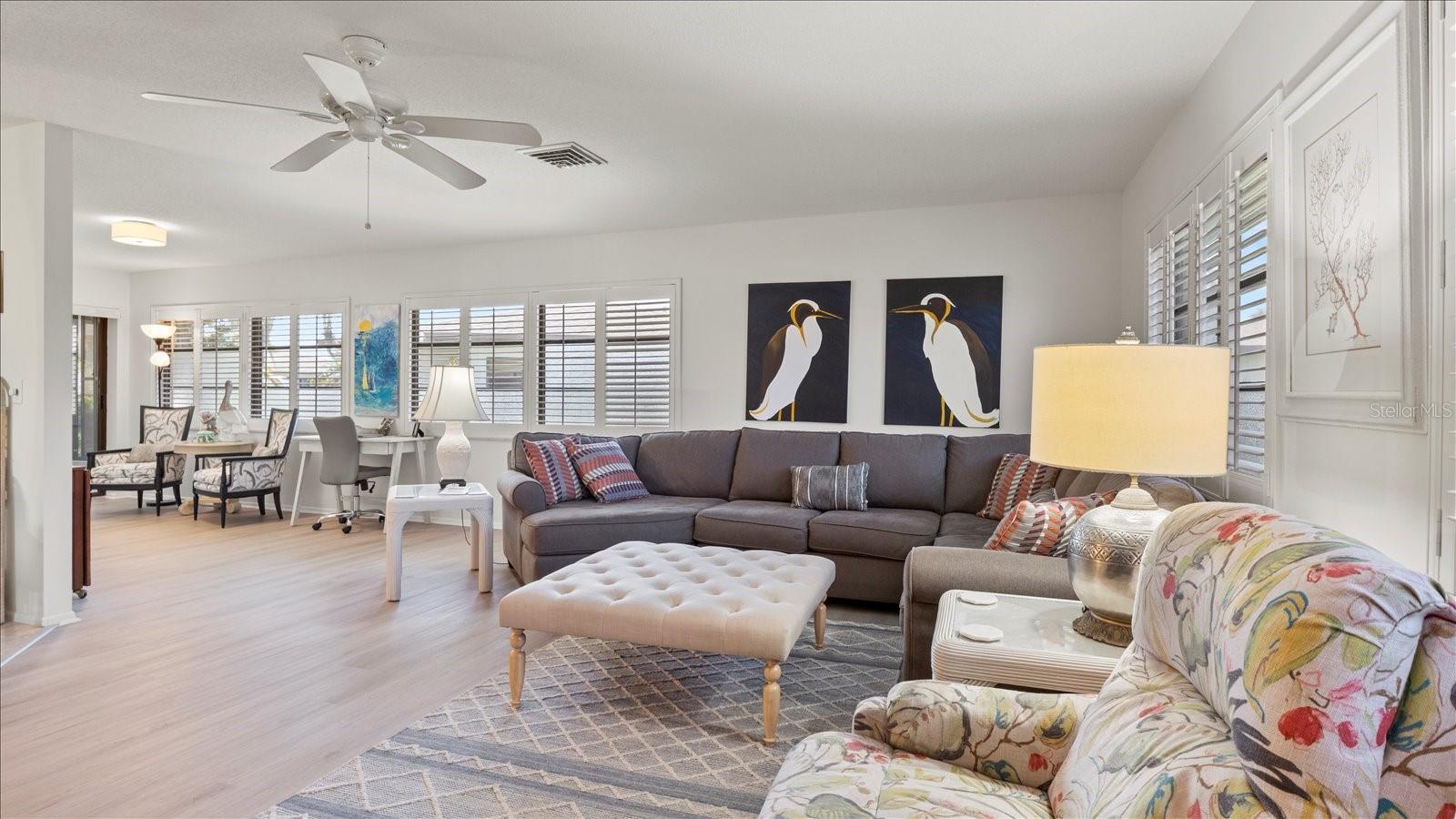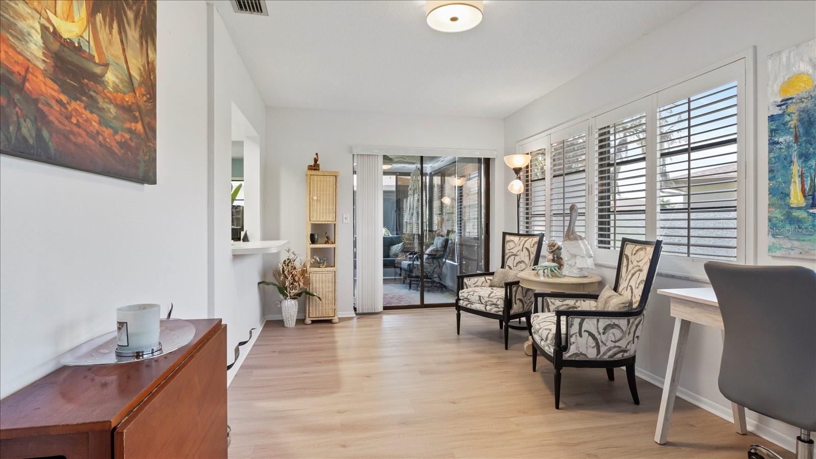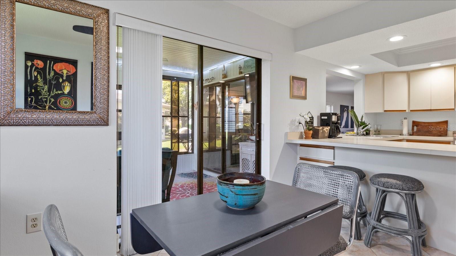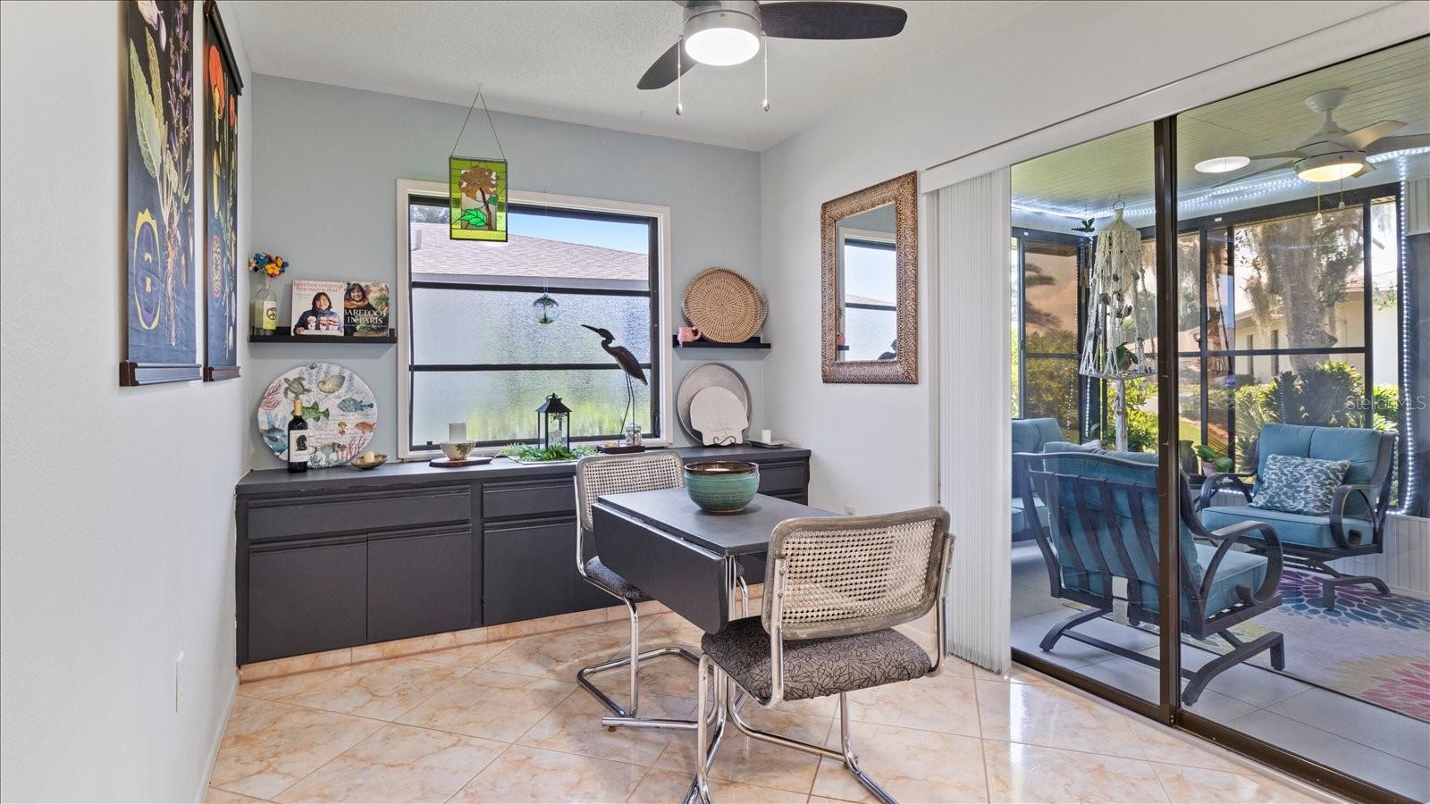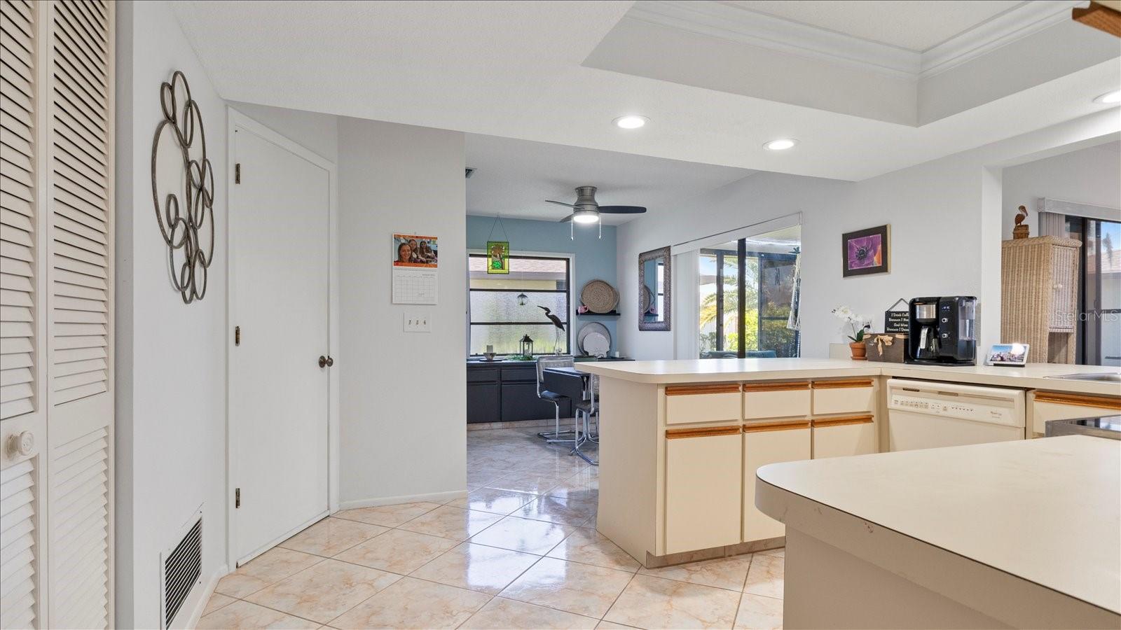 Welcome to this charming 2-bedroom, 2-bath free-standing villa in a desirable 55+ community in Venice, FL. This home offers an open-concept design featuring a spacious Florida room and an eat-in kitchen with ample counter space, a large pantry, and room for a coffee bar. Updates include a new microwave and cooktop (2023) and a new dishwasher (2024). Enjoy indoor living with sliding doors leading to a screened in lanai, complete with a TV and convenient access to the kitchen. The primary suite boast plenty of storage throughout. The maintenance-free community covers exterior painting, roof care, lawn maintenance, landscaping, and cable. Residents also enjoy access to a clubhouse, pool, and variety of additional Monthly activities. Don't miss the opportunity to embrace the Florida lifestyle!