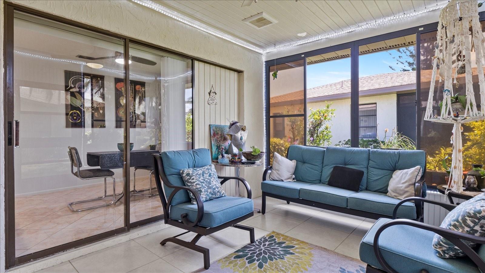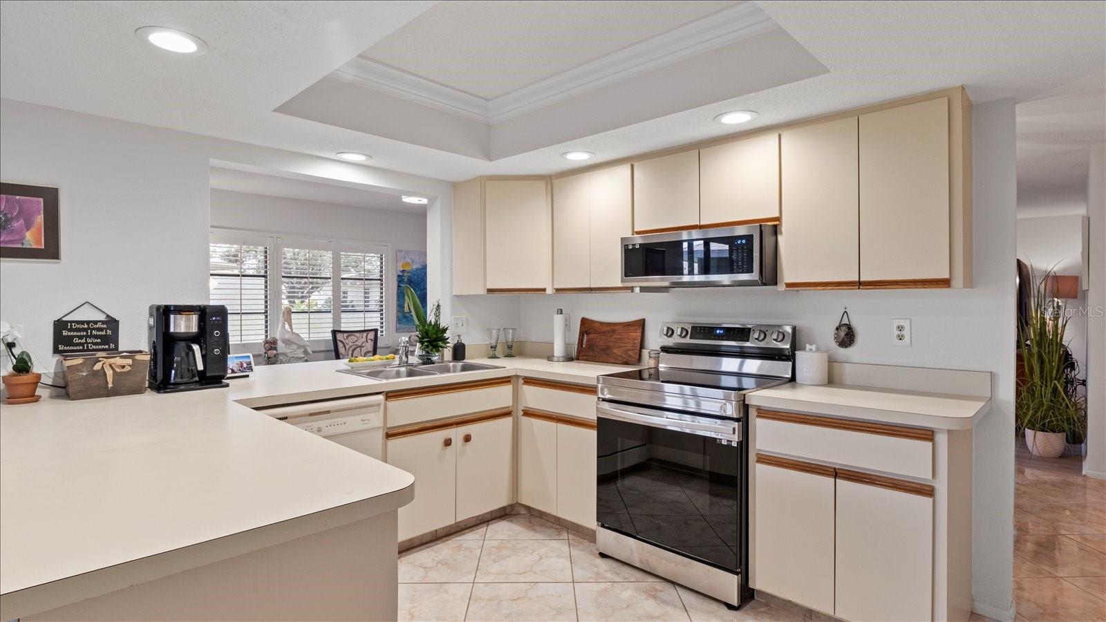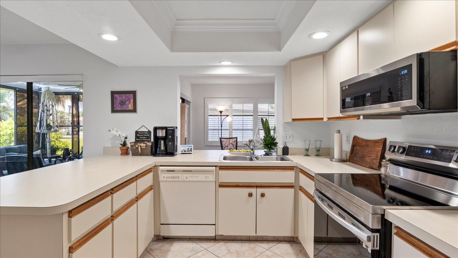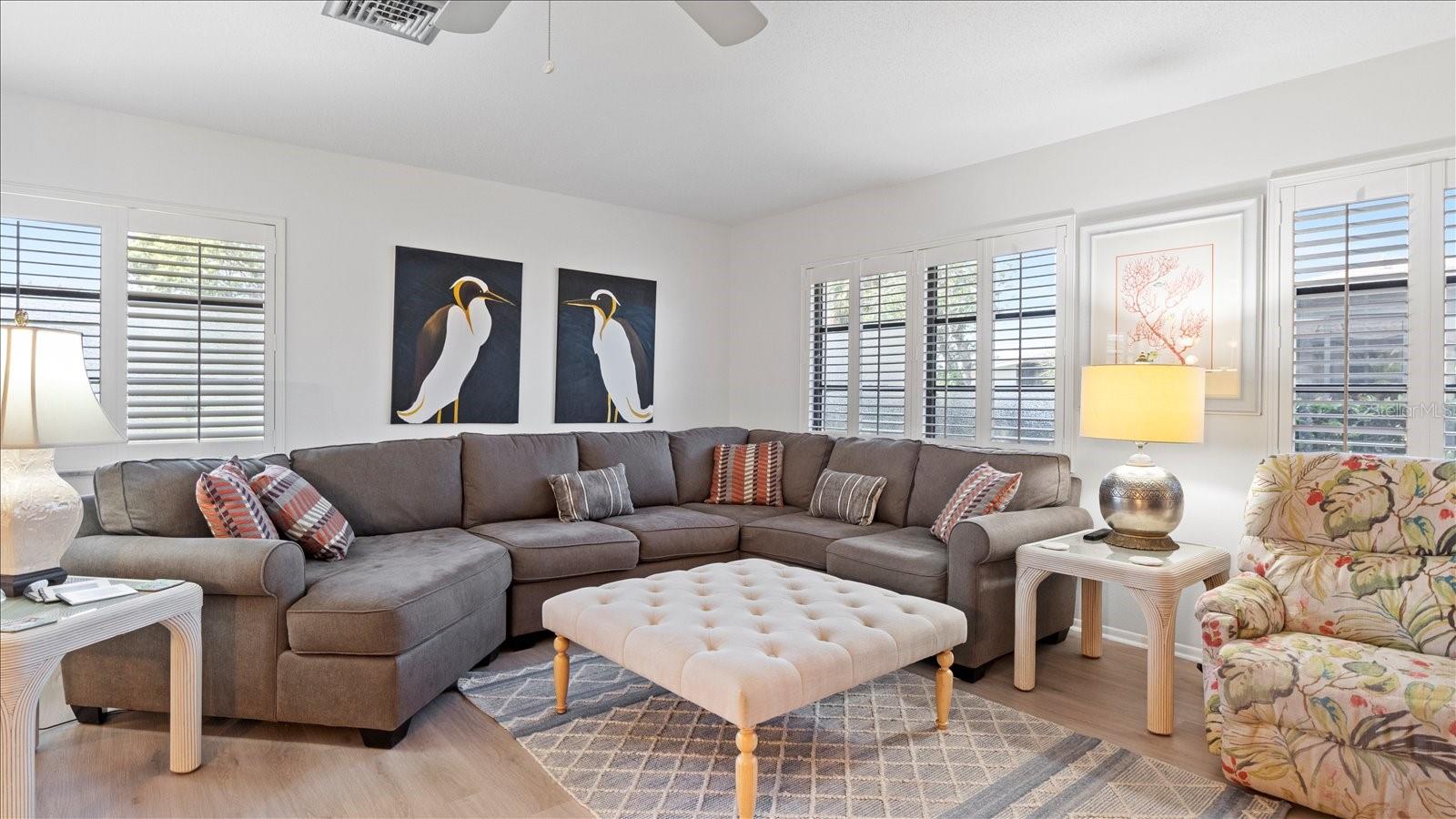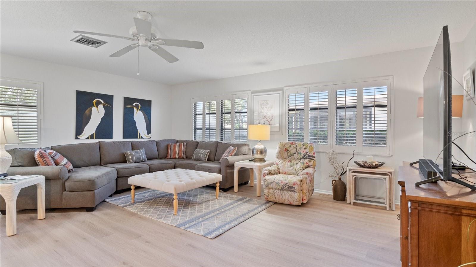 Welcome to this charming 2-bedroom, 2-bath free-standing villa in a desirable 55+ community in Venice, FL. This home offers an open-concept design featuring a spacious Florida room and an eat-in kitchen with ample counter space, a large pantry, and room for a coffee bar. Updates include a new microwave and cooktop (2023) and a new dishwasher (2024). Enjoy indoor living with sliding doors leading to a screened in lanai, complete with a TV and convenient access to the kitchen. The primary suite boast plenty of storage throughout. The maintenance-free community covers exterior painting, roof care, lawn maintenance, landscaping, and cable. Residents also enjoy access to a clubhouse, pool, and variety of additional Monthly activities. Don't miss the opportunity to embrace the Florida lifestyle!