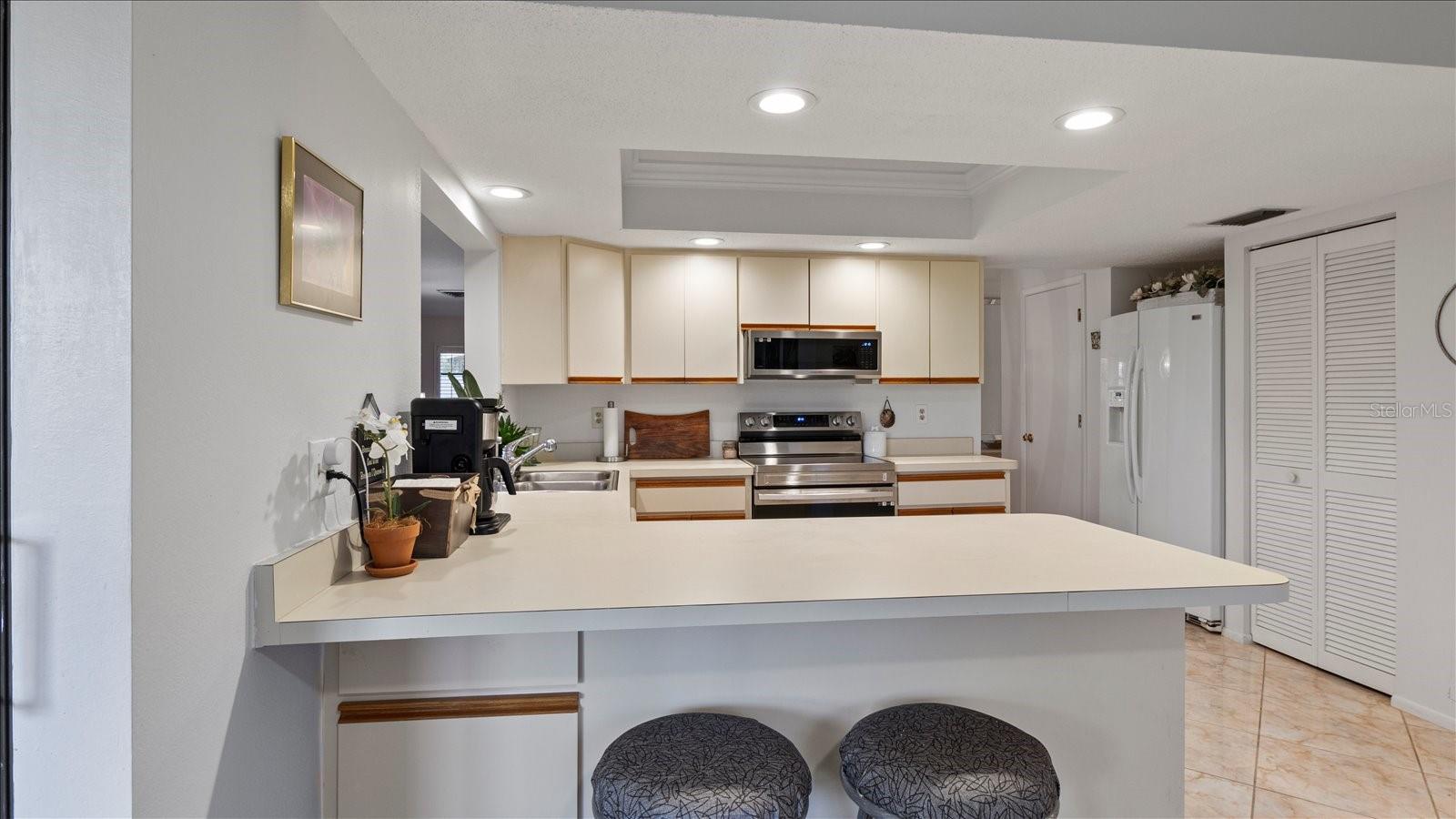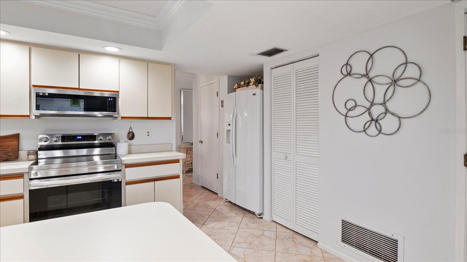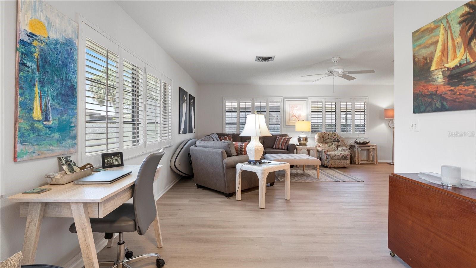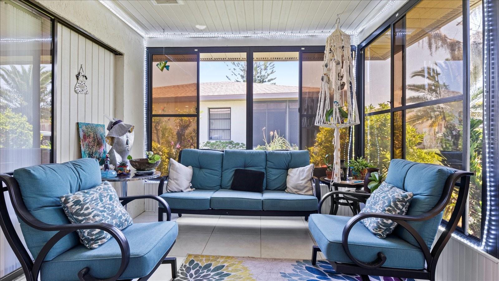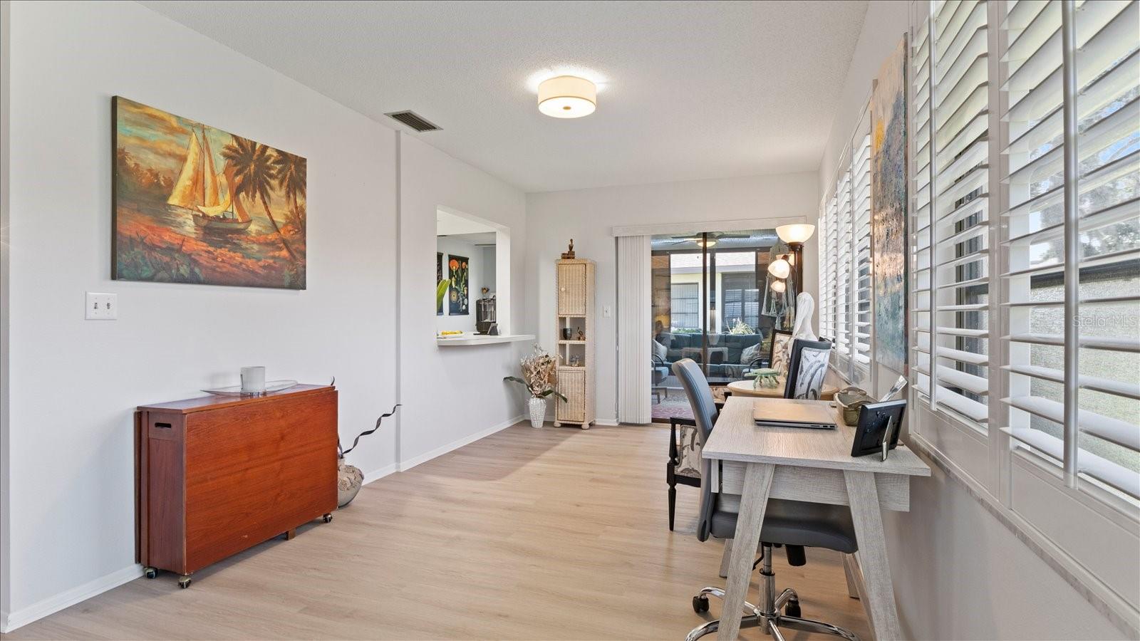 Welcome to this charming 2-bedroom, 2-bath free-standing villa in a desirable 55+ community in Venice, FL. This home offers an open-concept design featuring a spacious Florida room and an eat-in kitchen with ample counter space, a large pantry, and room for a coffee bar. Updates include a new microwave and cooktop (2023) and a new dishwasher (2024). Enjoy indoor living with sliding doors leading to a screened in lanai, complete with a TV and convenient access to the kitchen. The primary suite boast plenty of storage throughout. The maintenance-free community covers exterior painting, roof care, lawn maintenance, landscaping, and cable. Residents also enjoy access to a clubhouse, pool, and variety of additional Monthly activities. Don't miss the opportunity to embrace the Florida lifestyle!