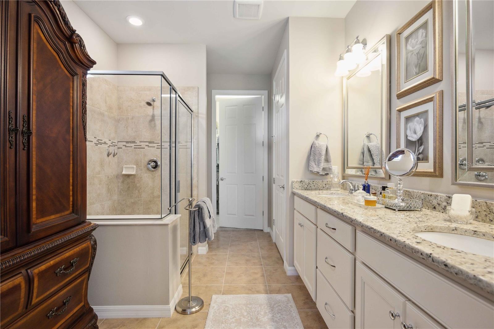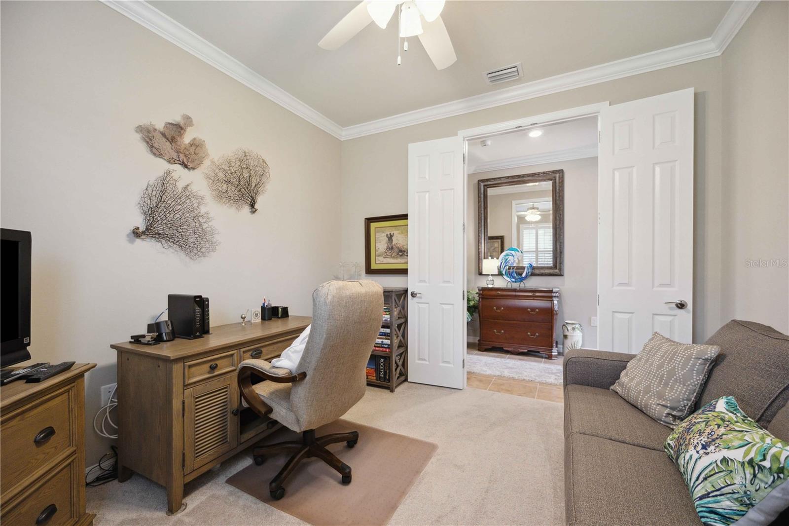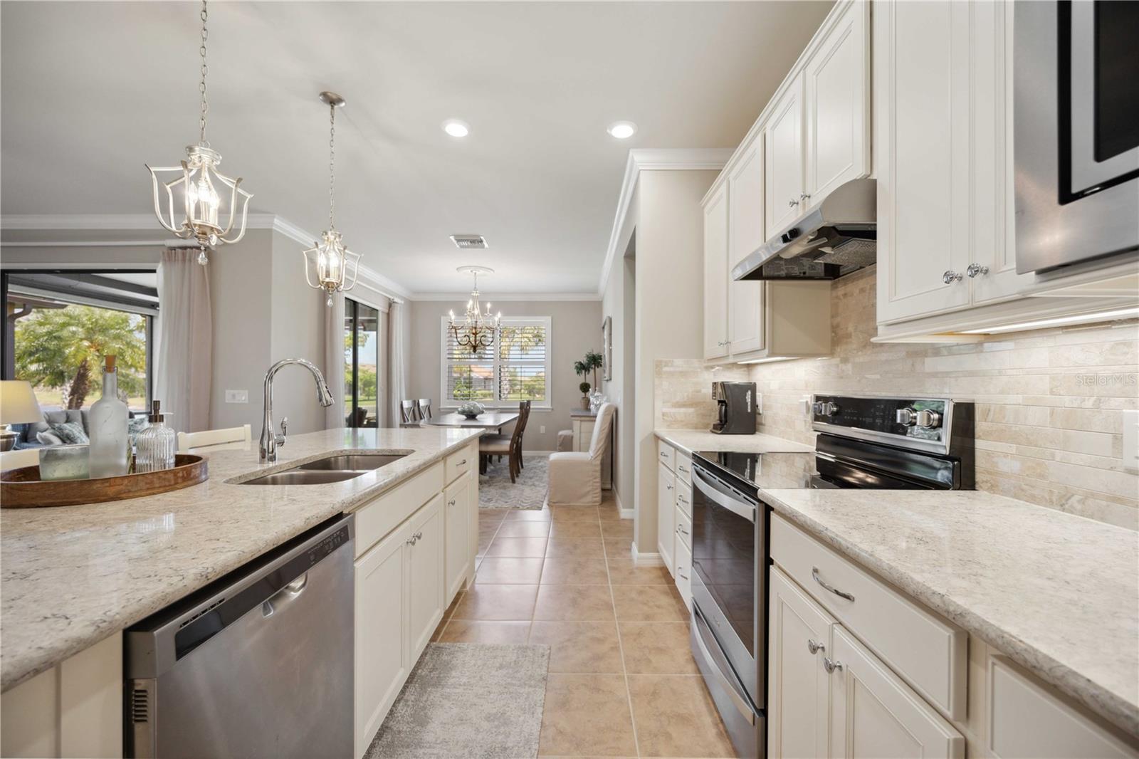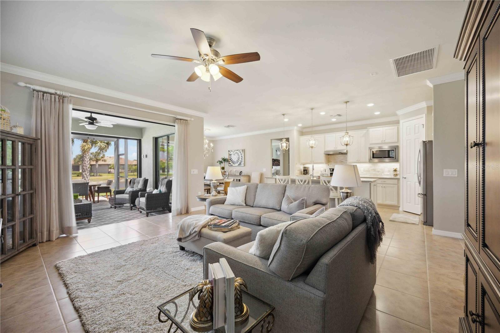 Stunning 3 Bed, 2 Bath Home with Lake Views in Islandwalk! Welcome to your dream home in the picturesque community of Islandwalk! This meticulously maintained 3-bedroom, 2-bathroom residence boasts an array of upgrades and features, offering a luxurious and comfortable living experience. As you step through the upgraded front door with glass, you'll be greeted by an inviting interior highlighted by tile floors, crown molding, and 9' interior doors throughout. The spacious open floor plan seamlessly connects the living, dining, and kitchen areas, perfect for both entertaining and everyday living. The gourmet kitchen is a chef's delight, featuring upgraded quartz countertops, stainless steel appliances, a stylish tile backsplash, and a convenient breakfast bar. The adjacent dining area overlooks the serene lake views, creating a tranquil ambiance for enjoying meals with family and friends. Relax and unwind in the elegant primary suite, complete with plantation shutters, a luxurious ensuite bathroom with granite countertops, dual sinks, and a separate walk-in shower. Two additional bedrooms provide ample space for guests or family members, each with ceiling fans and plantation shutters. Ideal for remote work or quiet retreats, the office/den features elegant French doors, offering privacy without sacrificing natural light or airflow. The upgraded laundry room is a practical oasis, complete with cabinets and a utility sink, making household chores a breeze. Step outside to the extended lanai and experience true outdoor living at its finest. Sip your morning coffee or dine alfresco while taking in the peaceful lake views. The lanai is equipped with storm smart hurricane screens, providing added convenience and protection. The spacious 4' extended garage provides ample storage space for tools, equipment, or recreational gear. You'll notice the sleek epoxy floors, providing both durability and aesthetic charm. Convenient pull-down attic stairs offer easy access to additional storage space, ensuring every inch of this home is utilized efficiently. Safety is paramount, and this home is equipped with an ADT alarm system complemented by surveillance cameras, providing peace of mind and an extra layer of security. The inclusion of a Ring doorbell further enhances security measures, allowing you to monitor and control access to your home remotely. Outside, the meticulously maintained landscape and carefully curated lighting enhance the home's curb appeal, welcoming you and your guests with warmth and sophistication. With its prime location, luxurious upgrades, and serene lake views, this home offers the perfect blend of comfort, convenience, and elegance. Don't miss out on the opportunity to make this your own island paradise!
